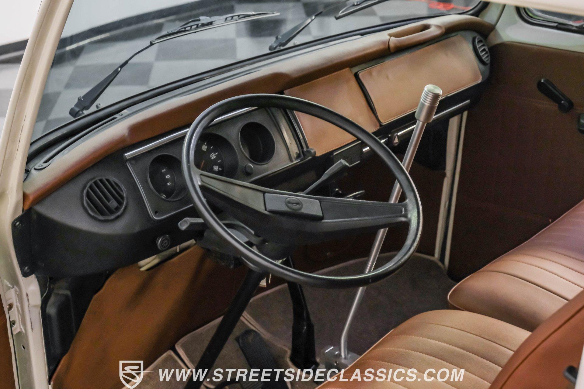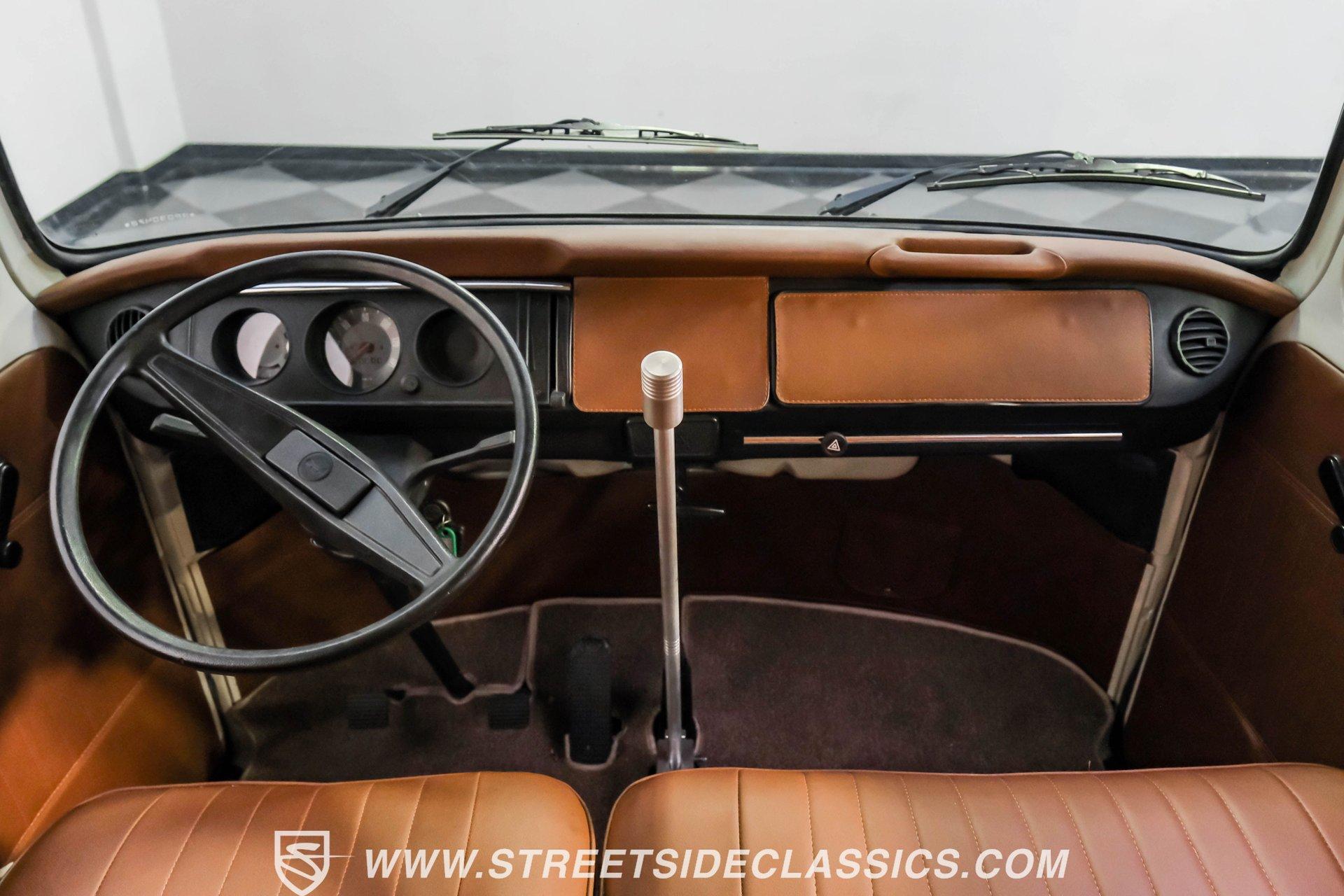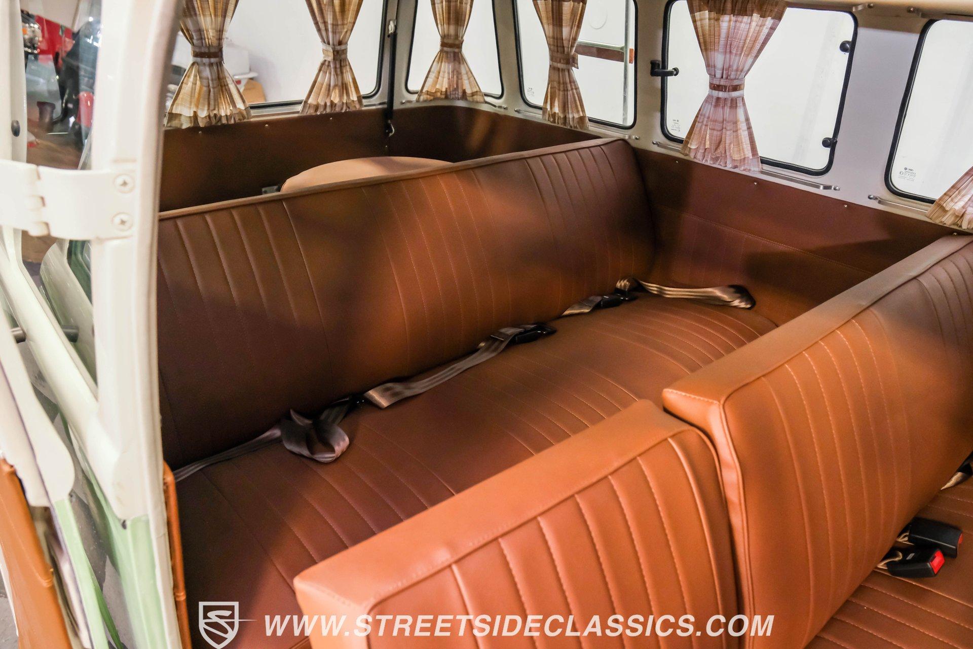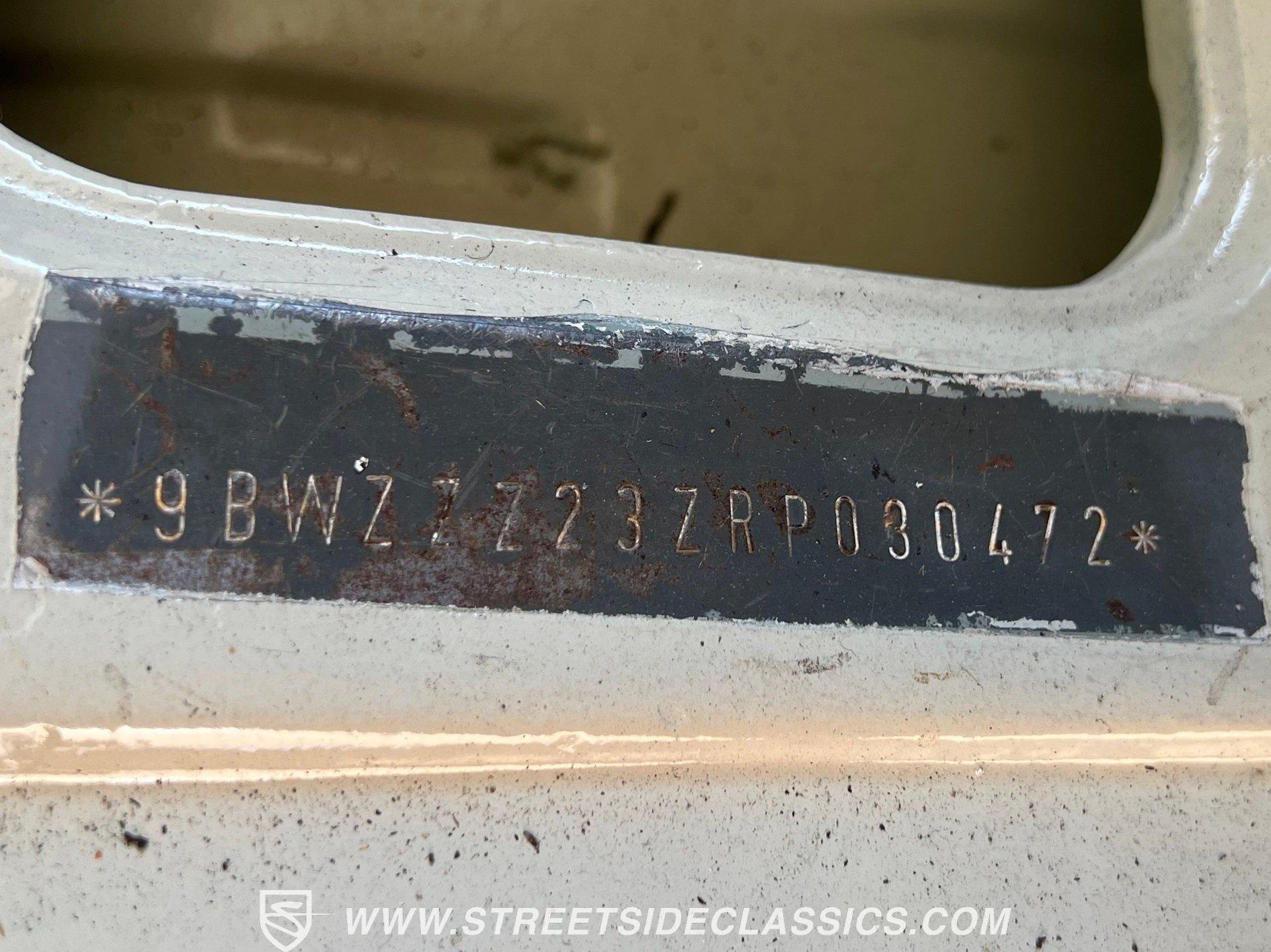 With a look that blends generations, this 1994 Volkswagen Type 2 13 Window Deluxe Bus wears Light Green and Cream paint with that unmistakable South American-market combo-late-model front sheet metal paired with early-style panoramic glass. The roof rack and matching ladder accent the wraparound rear window and rounded bodywork. Rolling on color-keyed 14" steel wheels wrapped in 185/80R14 tires with whitewall trim, this vehicle captures that split-window silhouette with a unique twist. Subtle trim, painted bumpers, and chrome trim round out the retro vibe with just the right attitude. Brown vinyl covers all three bench rows in this well-trimmed interior, built to seat up to nine across split-bench configurations. Matching door panels, a dash pad, and fresh carpet tie it all together while accent drapes ride just inside the side glass. The spare tire cover adds a finished look at the rear. An aftermarket tall floor shifter punctuates the utilitarian cabin with a bit of attitude, and the original-style layout retains its functionality without overcomplication. There's no radio onboard, just the mechanical rhythm of a machine doing what it was built to do. A 1600cc gasoline engine powers this vehicle, backed by a 4-speed manual gearbox. Fuel delivery is handled via a 1-barrel carburetor, and the factory-style exhaust exits through a single muffler. Suspension is fully independent, front and rear, with power disc brakes up front. The drivetrain is built around a transaxle rear layout, keeping the floor flat and weight centered. It's basic, honest, and mechanically sound-everything it needs to be. HIGHLIGHTS 1600cc Gasoline Engine 4-Speed Manual Transaxle Power Front Disc Brakes Factory-Style Exhaust System Light Green & Cream Paint 14" Color-Keyed Steel Wheels 185/80R14 Tires With Whitewall Trim Roof Rack With Ladder 13 Window Brown Interior With Split-Bench Front Seat Reupholstered Seats And Matching Door Panels Dash Pad And Fresh Carpet Brazilian Market Model With its iconic layout, sharp color combo, and a mechanical package that's as honest as it gets, this 1994 Volkswagen Type 2 13 Window Deluxe Bus brings nostalgic design and simple mechanics together in one distinct package. Call today!