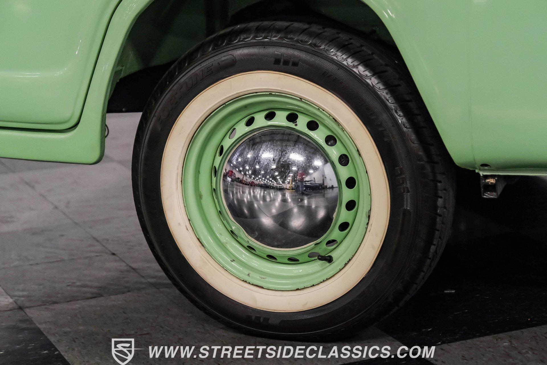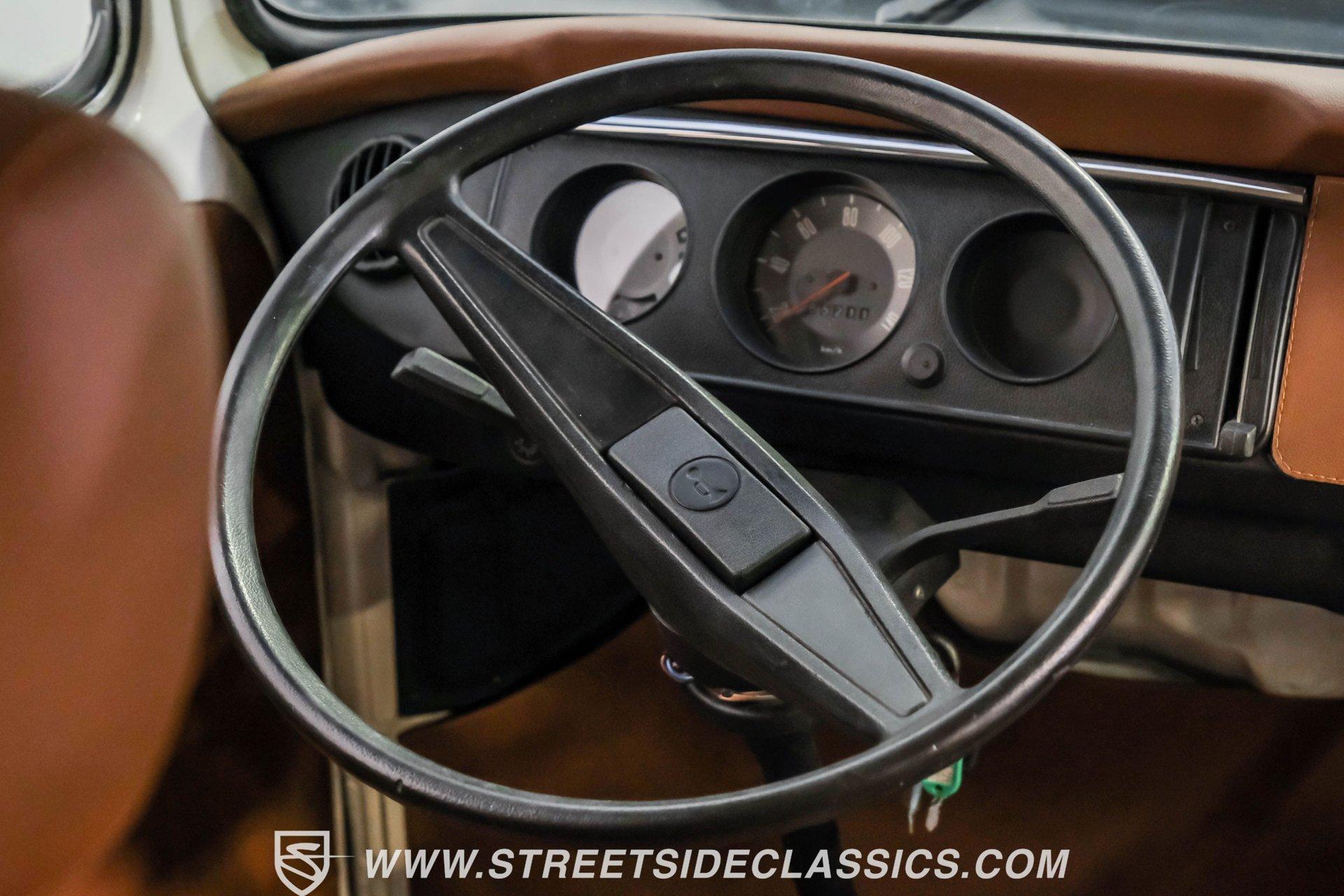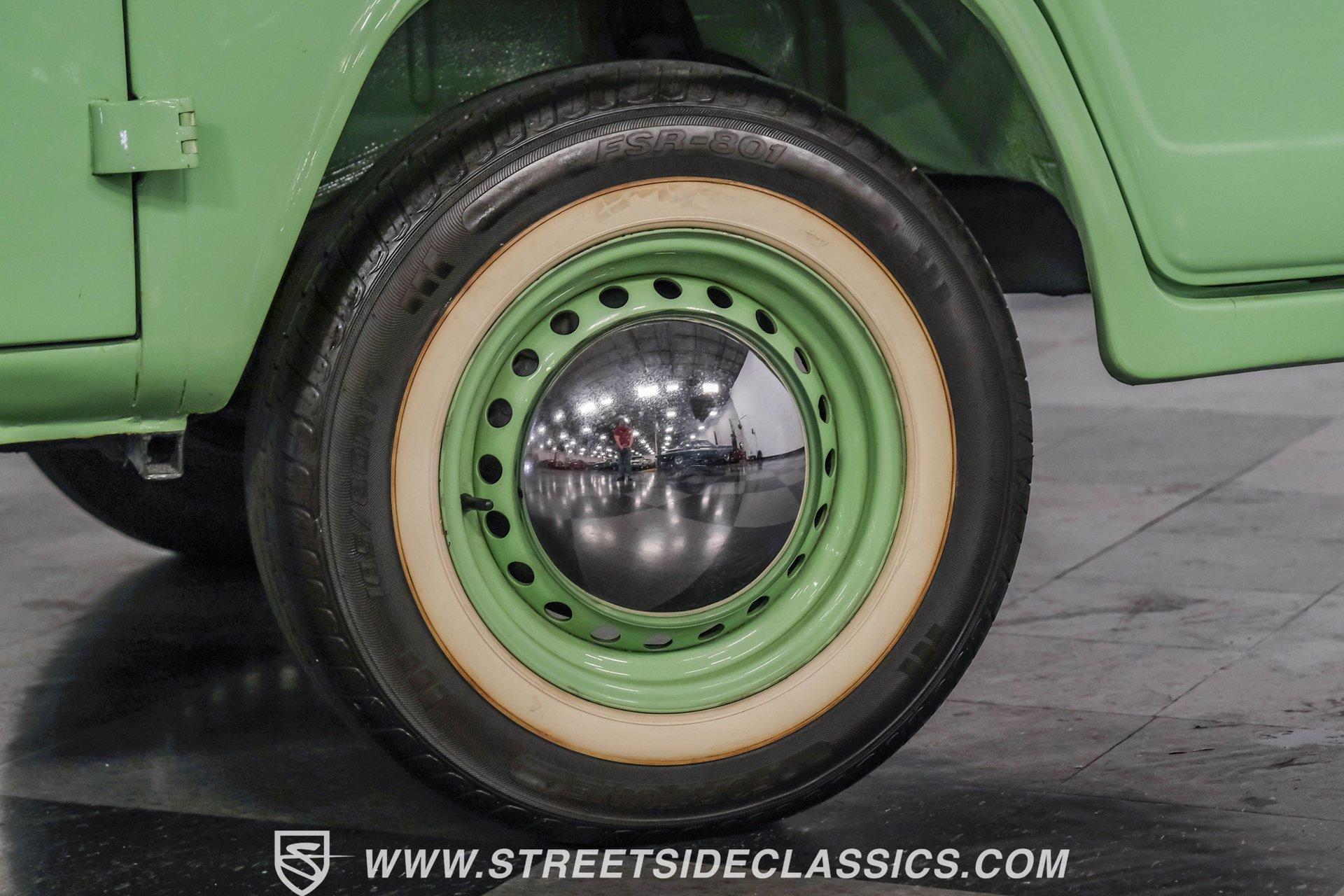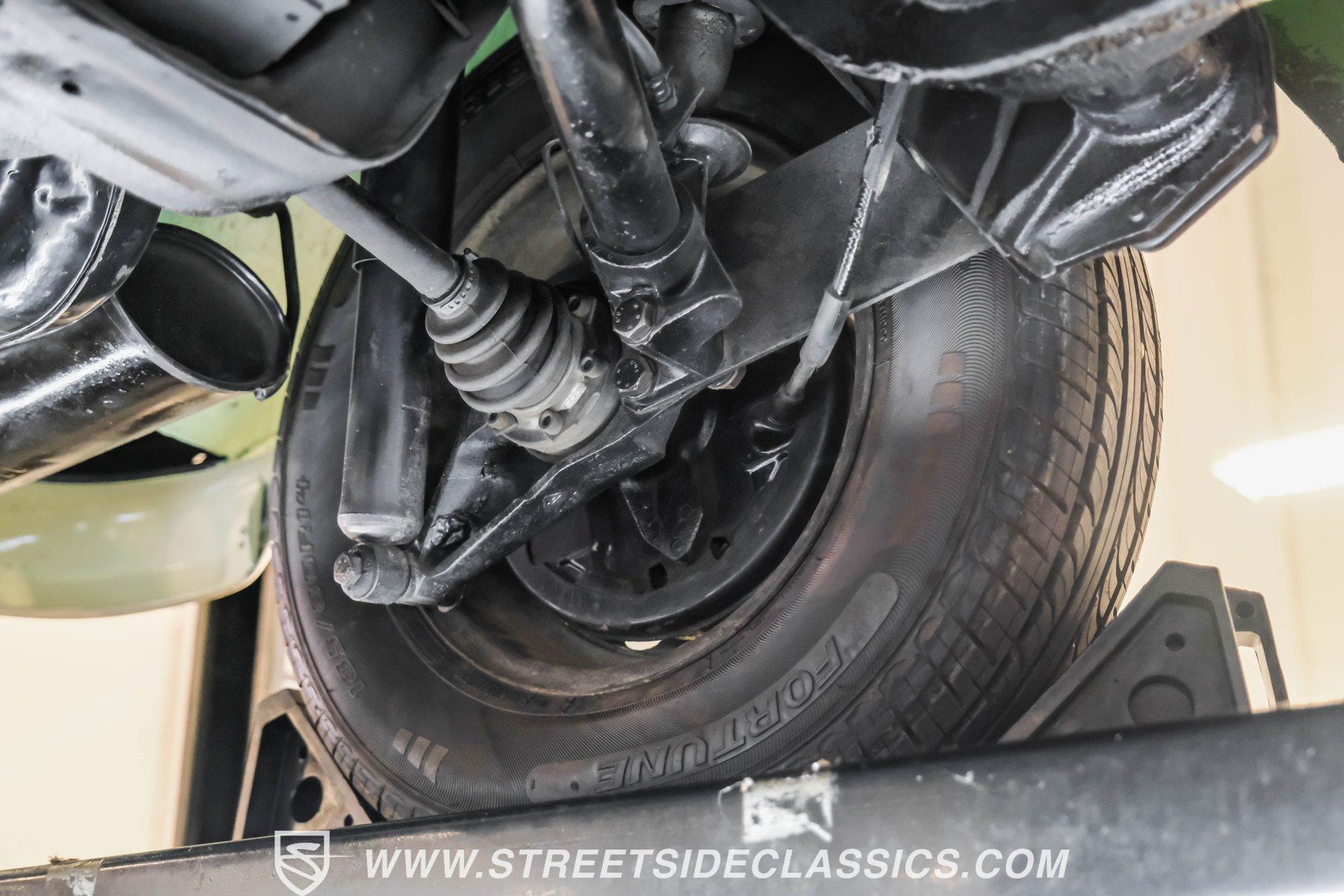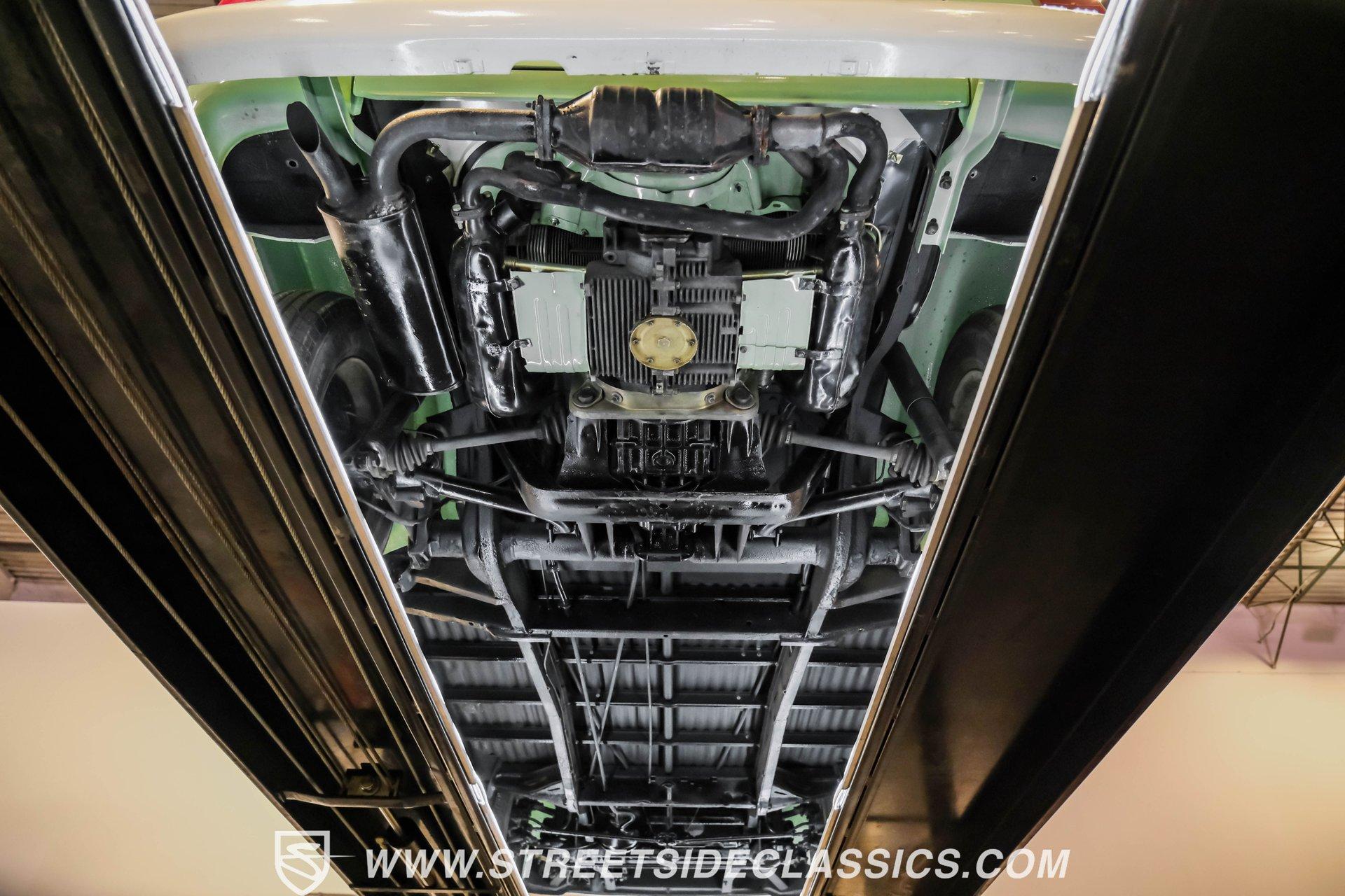 With a look that blends generations, this 1994 Volkswagen Type 2 13 Window Deluxe Bus wears Light Green and Cream paint with that unmistakable South American-market combo-late-model front sheet metal paired with early-style panoramic glass. The roof rack and matching ladder accent the wraparound rear window and rounded bodywork. Rolling on color-keyed 14" steel wheels wrapped in 185/80R14 tires with whitewall trim, this vehicle captures that split-window silhouette with a unique twist. Subtle trim, painted bumpers, and chrome trim round out the retro vibe with just the right attitude. Brown vinyl covers all three bench rows in this well-trimmed interior, built to seat up to nine across split-bench configurations. Matching door panels, a dash pad, and fresh carpet tie it all together while accent drapes ride just inside the side glass. The spare tire cover adds a finished look at the rear. An aftermarket tall floor shifter punctuates the utilitarian cabin with a bit of attitude, and the original-style layout retains its functionality without overcomplication. There's no radio onboard, just the mechanical rhythm of a machine doing what it was built to do. A 1600cc gasoline engine powers this vehicle, backed by a 4-speed manual gearbox. Fuel delivery is handled via a 1-barrel carburetor, and the factory-style exhaust exits through a single muffler. Suspension is fully independent, front and rear, with power disc brakes up front. The drivetrain is built around a transaxle rear layout, keeping the floor flat and weight centered. It's basic, honest, and mechanically sound-everything it needs to be. HIGHLIGHTS 1600cc Gasoline Engine 4-Speed Manual Transaxle Power Front Disc Brakes Factory-Style Exhaust System Light Green & Cream Paint 14" Color-Keyed Steel Wheels 185/80R14 Tires With Whitewall Trim Roof Rack With Ladder 13 Window Brown Interior With Split-Bench Front Seat Reupholstered Seats And Matching Door Panels Dash Pad And Fresh Carpet Brazilian Market Model With its iconic layout, sharp color combo, and a mechanical package that's as honest as it gets, this 1994 Volkswagen Type 2 13 Window Deluxe Bus brings nostalgic design and simple mechanics together in one distinct package. Call today!