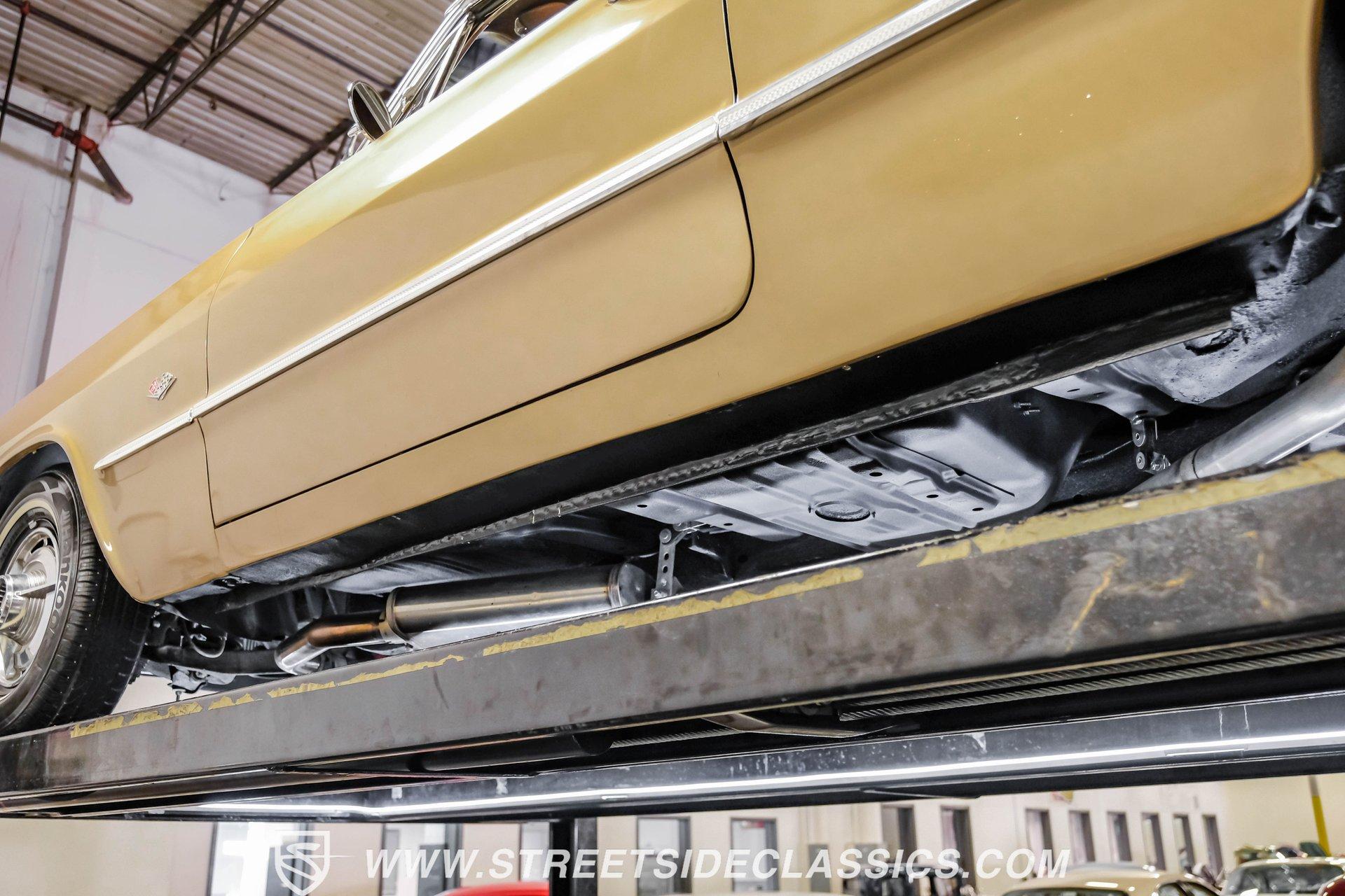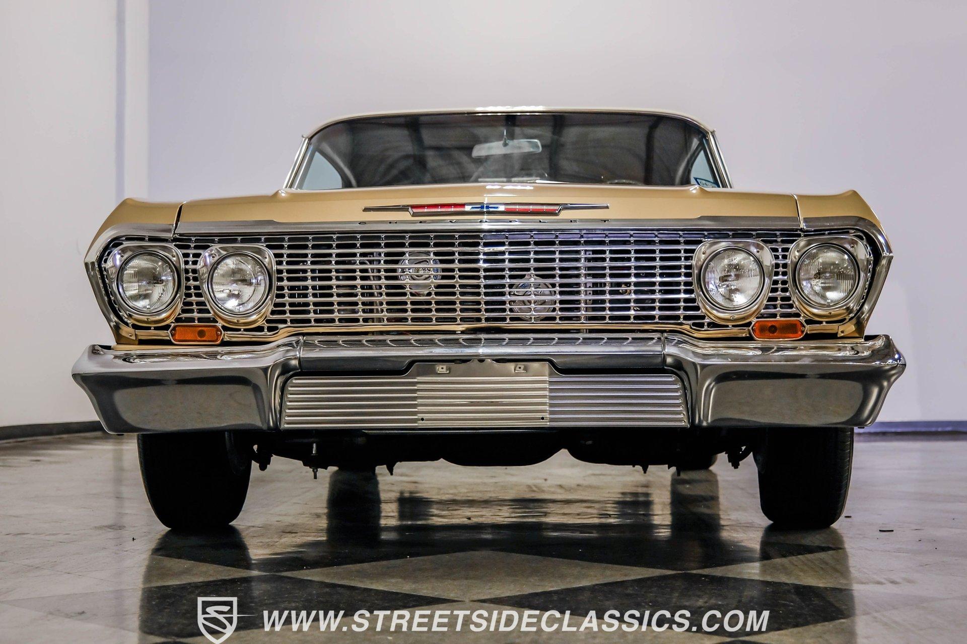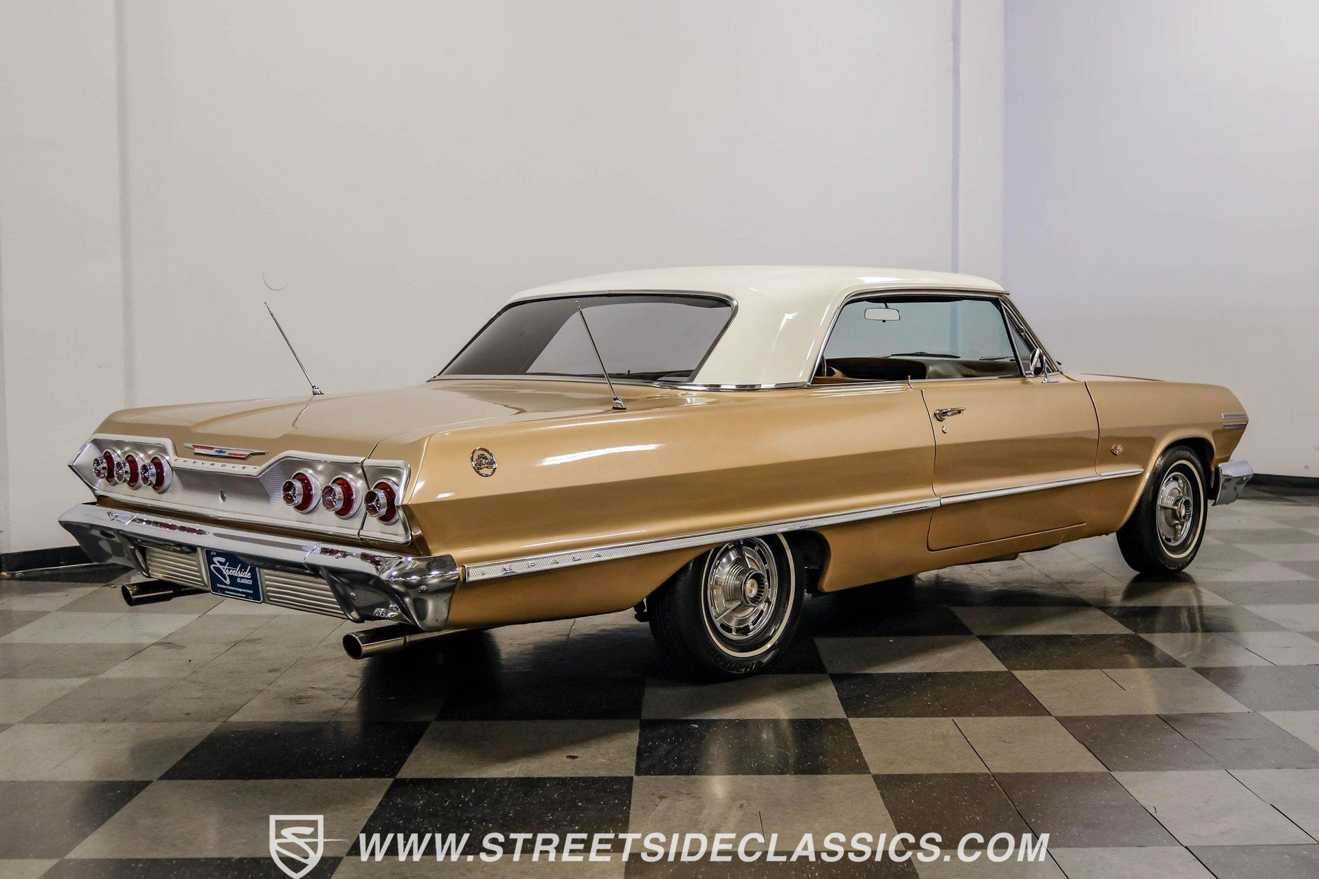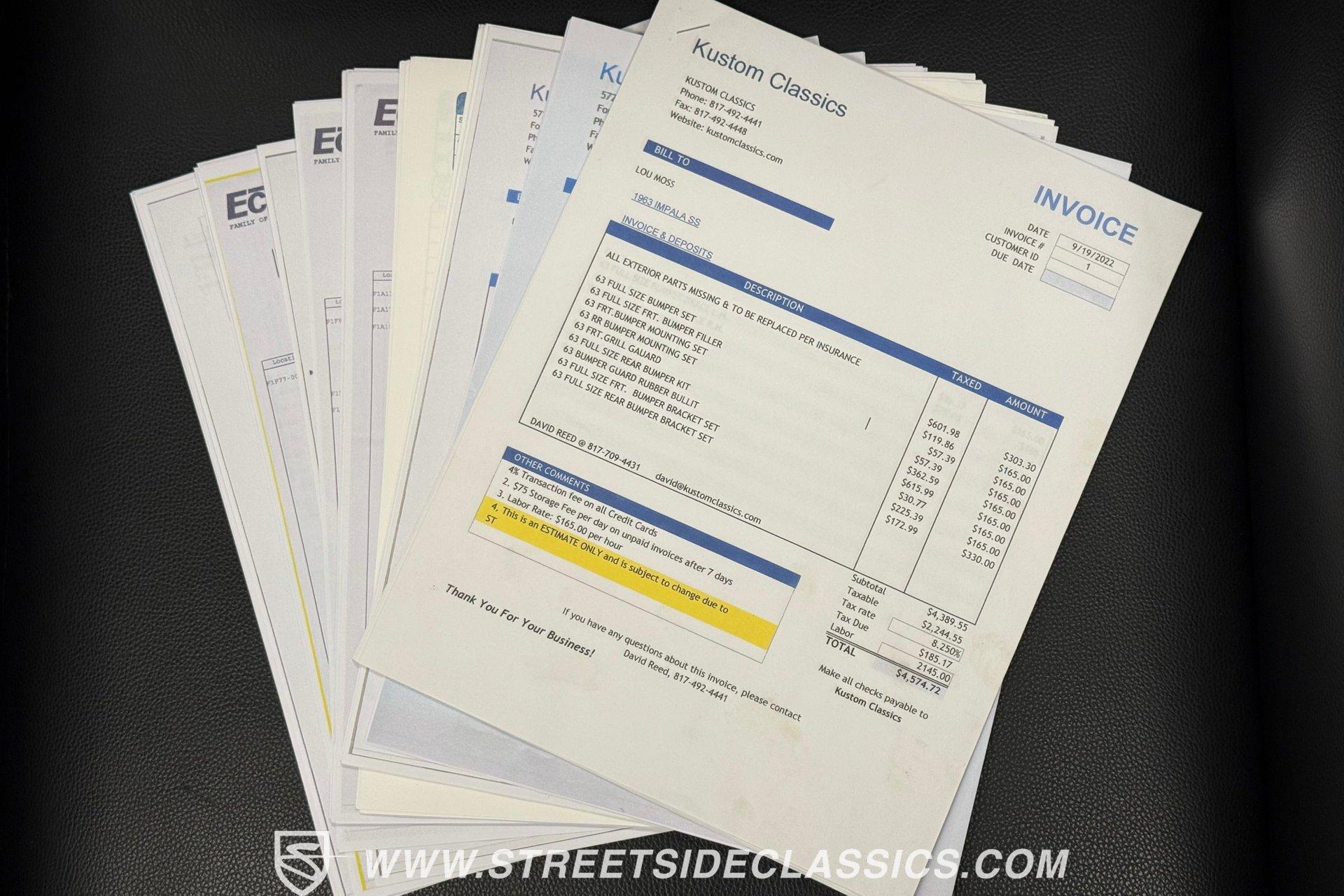 The SS, or "Super Sport," option was available for the first time in Chevrolet's 1961 catalogue. In 1962 it became a separate sub-series within the Impala lineup, in both coupe and convertible body styles. The SS models included special badging and "spinner" wheel covers, side-molding inserts, an engine-turned rear cove molding, and bucket seats with a console-for just $53.80 extra. No wonder so many opted for it. The package also included chassis enhancements and beefed-up springs and shock absorbers. Other features included power steering and brakes, metallic brake linings, a prominent column-mounted tachometer, and thin whitewall tires. This well preserved 1963 Chevrolet Impala SS's exterior is finished beautifully in the factory colors of Saddle Tan with a contrasting Adobe Tan roof which is more of a cream shade. The paint's deep gloss is enhanced by brilliant chrome and brightwork. This classic Chevy presents as originally ordered, with no exterior modifications and with correct SS wheel covers and sporty rear-mounted twin antennas. The original window sticker and dealer invoice are still with the car, showing it was sold new at Roy Smith Chevrolet in Eton, Ohio, on October 13, 1962. The interior features a color coordinating Saddle interior in excellent condition, with correct bucket seats, original clock and AM radio, desirable factory tachometer, console and 4-speed with upgraded Hurst shifter. A welcome upgrade is a modern air conditioning system with air ducts discreetly mounted under the dash. Under the hood is the original matching-numbers 327 V8 paired with a 4-speed manual transmission and power steering. Upgrades include a Brawler 4-barrel carburetor, Edelbrock chrome open-element air cleaner, quality Cool Case aluminum radiator with dual electric fans, black billet hood hinges, and a dual-chamber master cylinder linked to four-wheel disc brakes. A dual exhaust system rumbles back through Magnaflow mufflers and exits with nostalgic chrome exhaust tips. HIGHLIGHTS: Matching-Numbers 327 V8 4-Speed Manual Transmission Upgraded Power 4-Wheel Disc Brakes Original Window Sticker and Dealer Invoice Cool Case Aluminum Radiator Brawler 4-Barrel Carburetor Modern Air Conditioning System Power Steering Magnaflow Mufflers Factory Tachometer Factory Bucket Seats Correct Factory SS Spinner Wheel Covers Factory AM Radio Twin Rear-Mounted Antennas This matching number 327, 4-speed, 1963 Chevrolet Impala SS has been thoughtfully upgraded in just the right places, remaining largely stock in appearance, but much safer and satisfying to drive that it was when new. Call today!