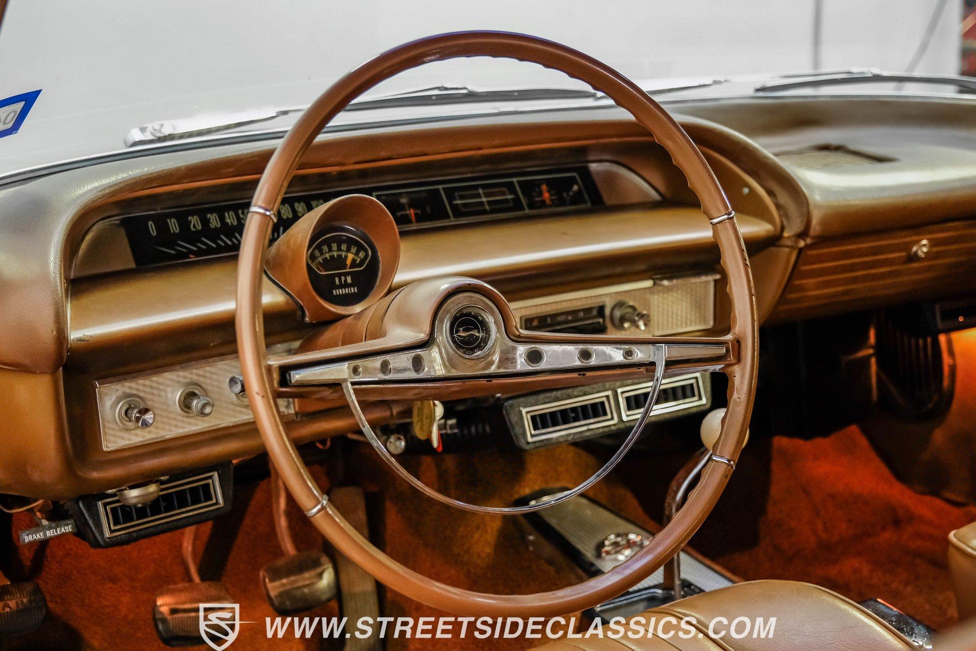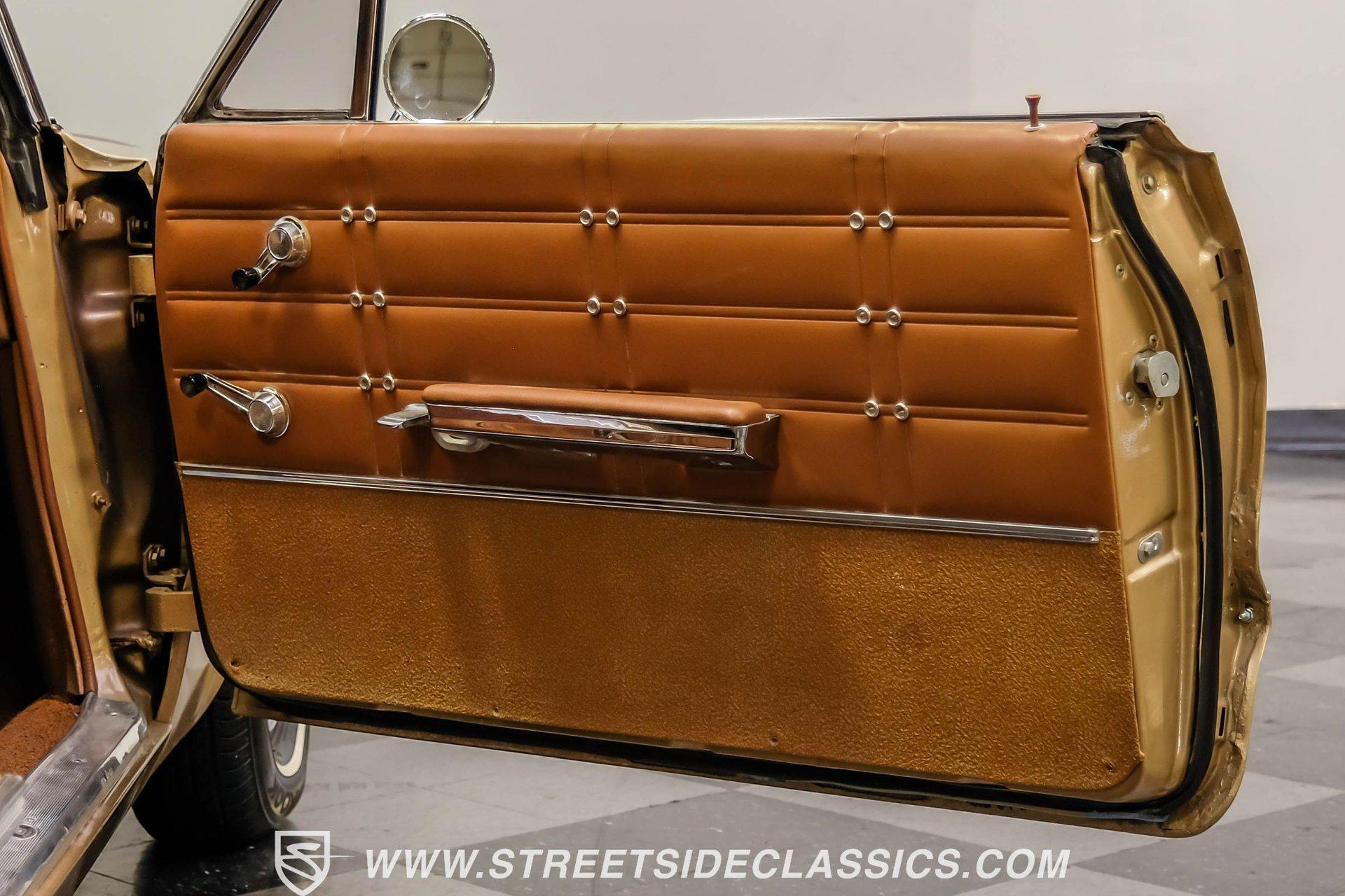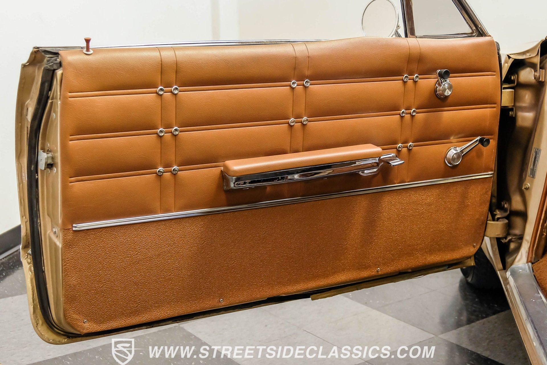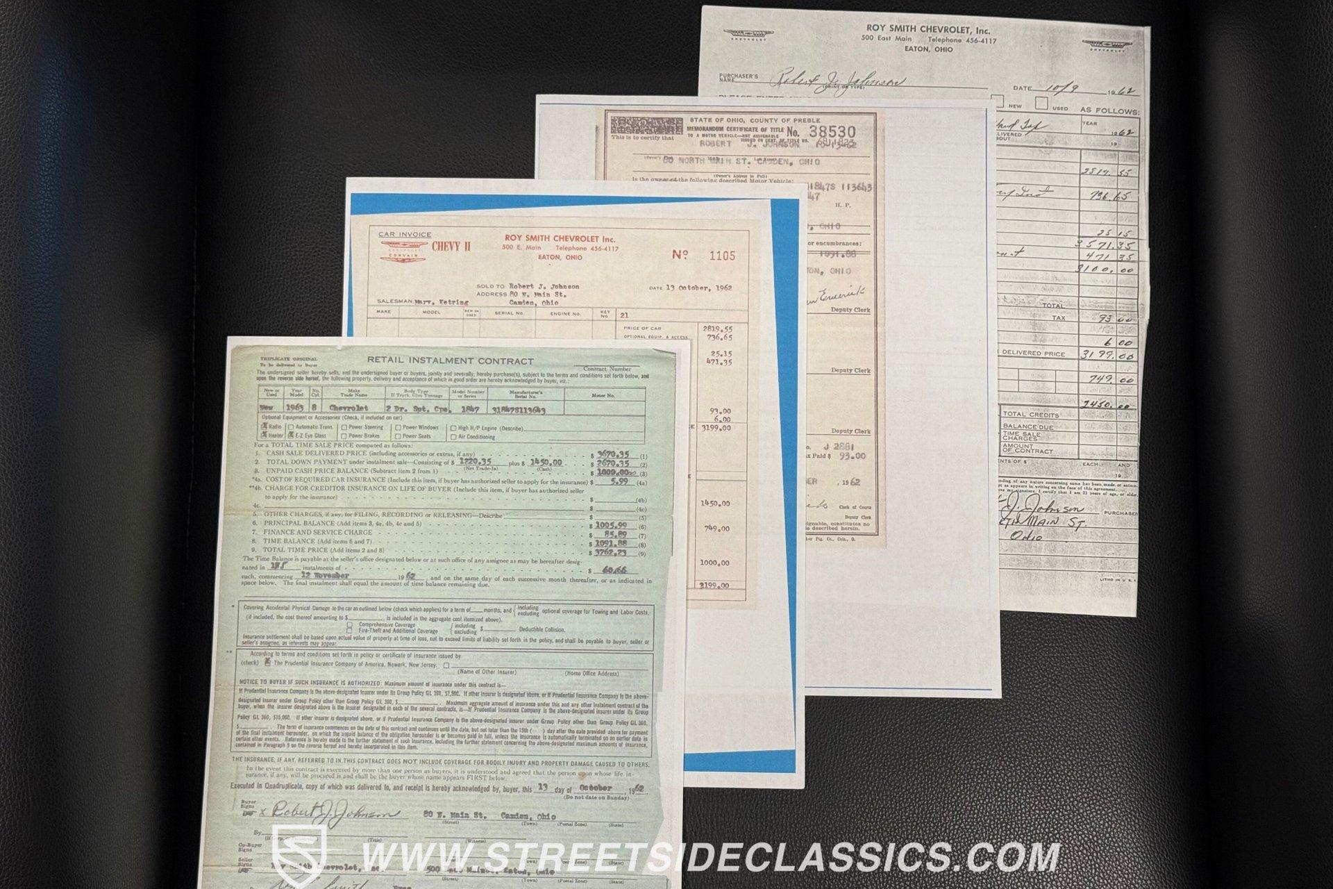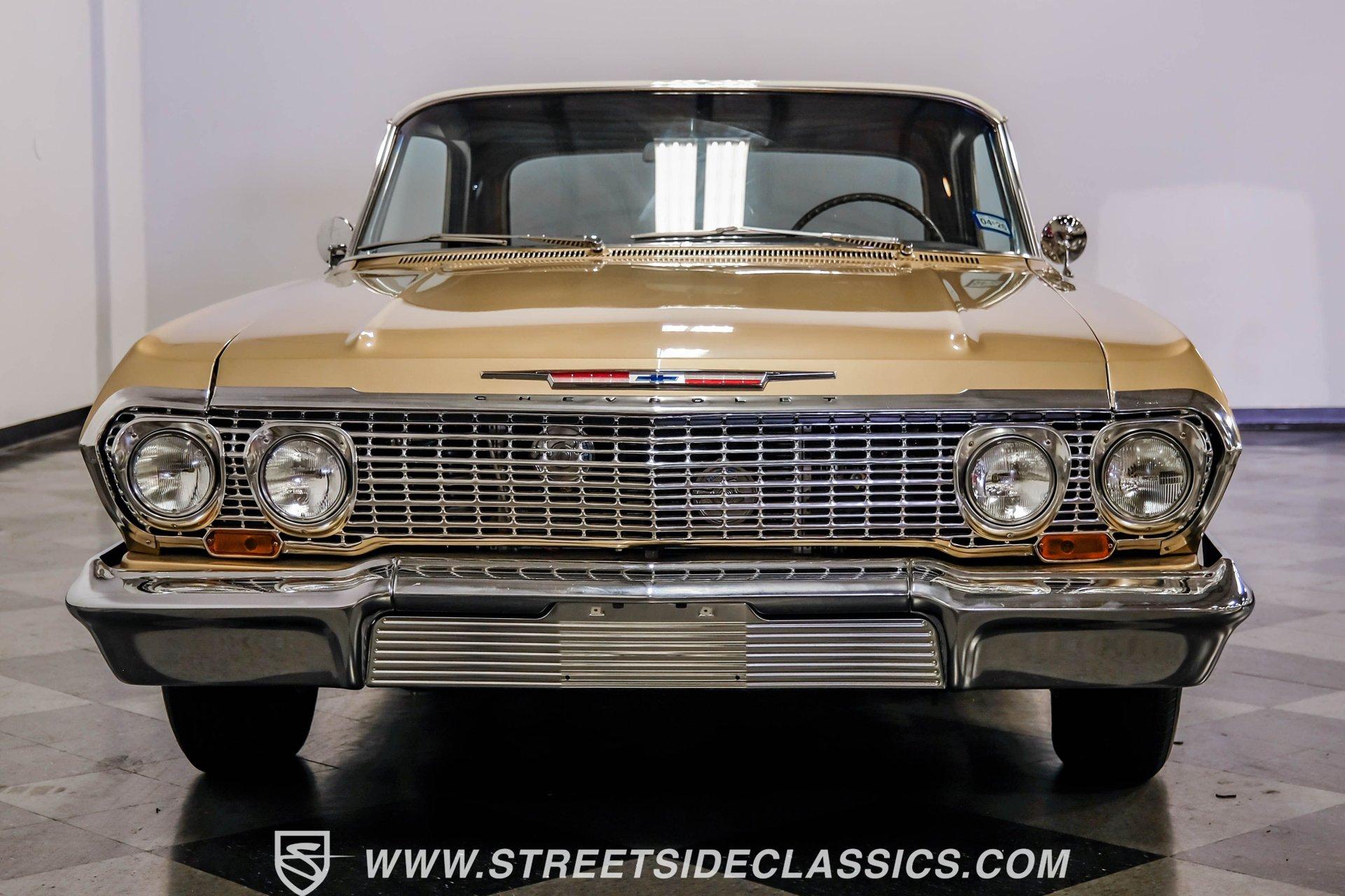 The SS, or "Super Sport," option was available for the first time in Chevrolet's 1961 catalogue. In 1962 it became a separate sub-series within the Impala lineup, in both coupe and convertible body styles. The SS models included special badging and "spinner" wheel covers, side-molding inserts, an engine-turned rear cove molding, and bucket seats with a console-for just $53.80 extra. No wonder so many opted for it. The package also included chassis enhancements and beefed-up springs and shock absorbers. Other features included power steering and brakes, metallic brake linings, a prominent column-mounted tachometer, and thin whitewall tires. This well preserved 1963 Chevrolet Impala SS's exterior is finished beautifully in the factory colors of Saddle Tan with a contrasting Adobe Tan roof which is more of a cream shade. The paint's deep gloss is enhanced by brilliant chrome and brightwork. This classic Chevy presents as originally ordered, with no exterior modifications and with correct SS wheel covers and sporty rear-mounted twin antennas. The original window sticker and dealer invoice are still with the car, showing it was sold new at Roy Smith Chevrolet in Eton, Ohio, on October 13, 1962. The interior features a color coordinating Saddle interior in excellent condition, with correct bucket seats, original clock and AM radio, desirable factory tachometer, console and 4-speed with upgraded Hurst shifter. A welcome upgrade is a modern air conditioning system with air ducts discreetly mounted under the dash. Under the hood is the original matching-numbers 327 V8 paired with a 4-speed manual transmission and power steering. Upgrades include a Brawler 4-barrel carburetor, Edelbrock chrome open-element air cleaner, quality Cool Case aluminum radiator with dual electric fans, black billet hood hinges, and a dual-chamber master cylinder linked to four-wheel disc brakes. A dual exhaust system rumbles back through Magnaflow mufflers and exits with nostalgic chrome exhaust tips. HIGHLIGHTS: Matching-Numbers 327 V8 4-Speed Manual Transmission Upgraded Power 4-Wheel Disc Brakes Original Window Sticker and Dealer Invoice Cool Case Aluminum Radiator Brawler 4-Barrel Carburetor Modern Air Conditioning System Power Steering Magnaflow Mufflers Factory Tachometer Factory Bucket Seats Correct Factory SS Spinner Wheel Covers Factory AM Radio Twin Rear-Mounted Antennas This matching number 327, 4-speed, 1963 Chevrolet Impala SS has been thoughtfully upgraded in just the right places, remaining largely stock in appearance, but much safer and satisfying to drive that it was when new. Call today!