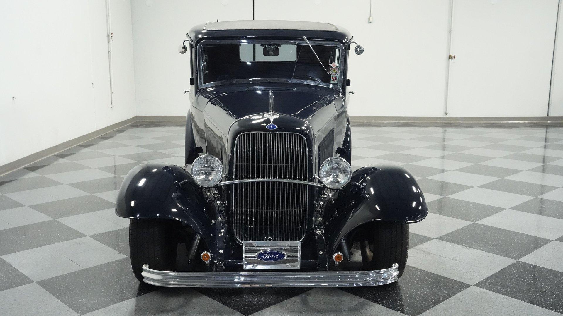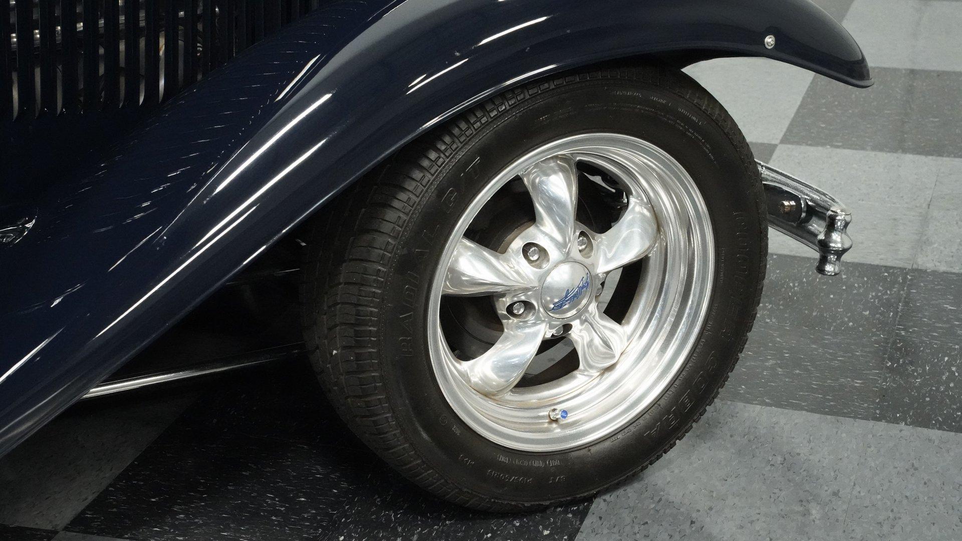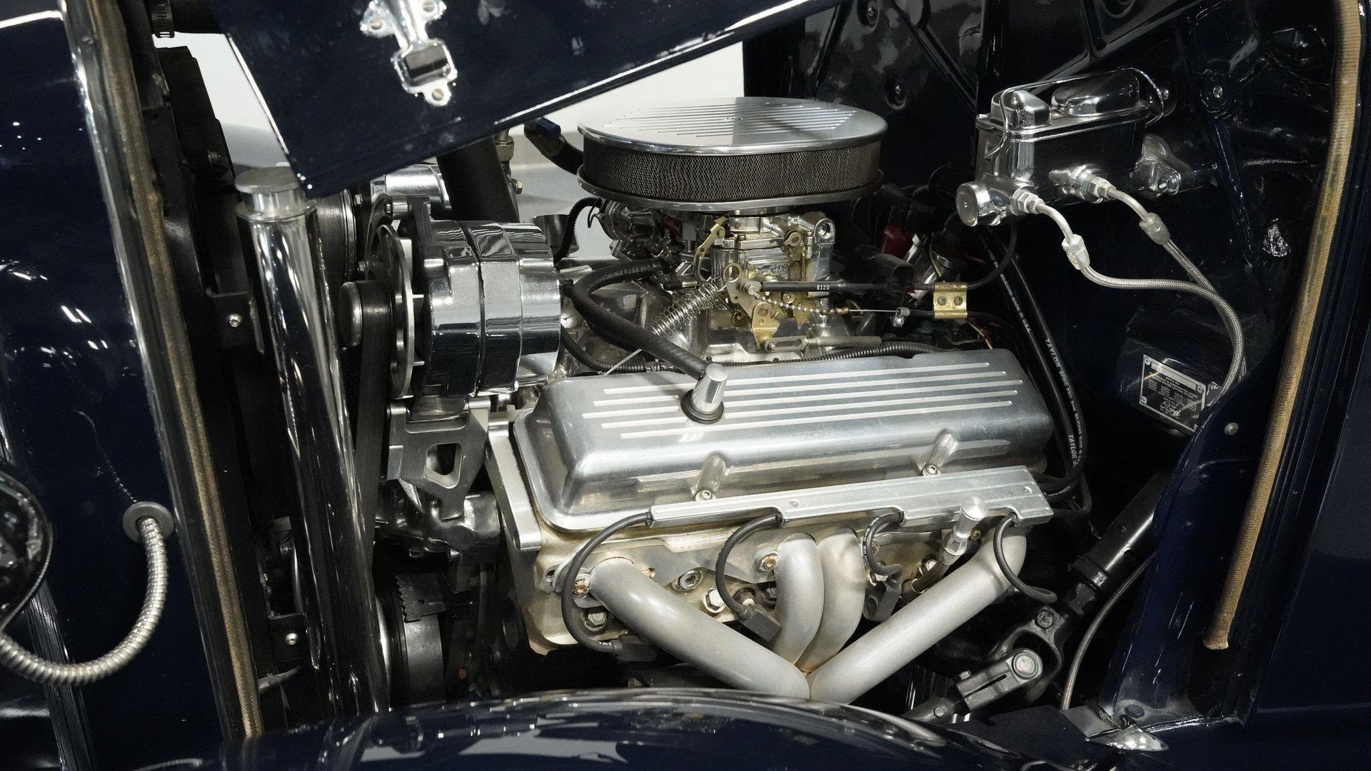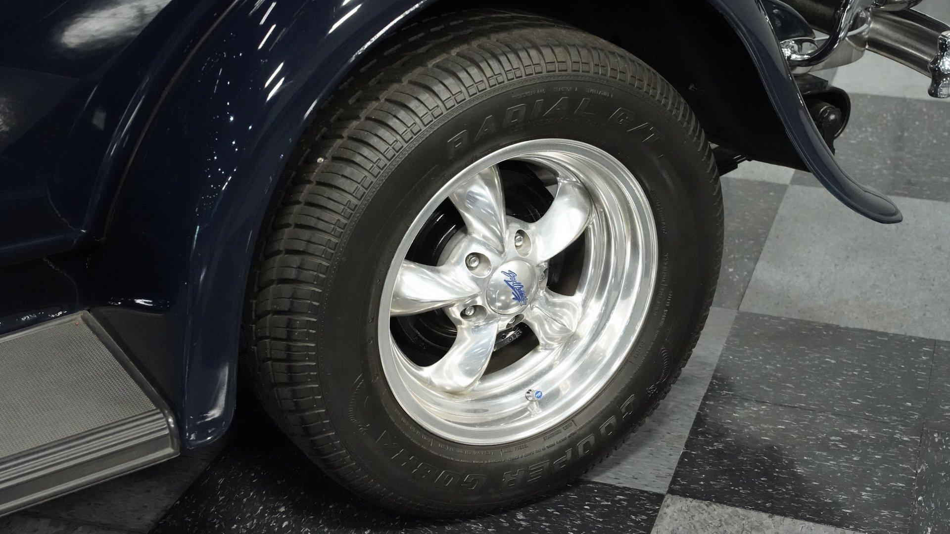 Finished beautifully in a Dark Blue with a mirror gloss shine, this handsome, steel bodied 1932 Ford Tudor Street Rod is a cool street rod full of quality upgrades. Features include a steel body with fiberglass fenders and running boards, hand-painted pinstripes and a classy rear-mounted spare tire with cover. A set of 15-inch polished Boyd Coddington wheels wrapped with Cooper Cobra Radial G/T tires staggered 195/60R15 front and 235/60R15 rear give this classic Ford just the right street rod stance. The well-appointed blue cloth interior is fitted with comfortable bucket seats, custom door panels, seatbelts front and rear, a cold Vintage air conditioning system, power windows, cruise control, tilt steering column, custom steering wheel, and a full set of white-faced VDO gauges housed in an attractive billet aluminum housing mounted in the center of the dash. A cool roof console houses a retro Cobra 25LTD Classic CB radio and an Alpine AM/FM/CD/Bluetooth radio linked to amplifiers and a subwoofer located behind the rear seat providing entertainment when cruising. Under the hood is a healthy 350 cubic inch Chevy engine mated to a TH350 3-speed automatic transmission that sends power back to a 10-bolt rear end. Other mechanical highlights include aluminum heads, "Mutha' Thumpr" COMP cam, polished Edelbrock intake manifold, Edelbrock carburetor, aluminum valve covers, serpentine belt system, triangulated four-link front suspension rods, front disc brakes, HAL QA1 Aluma Matic coil-over shocks front and rear, and Sanderson headers that rumble back through a dual exhaust system with gas pack-style mufflers. HIGHLIGHTS: Steel Body Fiberglass Fenders and Running Boards 350 Chevrolet Engine TH350 Automatic Transmission Front Disc Brakes Aluminum Heads Edelbrock Carburetor Polished Edelbrock Intake Manifold Sanderson Headers Serpentine Belt System QA1 Aluma Matic Shocks Air Conditioning Power Windows Tilt Steering Column VDO Gauges Bucket Seats Front and Rear Seat Belts Boyd Coddington Wheels Alpine Stereo with Amps and Subwoofer Cobra CB Radio This is a high-quality build that is comfortable and fun to drive anywhere. This great looking 1932 Ford Tudor Street Rod will turn heads at your local cruise night or cars and coffee event, but is also a comfortable touring machine as well. Call today!