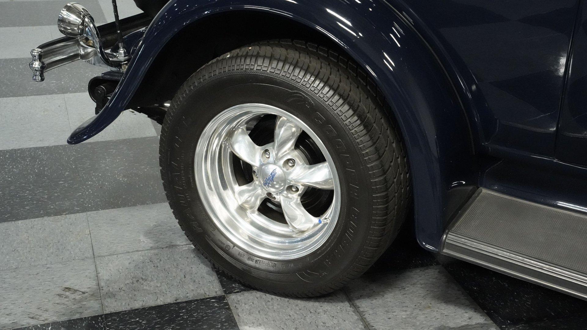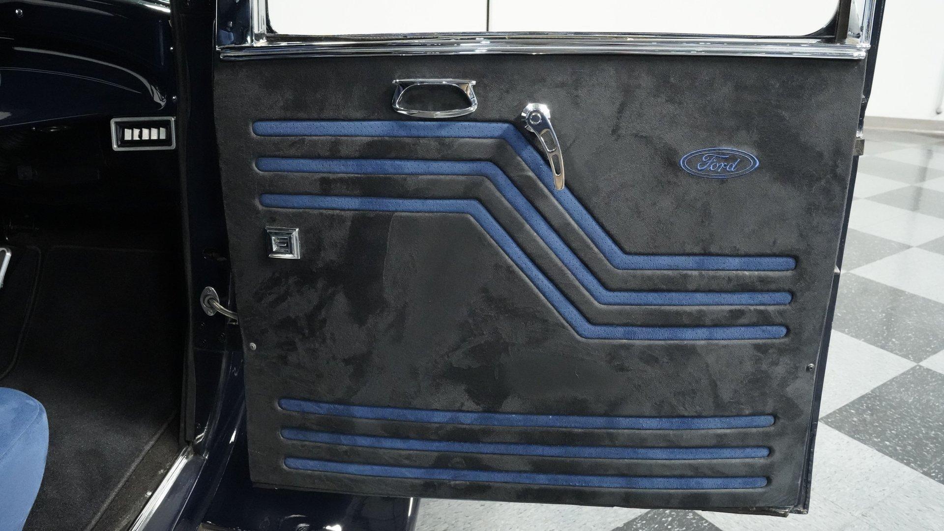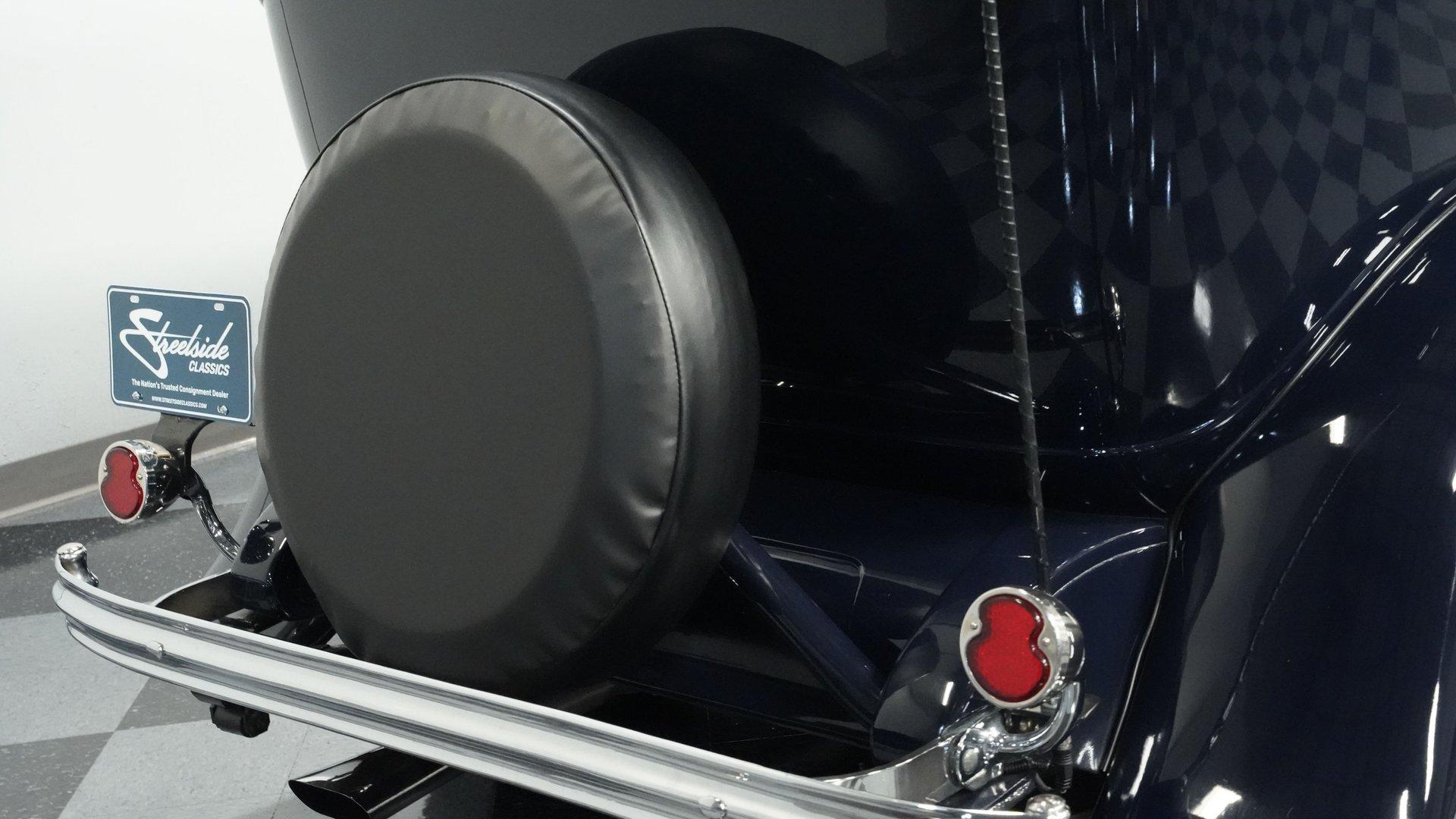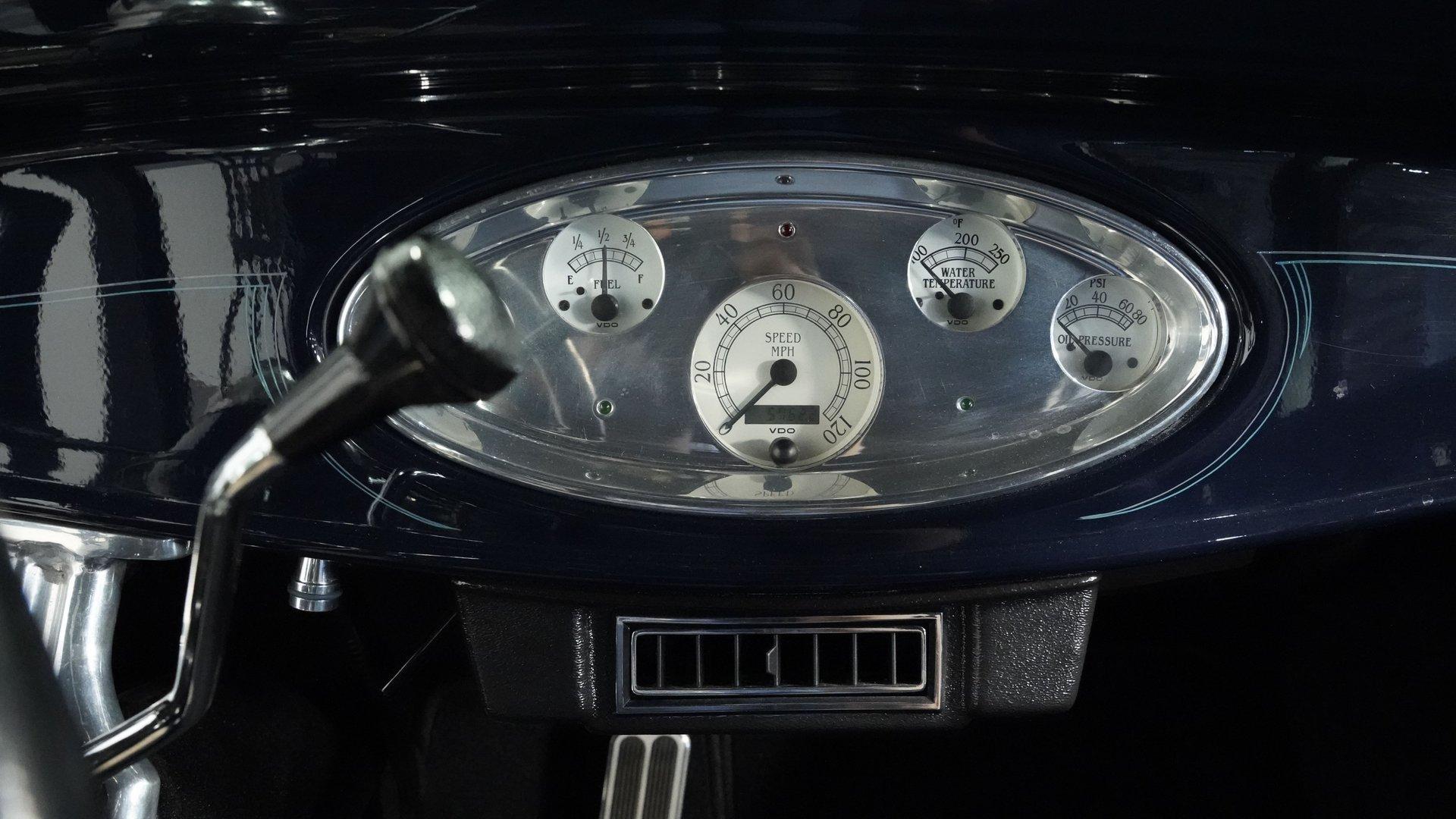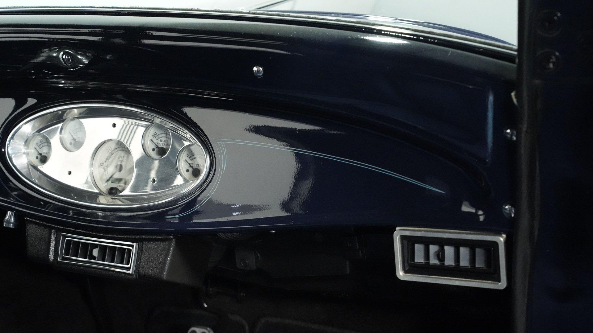 Finished beautifully in a Dark Blue with a mirror gloss shine, this handsome, steel bodied 1932 Ford Tudor Street Rod is a cool street rod full of quality upgrades. Features include a steel body with fiberglass fenders and running boards, hand-painted pinstripes and a classy rear-mounted spare tire with cover. A set of 15-inch polished Boyd Coddington wheels wrapped with Cooper Cobra Radial G/T tires staggered 195/60R15 front and 235/60R15 rear give this classic Ford just the right street rod stance. The well-appointed blue cloth interior is fitted with comfortable bucket seats, custom door panels, seatbelts front and rear, a cold Vintage air conditioning system, power windows, cruise control, tilt steering column, custom steering wheel, and a full set of white-faced VDO gauges housed in an attractive billet aluminum housing mounted in the center of the dash. A cool roof console houses a retro Cobra 25LTD Classic CB radio and an Alpine AM/FM/CD/Bluetooth radio linked to amplifiers and a subwoofer located behind the rear seat providing entertainment when cruising. Under the hood is a healthy 350 cubic inch Chevy engine mated to a TH350 3-speed automatic transmission that sends power back to a 10-bolt rear end. Other mechanical highlights include aluminum heads, "Mutha' Thumpr" COMP cam, polished Edelbrock intake manifold, Edelbrock carburetor, aluminum valve covers, serpentine belt system, triangulated four-link front suspension rods, front disc brakes, HAL QA1 Aluma Matic coil-over shocks front and rear, and Sanderson headers that rumble back through a dual exhaust system with gas pack-style mufflers. HIGHLIGHTS: Steel Body Fiberglass Fenders and Running Boards 350 Chevrolet Engine TH350 Automatic Transmission Front Disc Brakes Aluminum Heads Edelbrock Carburetor Polished Edelbrock Intake Manifold Sanderson Headers Serpentine Belt System QA1 Aluma Matic Shocks Air Conditioning Power Windows Tilt Steering Column VDO Gauges Bucket Seats Front and Rear Seat Belts Boyd Coddington Wheels Alpine Stereo with Amps and Subwoofer Cobra CB Radio This is a high-quality build that is comfortable and fun to drive anywhere. This great looking 1932 Ford Tudor Street Rod will turn heads at your local cruise night or cars and coffee event, but is also a comfortable touring machine as well. Call today!