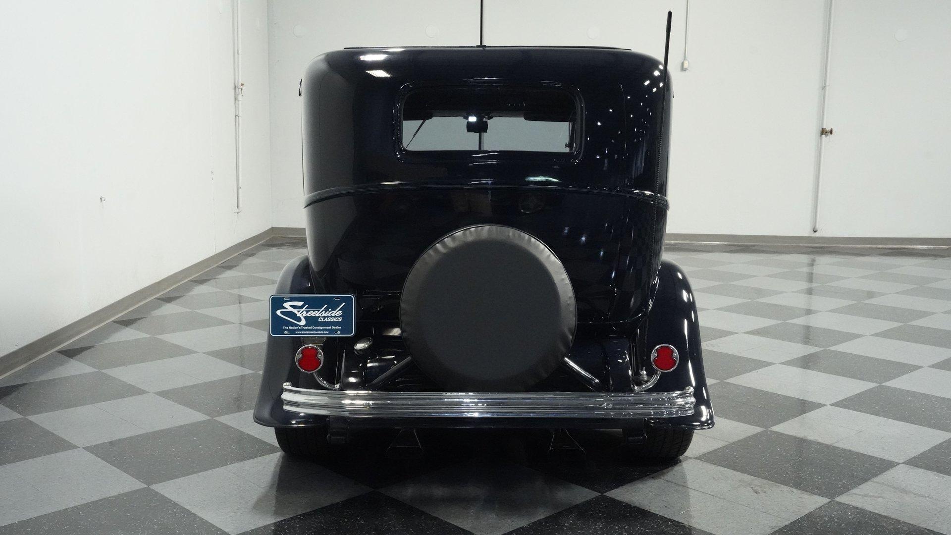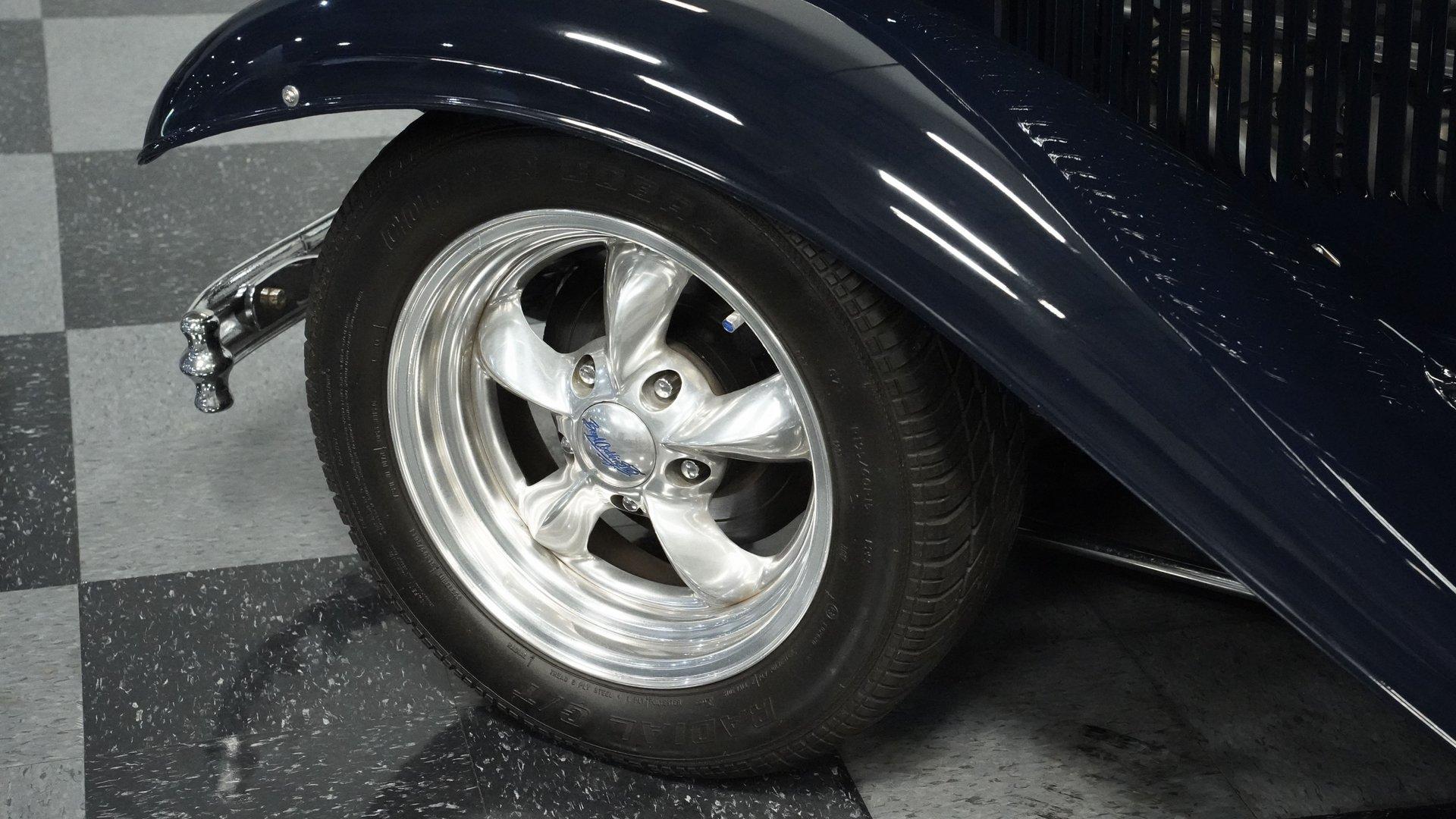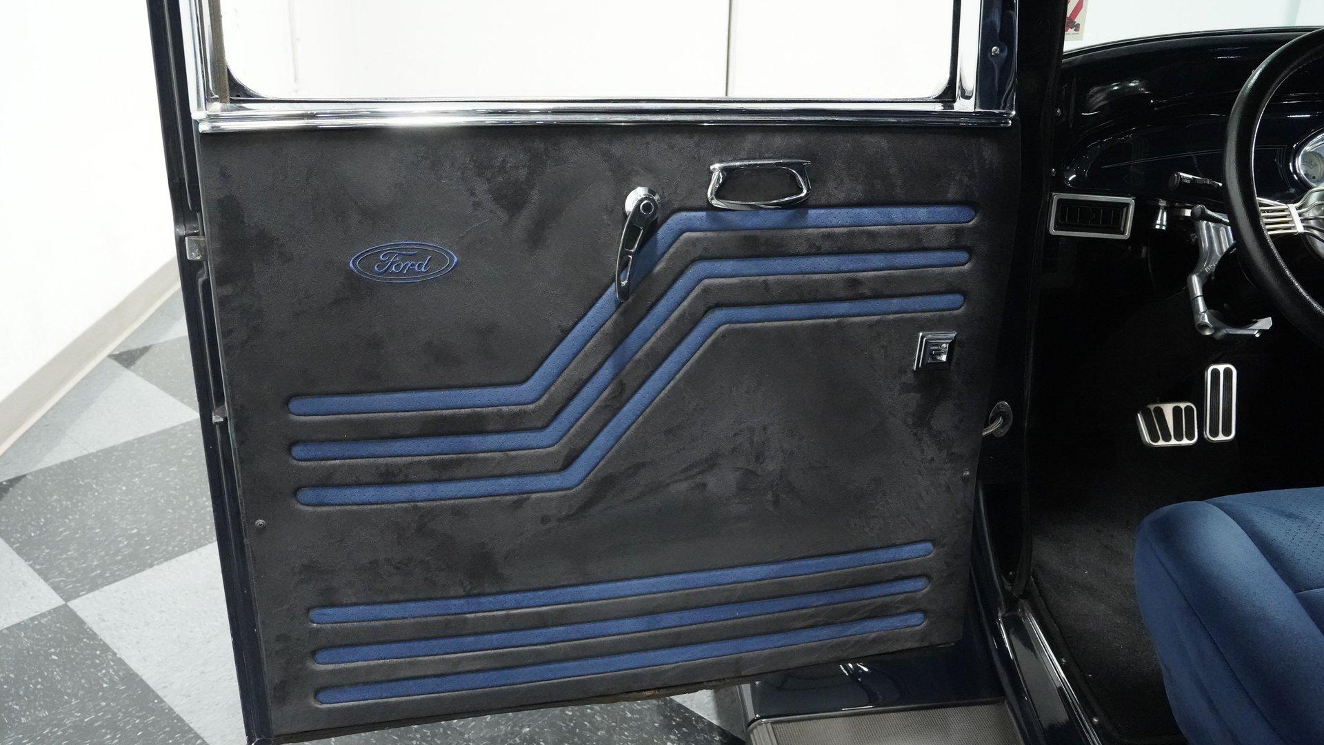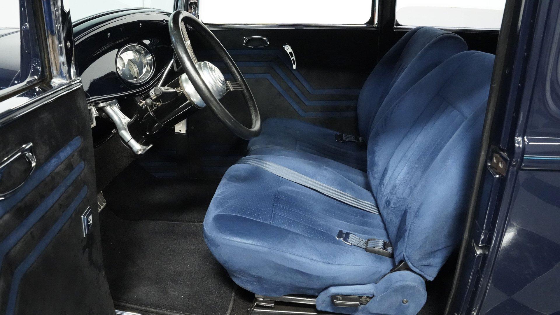 Finished beautifully in a Dark Blue with a mirror gloss shine, this handsome, steel bodied 1932 Ford Tudor Street Rod is a cool street rod full of quality upgrades. Features include a steel body with fiberglass fenders and running boards, hand-painted pinstripes and a classy rear-mounted spare tire with cover. A set of 15-inch polished Boyd Coddington wheels wrapped with Cooper Cobra Radial G/T tires staggered 195/60R15 front and 235/60R15 rear give this classic Ford just the right street rod stance. The well-appointed blue cloth interior is fitted with comfortable bucket seats, custom door panels, seatbelts front and rear, a cold Vintage air conditioning system, power windows, cruise control, tilt steering column, custom steering wheel, and a full set of white-faced VDO gauges housed in an attractive billet aluminum housing mounted in the center of the dash. A cool roof console houses a retro Cobra 25LTD Classic CB radio and an Alpine AM/FM/CD/Bluetooth radio linked to amplifiers and a subwoofer located behind the rear seat providing entertainment when cruising. Under the hood is a healthy 350 cubic inch Chevy engine mated to a TH350 3-speed automatic transmission that sends power back to a 10-bolt rear end. Other mechanical highlights include aluminum heads, "Mutha' Thumpr" COMP cam, polished Edelbrock intake manifold, Edelbrock carburetor, aluminum valve covers, serpentine belt system, triangulated four-link front suspension rods, front disc brakes, HAL QA1 Aluma Matic coil-over shocks front and rear, and Sanderson headers that rumble back through a dual exhaust system with gas pack-style mufflers. HIGHLIGHTS: Steel Body Fiberglass Fenders and Running Boards 350 Chevrolet Engine TH350 Automatic Transmission Front Disc Brakes Aluminum Heads Edelbrock Carburetor Polished Edelbrock Intake Manifold Sanderson Headers Serpentine Belt System QA1 Aluma Matic Shocks Air Conditioning Power Windows Tilt Steering Column VDO Gauges Bucket Seats Front and Rear Seat Belts Boyd Coddington Wheels Alpine Stereo with Amps and Subwoofer Cobra CB Radio This is a high-quality build that is comfortable and fun to drive anywhere. This great looking 1932 Ford Tudor Street Rod will turn heads at your local cruise night or cars and coffee event, but is also a comfortable touring machine as well. Call today!