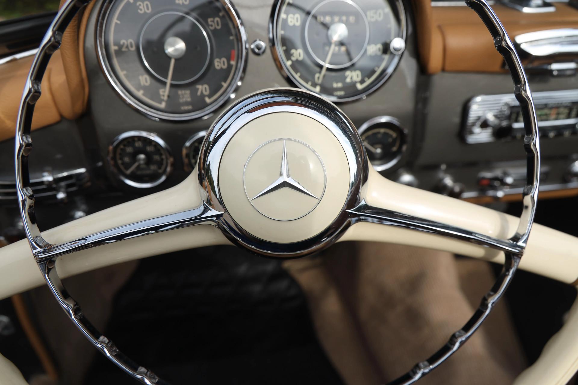 The car was fully restored and rebuilt in Germany, with great attention to detail and preservation of its original specifications. It is a “matching numbers” example, confirmed by the original Lieferschein-Datakart. As an early-series car, this 190 SL is also fitted with the desirable 300 SL seats, further enhancing its exclusivity.