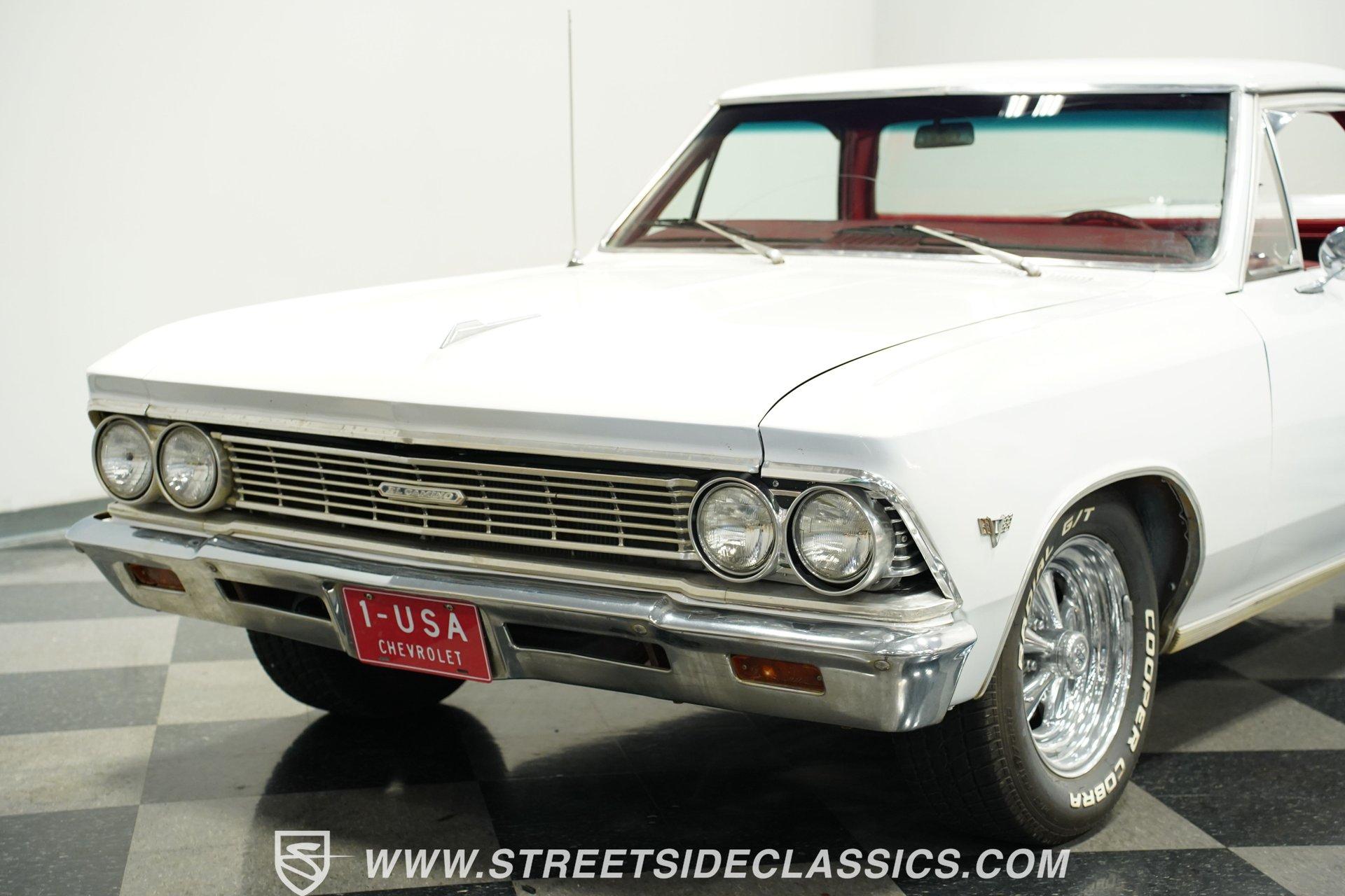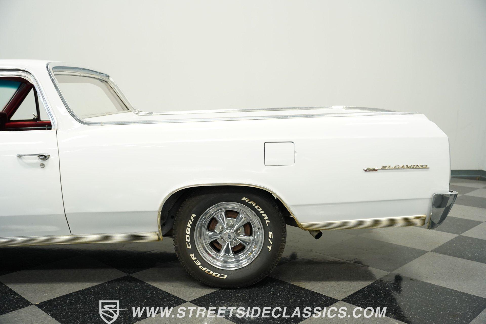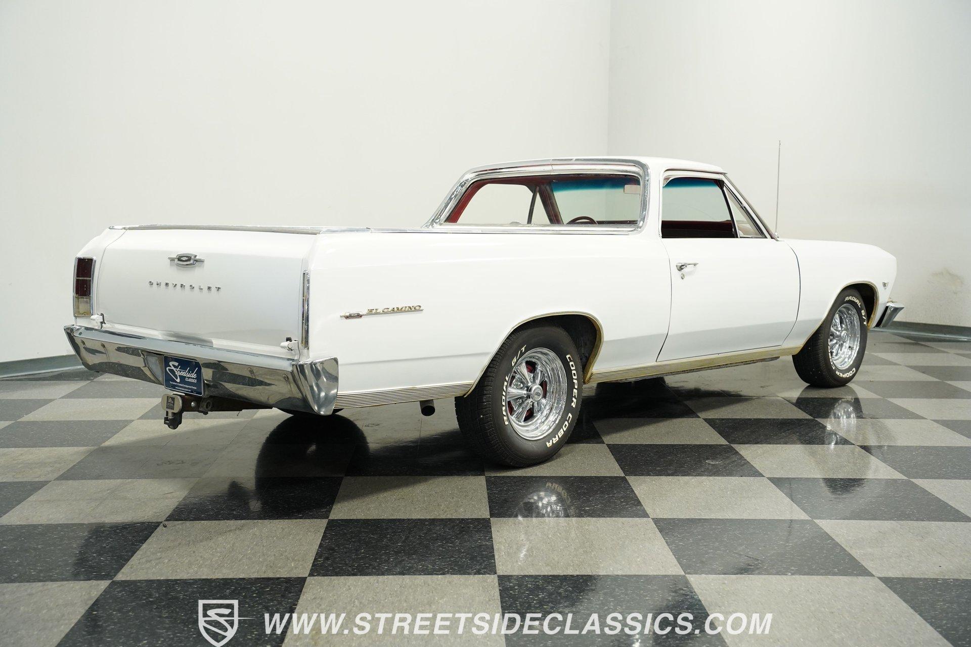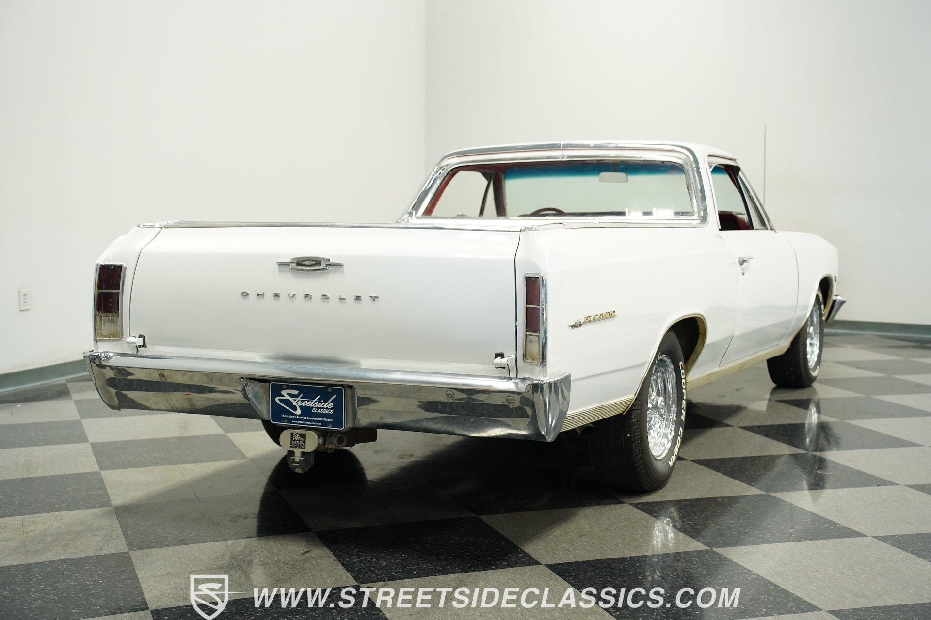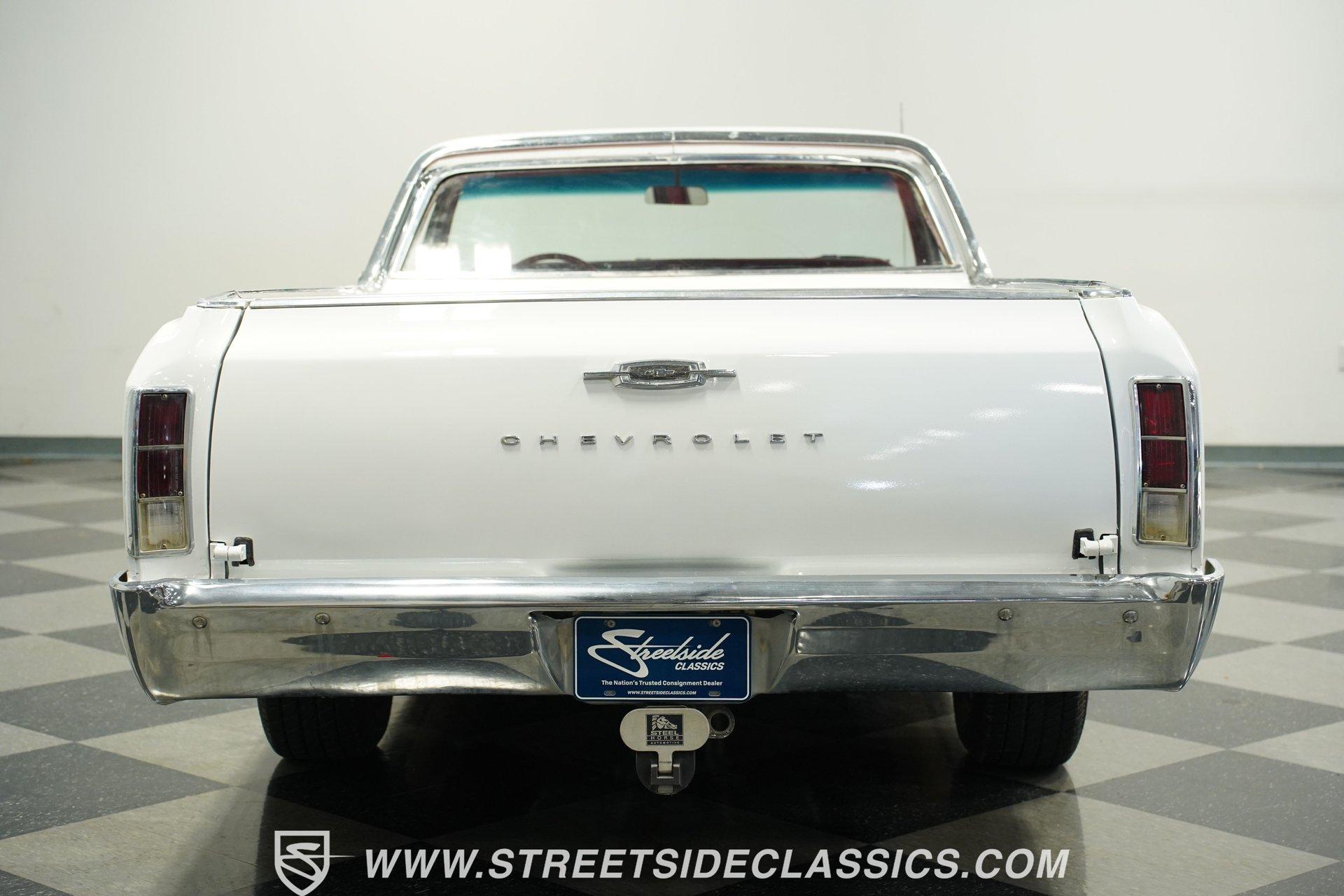 Sleek lines and classic proportions make the 1966 Chevrolet El Camino instantly recognizable in its crisp Ermine White finish. The long body creates an unmistakable profile that has maintained its appeal for decades. Chrome trim accents the front grille and surrounds the windows, providing perfect contrast against the white paint. The 15" Cragar wheels fill out the wheel wells with P215/70R15 front and P225/70R15 rear tires mounted for proper stance. Dual exhaust exits complete the rear view with a performance-minded aesthetic. Red vinyl covers the interior surfaces, creating a bold contrast against the white exterior. A comfortable bench seat provides ample room for driver and passenger while the straightforward dashboard houses essential gauges and controls. The column-mounted shifter controls the Powerglide transmission and an AM radio sits ready to provide road trip entertainment. A recently installed headliner tops off the cabin, giving a fresh look to the upper surfaces while maintaining the factory-correct appearance throughout. Muscle comes from a 283 cubic inch V8 engine connected to a 2-speed Powerglide automatic transmission. The mechanical package includes power steering, coil spring suspension at all four corners, and helper springs added to the rear. An aluminum radiator keeps operating temperatures in check during summer cruising. The dual exhaust system adds a proper V8 soundtrack when accelerating, and the 10-bolt rear axle puts power to the pavement with appropriate strength for the drivetrain. HIGHLIGHTS: 283 V8 Engine 2-Speed Powerglide Automatic Transmission Power Steering Dual Exhaust Coil Spring Suspension With Shocks Helper Springs For Rear Suspension Aluminum Radiator 10-Bolt Rear Axle Ermine White Paint 15" Cragar Wheels P215/70R15 Front, P225/70R15 Rear Tires Chrome Trim Red Interior With Bench Seat New Headliner AM Radio Column Shifter From weekend cruises to daily driving, the 1966 Chevrolet El Camino offers an experience that remains uniquely American. The combination of V8 power, automatic transmission, and classic styling makes for an excellent addition to any garage. Call today!