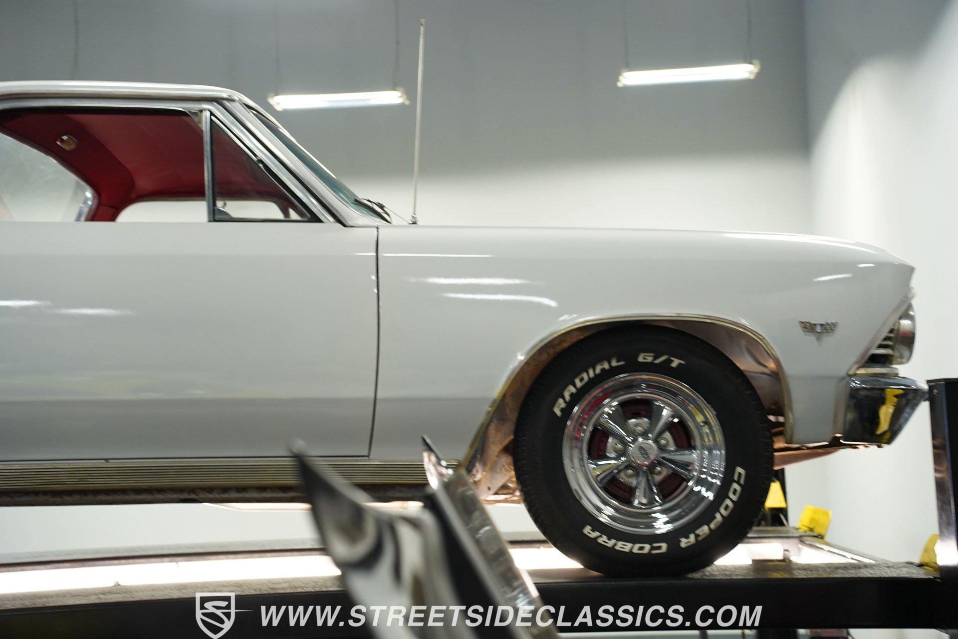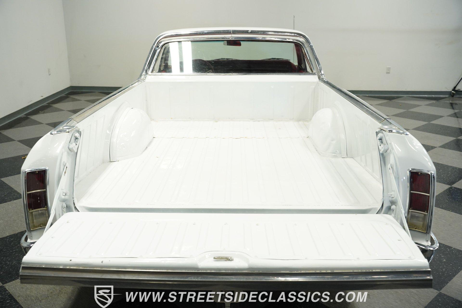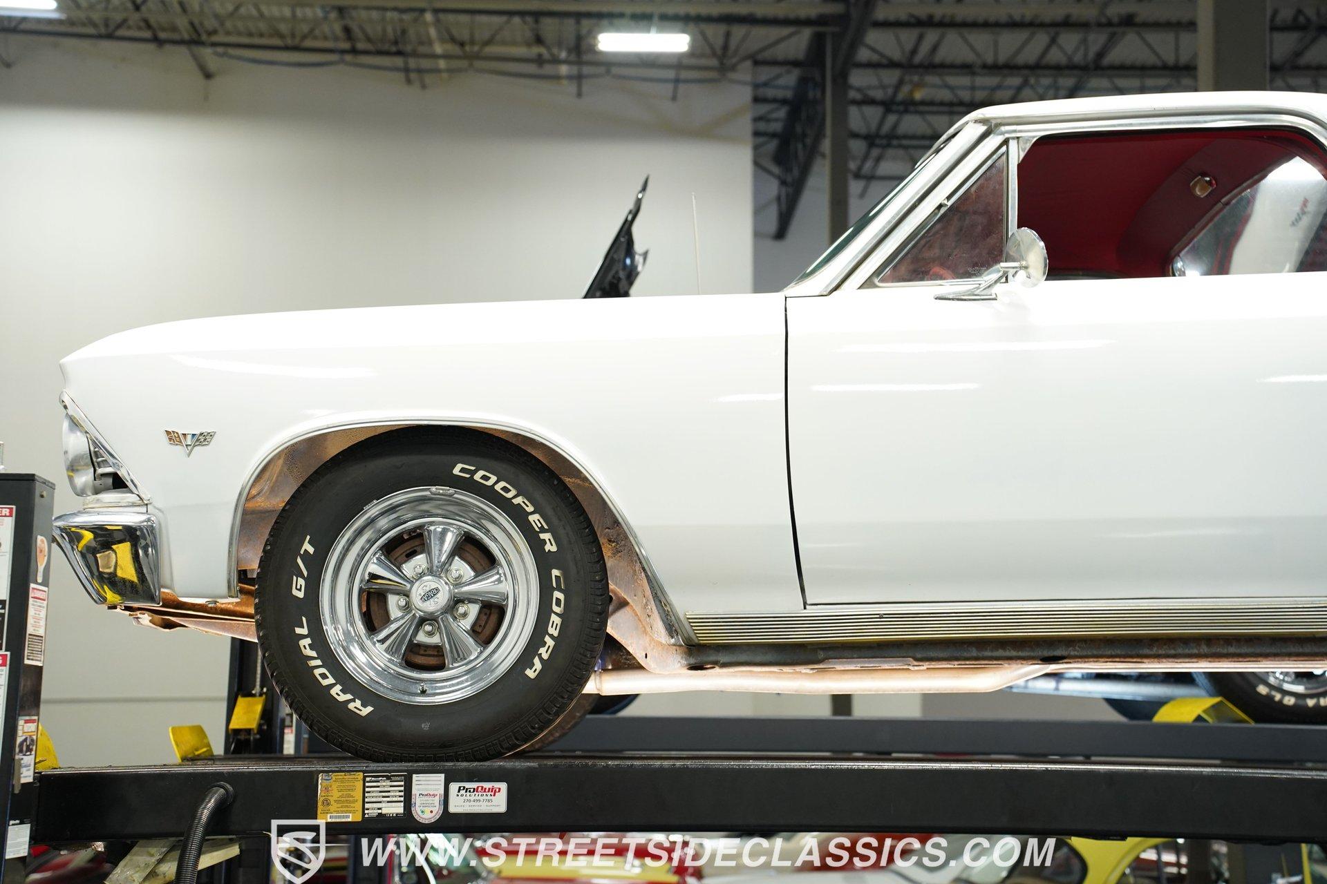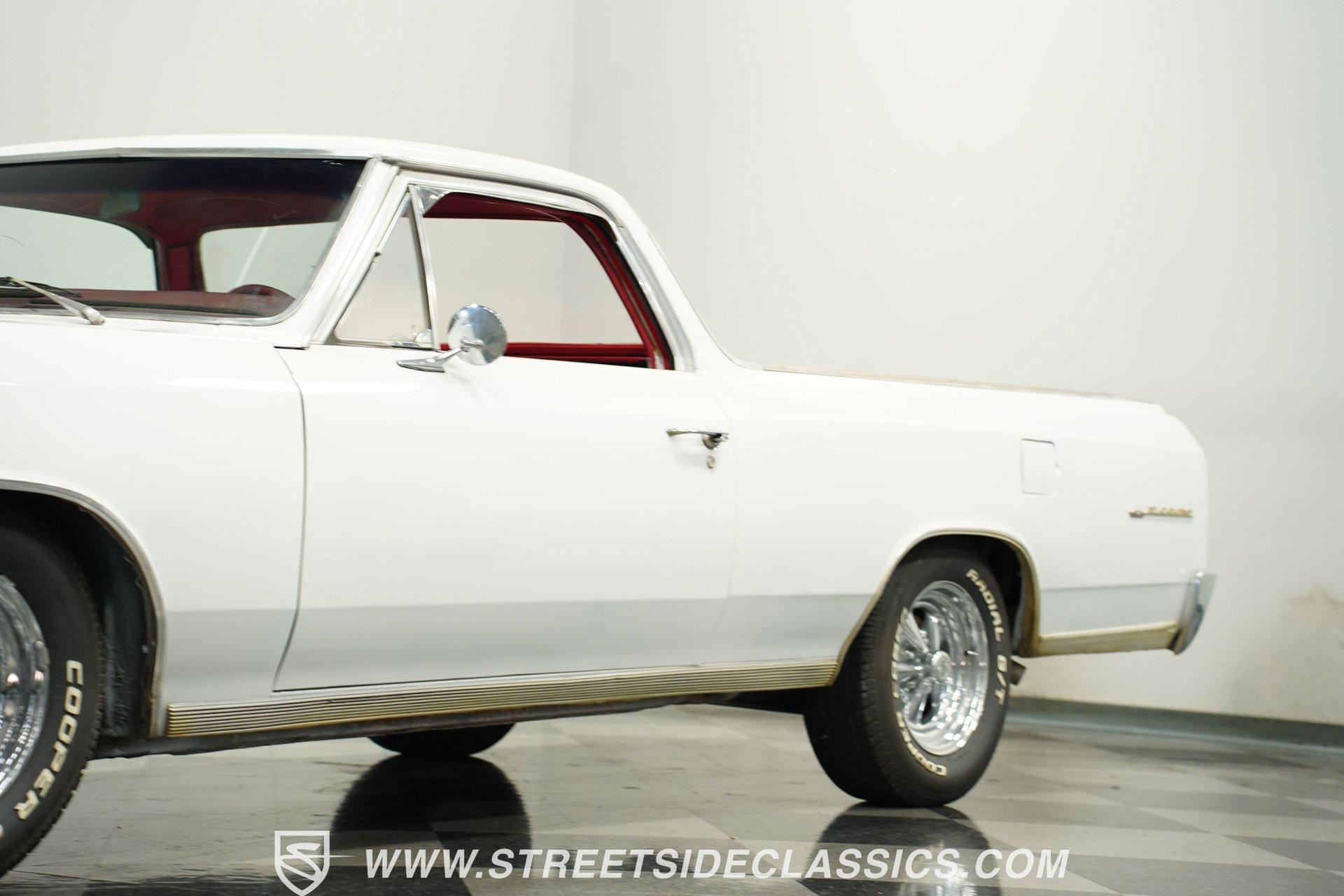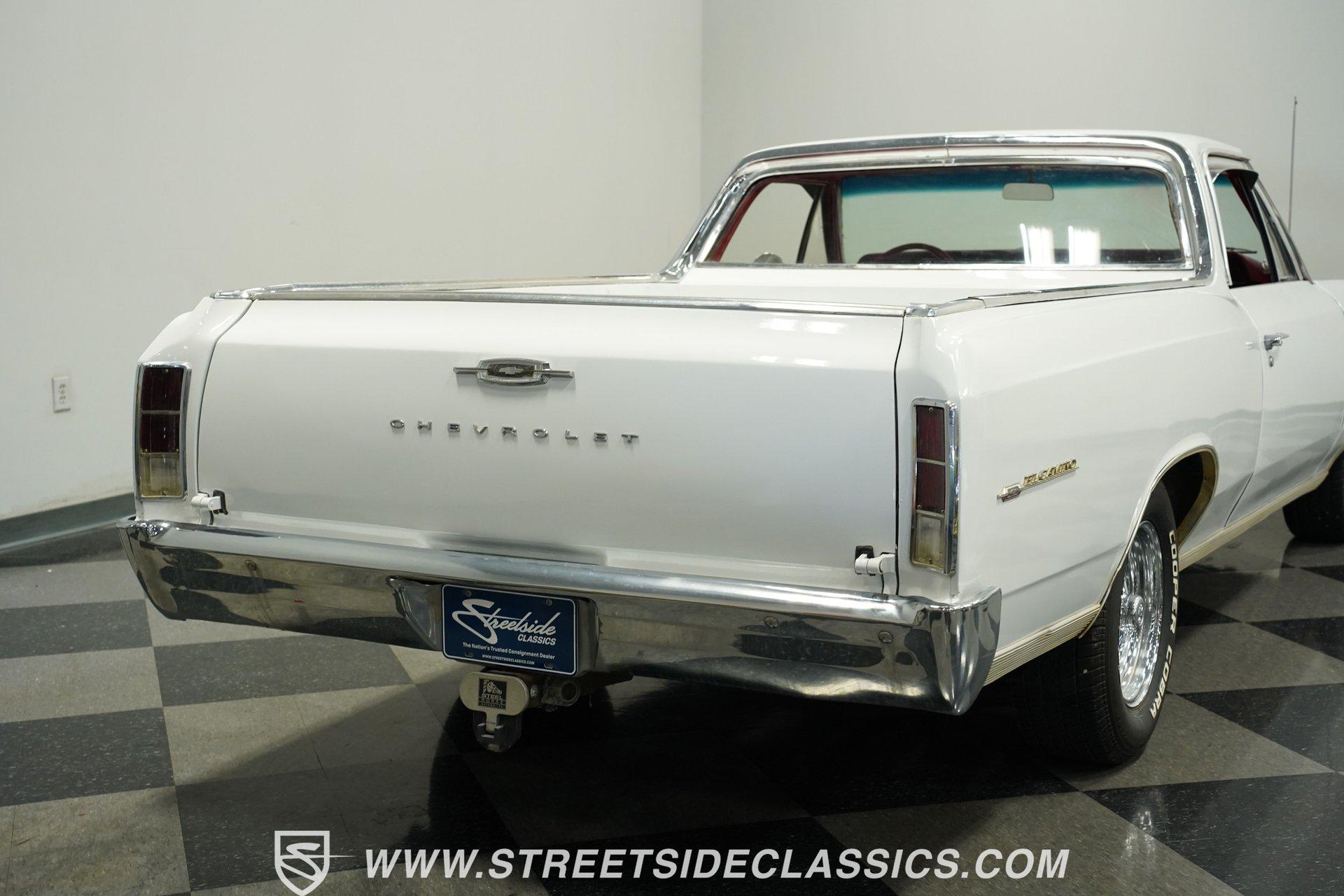 Sleek lines and classic proportions make the 1966 Chevrolet El Camino instantly recognizable in its crisp Ermine White finish. The long body creates an unmistakable profile that has maintained its appeal for decades. Chrome trim accents the front grille and surrounds the windows, providing perfect contrast against the white paint. The 15" Cragar wheels fill out the wheel wells with P215/70R15 front and P225/70R15 rear tires mounted for proper stance. Dual exhaust exits complete the rear view with a performance-minded aesthetic. Red vinyl covers the interior surfaces, creating a bold contrast against the white exterior. A comfortable bench seat provides ample room for driver and passenger while the straightforward dashboard houses essential gauges and controls. The column-mounted shifter controls the Powerglide transmission and an AM radio sits ready to provide road trip entertainment. A recently installed headliner tops off the cabin, giving a fresh look to the upper surfaces while maintaining the factory-correct appearance throughout. Muscle comes from a 283 cubic inch V8 engine connected to a 2-speed Powerglide automatic transmission. The mechanical package includes power steering, coil spring suspension at all four corners, and helper springs added to the rear. An aluminum radiator keeps operating temperatures in check during summer cruising. The dual exhaust system adds a proper V8 soundtrack when accelerating, and the 10-bolt rear axle puts power to the pavement with appropriate strength for the drivetrain. HIGHLIGHTS: 283 V8 Engine 2-Speed Powerglide Automatic Transmission Power Steering Dual Exhaust Coil Spring Suspension With Shocks Helper Springs For Rear Suspension Aluminum Radiator 10-Bolt Rear Axle Ermine White Paint 15" Cragar Wheels P215/70R15 Front, P225/70R15 Rear Tires Chrome Trim Red Interior With Bench Seat New Headliner AM Radio Column Shifter From weekend cruises to daily driving, the 1966 Chevrolet El Camino offers an experience that remains uniquely American. The combination of V8 power, automatic transmission, and classic styling makes for an excellent addition to any garage. Call today!