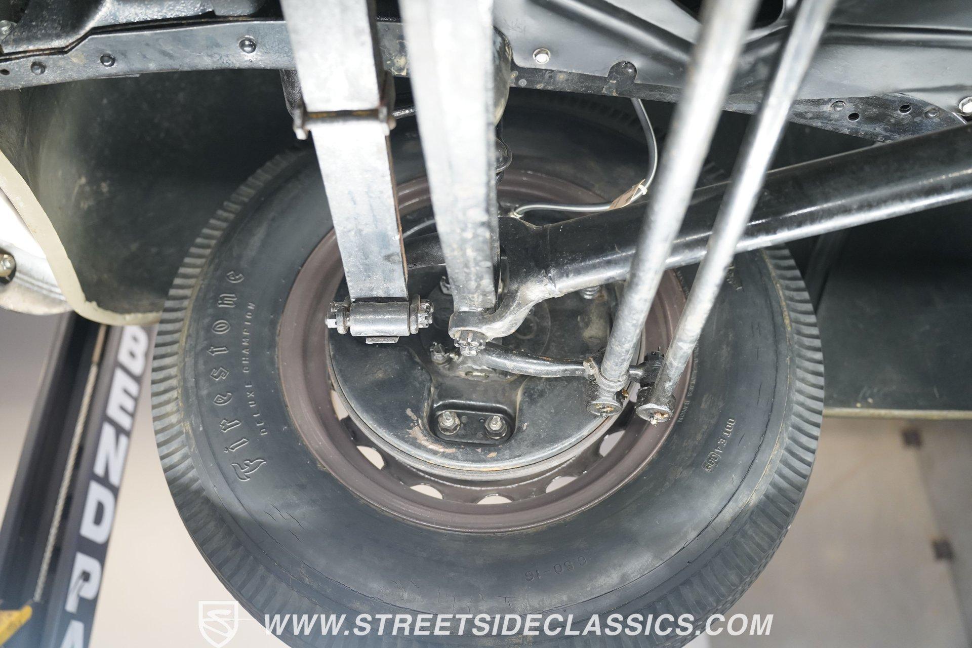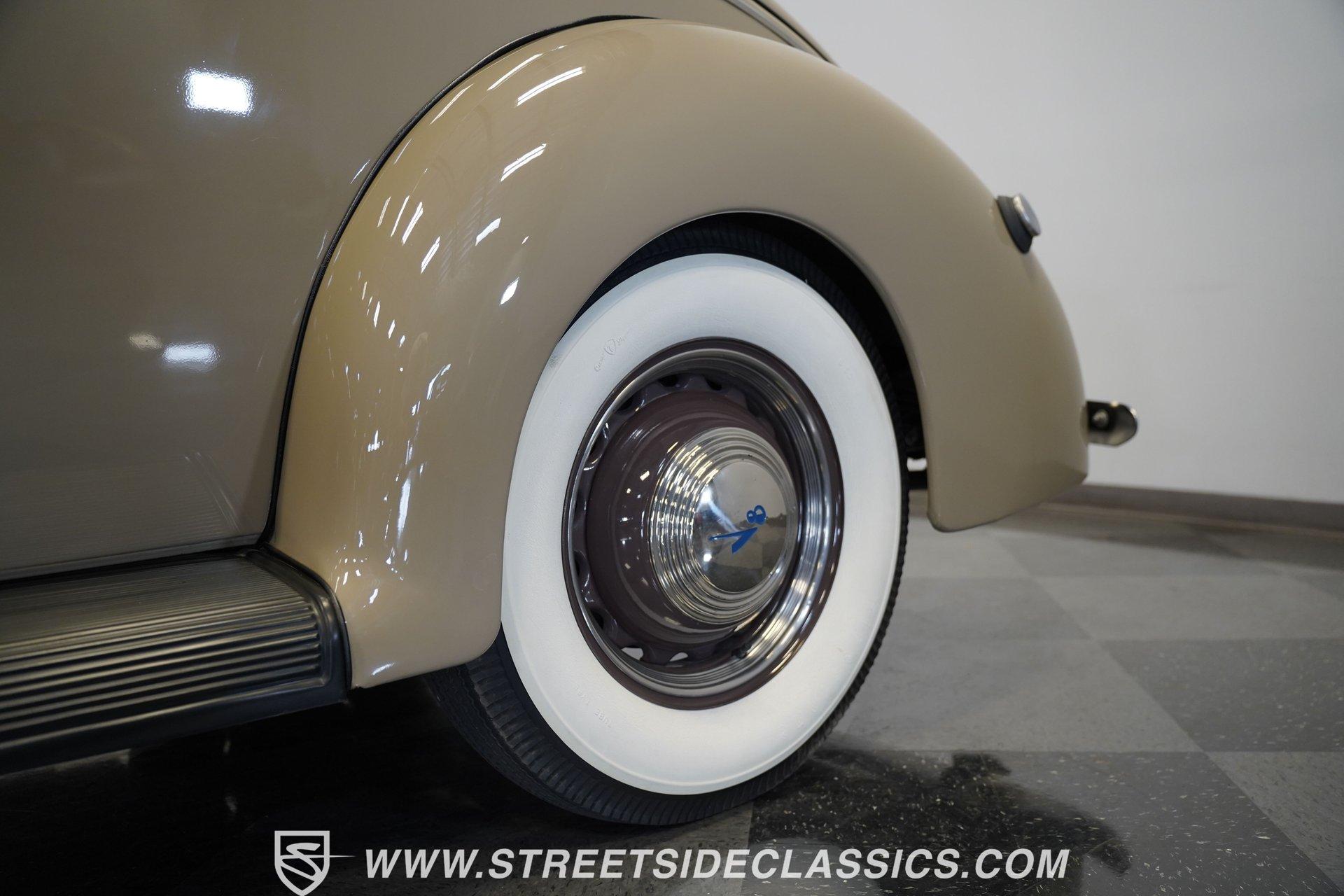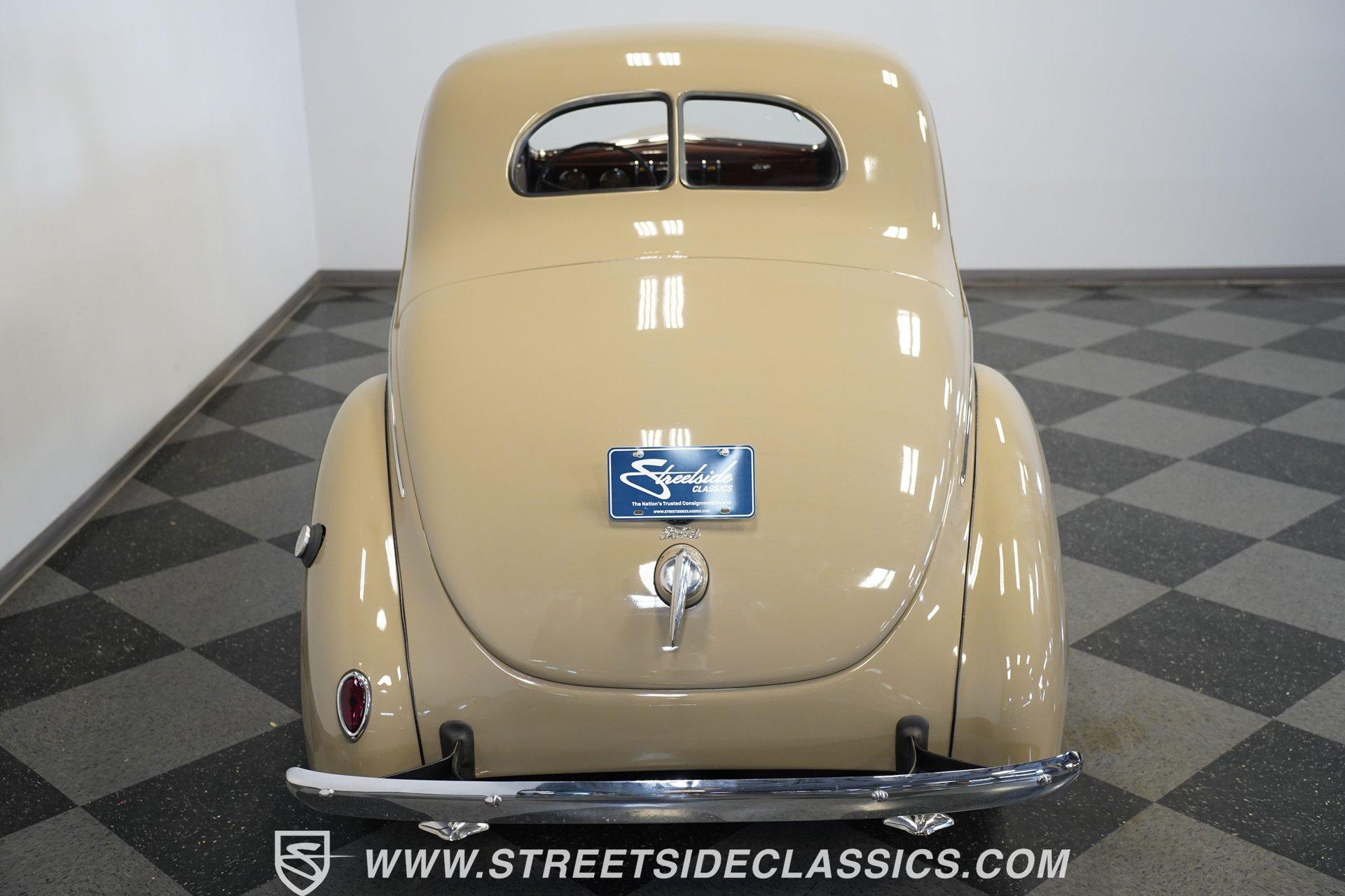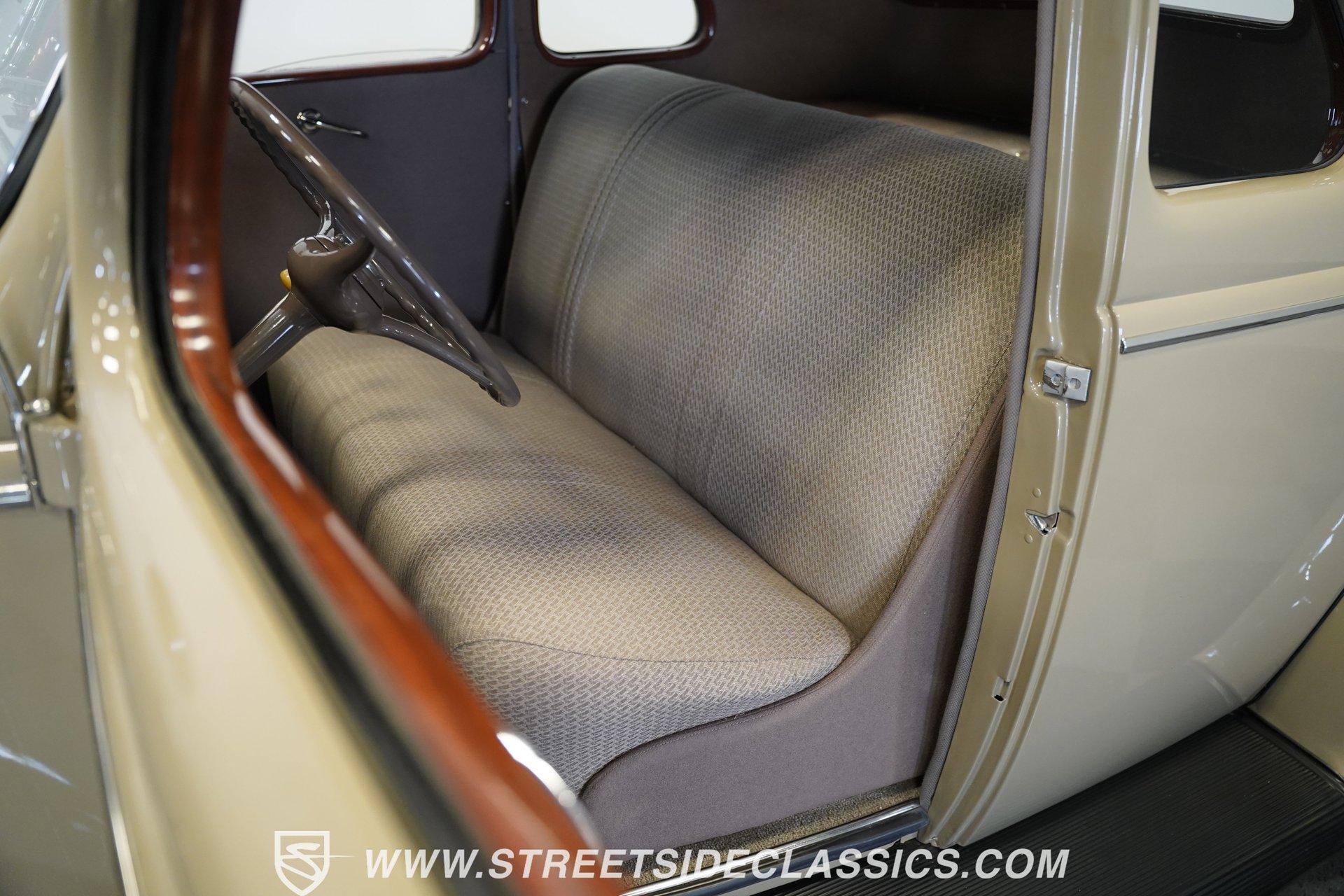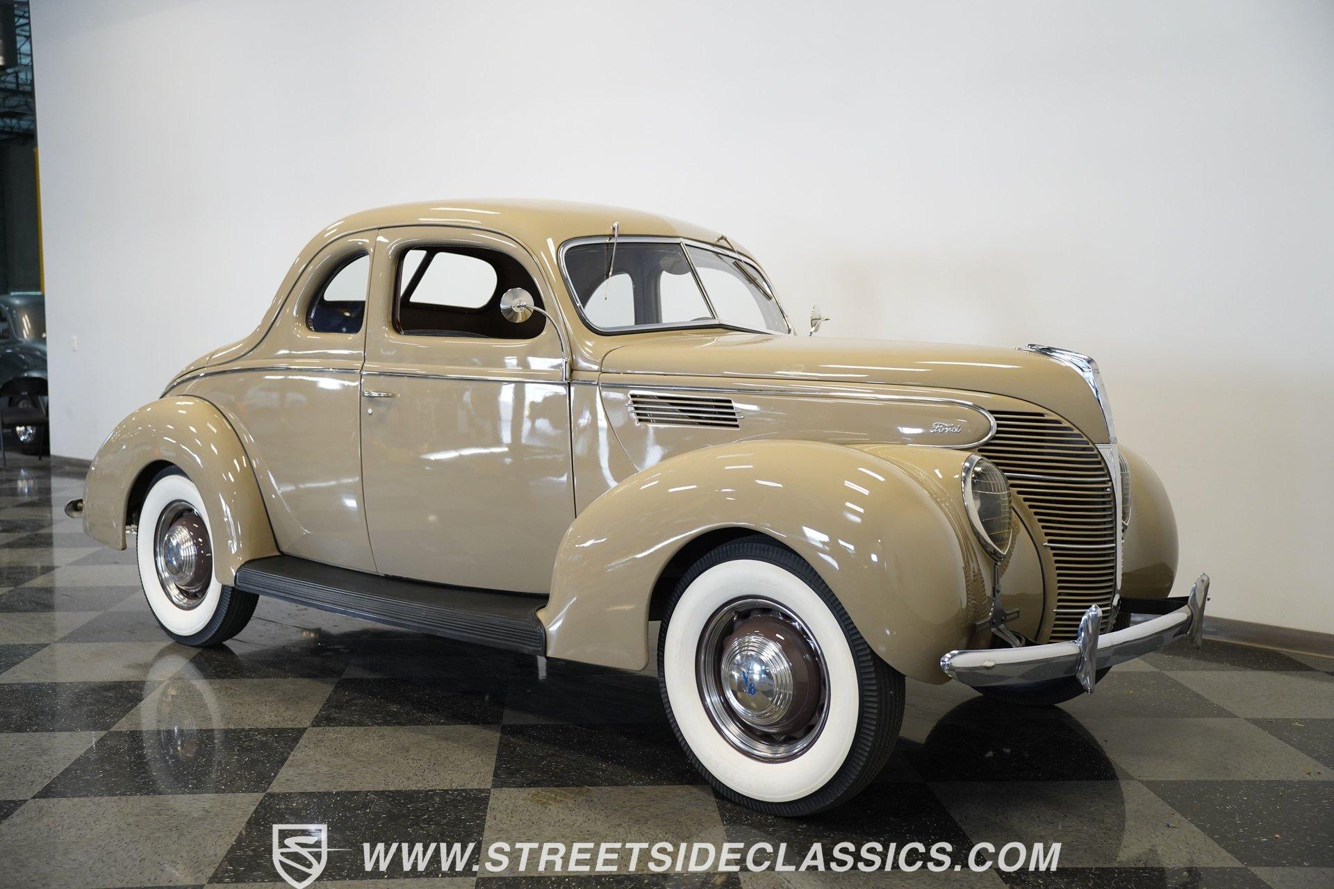 Firestone whitewalls stamped 6.50-16 wrap around steel wheels dressed with beauty rings and center caps, giving this 1939 Ford Coupe a proper period stance. Folkstone Gray sets the tone across a clean, well-proportioned body with a full respray that complements the factory-style trim. Up front, the classic grille pairs with sealed-beam headlights and a bright bumper. The running boards are outfitted with matching rubber, while the rear holds tight with a smooth deck, rounded quarters, and a chrome bumper finishing off the stance. All glass remains clean and clear, completing the look with confidence. Tan cloth sets the mood across a bench seat that spans door to door. The dash combines black accents and woodgrain, with a simple dual-gauge cluster centered behind a larger-diameter steering wheel. Matching tan panels and headliner keep things cohesive, and a full rubber floor mat covers the base. A floor-mounted shifter handles the gears while an AM/FM radio is tucked in up front. Power runs through a 221 flathead V8 topped with a Ford 2-barrel carb on a stock intake. A Toploader 3-speed manual transmission with the 78-7006-2 case handles the shifts. Factory-style transverse leaf springs anchor both ends of the suspension, with an I-beam up front and a semi-floating rear axle out back. Dual exhaust runs through stock-style mufflers. The setup stays true to its roots, with four-wheel manual drum brakes finishing off a mechanical layout built on original Ford geometry. HIGHLIGHTS 221 Flathead V8 3-Speed Manual Transmission (Toploader) Ford 2-Barrel Carburetor Stock Intake Manifold Dual Exhaust With Factory-Style Mufflers Manual Drum Brakes I-Beam Front Suspension With Transverse Leaf Spring Solid Rear Axle With Transverse Leaf Spring Folkstone Gray Paint 16" Steel Wheels With Beauty Rings And Center Caps 6.50-16 Firestone Wide Whitewall Tires Running Board Rubber Trim Chrome Front And Rear Bumpers Factory-Style Grille And Trim Tan Interior With Bench Seat Woodgrain And Black Dash Dual-Gauge Instrument Cluster Floor-Mounted Shifter Larger Diameter Steering Wheel Full Rubber Floor Mat Matching Headliner And Door Panels Timeless lines, flathead power, and period-correct presence make this 1939 Ford Coupe a solid choice for traditional style with factory-inspired mechanicals. Folkstone Gray paint and vintage trim keep it true, inside and out. Call today!
