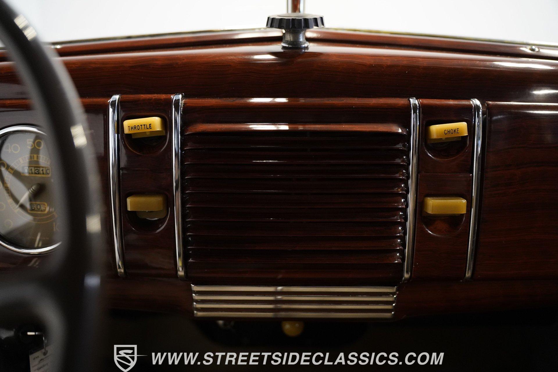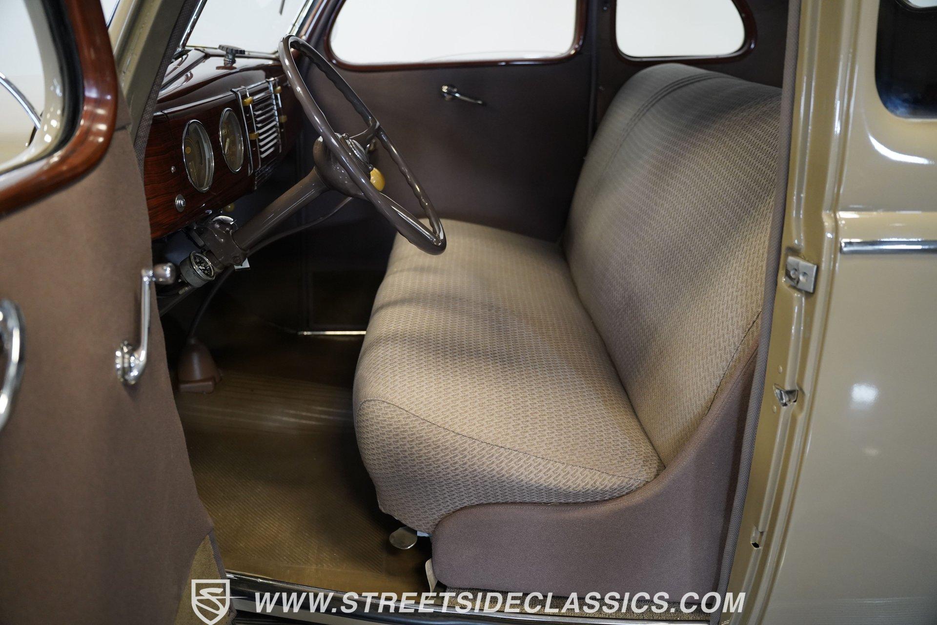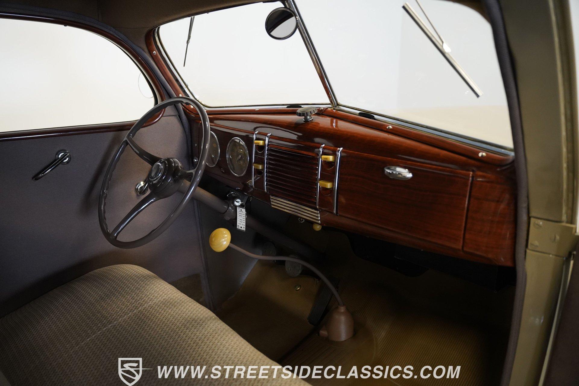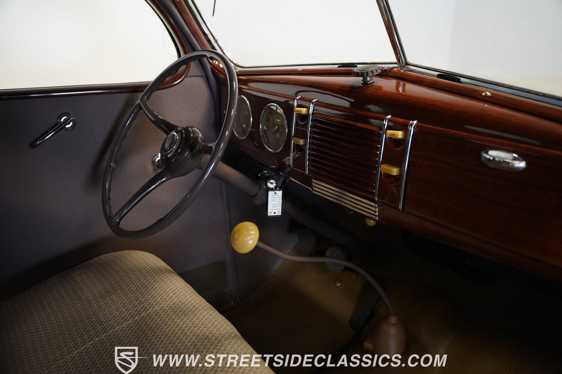 Firestone whitewalls stamped 6.50-16 wrap around steel wheels dressed with beauty rings and center caps, giving this 1939 Ford Coupe a proper period stance. Folkstone Gray sets the tone across a clean, well-proportioned body with a full respray that complements the factory-style trim. Up front, the classic grille pairs with sealed-beam headlights and a bright bumper. The running boards are outfitted with matching rubber, while the rear holds tight with a smooth deck, rounded quarters, and a chrome bumper finishing off the stance. All glass remains clean and clear, completing the look with confidence. Tan cloth sets the mood across a bench seat that spans door to door. The dash combines black accents and woodgrain, with a simple dual-gauge cluster centered behind a larger-diameter steering wheel. Matching tan panels and headliner keep things cohesive, and a full rubber floor mat covers the base. A floor-mounted shifter handles the gears while an AM/FM radio is tucked in up front. Power runs through a 221 flathead V8 topped with a Ford 2-barrel carb on a stock intake. A Toploader 3-speed manual transmission with the 78-7006-2 case handles the shifts. Factory-style transverse leaf springs anchor both ends of the suspension, with an I-beam up front and a semi-floating rear axle out back. Dual exhaust runs through stock-style mufflers. The setup stays true to its roots, with four-wheel manual drum brakes finishing off a mechanical layout built on original Ford geometry. HIGHLIGHTS 221 Flathead V8 3-Speed Manual Transmission (Toploader) Ford 2-Barrel Carburetor Stock Intake Manifold Dual Exhaust With Factory-Style Mufflers Manual Drum Brakes I-Beam Front Suspension With Transverse Leaf Spring Solid Rear Axle With Transverse Leaf Spring Folkstone Gray Paint 16" Steel Wheels With Beauty Rings And Center Caps 6.50-16 Firestone Wide Whitewall Tires Running Board Rubber Trim Chrome Front And Rear Bumpers Factory-Style Grille And Trim Tan Interior With Bench Seat Woodgrain And Black Dash Dual-Gauge Instrument Cluster Floor-Mounted Shifter Larger Diameter Steering Wheel Full Rubber Floor Mat Matching Headliner And Door Panels Timeless lines, flathead power, and period-correct presence make this 1939 Ford Coupe a solid choice for traditional style with factory-inspired mechanicals. Folkstone Gray paint and vintage trim keep it true, inside and out. Call today!