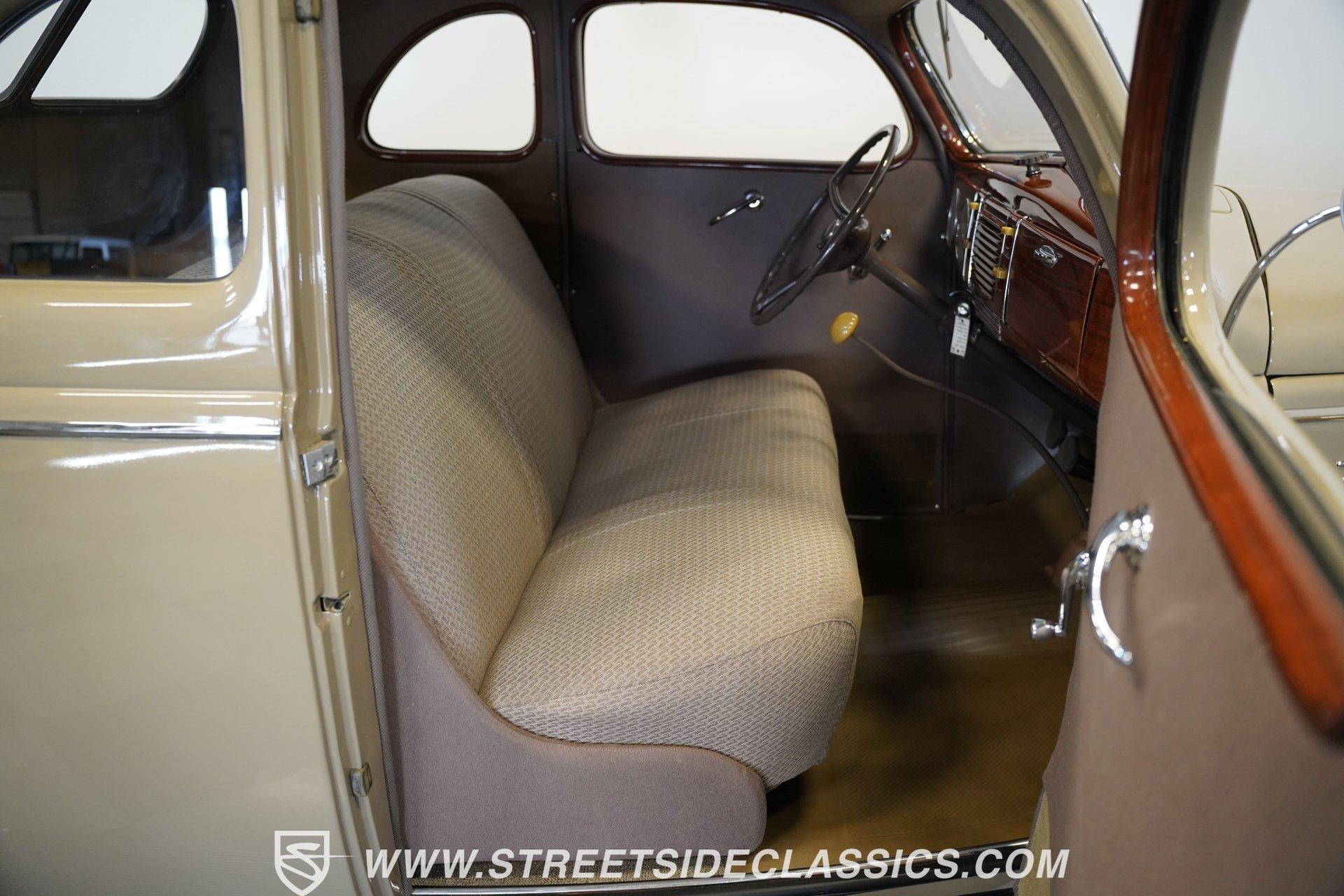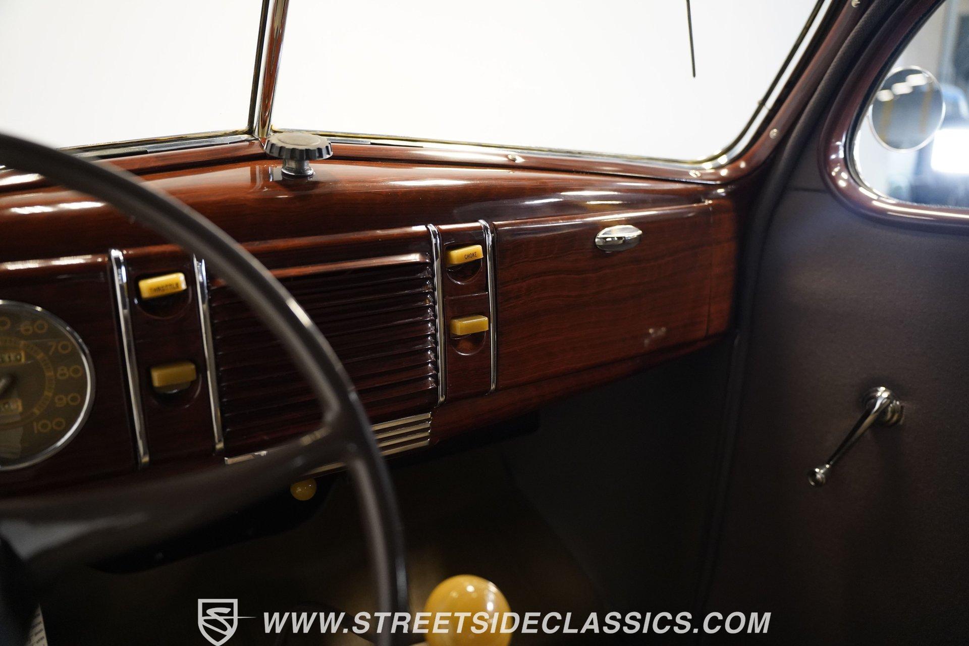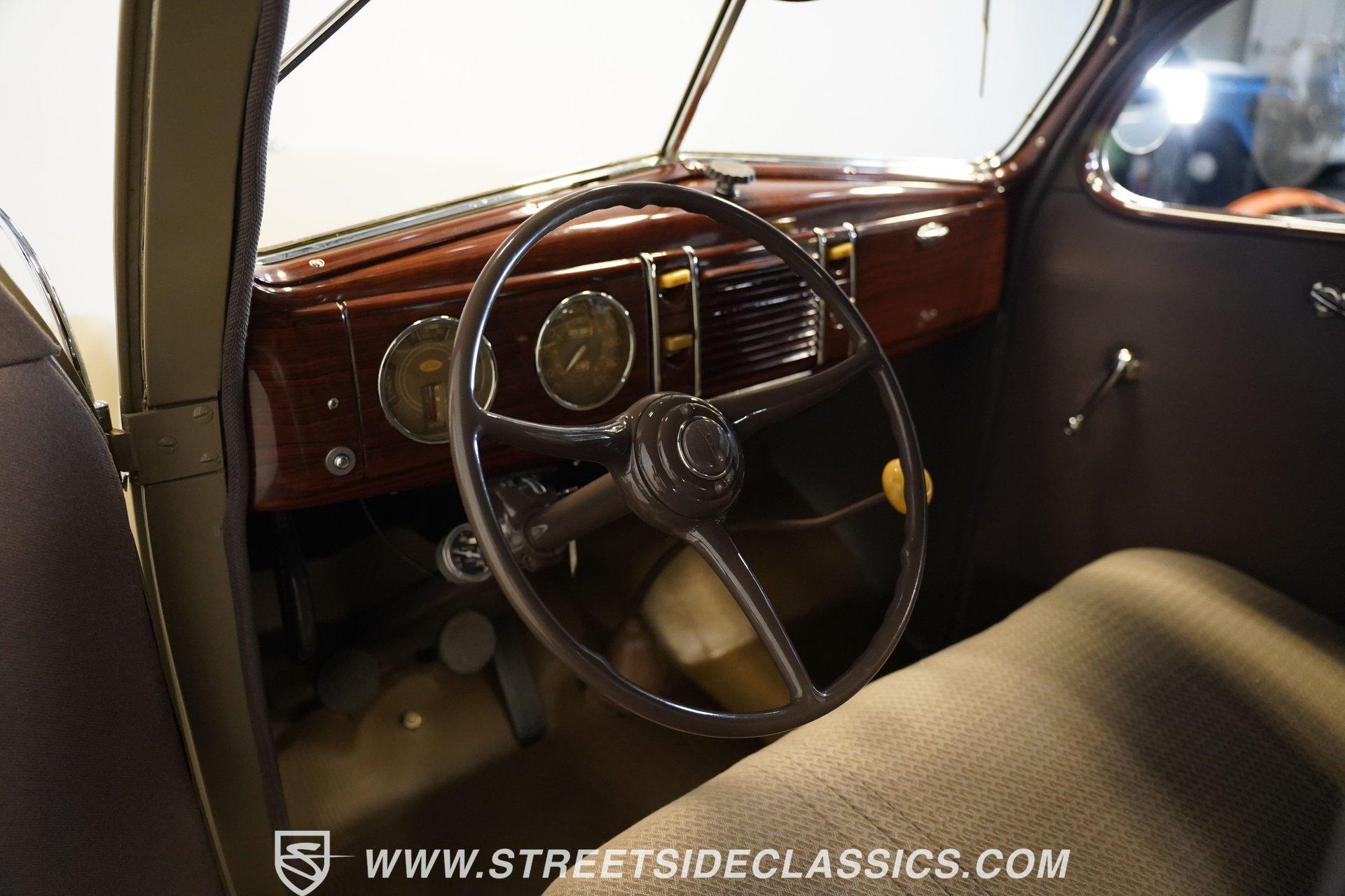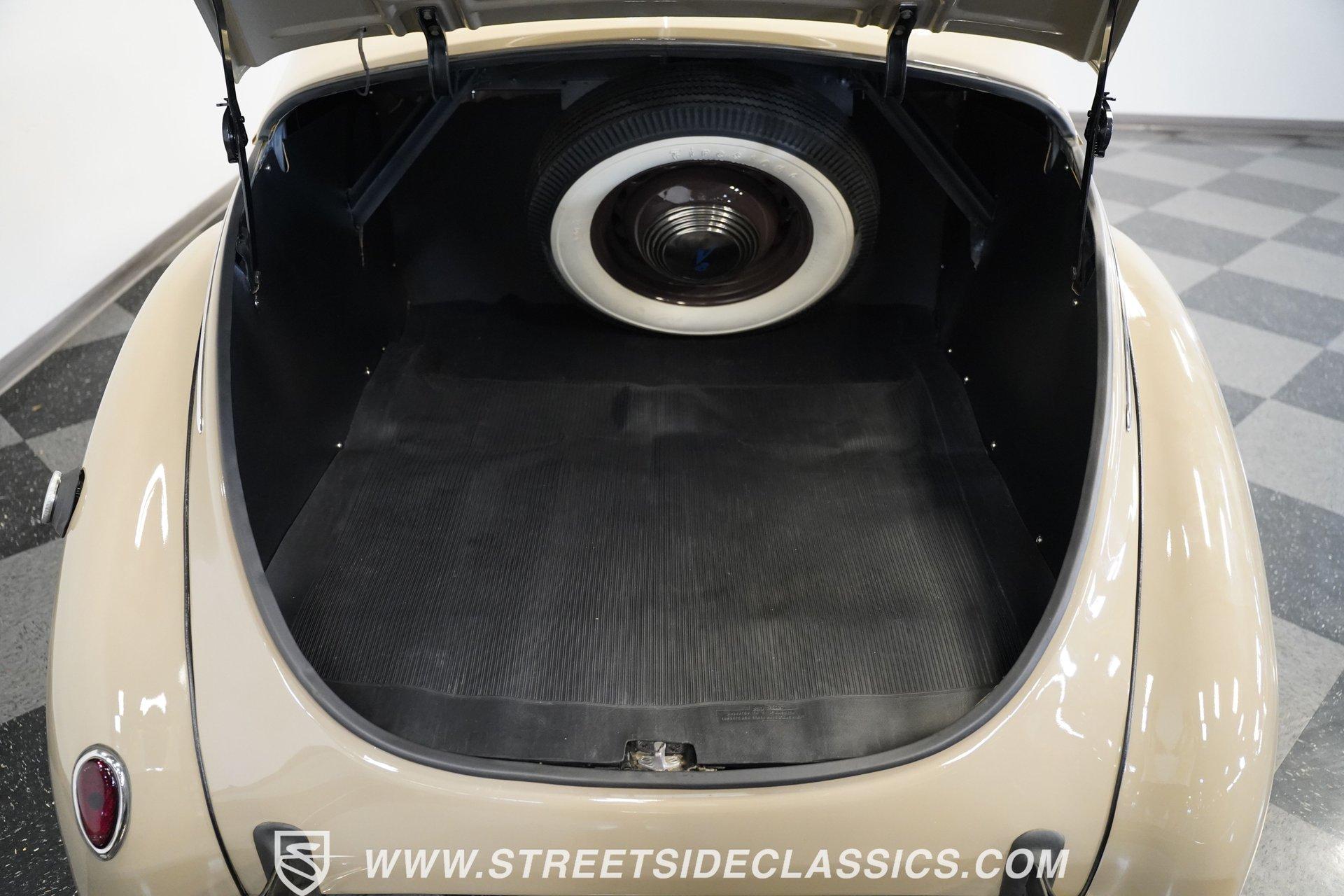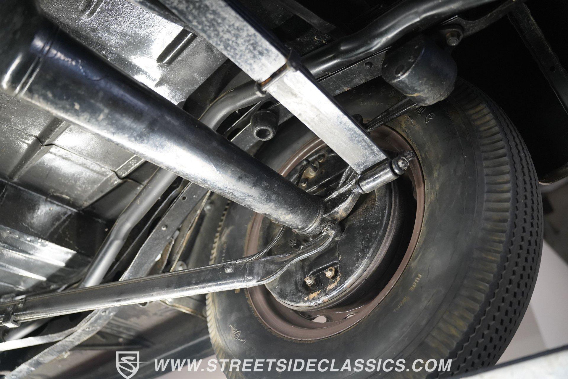 Firestone whitewalls stamped 6.50-16 wrap around steel wheels dressed with beauty rings and center caps, giving this 1939 Ford Coupe a proper period stance. Folkstone Gray sets the tone across a clean, well-proportioned body with a full respray that complements the factory-style trim. Up front, the classic grille pairs with sealed-beam headlights and a bright bumper. The running boards are outfitted with matching rubber, while the rear holds tight with a smooth deck, rounded quarters, and a chrome bumper finishing off the stance. All glass remains clean and clear, completing the look with confidence. Tan cloth sets the mood across a bench seat that spans door to door. The dash combines black accents and woodgrain, with a simple dual-gauge cluster centered behind a larger-diameter steering wheel. Matching tan panels and headliner keep things cohesive, and a full rubber floor mat covers the base. A floor-mounted shifter handles the gears while an AM/FM radio is tucked in up front. Power runs through a 221 flathead V8 topped with a Ford 2-barrel carb on a stock intake. A Toploader 3-speed manual transmission with the 78-7006-2 case handles the shifts. Factory-style transverse leaf springs anchor both ends of the suspension, with an I-beam up front and a semi-floating rear axle out back. Dual exhaust runs through stock-style mufflers. The setup stays true to its roots, with four-wheel manual drum brakes finishing off a mechanical layout built on original Ford geometry. HIGHLIGHTS 221 Flathead V8 3-Speed Manual Transmission (Toploader) Ford 2-Barrel Carburetor Stock Intake Manifold Dual Exhaust With Factory-Style Mufflers Manual Drum Brakes I-Beam Front Suspension With Transverse Leaf Spring Solid Rear Axle With Transverse Leaf Spring Folkstone Gray Paint 16" Steel Wheels With Beauty Rings And Center Caps 6.50-16 Firestone Wide Whitewall Tires Running Board Rubber Trim Chrome Front And Rear Bumpers Factory-Style Grille And Trim Tan Interior With Bench Seat Woodgrain And Black Dash Dual-Gauge Instrument Cluster Floor-Mounted Shifter Larger Diameter Steering Wheel Full Rubber Floor Mat Matching Headliner And Door Panels Timeless lines, flathead power, and period-correct presence make this 1939 Ford Coupe a solid choice for traditional style with factory-inspired mechanicals. Folkstone Gray paint and vintage trim keep it true, inside and out. Call today!