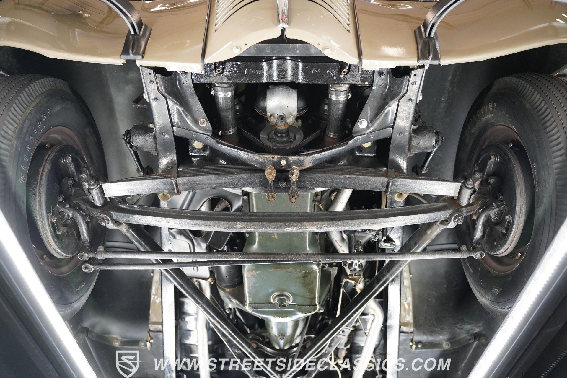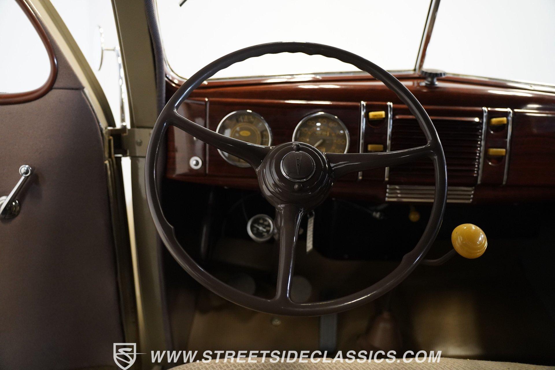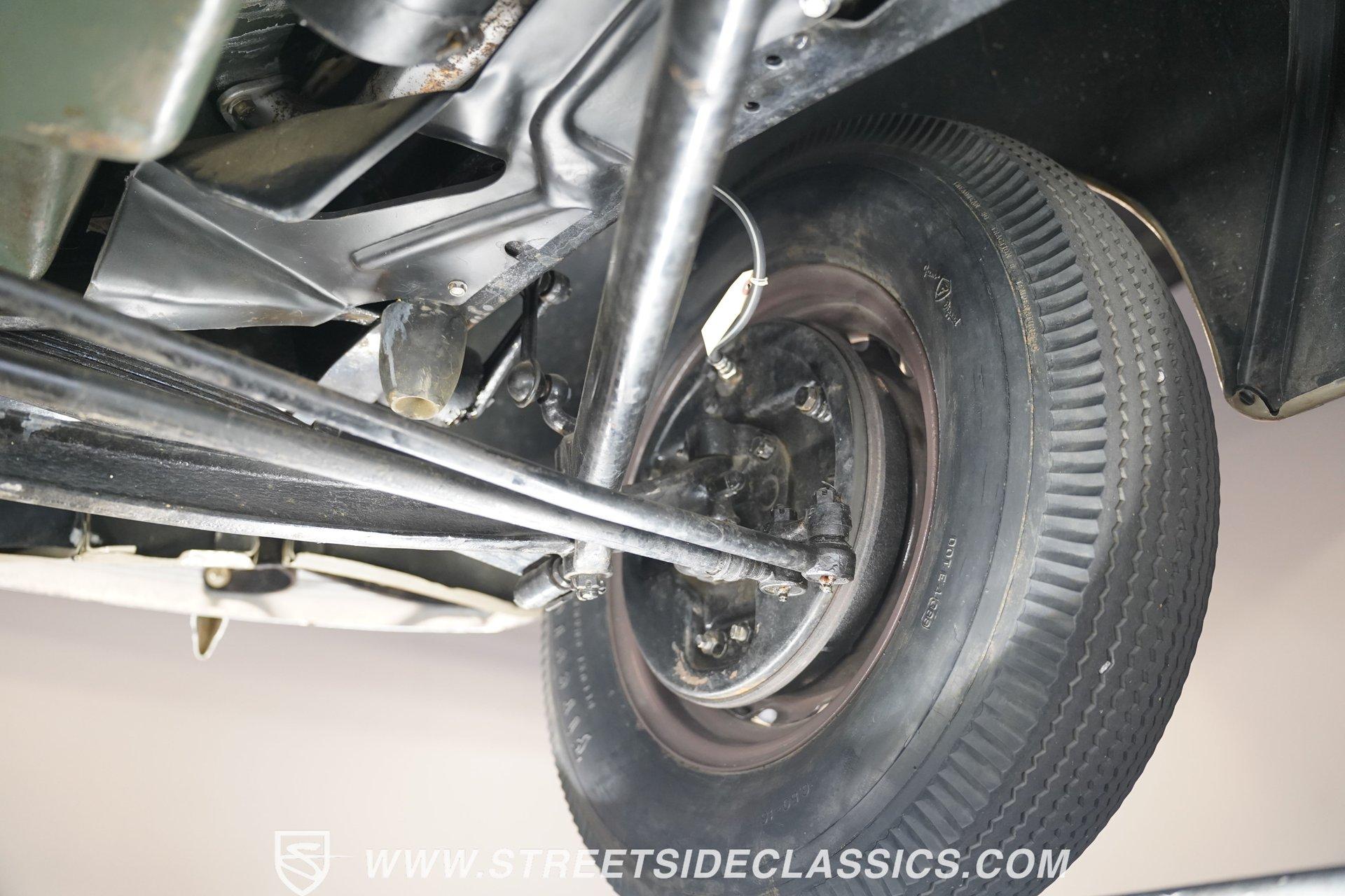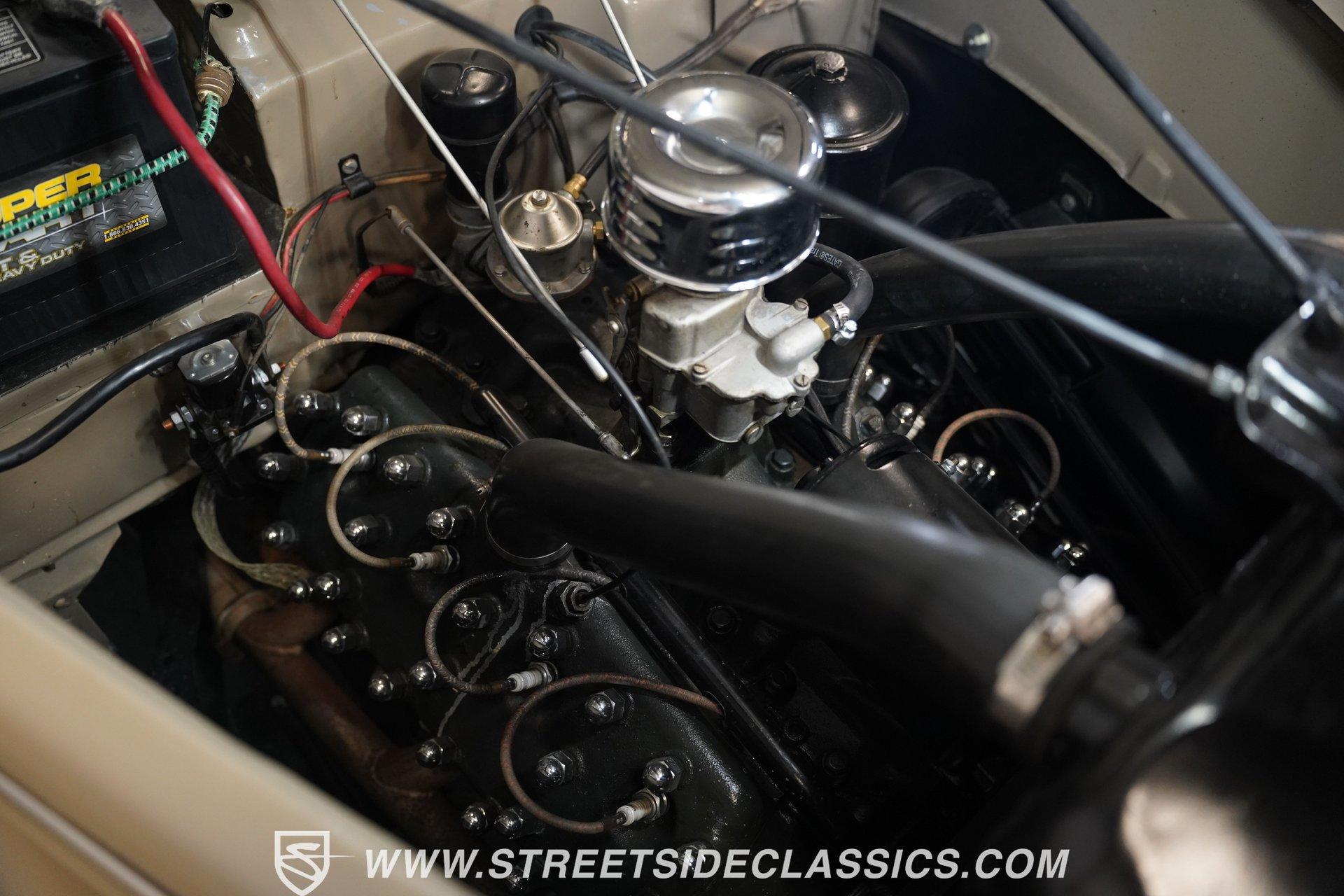 Firestone whitewalls stamped 6.50-16 wrap around steel wheels dressed with beauty rings and center caps, giving this 1939 Ford Coupe a proper period stance. Folkstone Gray sets the tone across a clean, well-proportioned body with a full respray that complements the factory-style trim. Up front, the classic grille pairs with sealed-beam headlights and a bright bumper. The running boards are outfitted with matching rubber, while the rear holds tight with a smooth deck, rounded quarters, and a chrome bumper finishing off the stance. All glass remains clean and clear, completing the look with confidence. Tan cloth sets the mood across a bench seat that spans door to door. The dash combines black accents and woodgrain, with a simple dual-gauge cluster centered behind a larger-diameter steering wheel. Matching tan panels and headliner keep things cohesive, and a full rubber floor mat covers the base. A floor-mounted shifter handles the gears while an AM/FM radio is tucked in up front. Power runs through a 221 flathead V8 topped with a Ford 2-barrel carb on a stock intake. A Toploader 3-speed manual transmission with the 78-7006-2 case handles the shifts. Factory-style transverse leaf springs anchor both ends of the suspension, with an I-beam up front and a semi-floating rear axle out back. Dual exhaust runs through stock-style mufflers. The setup stays true to its roots, with four-wheel manual drum brakes finishing off a mechanical layout built on original Ford geometry. HIGHLIGHTS 221 Flathead V8 3-Speed Manual Transmission (Toploader) Ford 2-Barrel Carburetor Stock Intake Manifold Dual Exhaust With Factory-Style Mufflers Manual Drum Brakes I-Beam Front Suspension With Transverse Leaf Spring Solid Rear Axle With Transverse Leaf Spring Folkstone Gray Paint 16" Steel Wheels With Beauty Rings And Center Caps 6.50-16 Firestone Wide Whitewall Tires Running Board Rubber Trim Chrome Front And Rear Bumpers Factory-Style Grille And Trim Tan Interior With Bench Seat Woodgrain And Black Dash Dual-Gauge Instrument Cluster Floor-Mounted Shifter Larger Diameter Steering Wheel Full Rubber Floor Mat Matching Headliner And Door Panels Timeless lines, flathead power, and period-correct presence make this 1939 Ford Coupe a solid choice for traditional style with factory-inspired mechanicals. Folkstone Gray paint and vintage trim keep it true, inside and out. Call today!