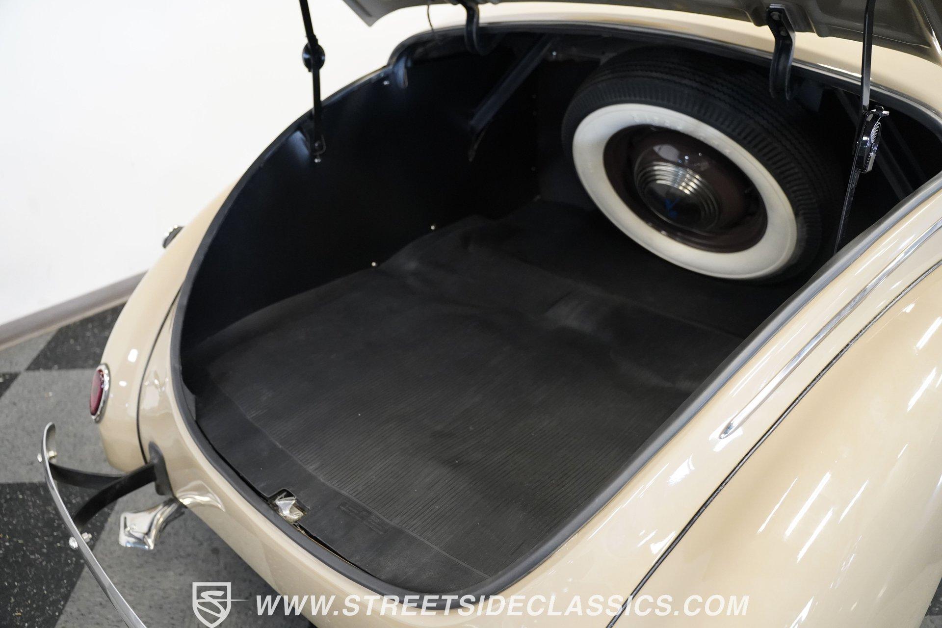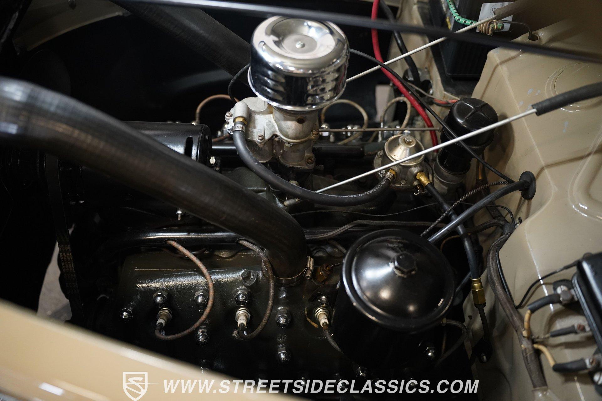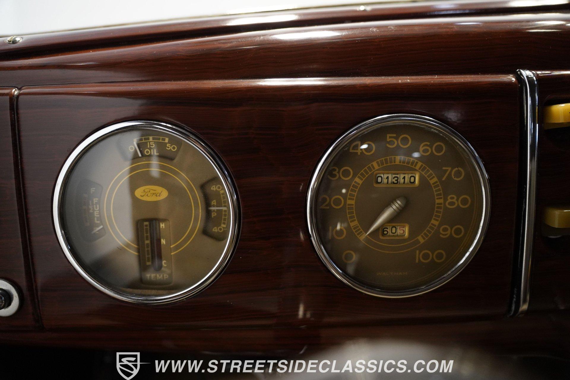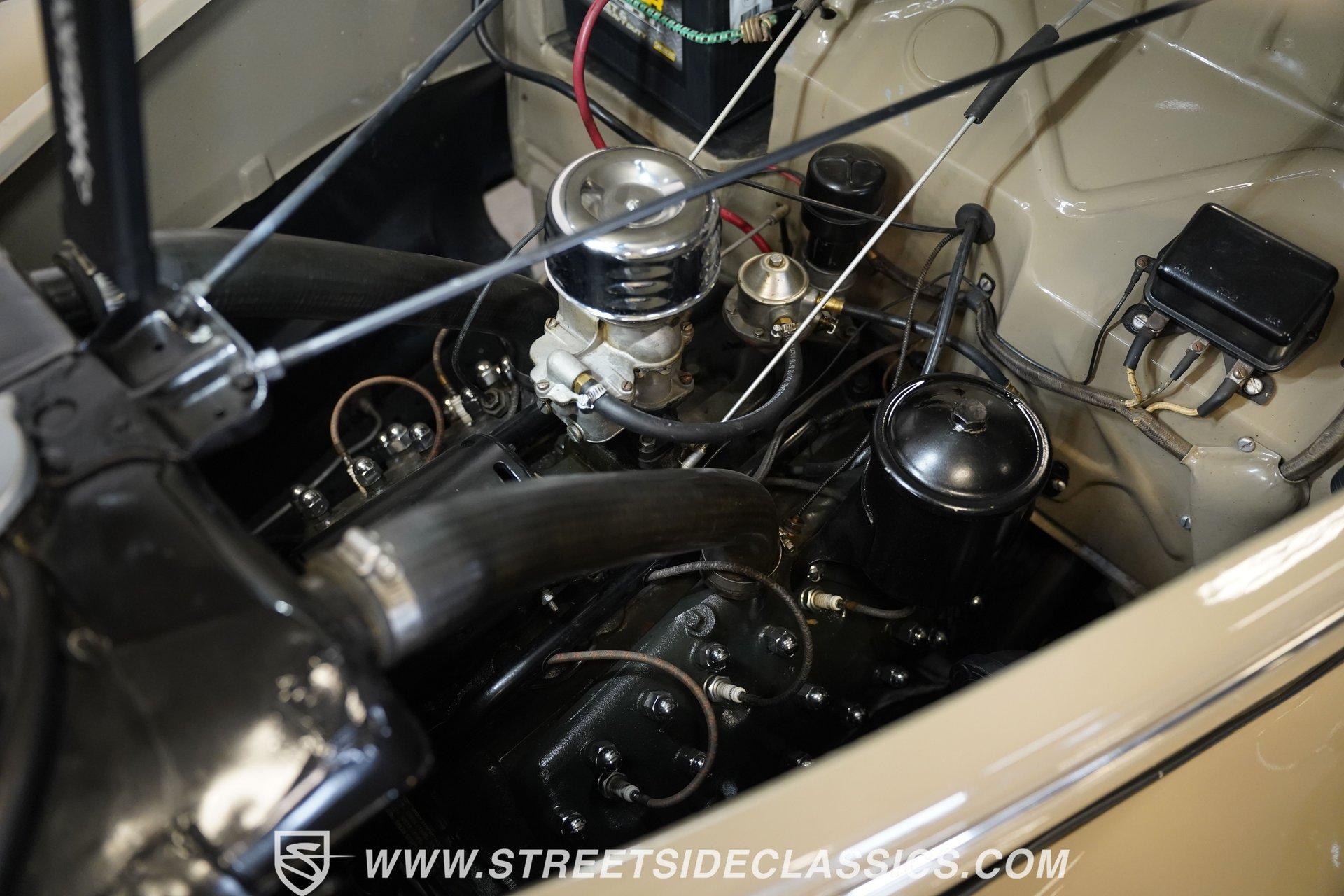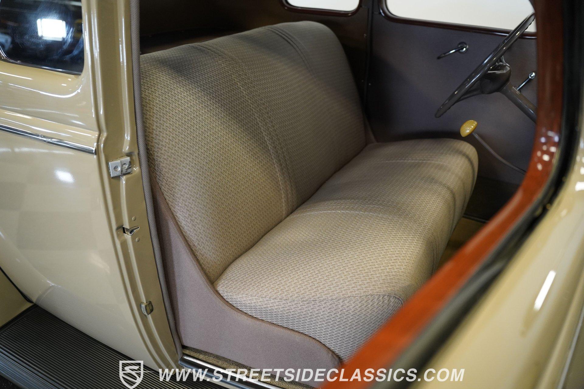 Firestone whitewalls stamped 6.50-16 wrap around steel wheels dressed with beauty rings and center caps, giving this 1939 Ford Coupe a proper period stance. Folkstone Gray sets the tone across a clean, well-proportioned body with a full respray that complements the factory-style trim. Up front, the classic grille pairs with sealed-beam headlights and a bright bumper. The running boards are outfitted with matching rubber, while the rear holds tight with a smooth deck, rounded quarters, and a chrome bumper finishing off the stance. All glass remains clean and clear, completing the look with confidence. Tan cloth sets the mood across a bench seat that spans door to door. The dash combines black accents and woodgrain, with a simple dual-gauge cluster centered behind a larger-diameter steering wheel. Matching tan panels and headliner keep things cohesive, and a full rubber floor mat covers the base. A floor-mounted shifter handles the gears while an AM/FM radio is tucked in up front. Power runs through a 221 flathead V8 topped with a Ford 2-barrel carb on a stock intake. A Toploader 3-speed manual transmission with the 78-7006-2 case handles the shifts. Factory-style transverse leaf springs anchor both ends of the suspension, with an I-beam up front and a semi-floating rear axle out back. Dual exhaust runs through stock-style mufflers. The setup stays true to its roots, with four-wheel manual drum brakes finishing off a mechanical layout built on original Ford geometry. HIGHLIGHTS 221 Flathead V8 3-Speed Manual Transmission (Toploader) Ford 2-Barrel Carburetor Stock Intake Manifold Dual Exhaust With Factory-Style Mufflers Manual Drum Brakes I-Beam Front Suspension With Transverse Leaf Spring Solid Rear Axle With Transverse Leaf Spring Folkstone Gray Paint 16" Steel Wheels With Beauty Rings And Center Caps 6.50-16 Firestone Wide Whitewall Tires Running Board Rubber Trim Chrome Front And Rear Bumpers Factory-Style Grille And Trim Tan Interior With Bench Seat Woodgrain And Black Dash Dual-Gauge Instrument Cluster Floor-Mounted Shifter Larger Diameter Steering Wheel Full Rubber Floor Mat Matching Headliner And Door Panels Timeless lines, flathead power, and period-correct presence make this 1939 Ford Coupe a solid choice for traditional style with factory-inspired mechanicals. Folkstone Gray paint and vintage trim keep it true, inside and out. Call today!