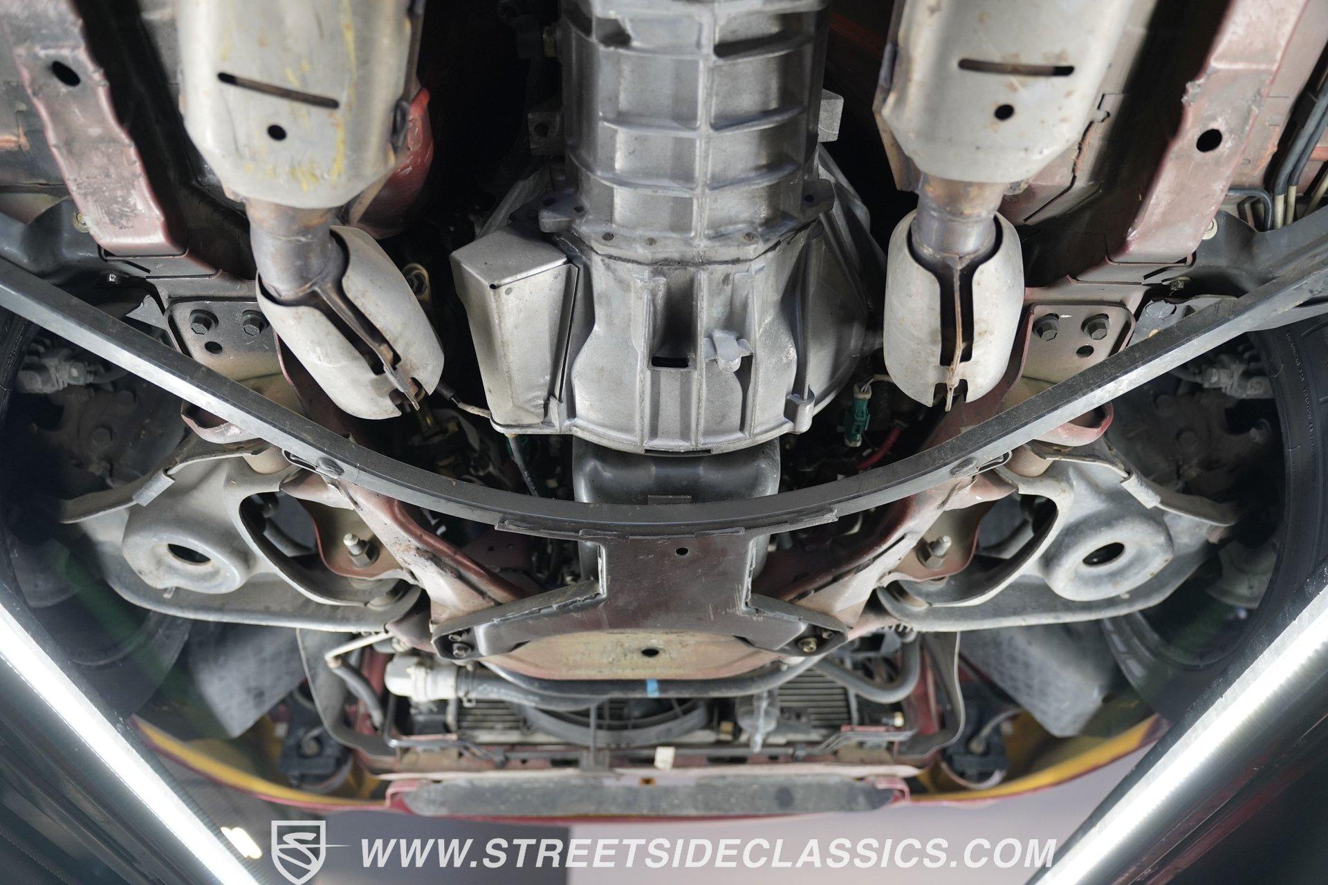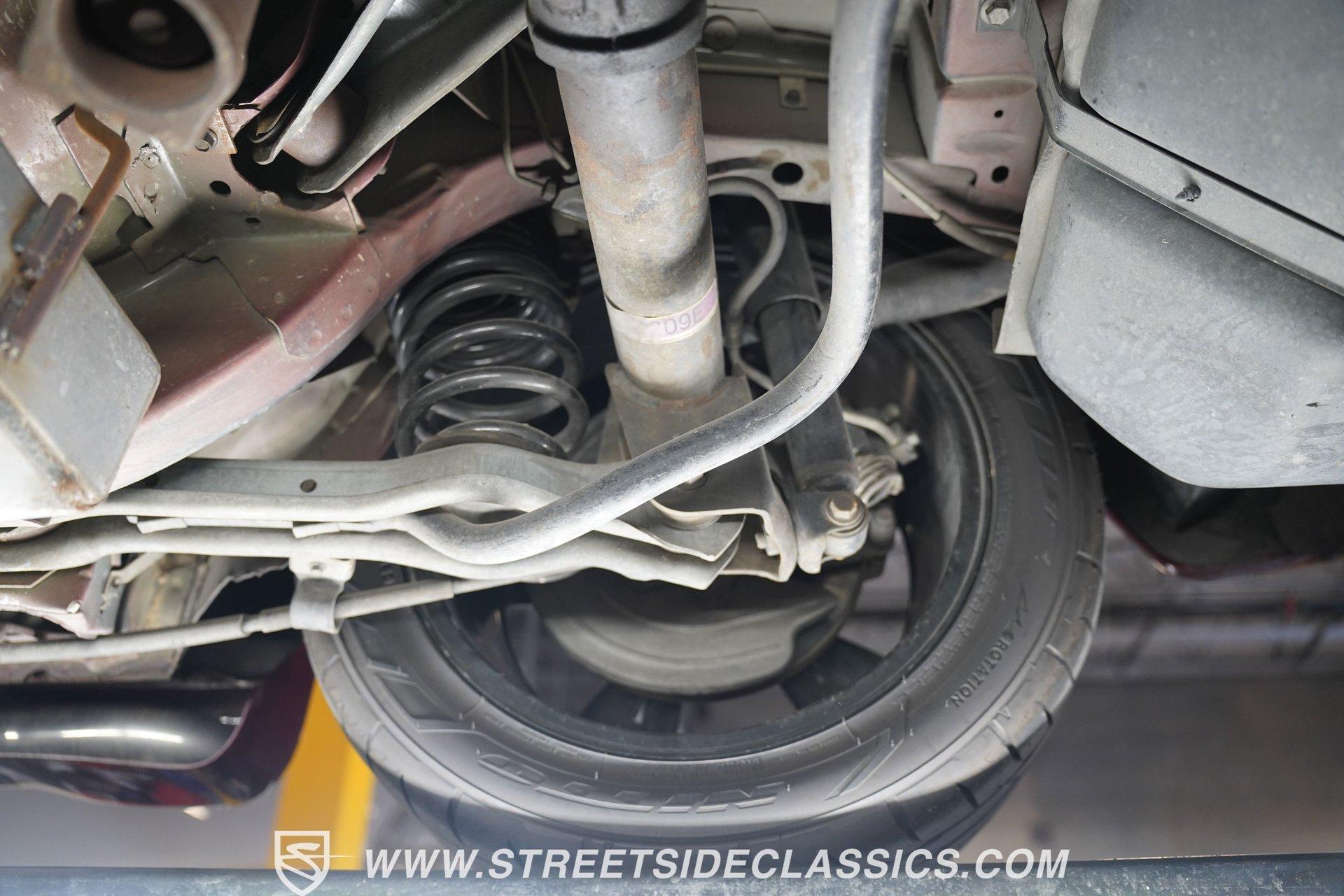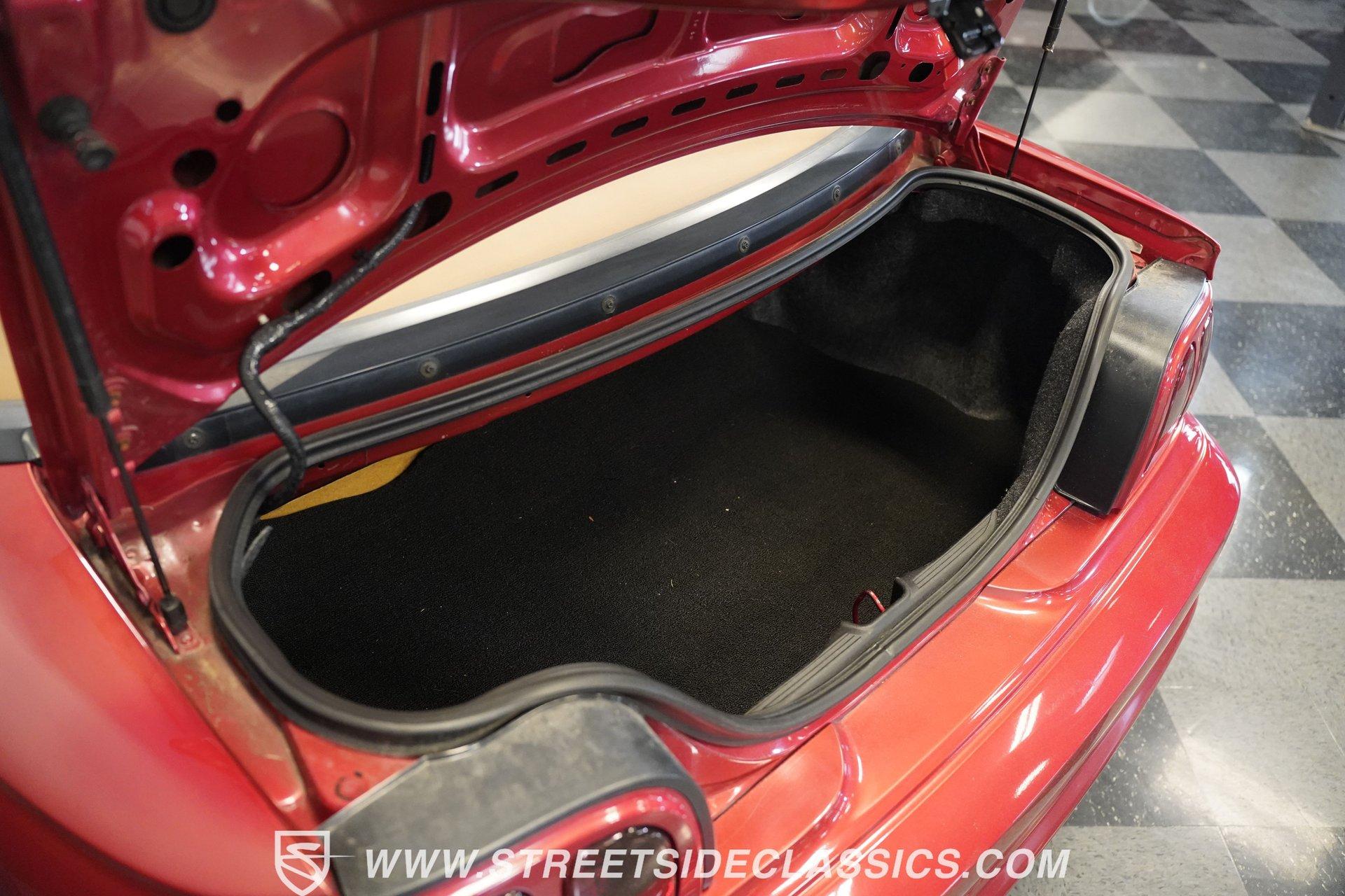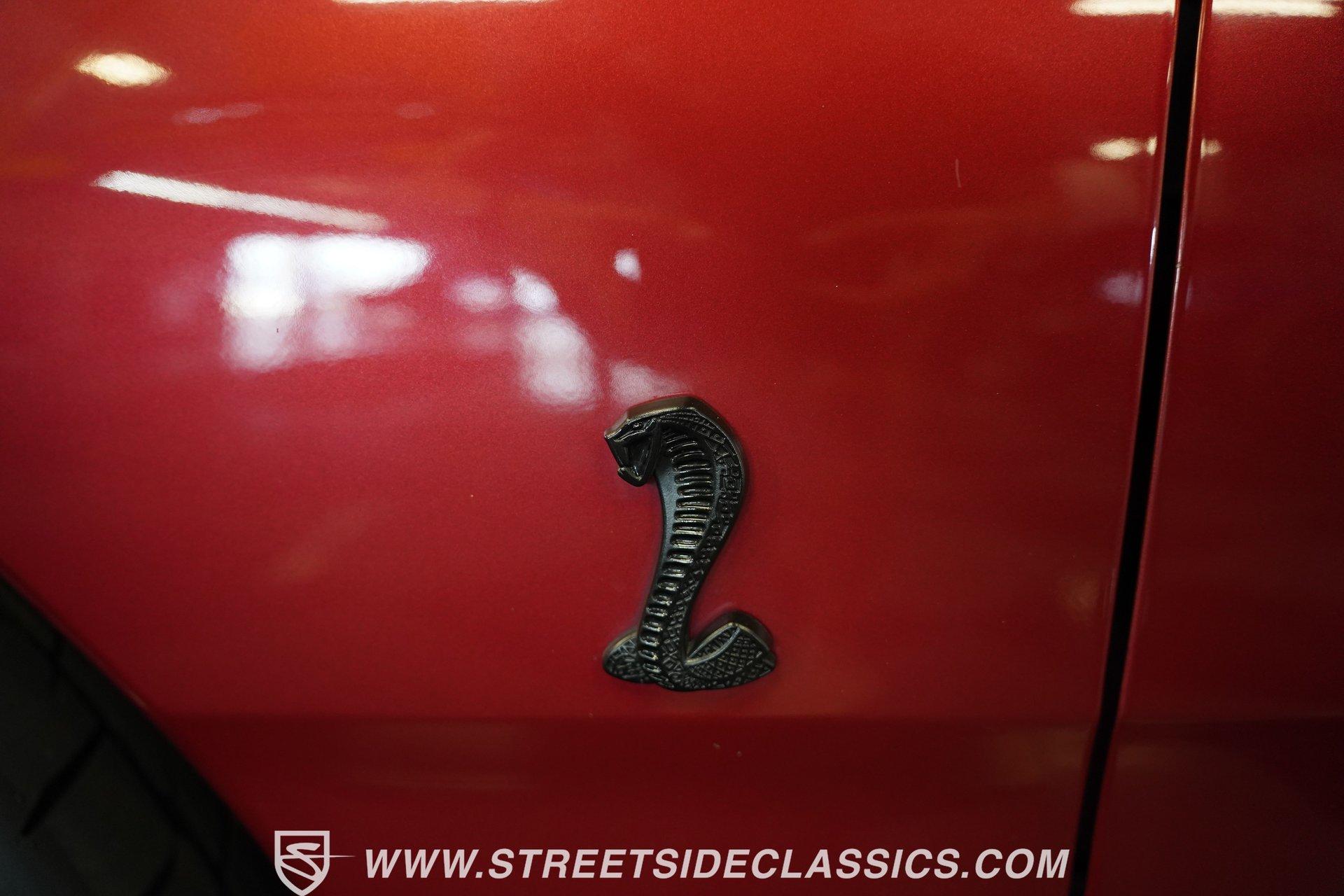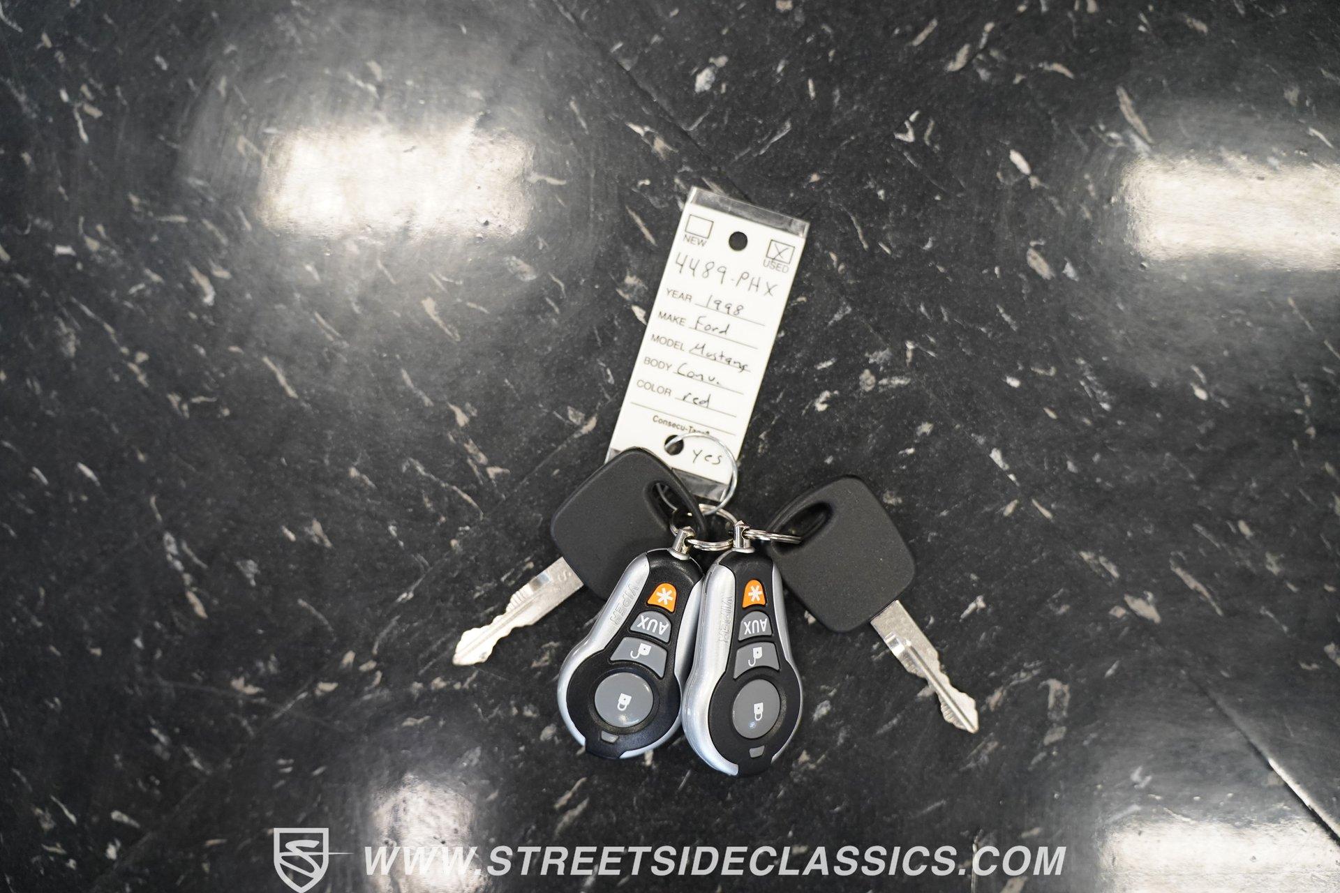 American muscle takes on an open-air attitude with the 1998 Ford Mustang Cobra SVT Supercharged Convertible finished in Laser Red with a tan canvas top. The factory Cobra front and rear bumper covers add distinctive styling while aftermarket side skirts channel airflow to the side-exit exhaust system. Black 5-spoke wheels with machined lips and SVT center caps measure 17 inches, wrapped in 245/45ZR17 front and 285/40ZR17 rear Nitto 555G2 tires with 2023 date codes. An aftermarket spoiler and black-background headlights complete the exterior modifications. Saddle leather covers the factory bucket seats within the performance-oriented interior. White-face SVT gauges provide critical information while Autometer A-pillar gauges display boost and fuel pressure readings. The aftermarket roll bar with pop-up wind screen adds structural rigidity and a two-piece carbon fiber tonneau cover gives a finished look over the rear seating area. A Kenwood single-din audio unit handles entertainment duties while the billet shift knob provides solid control over gear selection. Power windows, locks, mirrors, air conditioning and cruise control add daily driving comfort. Performance upgrades start with the 4.6 DOHC V8 enhanced by a Kenne Bell roots-style supercharger and intake system. MSD plug wires handle the spark while a billet oil catch can provides additional protection. The T45 5-speed manual transmission sends power to the 8.8 rear axle. Lowering springs improve handling dynamics and four-wheel power disc brakes with factory upgraded Cobra front brakes provide stopping capability. The dual exhaust system utilizes aftermarket mufflers for an appropriate performance sound. HIGHLIGHTS: 4.6 DOHC Supercharged V8 Engine Kenne Bell Roots-Style Supercharger And Intake 5-Speed Manual T45 Transmission Four-Wheel Power Disc Brakes Factory Upgraded Cobra Front Brakes Lowering Springs Dual Side-Exit Exhaust With Aftermarket Mufflers MSD Plug Wires Billet Oil Catch Can Paint To Match Alternator And Coolant Pipe Custom Cobra Oil Cap And Dip Stick Laser Red Exterior Paint Tan Canvas Convertible Top 17" Black 5-Spoke Wheels With Machined Lips And SVT Center Caps 245/45ZR17 Front And 285/40ZR17 Rear Nitto 555G2 Tires Aftermarket Spoiler And Side Skirts Factory Cobra Front And Rear Bumper Covers Aftermarket Headlights With Black Background Saddle Leather Interior With Bucket Seats Factory SVT White Face Gauges Autometer White Face A-Pillar Boost/Fuel Pressure Gauges Aftermarket Roll Bar With Pop-Up Wind Screen Two-Piece Carbon Fiber Tonneau Cover Aftermarket Billet Shift Knob Kenwood Stereo Power Windows, Locks And Mirrors Air Conditioning Cruise Control Supercharged and open-air, the 1998 Ford Mustang Cobra SVT Supercharged Convertible offers strong V8 performance, tasteful modifications, and the joys of top-down driving. From its Kenne Bell supercharger to its aggressive stance and leather interior, this Mustang delivers exactly what muscle car fans want. Call today!