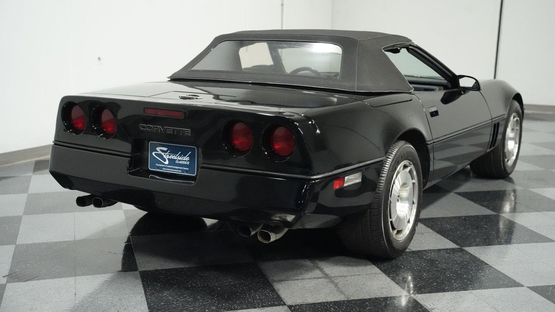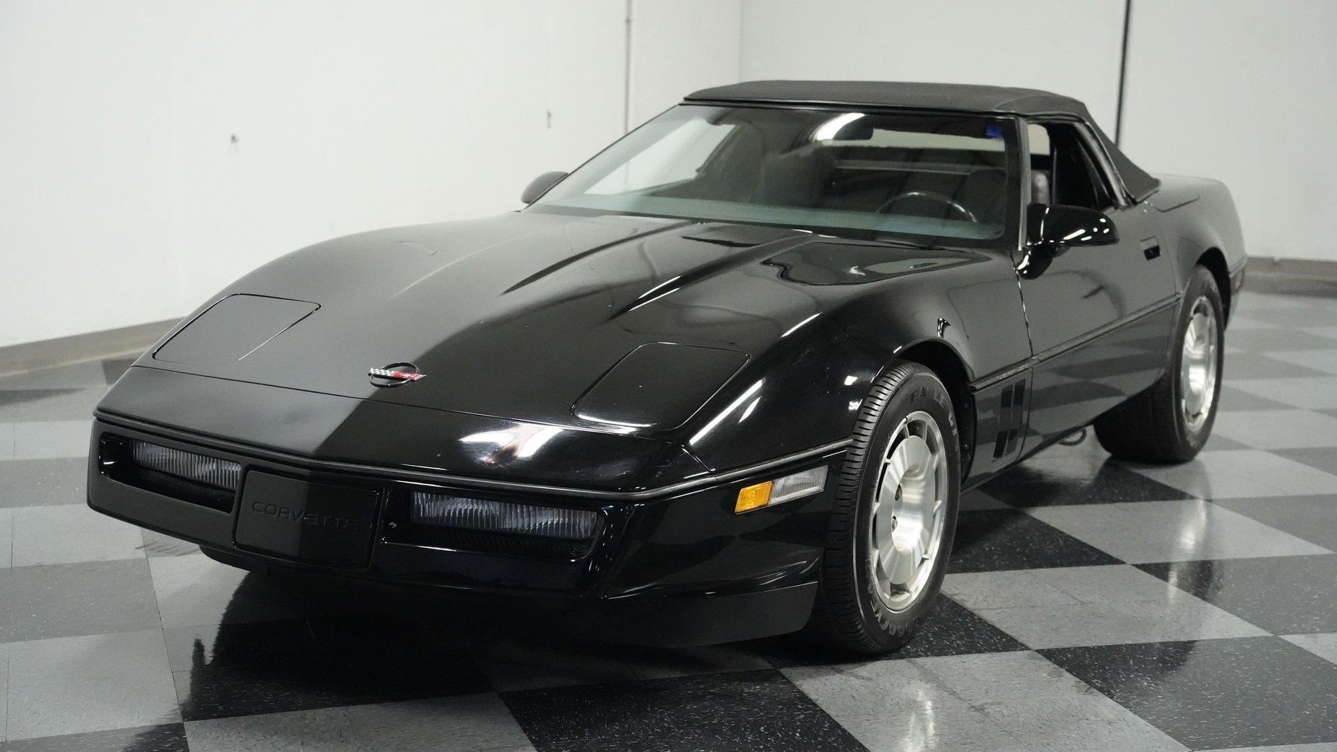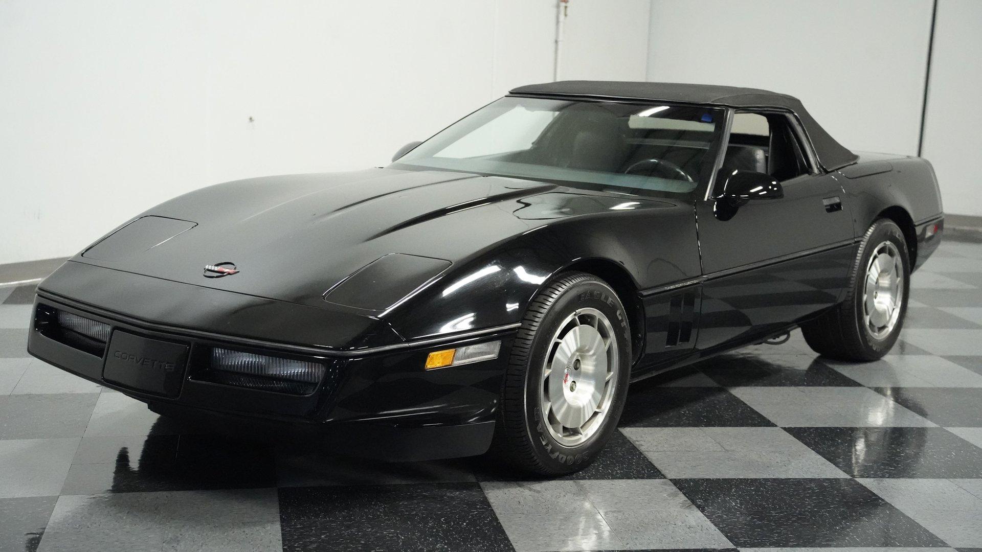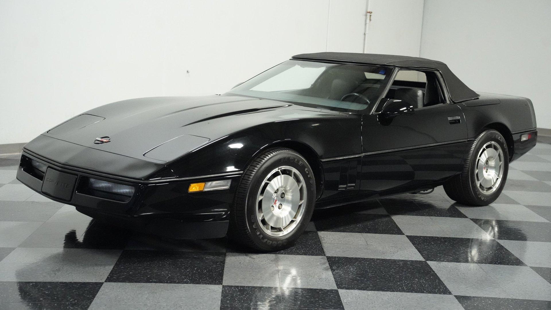 First year for the C4 convertible, this 1986 Chevrolet Corvette displays a sleek black exterior complemented by a black canvas top. The sculpted body exhibits a low-slung profile, unmistakably Corvette in every line and curve. Riding on 16-inch wheels wrapped in 255/50R16 tires, this drop-top Corvette presents an athletic stance on the road. Clean glass throughout adds to the composed look, with lights and trim pieces maintaining their factory appearance. Inside, graphite leather bucket seats provide comfort for driver and passenger. The driver-centered dash layout puts all controls within easy reach, featuring clear, functional gauges and instrumentation. Power windows, locks, seats, and mirrors add convenience, while air conditioning keeps the cabin comfortable regardless of outside temperature. The center console houses the manual shifter, complemented by a telescopic and tilt steering wheel for optimal driving position. An AM/FM cassette player supplies the soundtrack for open-air cruising. Under the forward-hinged hood sits a 5.7 Liter TPI V8 engine, utilizing Tuned Port Injection for optimal fuel delivery and performance. A Doug Nash 4+3 transmission with 4-speed manual and electric overdrive puts power to the rear wheels. The independent front suspension works with transverse leaf springs and shocks in the rear for balanced handling. Four-wheel power disc brakes provide stopping power. The dual exhaust system features Super Turbo mufflers with a resonator delete for an enhanced exhaust note while maintaining civility. HIGHLIGHTS: 5.7 Liter TPI V8 Engine 4 Speed Manual Transmission w/ Electric Overdrive Tuned Port Fuel Injection Dual Exhaust w/ Super Turbo Mufflers Resonator Delete Independent Front Suspension Transverse Leaf Springs w/ Shocks Rear Suspension Four-Wheel Power Disc Brakes Black Exterior Paint Black Canvas Convertible Top 16" Wheels 255/50R16 Tires Graphite Interior With Power Leather Bucket Seats Air Conditioning Power Windows, Locks, Mirrors Tilt Steering Wheel Telescopic Steering Wheel Power Steering Cruise Control AM/FM Cassette Player 30,802 Actual Miles Low mileage and solid performance make this 1986 Chevrolet Corvette convertible an appealing choice for collectors and drivers alike. With its historical significance as a first-year C4 convertible and pace car replica status, this black-on-graphite Corvette offers both driving pleasure and investment potential. Call today!