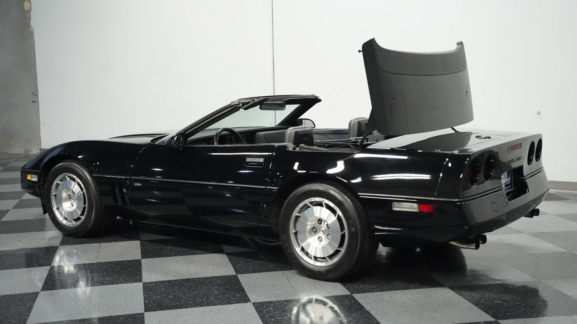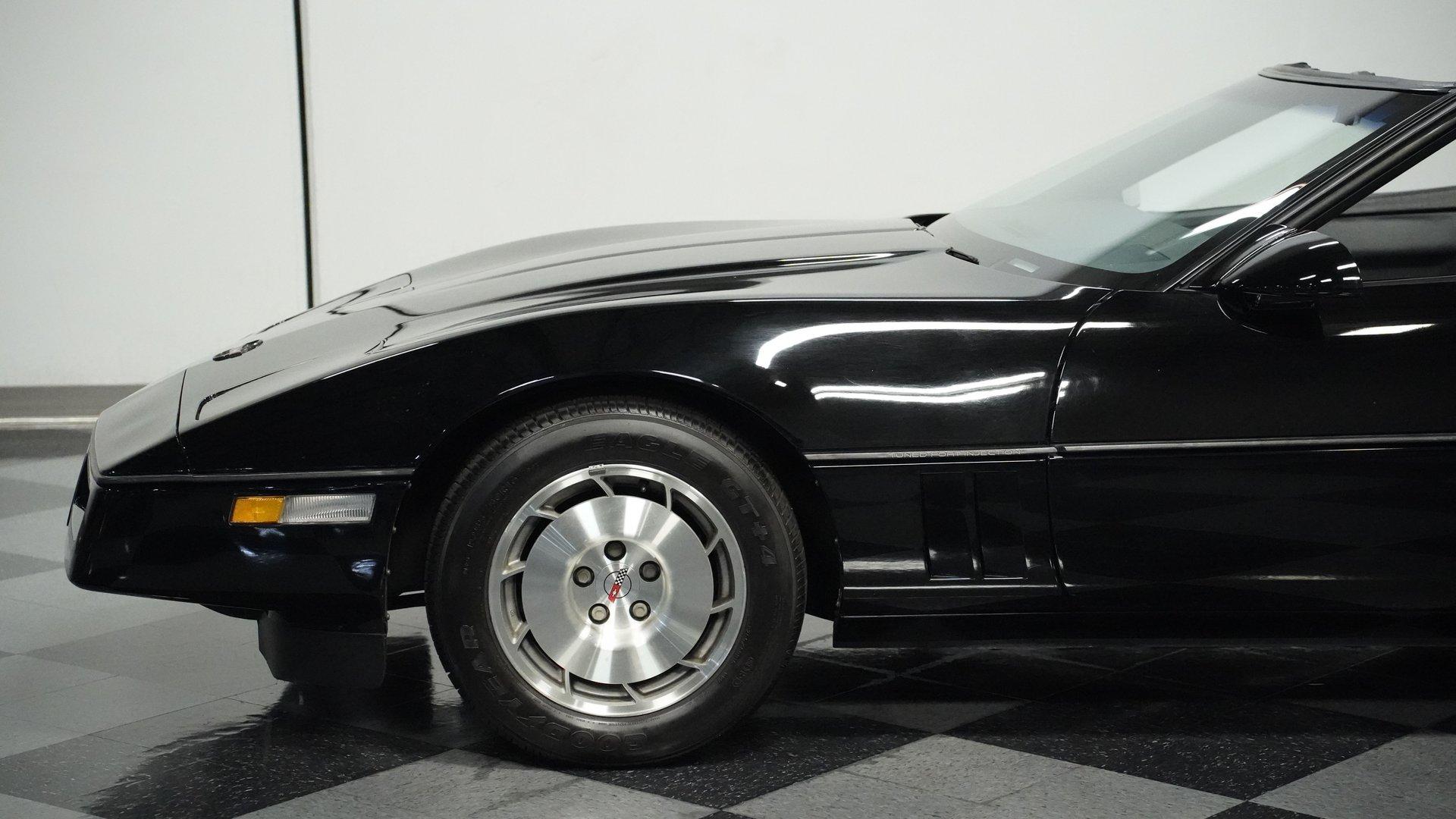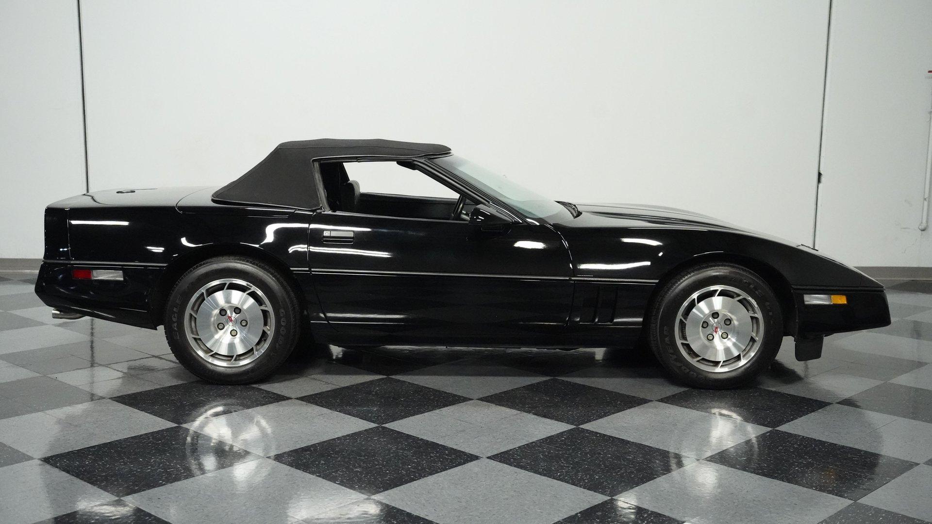 First year for the C4 convertible, this 1986 Chevrolet Corvette displays a sleek black exterior complemented by a black canvas top. The sculpted body exhibits a low-slung profile, unmistakably Corvette in every line and curve. Riding on 16-inch wheels wrapped in 255/50R16 tires, this drop-top Corvette presents an athletic stance on the road. Clean glass throughout adds to the composed look, with lights and trim pieces maintaining their factory appearance. Inside, graphite leather bucket seats provide comfort for driver and passenger. The driver-centered dash layout puts all controls within easy reach, featuring clear, functional gauges and instrumentation. Power windows, locks, seats, and mirrors add convenience, while air conditioning keeps the cabin comfortable regardless of outside temperature. The center console houses the manual shifter, complemented by a telescopic and tilt steering wheel for optimal driving position. An AM/FM cassette player supplies the soundtrack for open-air cruising. Under the forward-hinged hood sits a 5.7 Liter TPI V8 engine, utilizing Tuned Port Injection for optimal fuel delivery and performance. A Doug Nash 4+3 transmission with 4-speed manual and electric overdrive puts power to the rear wheels. The independent front suspension works with transverse leaf springs and shocks in the rear for balanced handling. Four-wheel power disc brakes provide stopping power. The dual exhaust system features Super Turbo mufflers with a resonator delete for an enhanced exhaust note while maintaining civility. HIGHLIGHTS: 5.7 Liter TPI V8 Engine 4 Speed Manual Transmission w/ Electric Overdrive Tuned Port Fuel Injection Dual Exhaust w/ Super Turbo Mufflers Resonator Delete Independent Front Suspension Transverse Leaf Springs w/ Shocks Rear Suspension Four-Wheel Power Disc Brakes Black Exterior Paint Black Canvas Convertible Top 16" Wheels 255/50R16 Tires Graphite Interior With Power Leather Bucket Seats Air Conditioning Power Windows, Locks, Mirrors Tilt Steering Wheel Telescopic Steering Wheel Power Steering Cruise Control AM/FM Cassette Player 30,802 Actual Miles Low mileage and solid performance make this 1986 Chevrolet Corvette convertible an appealing choice for collectors and drivers alike. With its historical significance as a first-year C4 convertible and pace car replica status, this black-on-graphite Corvette offers both driving pleasure and investment potential. Call today!