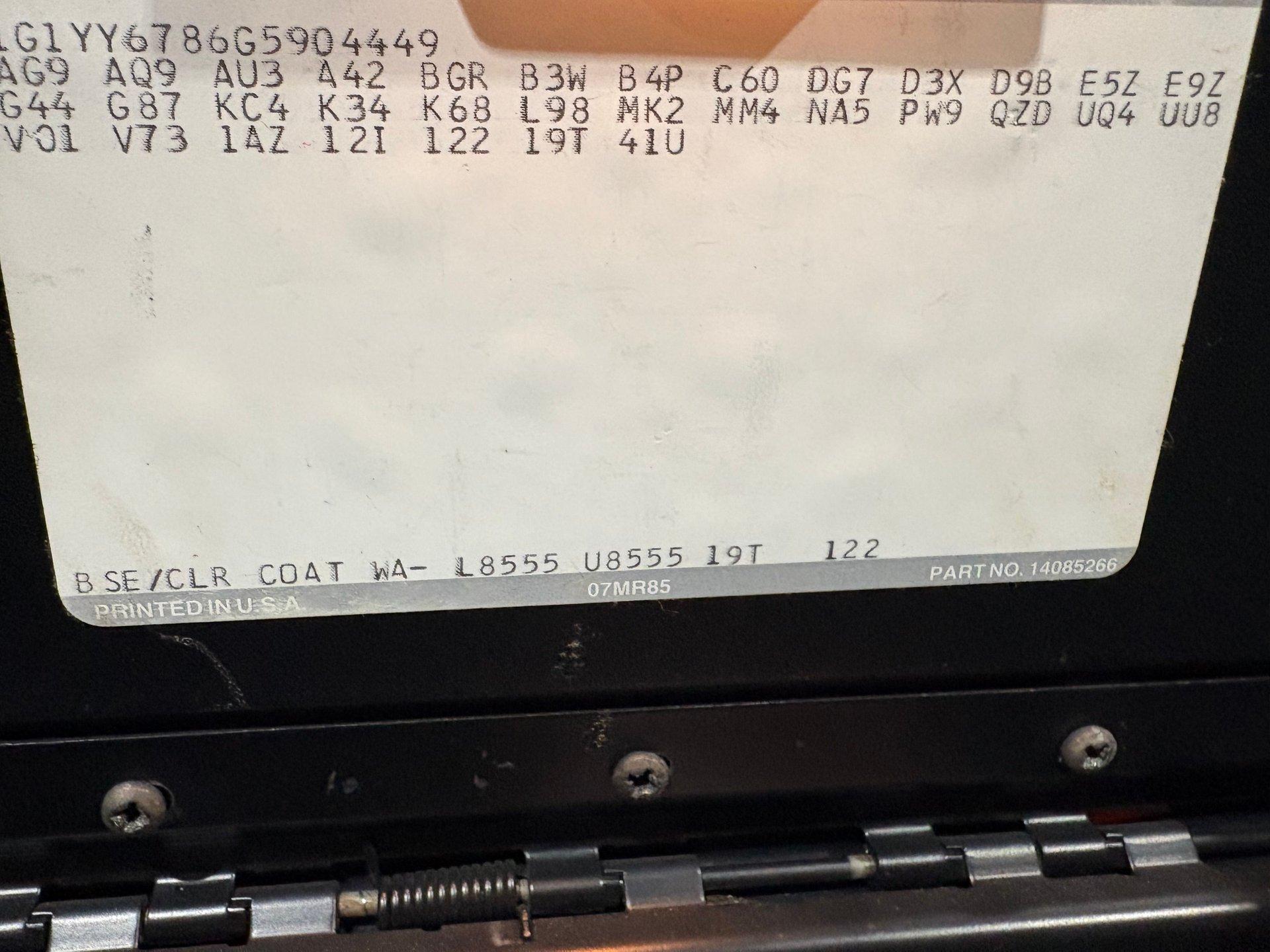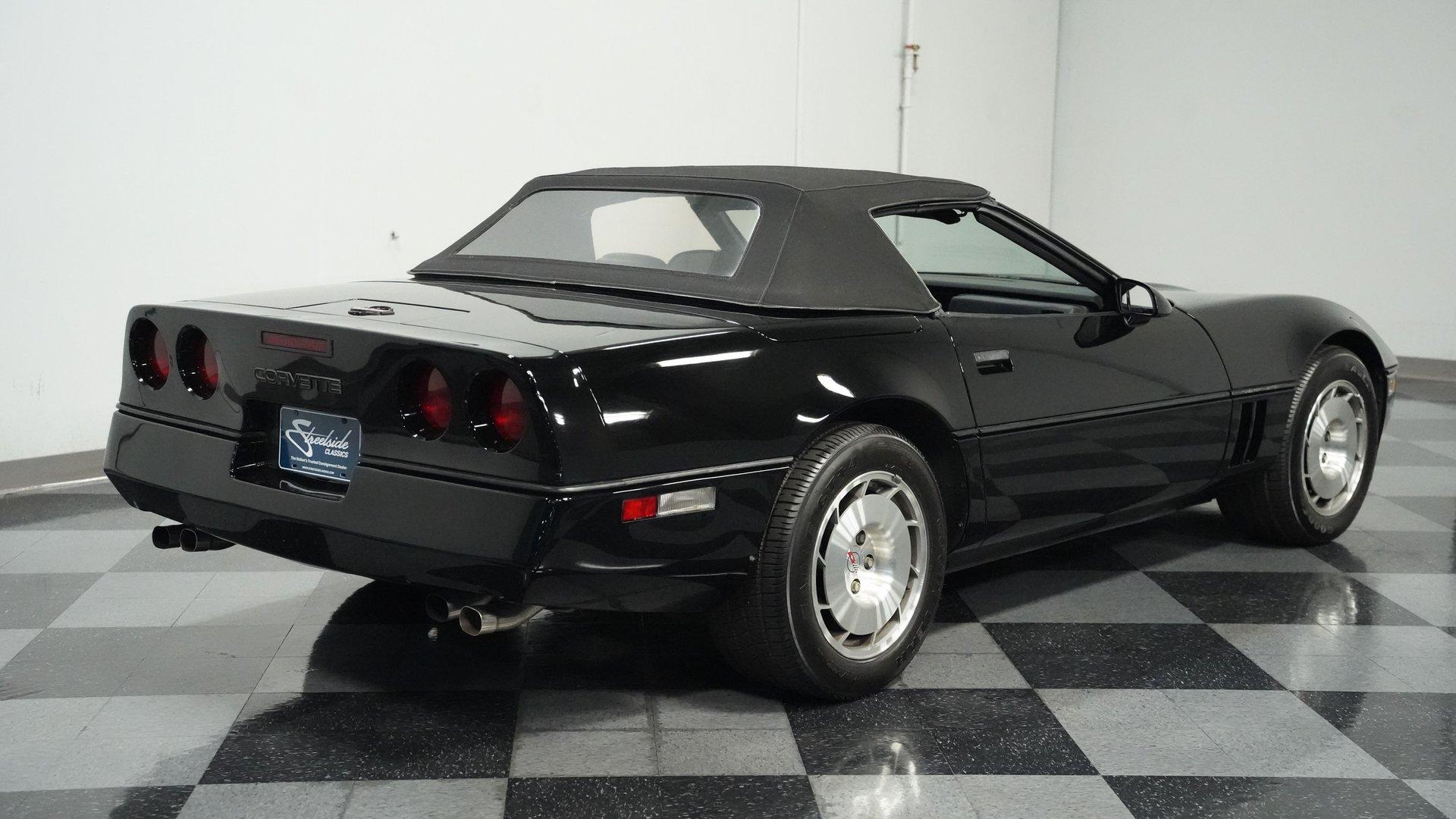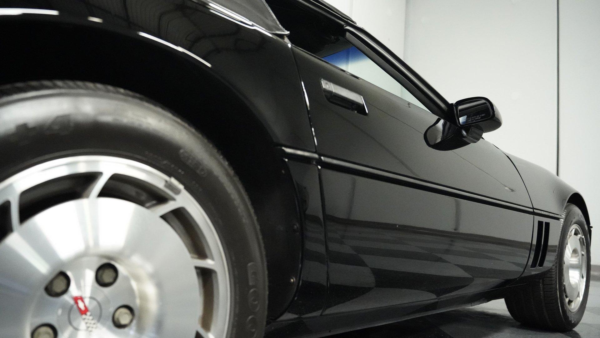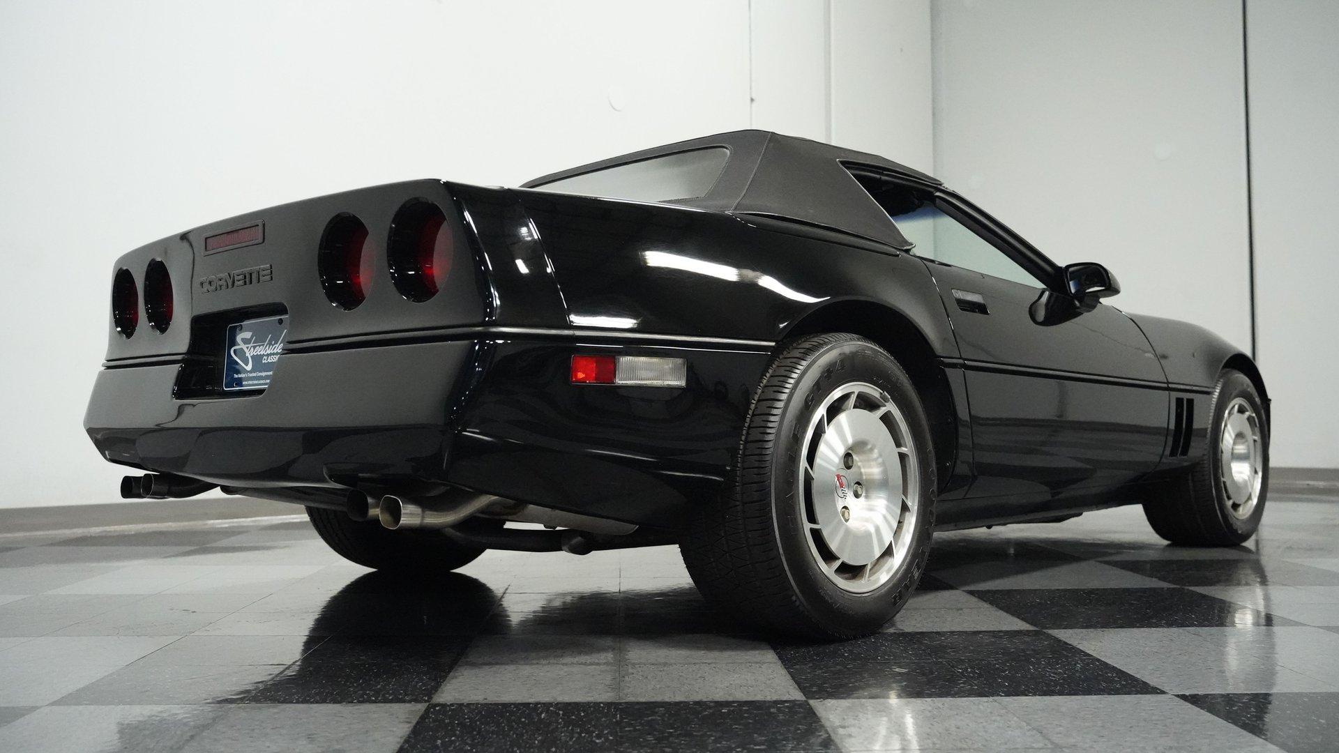 First year for the C4 convertible, this 1986 Chevrolet Corvette displays a sleek black exterior complemented by a black canvas top. The sculpted body exhibits a low-slung profile, unmistakably Corvette in every line and curve. Riding on 16-inch wheels wrapped in 255/50R16 tires, this drop-top Corvette presents an athletic stance on the road. Clean glass throughout adds to the composed look, with lights and trim pieces maintaining their factory appearance. Inside, graphite leather bucket seats provide comfort for driver and passenger. The driver-centered dash layout puts all controls within easy reach, featuring clear, functional gauges and instrumentation. Power windows, locks, seats, and mirrors add convenience, while air conditioning keeps the cabin comfortable regardless of outside temperature. The center console houses the manual shifter, complemented by a telescopic and tilt steering wheel for optimal driving position. An AM/FM cassette player supplies the soundtrack for open-air cruising. Under the forward-hinged hood sits a 5.7 Liter TPI V8 engine, utilizing Tuned Port Injection for optimal fuel delivery and performance. A Doug Nash 4+3 transmission with 4-speed manual and electric overdrive puts power to the rear wheels. The independent front suspension works with transverse leaf springs and shocks in the rear for balanced handling. Four-wheel power disc brakes provide stopping power. The dual exhaust system features Super Turbo mufflers with a resonator delete for an enhanced exhaust note while maintaining civility. HIGHLIGHTS: 5.7 Liter TPI V8 Engine 4 Speed Manual Transmission w/ Electric Overdrive Tuned Port Fuel Injection Dual Exhaust w/ Super Turbo Mufflers Resonator Delete Independent Front Suspension Transverse Leaf Springs w/ Shocks Rear Suspension Four-Wheel Power Disc Brakes Black Exterior Paint Black Canvas Convertible Top 16" Wheels 255/50R16 Tires Graphite Interior With Power Leather Bucket Seats Air Conditioning Power Windows, Locks, Mirrors Tilt Steering Wheel Telescopic Steering Wheel Power Steering Cruise Control AM/FM Cassette Player 30,802 Actual Miles Low mileage and solid performance make this 1986 Chevrolet Corvette convertible an appealing choice for collectors and drivers alike. With its historical significance as a first-year C4 convertible and pace car replica status, this black-on-graphite Corvette offers both driving pleasure and investment potential. Call today!