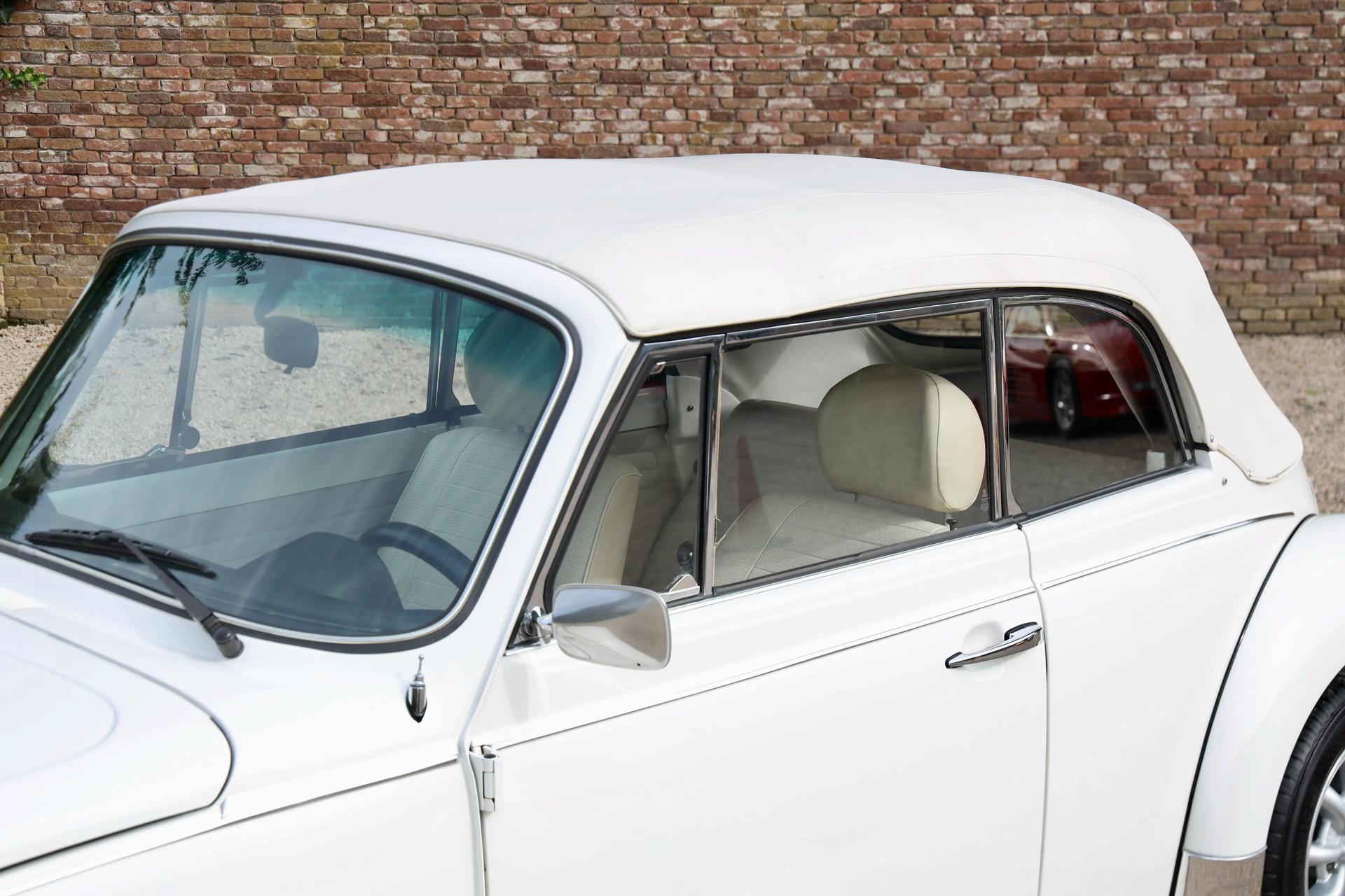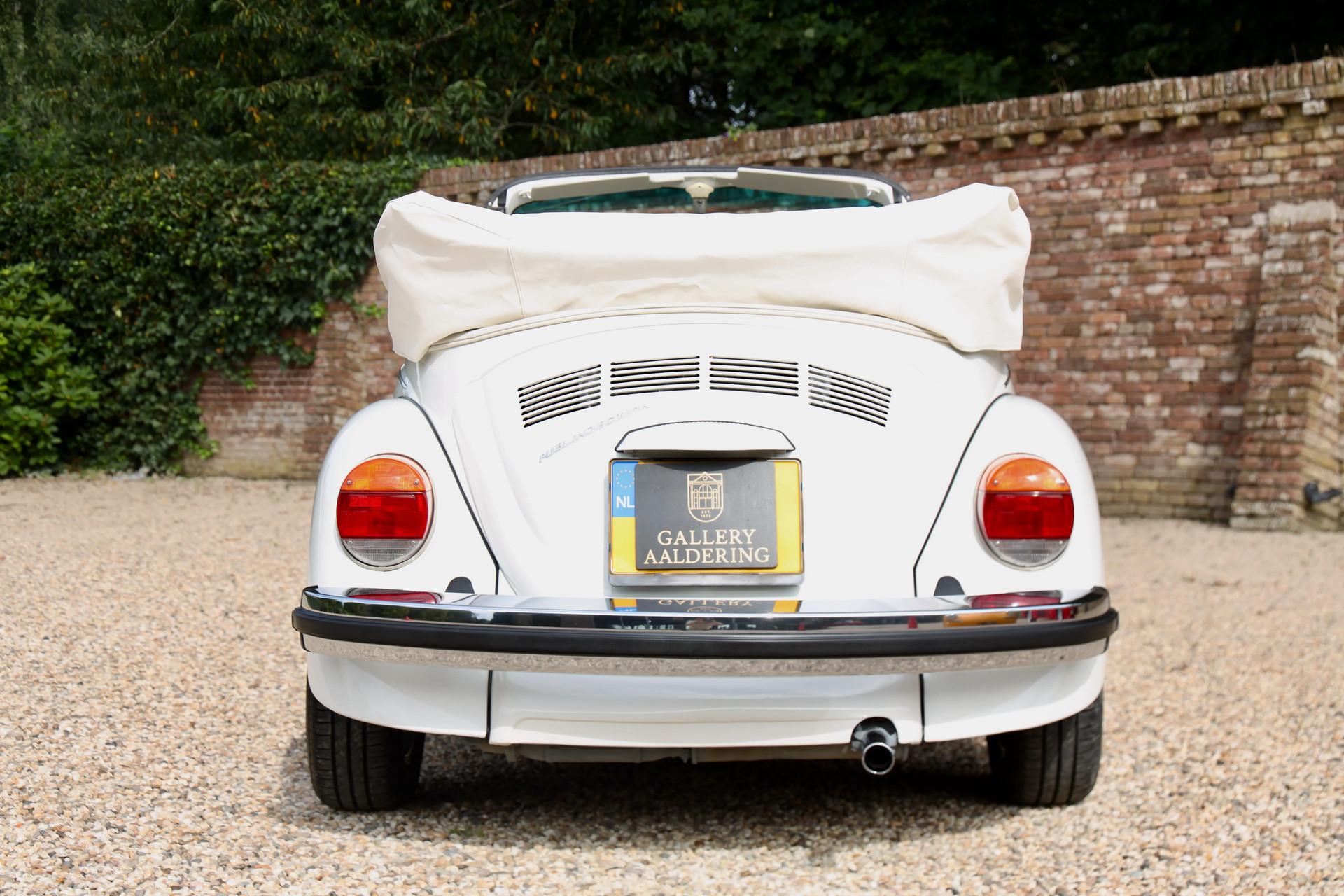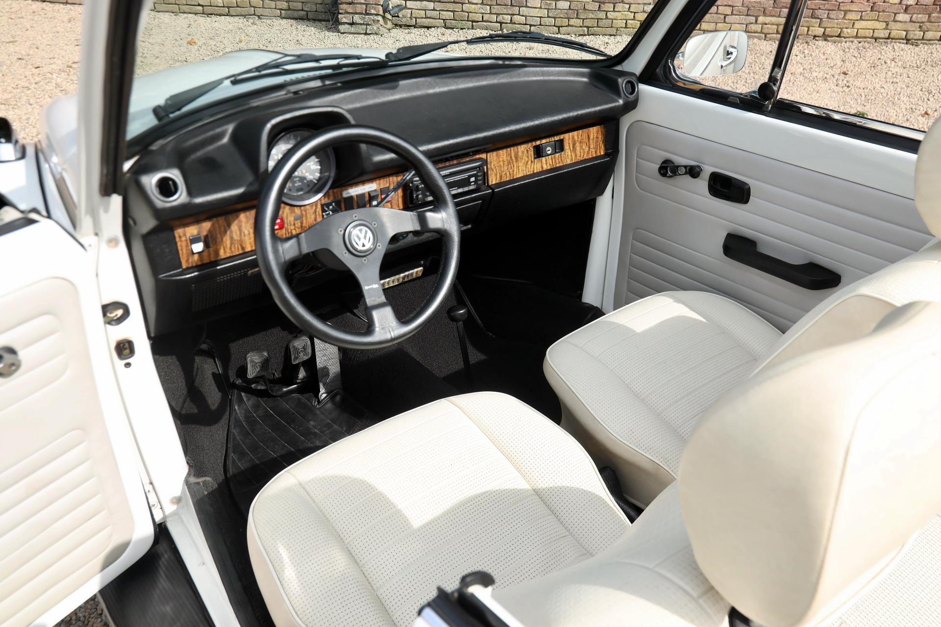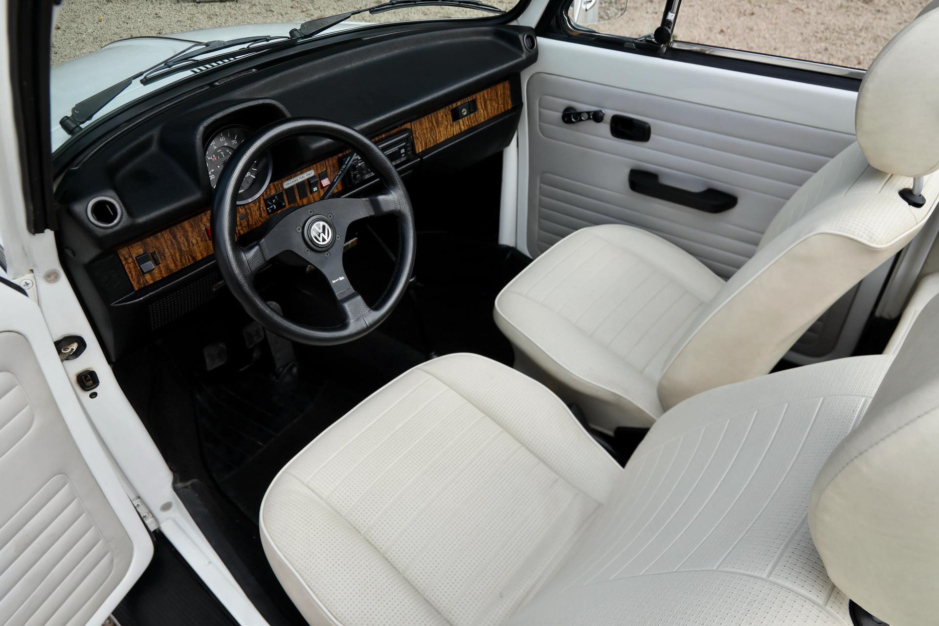 The bodywork is really neat. A bare-metal respray in the 1990s was carried out with precision, and the Alpine White paint still shines beautifully. This is a body that has not been welded and in very clean condition. The panel fit is crisp, the seams even, and the Empi GT-8 wheels add just the right touch of flair to this Champagne Edition.