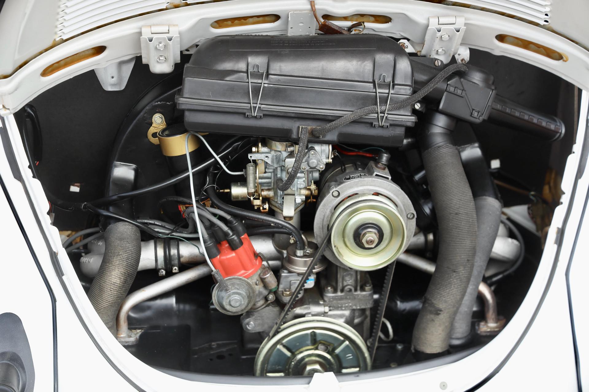 At the rear sits the unmistakable air-cooled engine, starting easily and delivering that classic Beetle sound. This 1303 has been fitted with a carburetor for added reliability. On the road, the drive is pure pleasure. The suspension feels confident, the gearbox shifts smoothly, and the convertible top folds down easily for a breezy cruise under the sun.