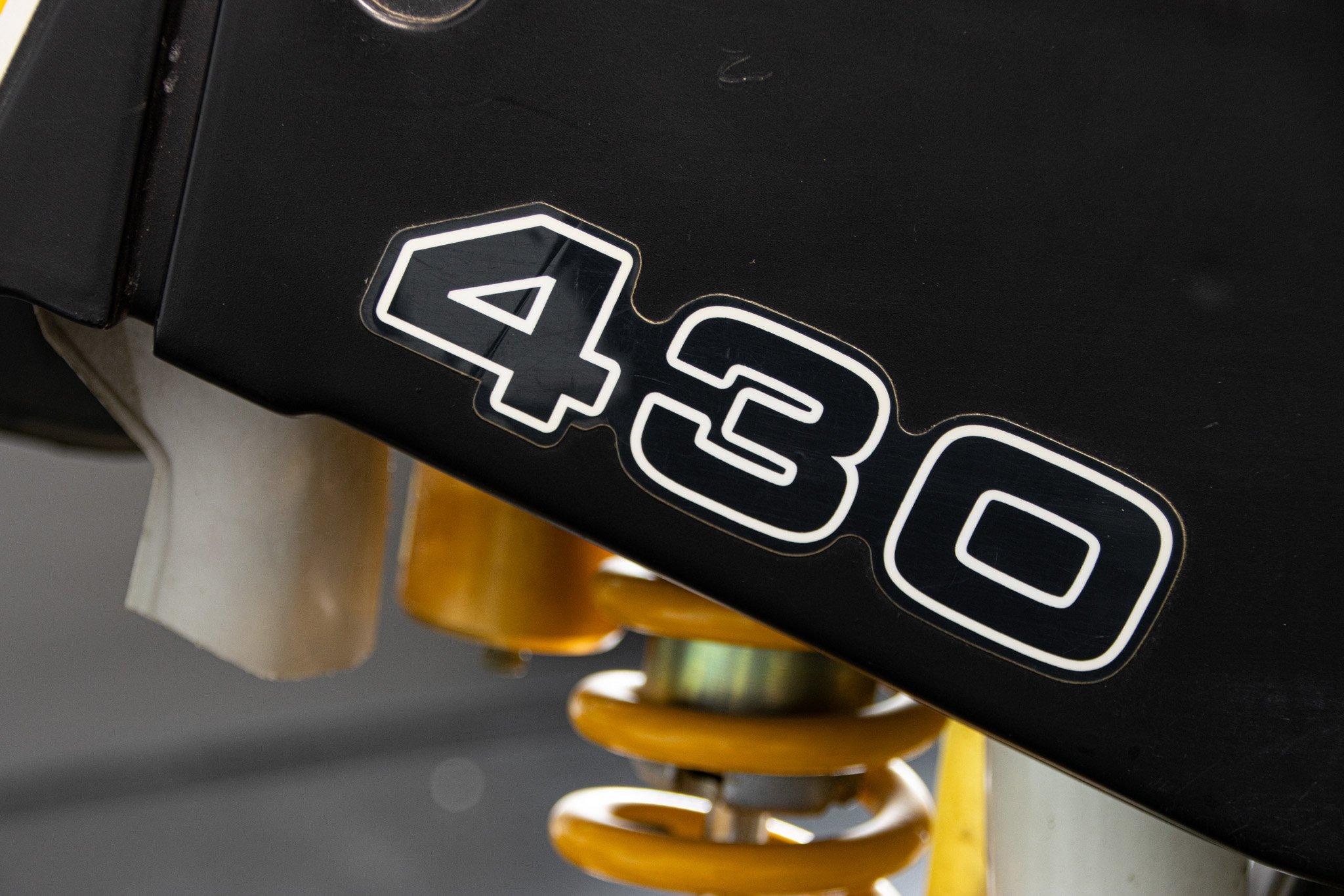 Quando si decise di ridurre la cilindrata delle 500cc due tempi da cross, a causa della difficile guidabilità, arrivo, nel 1987 una delle migliori machine da sterrato mai prodotte. Husqvarna 430 è questo. Potente in ogni range di utilizzo, difficile tenerla con la ruota anteriore a terra. Rispetto alla sorellina 400, minori vibrazioni, frizione rinforzata, sospensioni migliorate, comparto freni più perfomante. Sella lunga per utilizzarla tutti i giorni. Una di quelle moto che ti rende un pilota piu veloce a prescindere. Questo esemplare restaurato è perfetto. Da vedere.