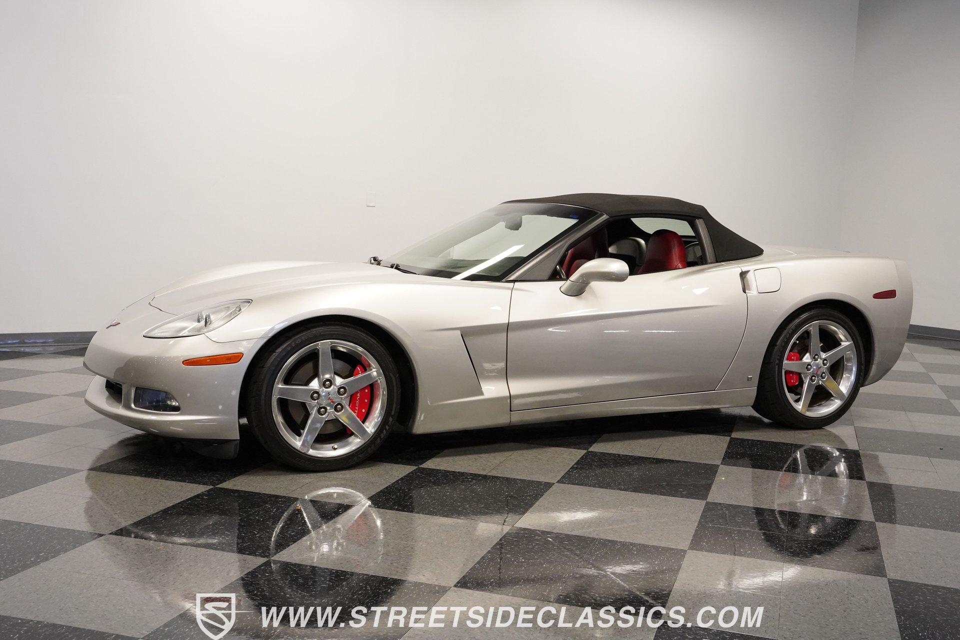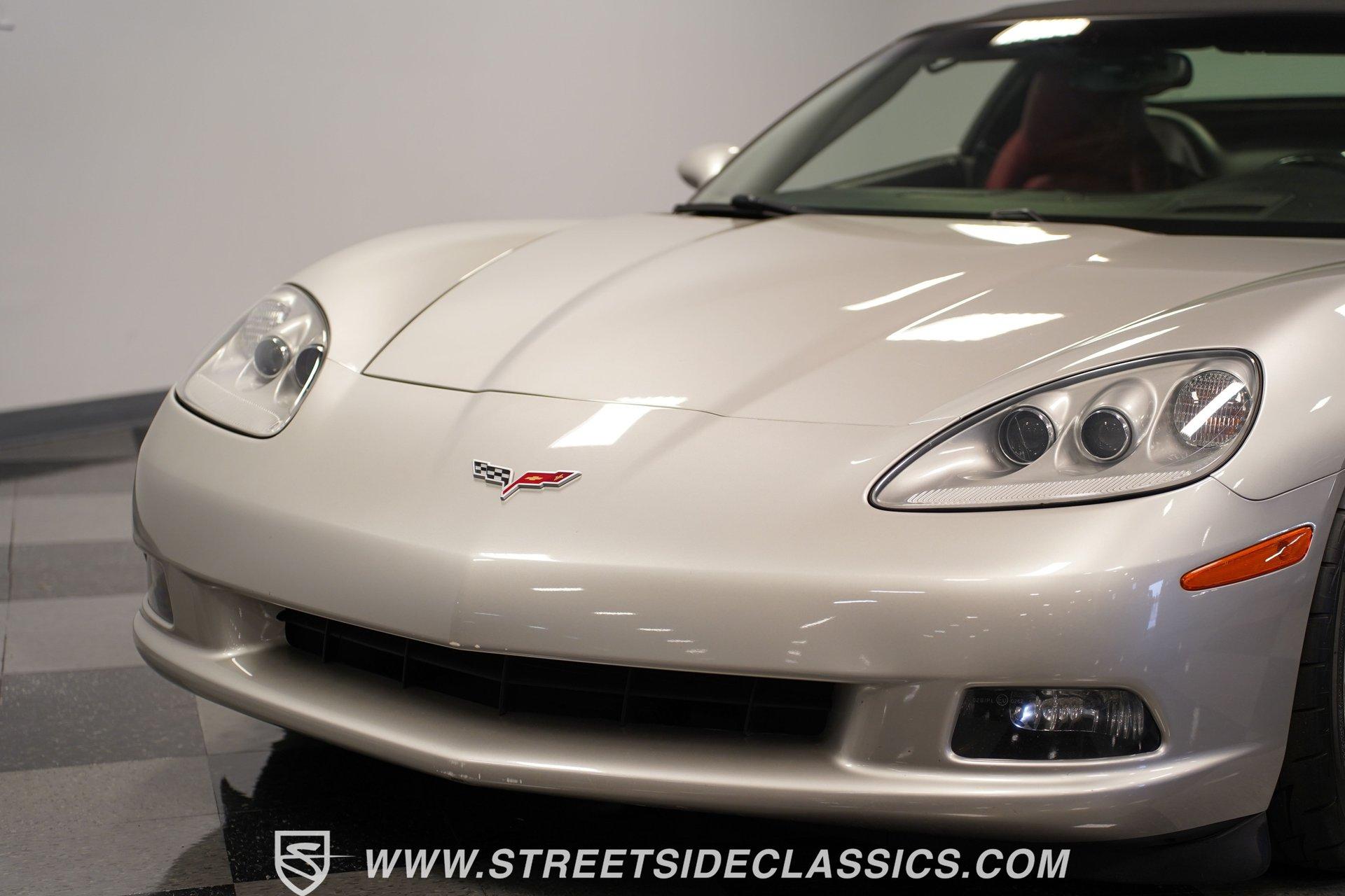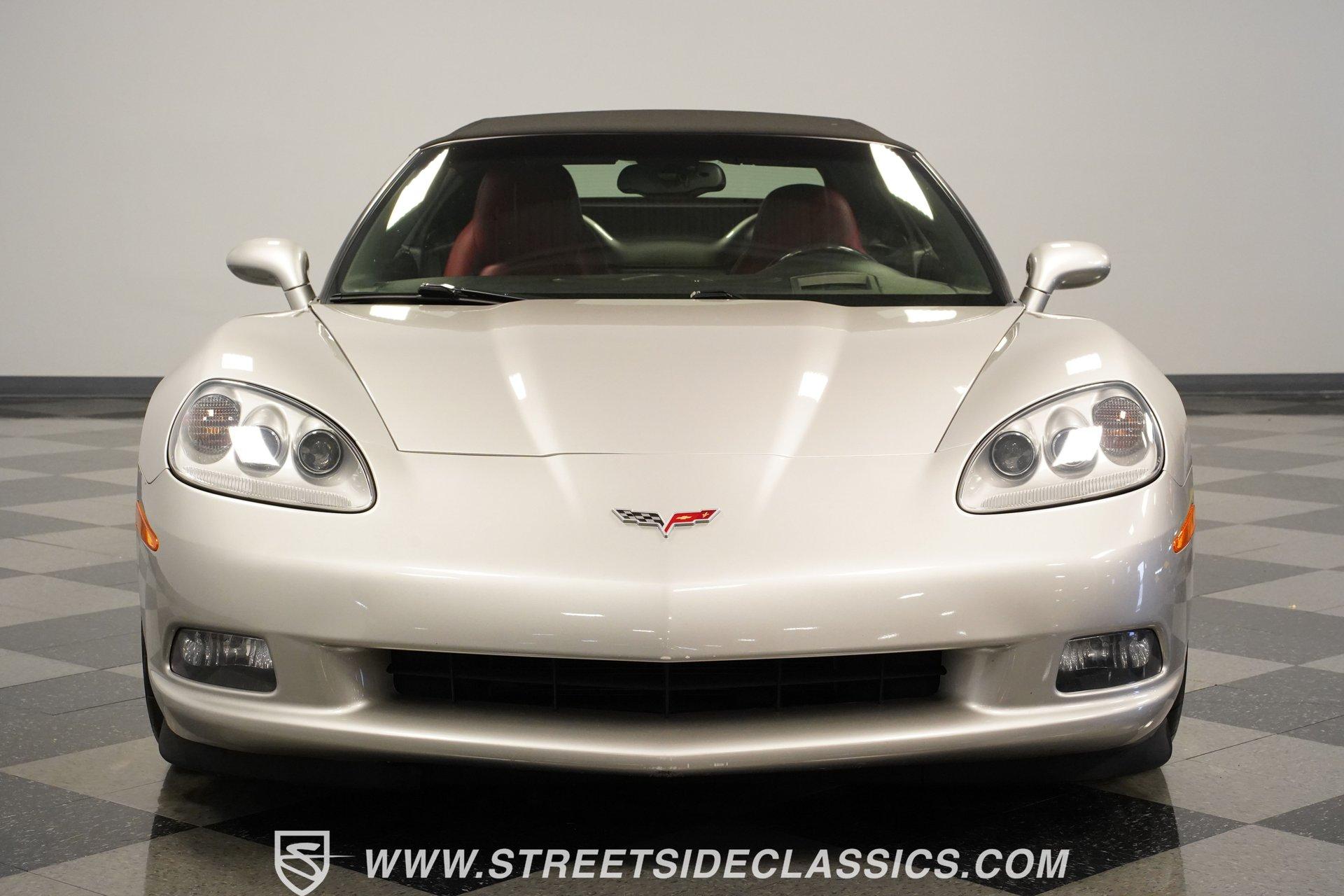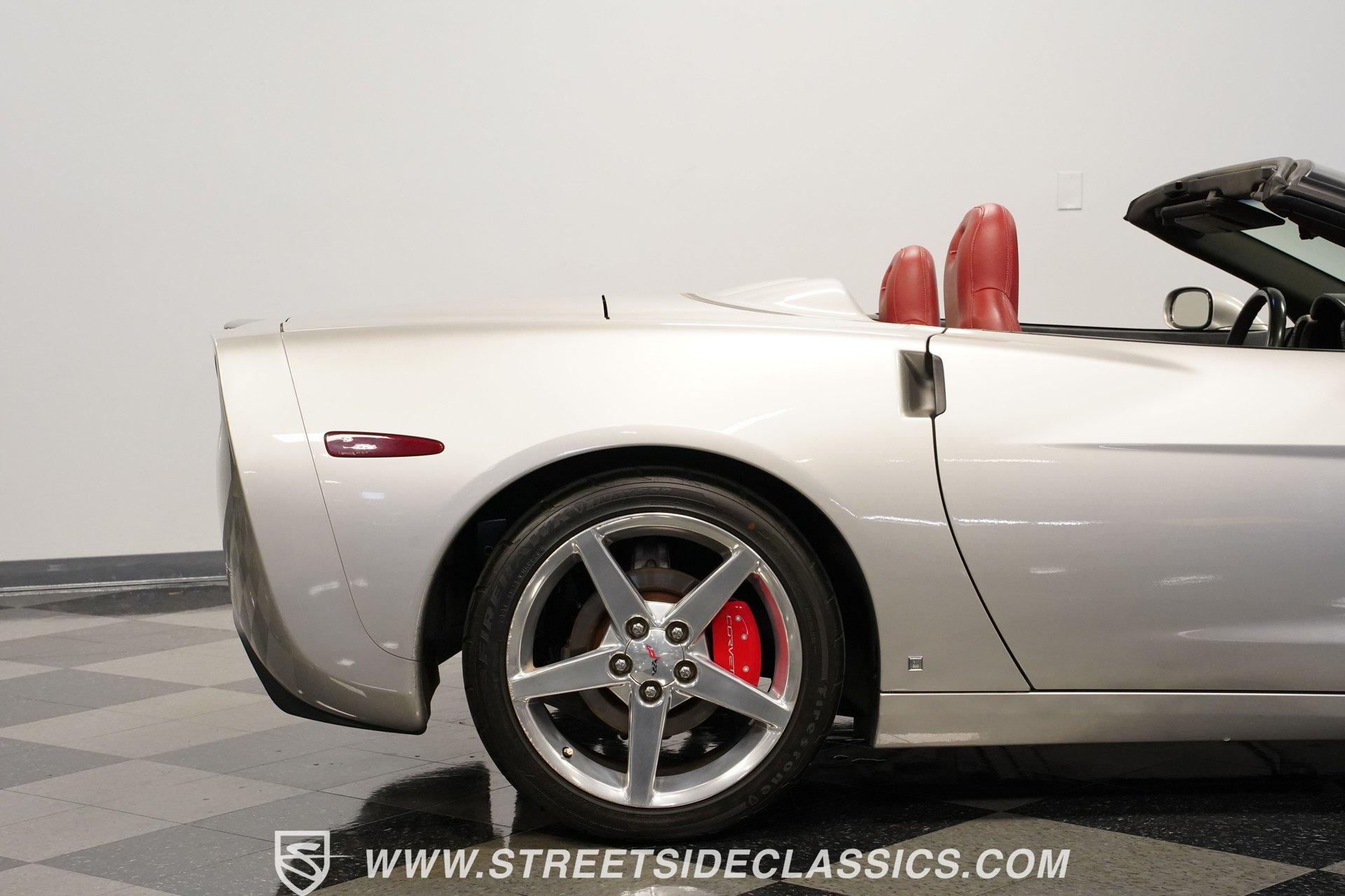 This 2006 Chevrolet Corvette 3LT Convertible giving you open-air freedom and stylish good looks. With only 26,002 miles on the odometer, this Corvette is exceptional. Draped in sleek Light Tarnished Silver Metallic paint, this American sports car icon cuts a striking figure on the road. The aggressive stance is amplified by staggered wheel sizes - 18" up front and 19" in the rear, wrapped in 245/40R18 front and 285/35ZR19 rear tires. This combination not only looks great but also provides excellent traction and handling characteristics. Rare and luxurious red leather adorns the interior, creating a luxurious contrast to the silver exterior. Red interiors are the rarest find on the 2006 Corvette, and it is believed only 422 convertibles were produced with one. The 3LT package pulls out all the stops, featuring a heads-up display that projects vital information onto the windshield, keeping your eyes on the road where they belong. Heated power seats with memory settings ensure optimal comfort for both driver and passenger. The Bose stereo system fills the cabin with crystal-clear sound, while the convertible top allows you to tailor the driving experience to your preferences. Powering this Corvette is the potent 6.0L LS2 V8 engine, a powerhouse that delivers exhilarating performance. Paired with a slick 6-speed manual transmission, it offers a perfect blend of performance and daily drivability. A factory six-speed manual transmission is rare, with only about 1 in every 8 convertibles optioned with one. Power steering and four-wheel disc brakes ensure precise control and stopping power. The dual exhaust system not only enhances performance but also produces a satisfying growl from the Corsa Mufflers that'll put a grin on your face every time you hit the accelerator. HIGHLIGHTS: 6.0L LS2 V8 Engine Rare 6-Speed Manual Transmission 26,002 Miles 4-Wheel Power Disc Brakes Dual Exhaust System Light Tarnished Silver Metallic Paint Corsa Mufflers and Tips 18" Front / 19" Rear Wheels 245/40R18 Front, 285/35ZR19 Rear Tires Rare Red Leather Interior Heads-Up Display Heated Power Seats with Memory Touchscreen Factory Stereo System Red Corvette Caliper Covers Air Conditioning Black Cloth Convertible Top Owner's Manuals Radar Detector Original Corvette Floor Mats This 2006 Chevrolet Corvette 3LT Convertible, with its potent V8, rare and luxurious red interior, and advanced performance features, offers an exceptional driving experience. Carving up winding roads or cruising on the highway, this Corvette delivers performance and comfort. Call today! Description Coming Soon, Call 704-598-2130 For Details!