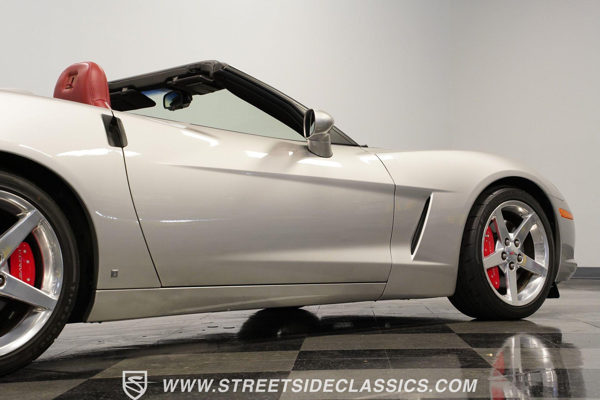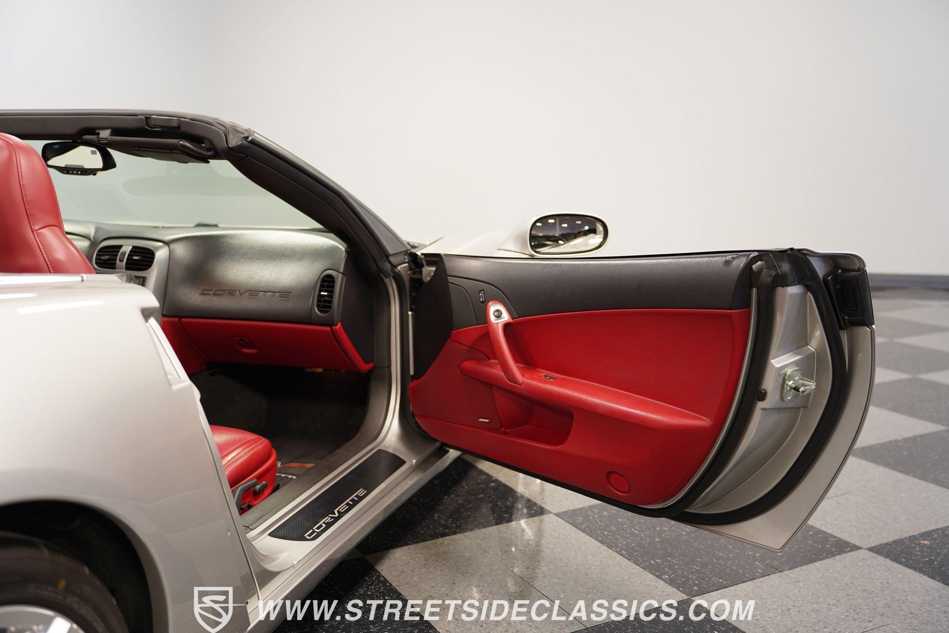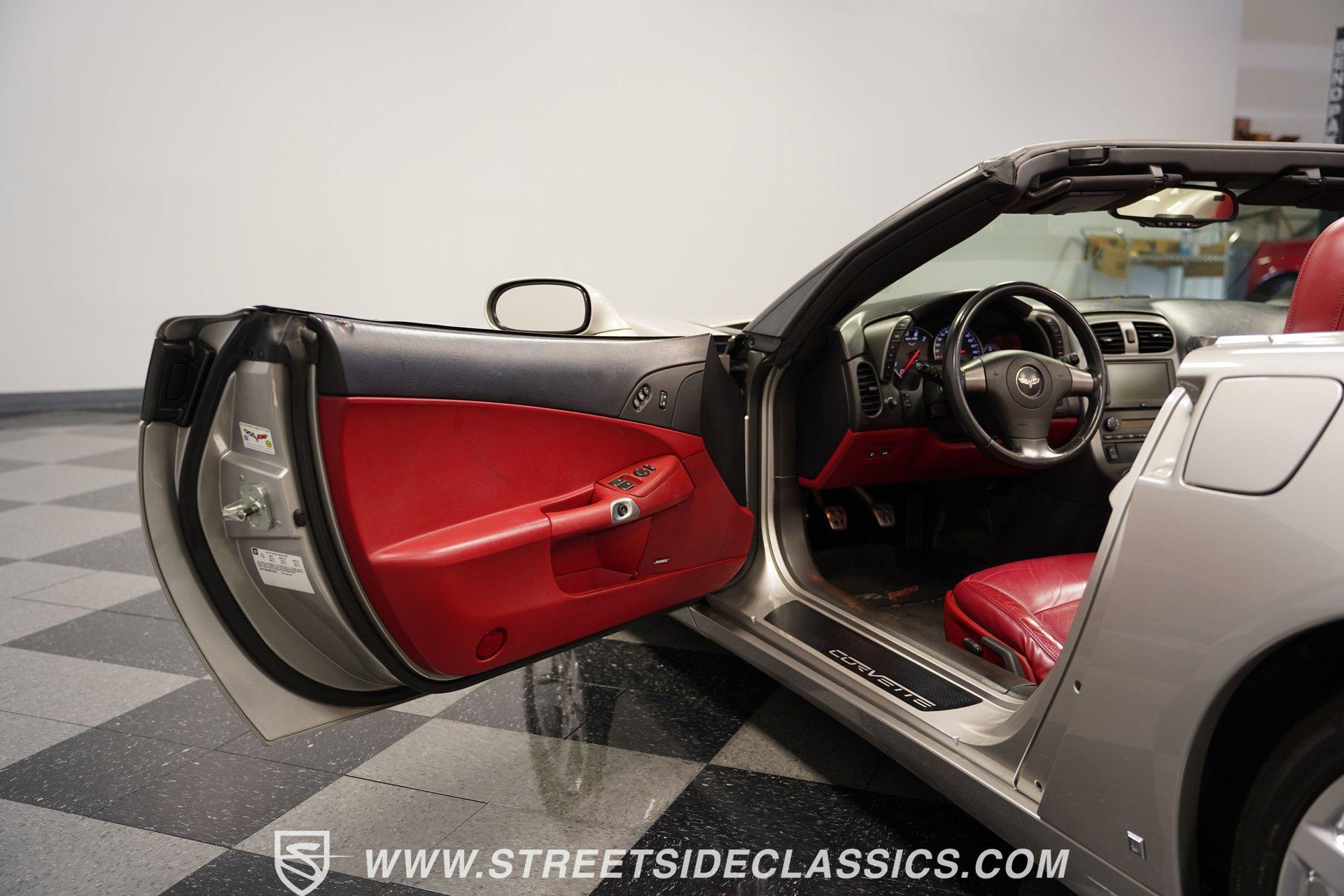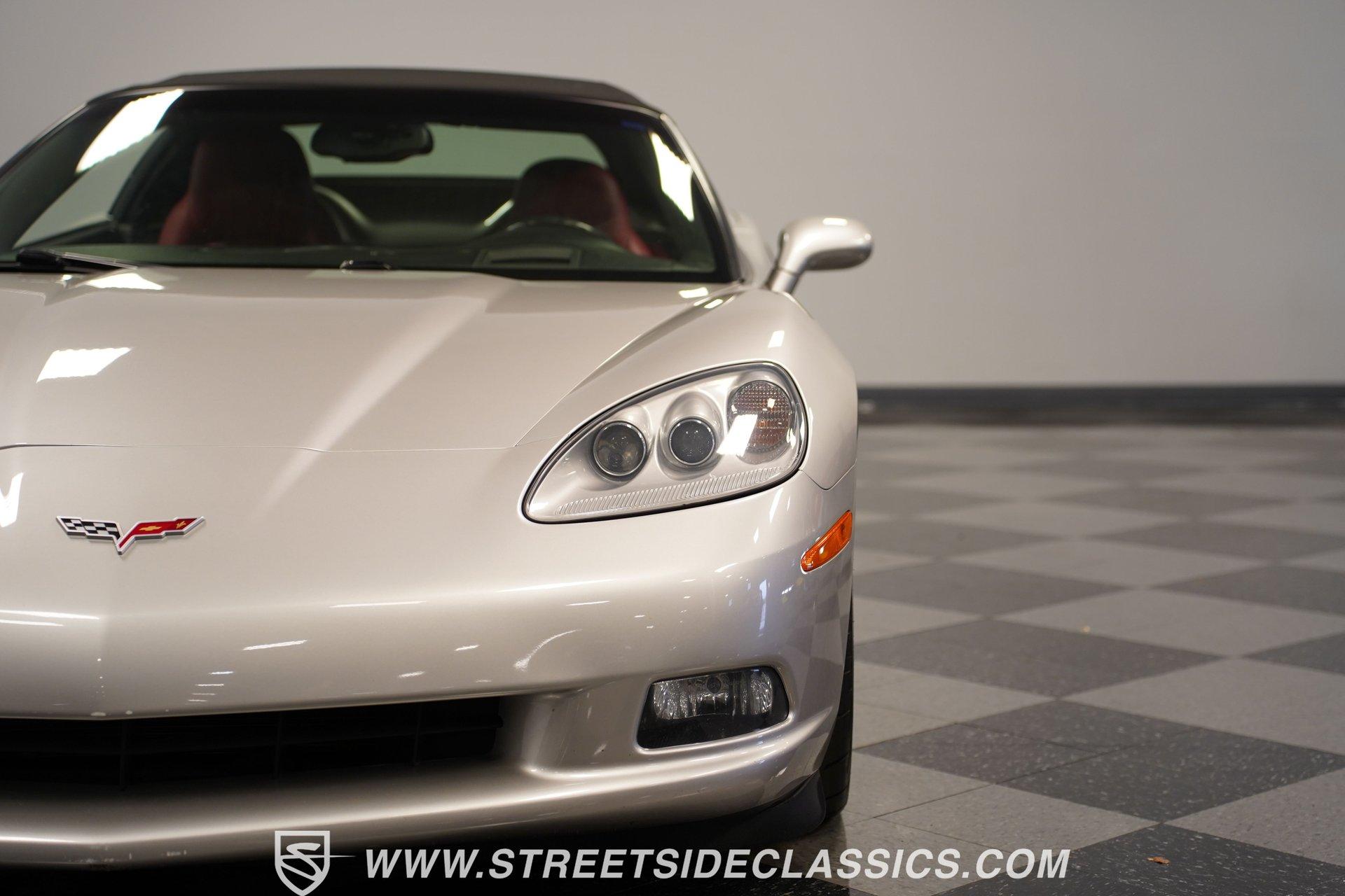 This 2006 Chevrolet Corvette 3LT Convertible giving you open-air freedom and stylish good looks. With only 26,002 miles on the odometer, this Corvette is exceptional. Draped in sleek Light Tarnished Silver Metallic paint, this American sports car icon cuts a striking figure on the road. The aggressive stance is amplified by staggered wheel sizes - 18" up front and 19" in the rear, wrapped in 245/40R18 front and 285/35ZR19 rear tires. This combination not only looks great but also provides excellent traction and handling characteristics. Rare and luxurious red leather adorns the interior, creating a luxurious contrast to the silver exterior. Red interiors are the rarest find on the 2006 Corvette, and it is believed only 422 convertibles were produced with one. The 3LT package pulls out all the stops, featuring a heads-up display that projects vital information onto the windshield, keeping your eyes on the road where they belong. Heated power seats with memory settings ensure optimal comfort for both driver and passenger. The Bose stereo system fills the cabin with crystal-clear sound, while the convertible top allows you to tailor the driving experience to your preferences. Powering this Corvette is the potent 6.0L LS2 V8 engine, a powerhouse that delivers exhilarating performance. Paired with a slick 6-speed manual transmission, it offers a perfect blend of performance and daily drivability. A factory six-speed manual transmission is rare, with only about 1 in every 8 convertibles optioned with one. Power steering and four-wheel disc brakes ensure precise control and stopping power. The dual exhaust system not only enhances performance but also produces a satisfying growl from the Corsa Mufflers that'll put a grin on your face every time you hit the accelerator. HIGHLIGHTS: 6.0L LS2 V8 Engine Rare 6-Speed Manual Transmission 26,002 Miles 4-Wheel Power Disc Brakes Dual Exhaust System Light Tarnished Silver Metallic Paint Corsa Mufflers and Tips 18" Front / 19" Rear Wheels 245/40R18 Front, 285/35ZR19 Rear Tires Rare Red Leather Interior Heads-Up Display Heated Power Seats with Memory Touchscreen Factory Stereo System Red Corvette Caliper Covers Air Conditioning Black Cloth Convertible Top Owner's Manuals Radar Detector Original Corvette Floor Mats This 2006 Chevrolet Corvette 3LT Convertible, with its potent V8, rare and luxurious red interior, and advanced performance features, offers an exceptional driving experience. Carving up winding roads or cruising on the highway, this Corvette delivers performance and comfort. Call today! Description Coming Soon, Call 704-598-2130 For Details!