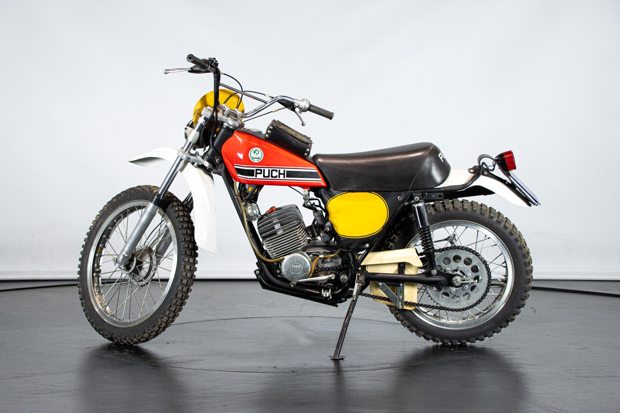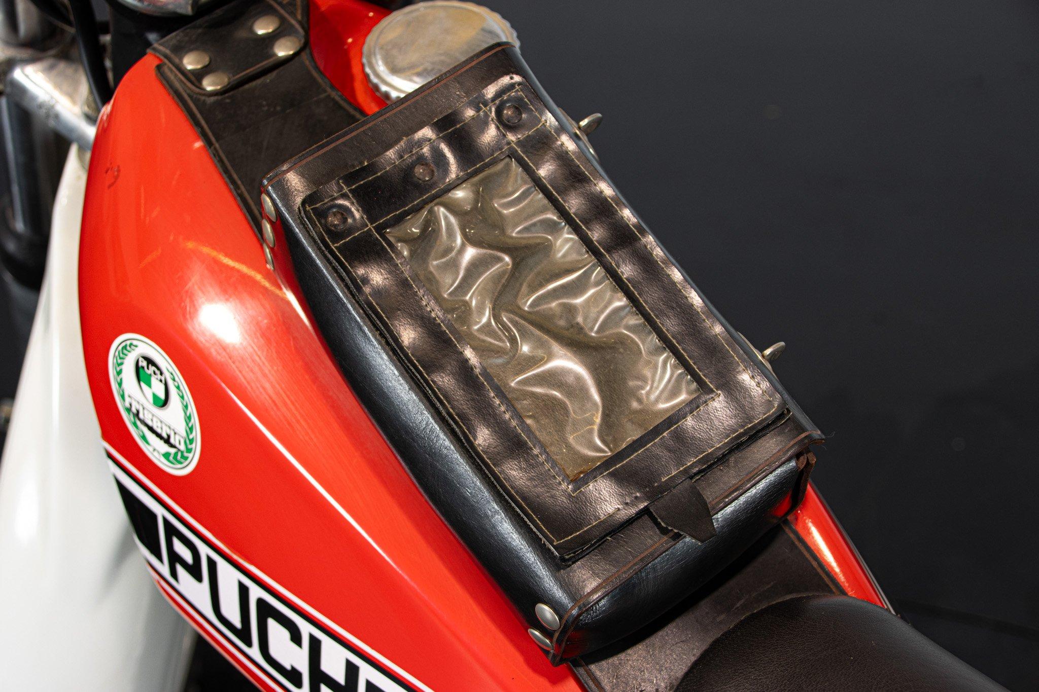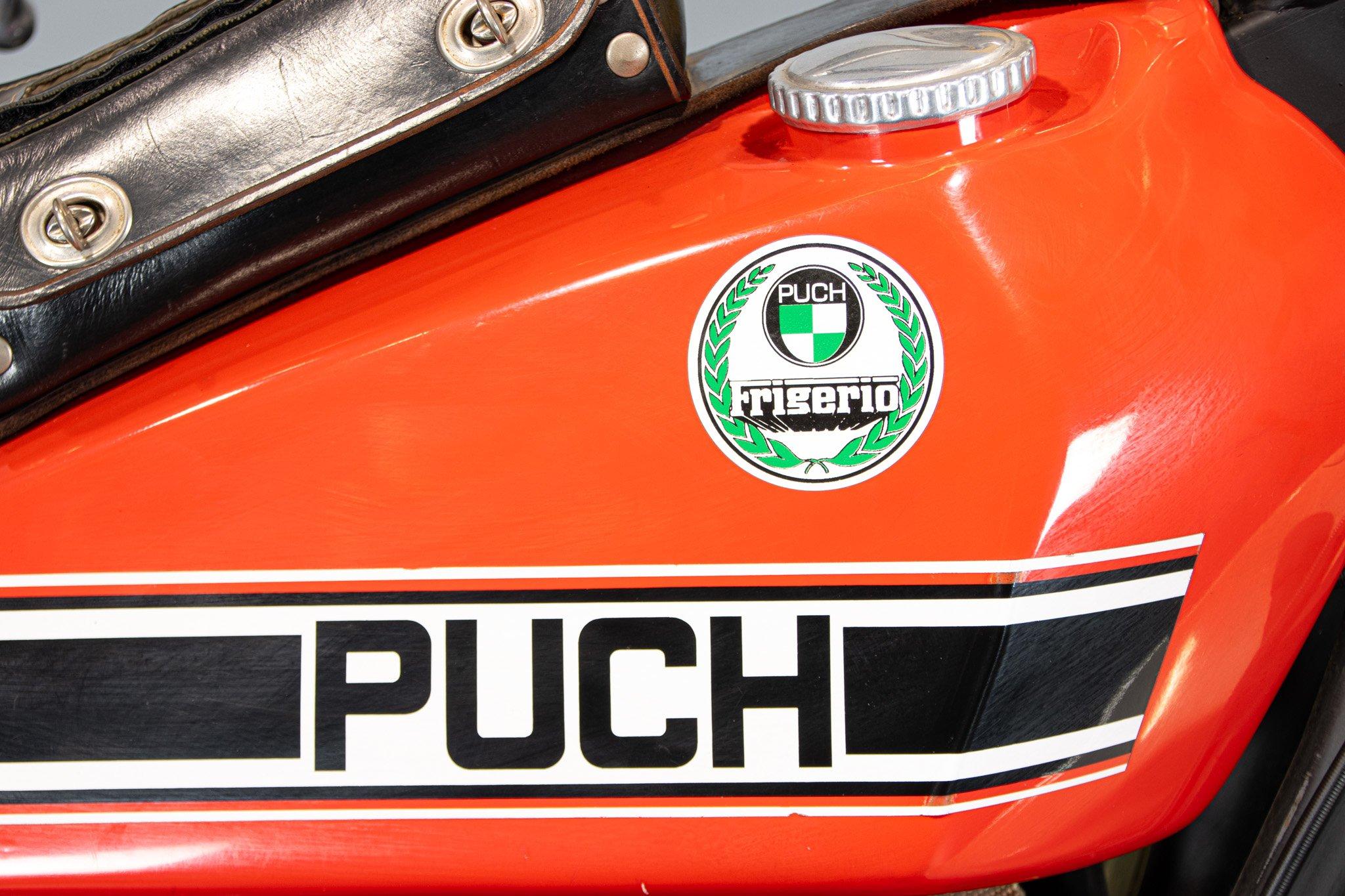 Quando nel 1975 Puch, abbandona il motore Sachs e decide di dedicarsi ai ciclomotori, i fratelli Frigerio, importatori italiani del celebre marchio, si offrono di continuare a costruire queste moto: nasce la Puch Frigerio. Il motore non e più Sachs, ma Rotax; la componentistica di alto livello ed il telaio quello che ha appena vinto il campionato del mondo. Un 125cc da 23 CV con cambio a sei marce che convince tutti. Fantastico esemplare, restaurato da Pietro Botturi (padre del famoso pilota), con tanto di firma sul parafango. Un inno al motociclismo puro di quegli anni.