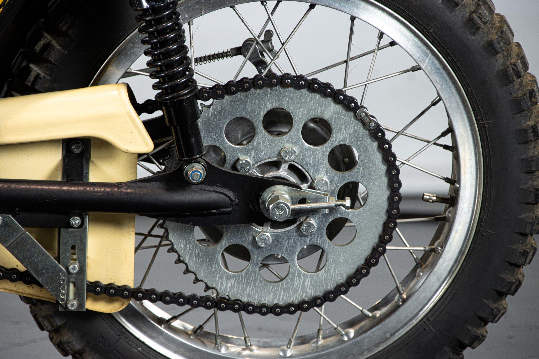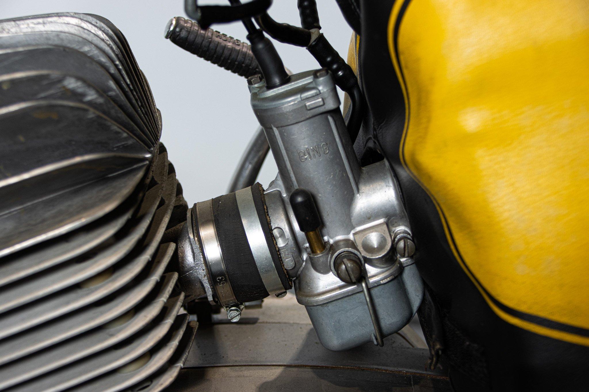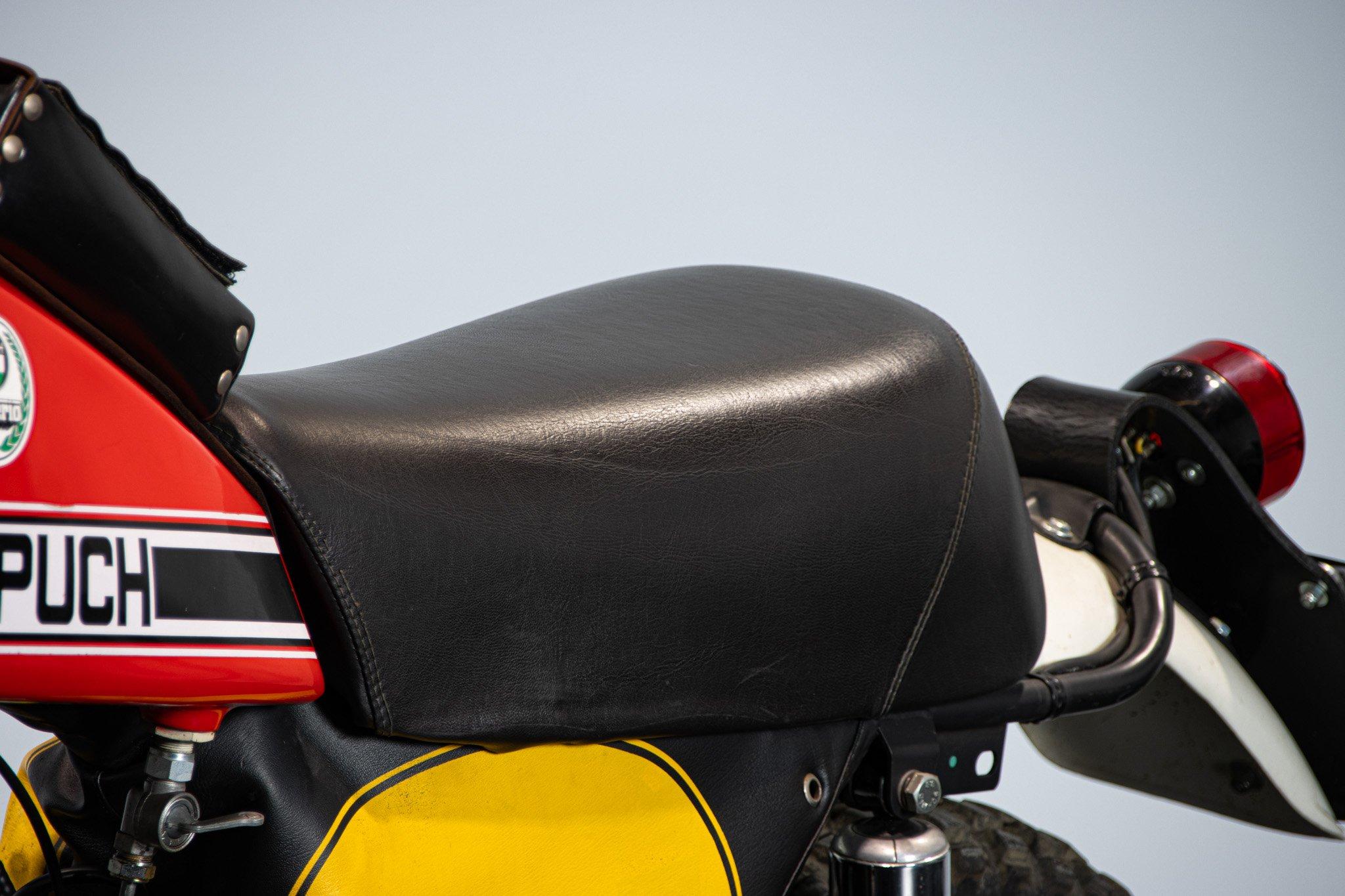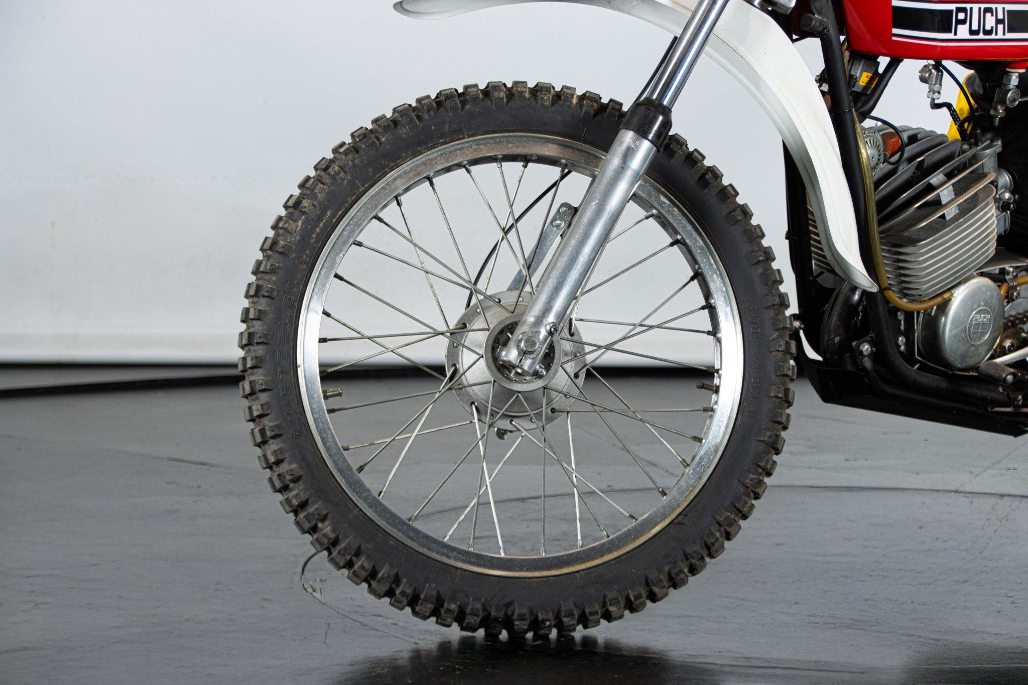 Quando nel 1975 Puch, abbandona il motore Sachs e decide di dedicarsi ai ciclomotori, i fratelli Frigerio, importatori italiani del celebre marchio, si offrono di continuare a costruire queste moto: nasce la Puch Frigerio. Il motore non e più Sachs, ma Rotax; la componentistica di alto livello ed il telaio quello che ha appena vinto il campionato del mondo. Un 125cc da 23 CV con cambio a sei marce che convince tutti. Fantastico esemplare, restaurato da Pietro Botturi (padre del famoso pilota), con tanto di firma sul parafango. Un inno al motociclismo puro di quegli anni.
