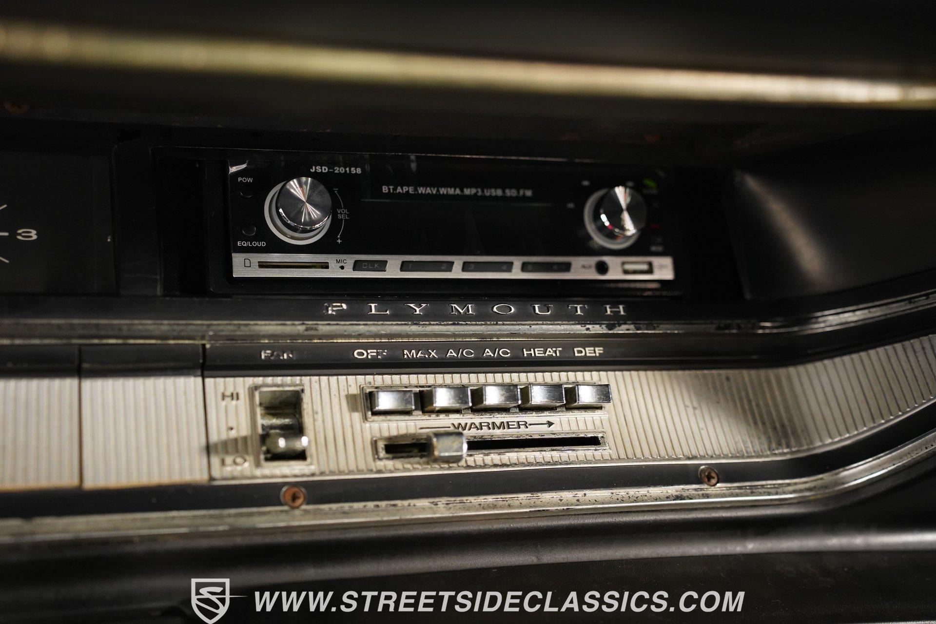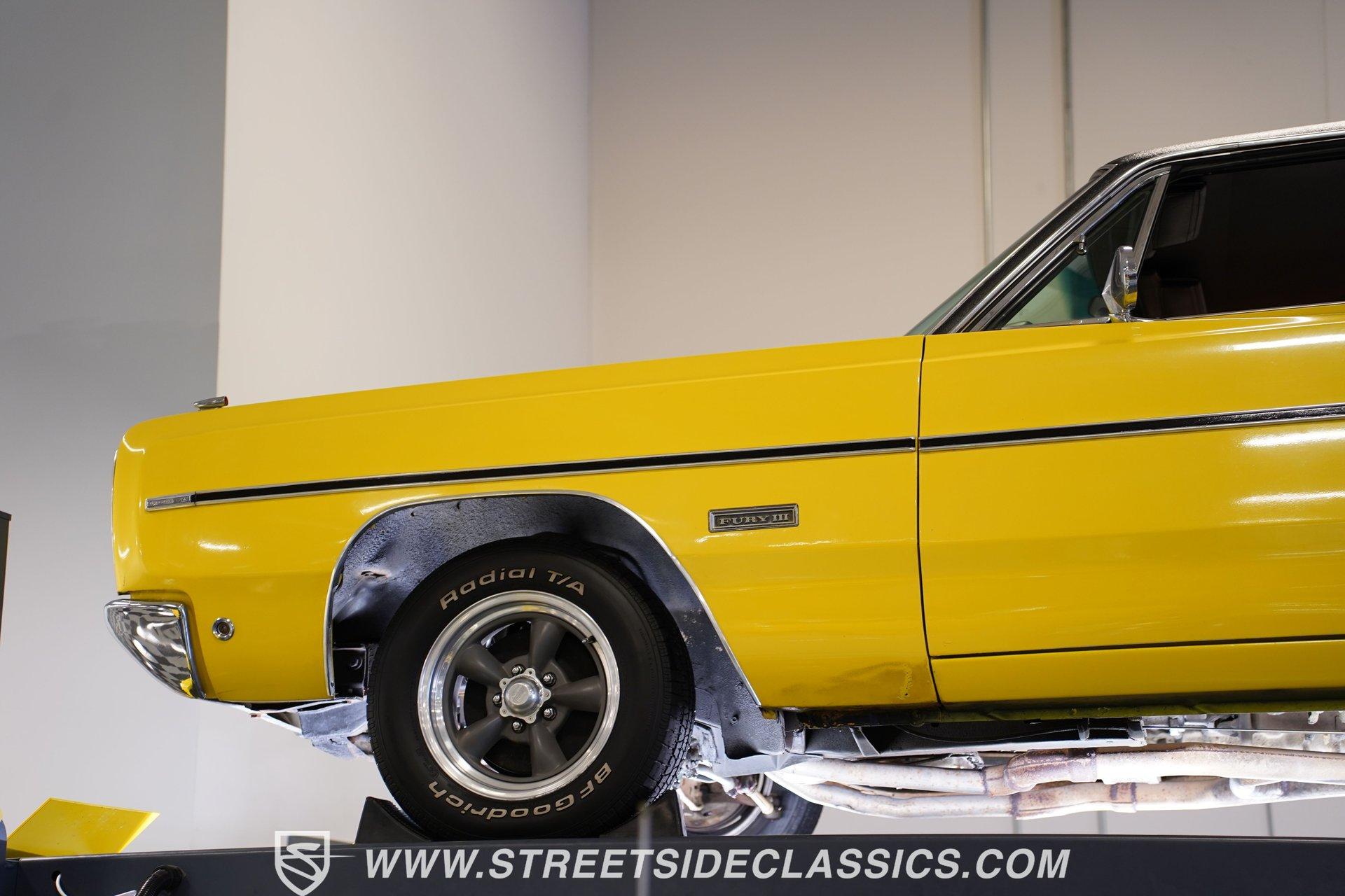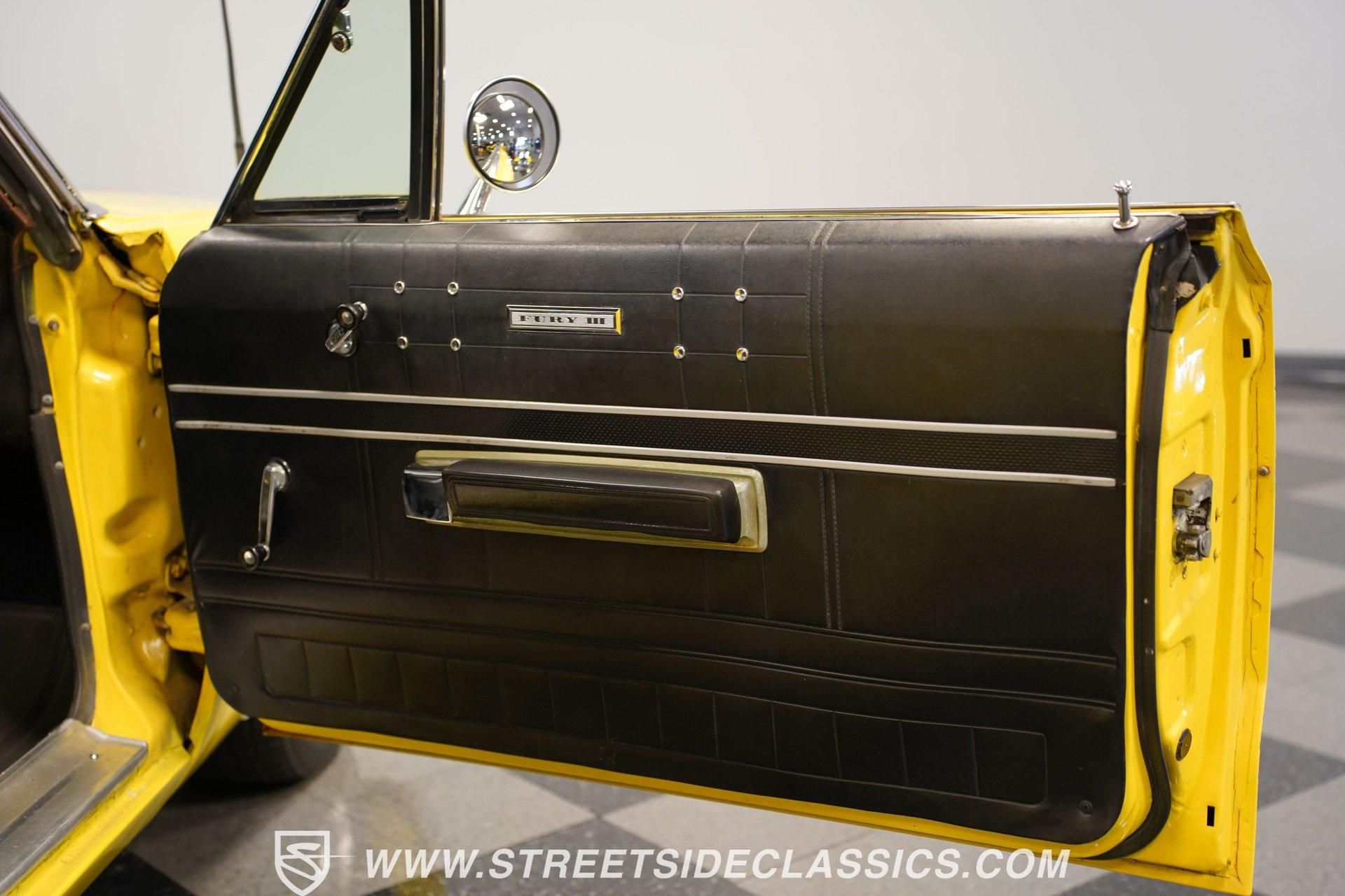 This 1968 Plymouth Fury III is a well-maintained, super reliable driver for anyone who loves classics. This muscle car was originally owned by the Fire Marshal of Winston-Salem, NC. It still has the functional lights and sirens located in the grille, operated by switches on the dashboard. Along with those unique features, the car comes with plenty of recently installed new parts, maintenance records, and the original owner's manual. Finished in yellow with bold black racing stripes and a black top, this timeless classic will always draw attention at any car show or cruise. The interior is black-on-black and looks very clean with new original-style upholstery on both the front and rear bench seats. The steering wheel, column shifter, dashboard, and gauges appear completely original, while three aftermarket gauges, which include Water, Volts, and Oil, have been added to help you keep an eye on performance. The carpets and headliner have been replaced, and a new package tray has been installed. Original Mopar floor mats are included and are easily washable. An aftermarket AM/FM radio adds plenty of entertainment options to keep your cruise enjoyable. Under the hood sits a 383 cubic-inch V8 with a single four-barrel carburetor under a stock-appearing air cleaner cover. Power is delivered to a 3-speed automatic transmission to be evenly disbursed to the rear-end. The front suspension uses a torsion bar with shocks, while the rear relies on leaf springs with shocks for comfort and traction. Stopping power comes from front and rear power drum brakes. The car wears P215/65R15 tires in the front and P225/60R15 tires in the rear, all mounted on iconic American Racing 15-inch wheels. And if you roll down the windows as you drive, you can enjoy the sound of the dual exhaust flowing through a set of Flowmaster mufflers as you cruise. Highlights: 383 Cubic-Inch V8 With A Single Four-Barrel Carburetor 3-Speed Automatic 15-Inch American Racing Wheels New Seat Upholstery, Carpets, Headliner Replaced Dashboard And Interior Lighting Maintenance Records Fresh Tune Up AM/FM/CD Stereo Original Lights And Sirens Inside The Front Grille (Functional) For the Fire Marshal Who Drove It Stock Mopar Floor Mats New Weather Striping On Front Doors Lots Of Other New Parts With Receipts Fresh Oil And Filter Change, And Tires Rotated (July 15, 2025) If you're looking for a vehicle with a story to tell, this 1968 Plymouth Fury III is a fascinating piece of history. With plenty of time and care put into its upkeep, this classic is ready for the next lucky owner. Call today!