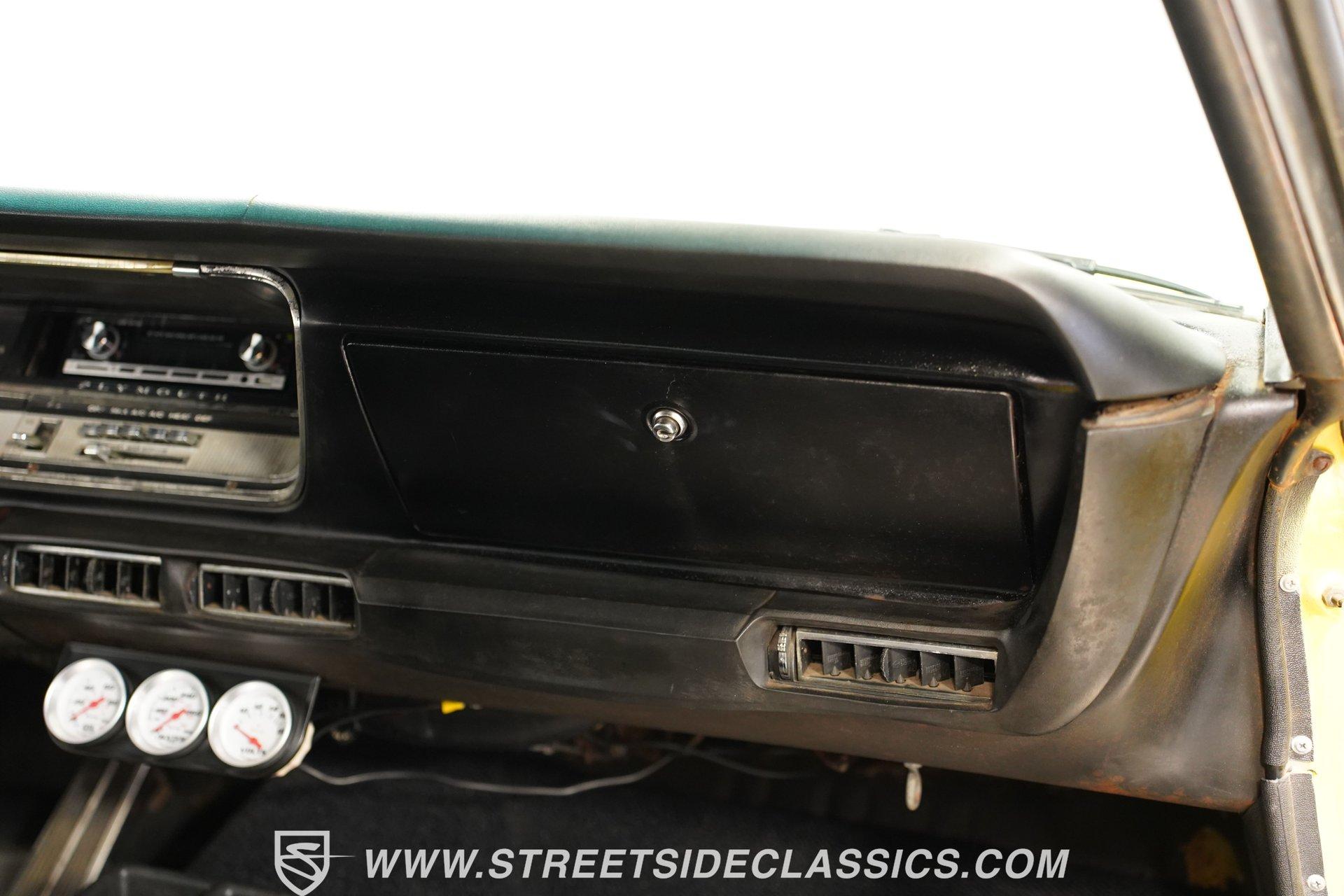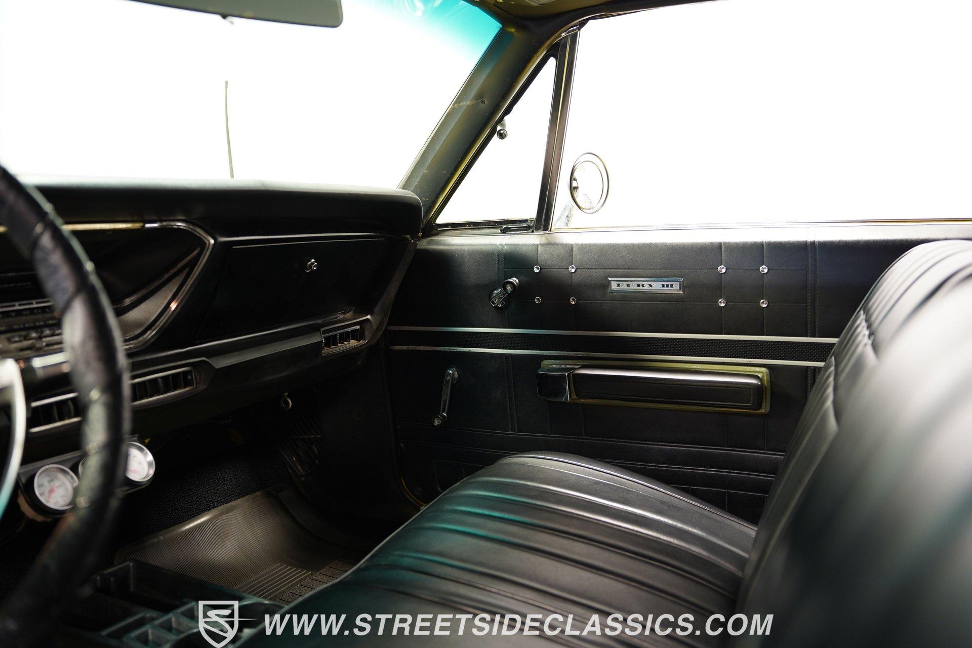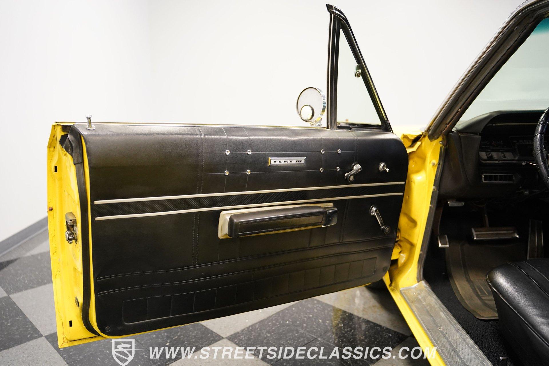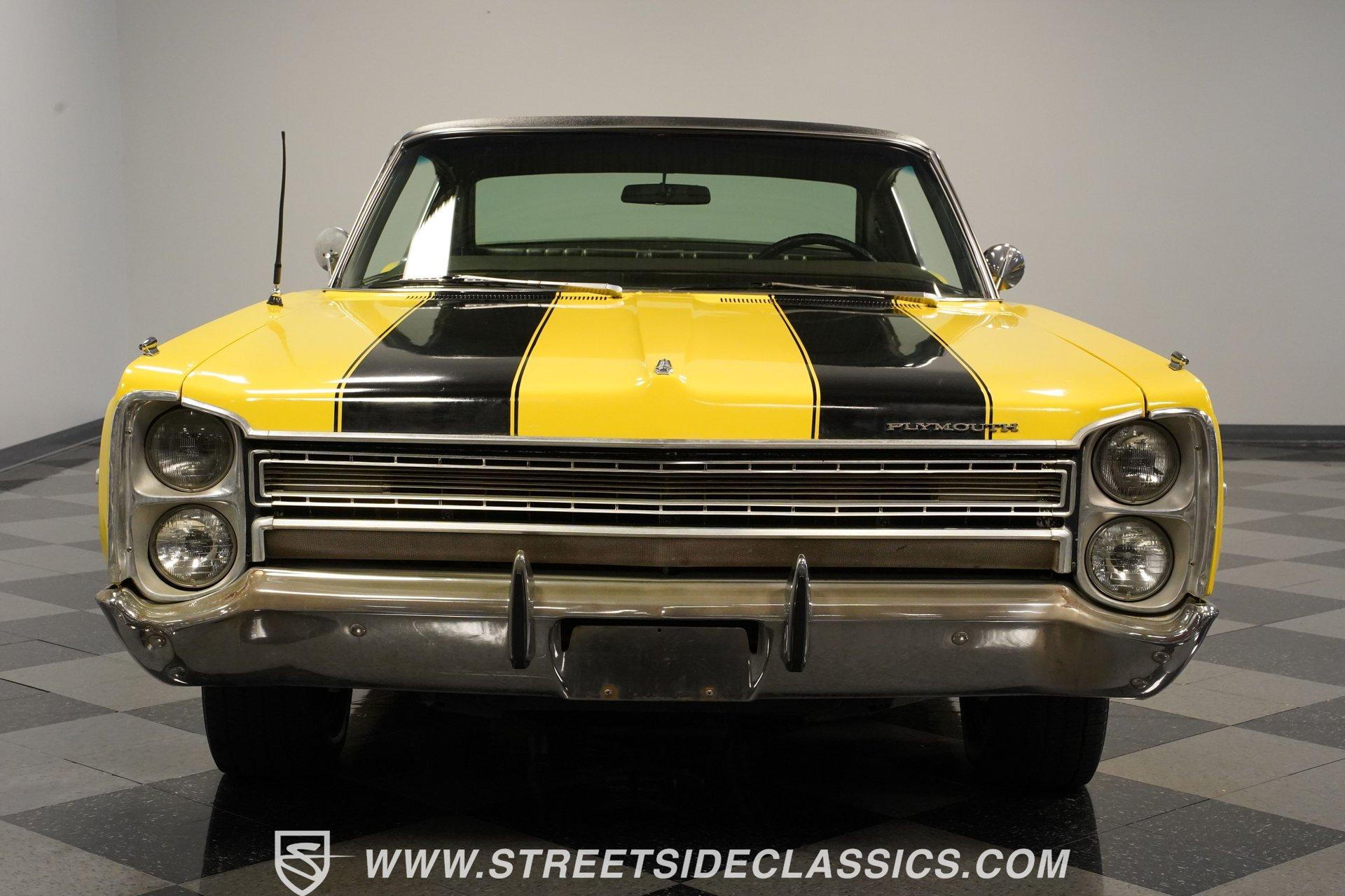 This 1968 Plymouth Fury III is a well-maintained, super reliable driver for anyone who loves classics. This muscle car was originally owned by the Fire Marshal of Winston-Salem, NC. It still has the functional lights and sirens located in the grille, operated by switches on the dashboard. Along with those unique features, the car comes with plenty of recently installed new parts, maintenance records, and the original owner's manual. Finished in yellow with bold black racing stripes and a black top, this timeless classic will always draw attention at any car show or cruise. The interior is black-on-black and looks very clean with new original-style upholstery on both the front and rear bench seats. The steering wheel, column shifter, dashboard, and gauges appear completely original, while three aftermarket gauges, which include Water, Volts, and Oil, have been added to help you keep an eye on performance. The carpets and headliner have been replaced, and a new package tray has been installed. Original Mopar floor mats are included and are easily washable. An aftermarket AM/FM radio adds plenty of entertainment options to keep your cruise enjoyable. Under the hood sits a 383 cubic-inch V8 with a single four-barrel carburetor under a stock-appearing air cleaner cover. Power is delivered to a 3-speed automatic transmission to be evenly disbursed to the rear-end. The front suspension uses a torsion bar with shocks, while the rear relies on leaf springs with shocks for comfort and traction. Stopping power comes from front and rear power drum brakes. The car wears P215/65R15 tires in the front and P225/60R15 tires in the rear, all mounted on iconic American Racing 15-inch wheels. And if you roll down the windows as you drive, you can enjoy the sound of the dual exhaust flowing through a set of Flowmaster mufflers as you cruise. Highlights: 383 Cubic-Inch V8 With A Single Four-Barrel Carburetor 3-Speed Automatic 15-Inch American Racing Wheels New Seat Upholstery, Carpets, Headliner Replaced Dashboard And Interior Lighting Maintenance Records Fresh Tune Up AM/FM/CD Stereo Original Lights And Sirens Inside The Front Grille (Functional) For the Fire Marshal Who Drove It Stock Mopar Floor Mats New Weather Striping On Front Doors Lots Of Other New Parts With Receipts Fresh Oil And Filter Change, And Tires Rotated (July 15, 2025) If you're looking for a vehicle with a story to tell, this 1968 Plymouth Fury III is a fascinating piece of history. With plenty of time and care put into its upkeep, this classic is ready for the next lucky owner. Call today!