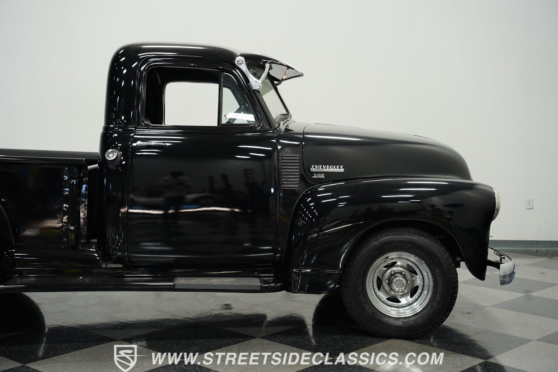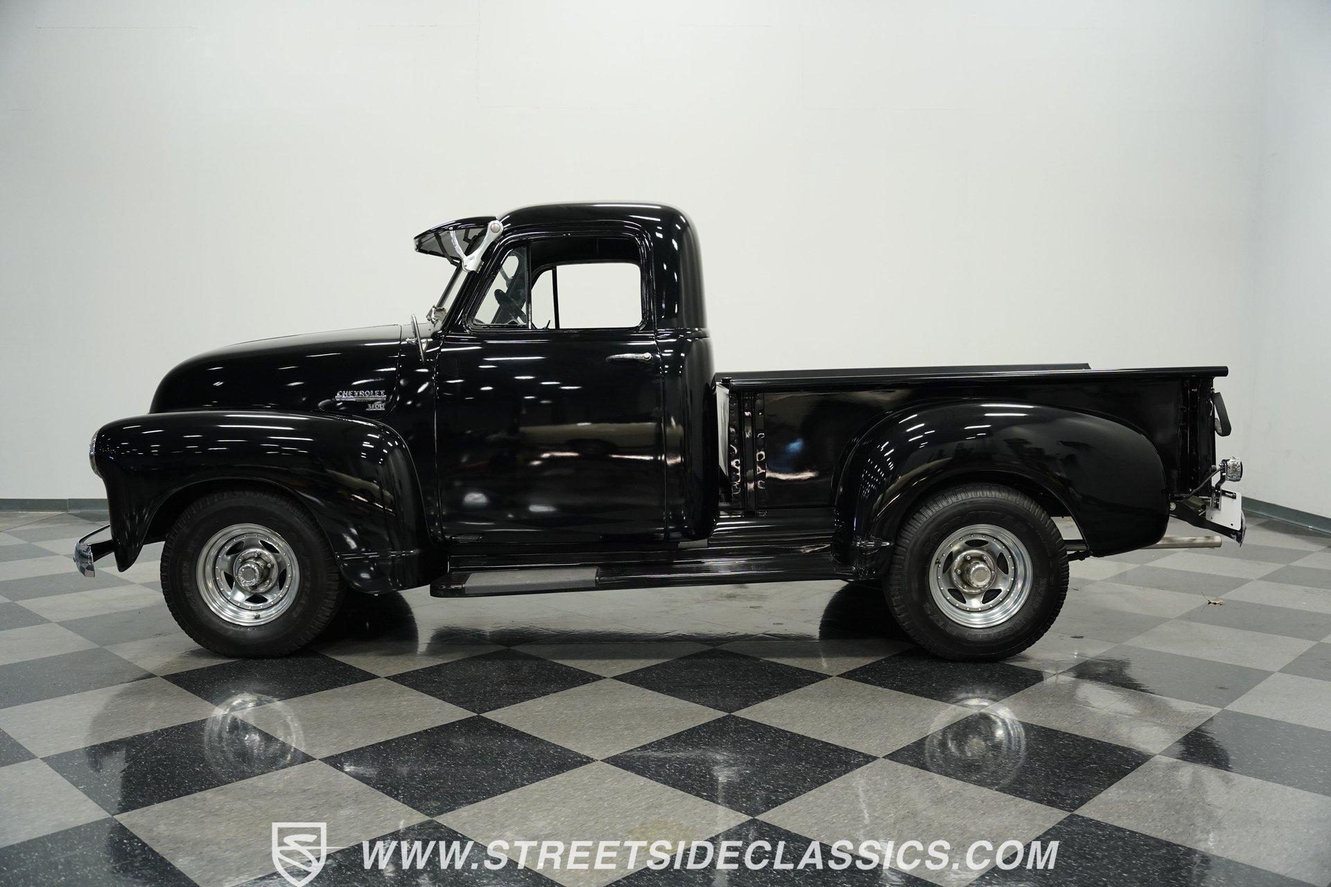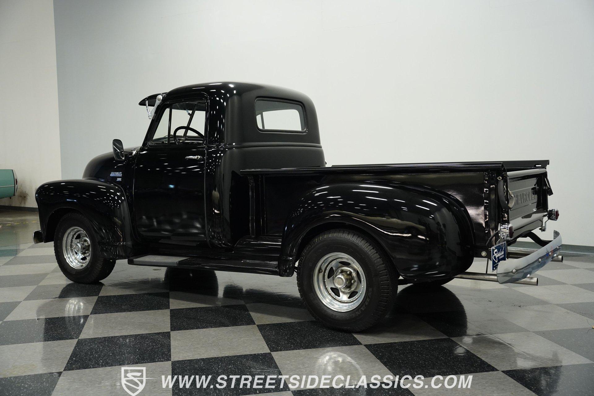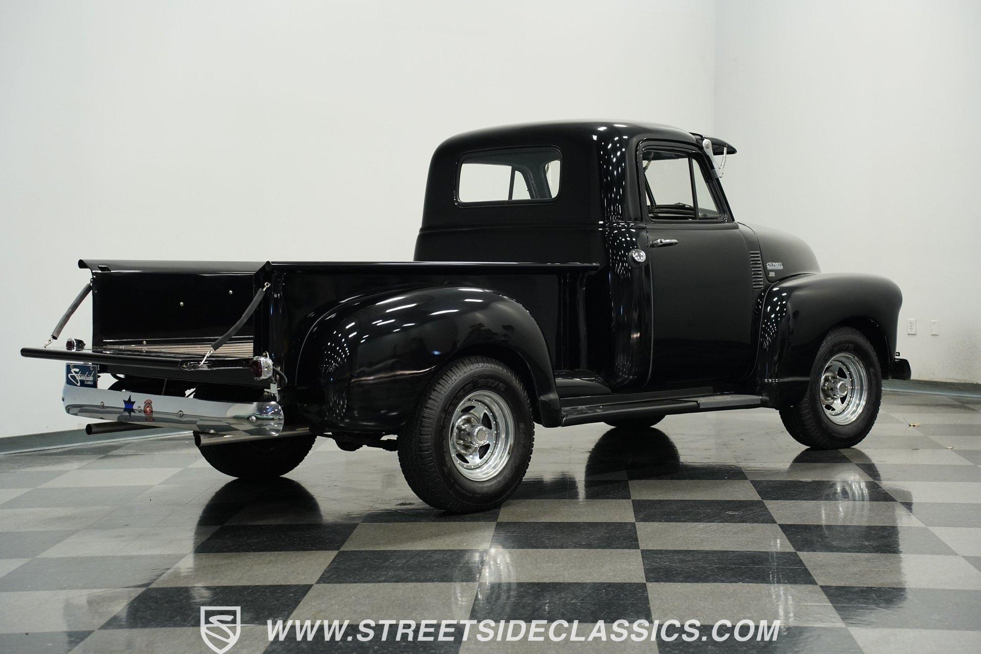 Restored to excellent condition in 2013, the 1952 Chevrolet 3100 pickup displays its black paint with remarkable clarity. Every body panel shows quality finish work, giving the truck a uniform appearance from front to back. An exterior sun visor shields the windshield, adding both function and period-correct style. The 15-inch aftermarket chrome wheels fit properly beneath the fenders, wrapped in P235/75R15 radial tires for improved roadholding. A fresh wood bed adds authentic detail to the rear, while all brightwork has been refreshed during restoration. The short bed design maintains original proportions while the overall look remains clean and direct. Black vinyl covers the bench seat, offering straightforward comfort in traditional pickup style. The dashboard keeps its factory layout while adding helpful upgrades for modern use. Extra instrumentation includes a tachometer mounted on the steering column plus auxiliary gauges below the dash for monitoring engine conditions. The floor houses a Lokar shifter for easy gear selection. The original-style steering wheel features a comfortable wrap, connecting directly to the manual steering for authentic road feel. Seatbelts add safety to the otherwise period-correct cabin. A 350 cubic inch V8 sits front and center, featuring a Holley 4-barrel carburetor for optimal fuel and air mixing. The engine bay shows attention to detail with clean, painted firewall and chrome valve covers. A 700R4 4-speed automatic transmission directs power to a later GM 12-bolt rear axle for improved durability. The dual exhaust system gives off an appropriate V8 sound. Power disc brakes handle stopping duties while the truck maintains its traditional character with leaf spring suspension both front and rear, supported by shock absorbers for better road control. HIGHLIGHTS: 350 V8 Engine 700R4 4-Speed Automatic Transmission Holley 4-Barrel Carburetor Power Disc Brakes Later GM 12-Bolt Rear Axle Dual Exhaust System Leaf Spring Suspension Shock Absorbers Black Paint 15" Chrome Wheels P235/75R15 Radial Tires Fresh Wood Bed Short Bed Exterior Sun Visor Black Interior With Bench Seat Floor-Mounted Lokar Shifter Tachometer On Steering Column Auxiliary Gauges Under Dash Wrapped Steering Wheel Seatbelts Handwritten Notes Of Restoration Process Classic truck styling with V8 power makes the 1952 Chevrolet 3100 an excellent addition to any collection. The updated mechanicals allow for regular use while the carefully restored exterior maintains original appeal. For truck enthusiasts looking for a solid early fifties Chevrolet with improved drivability, this pickup deserves consideration. Call today!