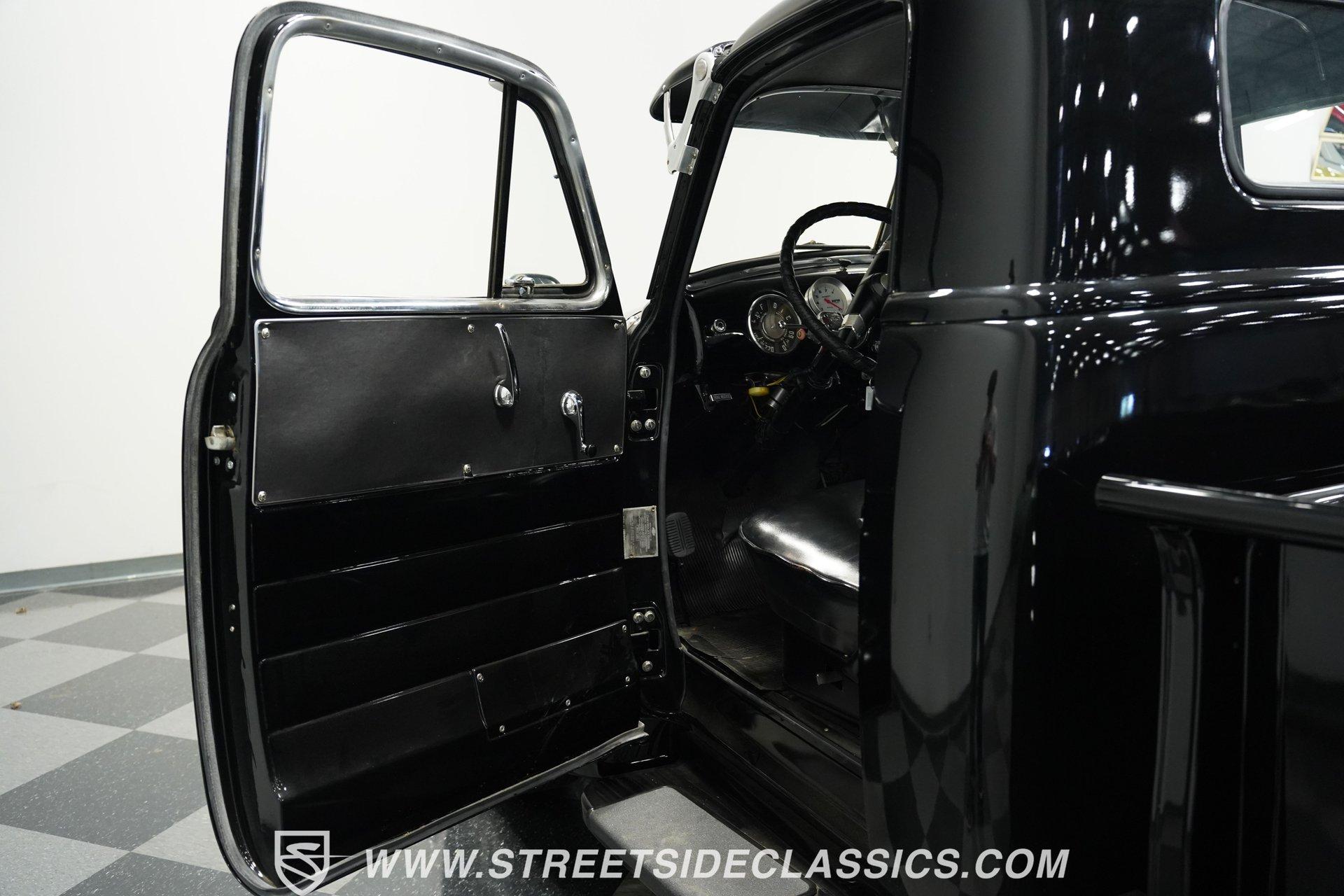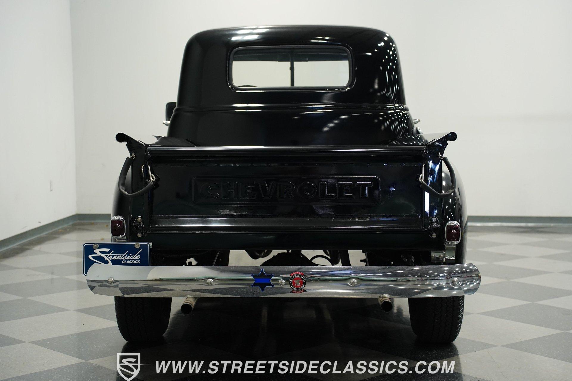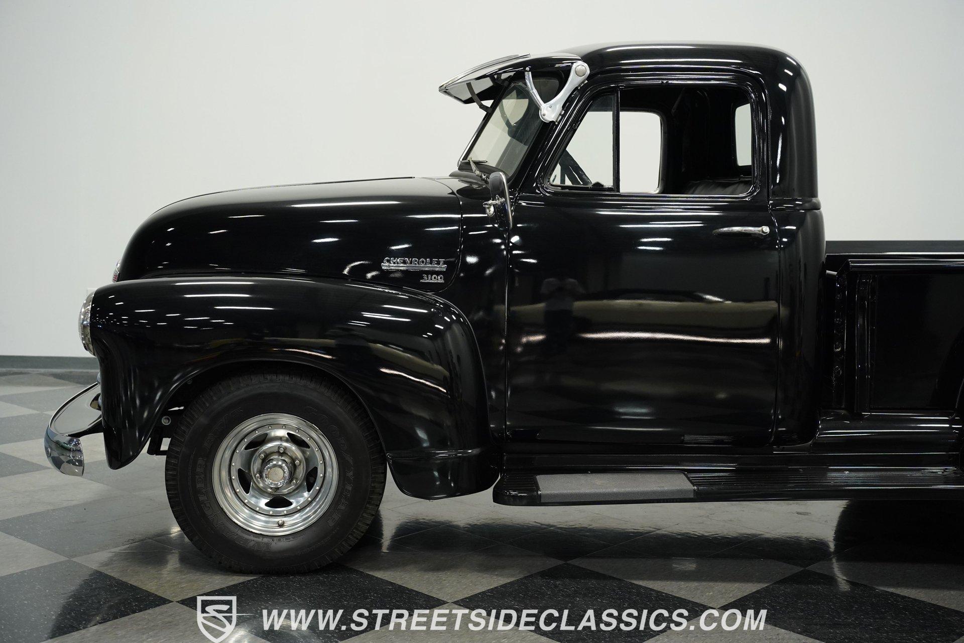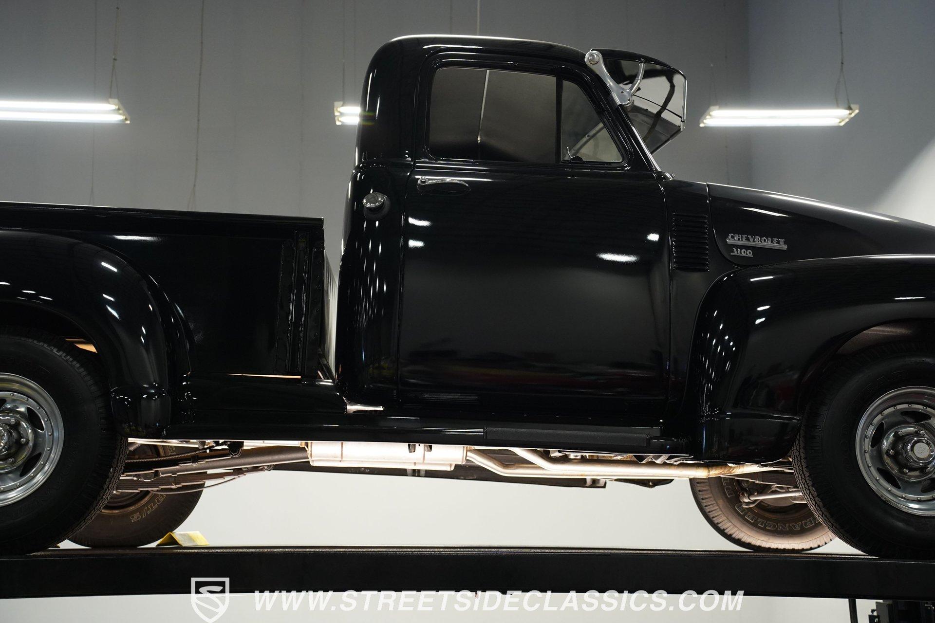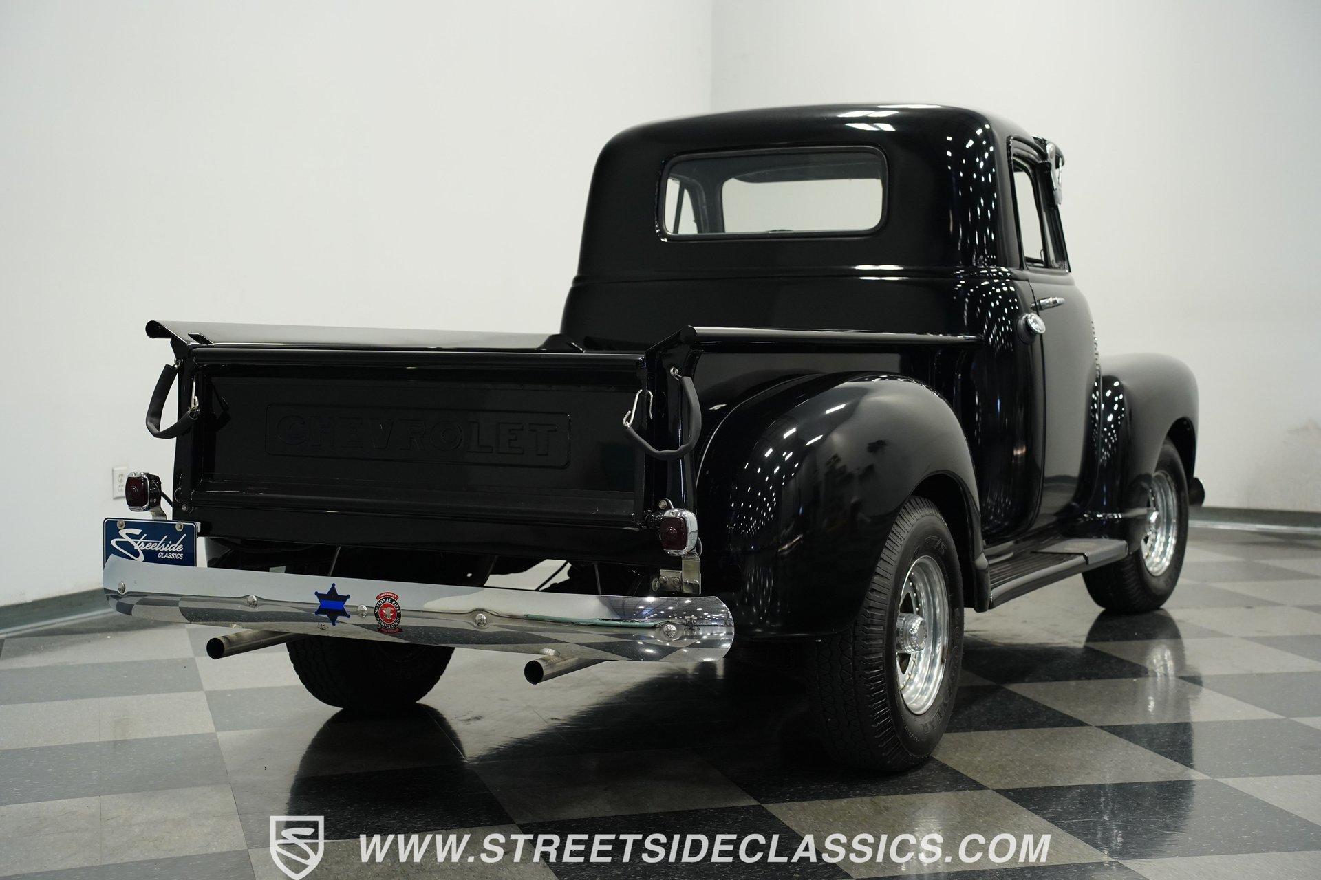 Restored to excellent condition in 2013, the 1952 Chevrolet 3100 pickup displays its black paint with remarkable clarity. Every body panel shows quality finish work, giving the truck a uniform appearance from front to back. An exterior sun visor shields the windshield, adding both function and period-correct style. The 15-inch aftermarket chrome wheels fit properly beneath the fenders, wrapped in P235/75R15 radial tires for improved roadholding. A fresh wood bed adds authentic detail to the rear, while all brightwork has been refreshed during restoration. The short bed design maintains original proportions while the overall look remains clean and direct. Black vinyl covers the bench seat, offering straightforward comfort in traditional pickup style. The dashboard keeps its factory layout while adding helpful upgrades for modern use. Extra instrumentation includes a tachometer mounted on the steering column plus auxiliary gauges below the dash for monitoring engine conditions. The floor houses a Lokar shifter for easy gear selection. The original-style steering wheel features a comfortable wrap, connecting directly to the manual steering for authentic road feel. Seatbelts add safety to the otherwise period-correct cabin. A 350 cubic inch V8 sits front and center, featuring a Holley 4-barrel carburetor for optimal fuel and air mixing. The engine bay shows attention to detail with clean, painted firewall and chrome valve covers. A 700R4 4-speed automatic transmission directs power to a later GM 12-bolt rear axle for improved durability. The dual exhaust system gives off an appropriate V8 sound. Power disc brakes handle stopping duties while the truck maintains its traditional character with leaf spring suspension both front and rear, supported by shock absorbers for better road control. HIGHLIGHTS: 350 V8 Engine 700R4 4-Speed Automatic Transmission Holley 4-Barrel Carburetor Power Disc Brakes Later GM 12-Bolt Rear Axle Dual Exhaust System Leaf Spring Suspension Shock Absorbers Black Paint 15" Chrome Wheels P235/75R15 Radial Tires Fresh Wood Bed Short Bed Exterior Sun Visor Black Interior With Bench Seat Floor-Mounted Lokar Shifter Tachometer On Steering Column Auxiliary Gauges Under Dash Wrapped Steering Wheel Seatbelts Handwritten Notes Of Restoration Process Classic truck styling with V8 power makes the 1952 Chevrolet 3100 an excellent addition to any collection. The updated mechanicals allow for regular use while the carefully restored exterior maintains original appeal. For truck enthusiasts looking for a solid early fifties Chevrolet with improved drivability, this pickup deserves consideration. Call today!