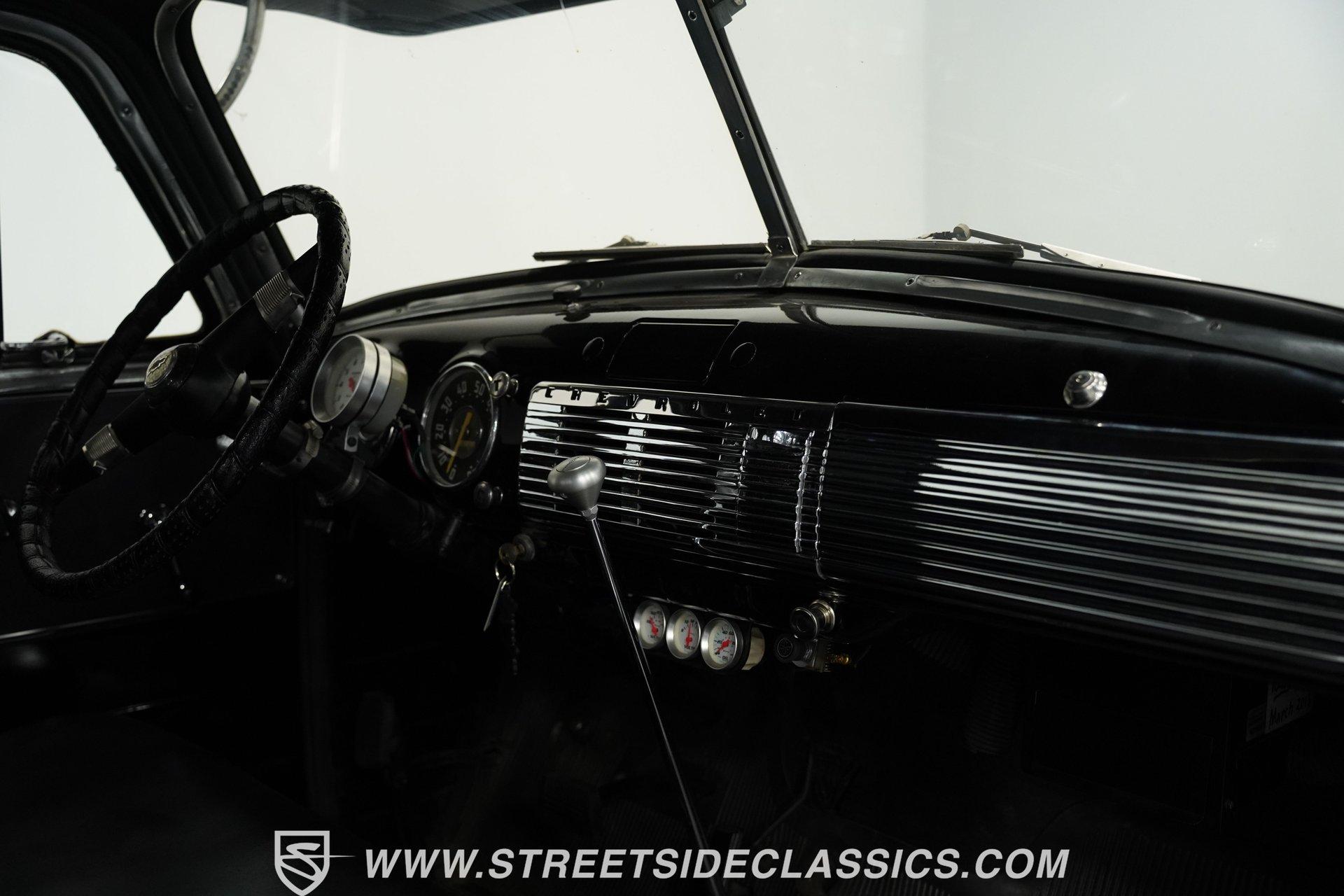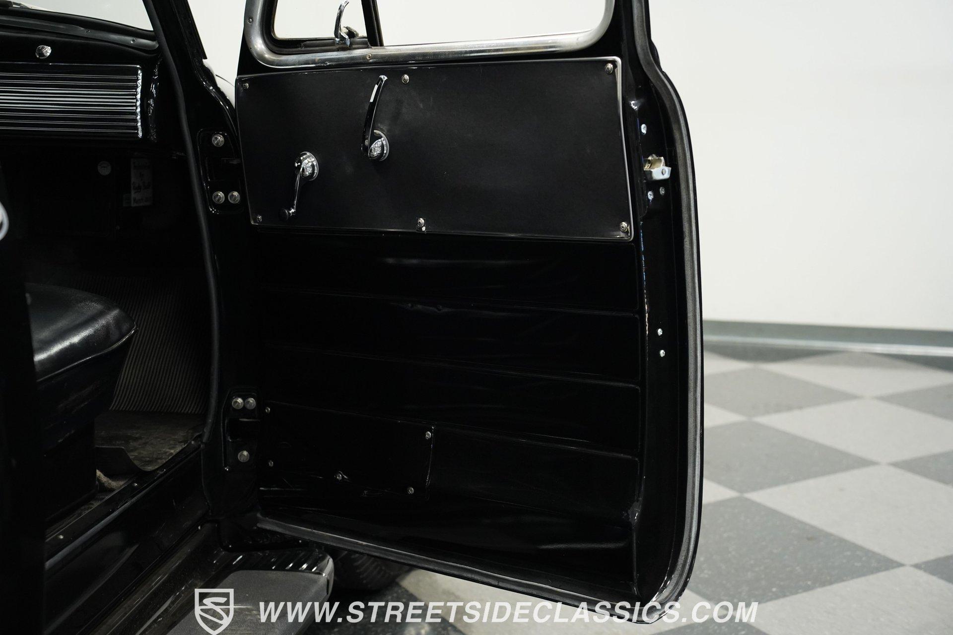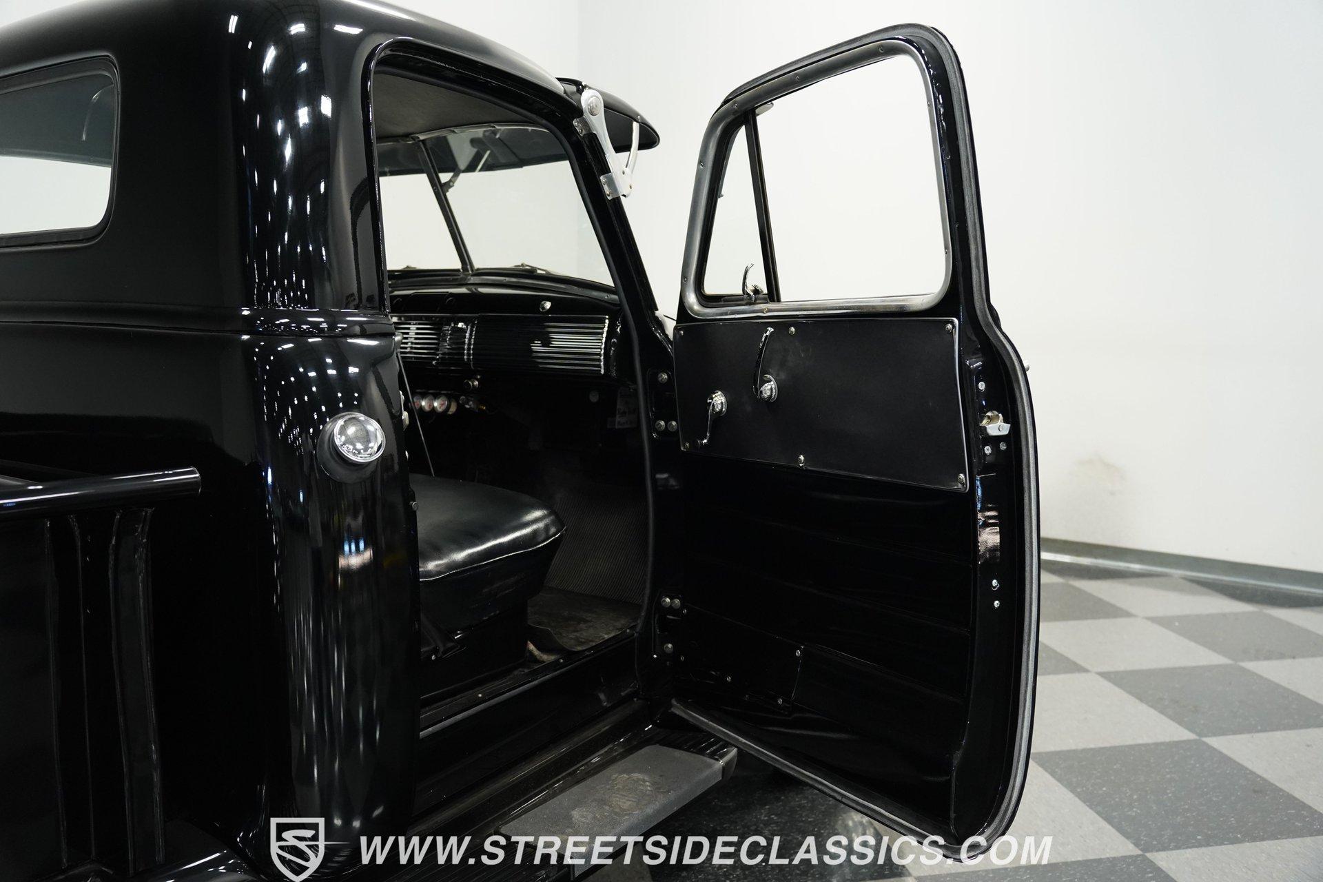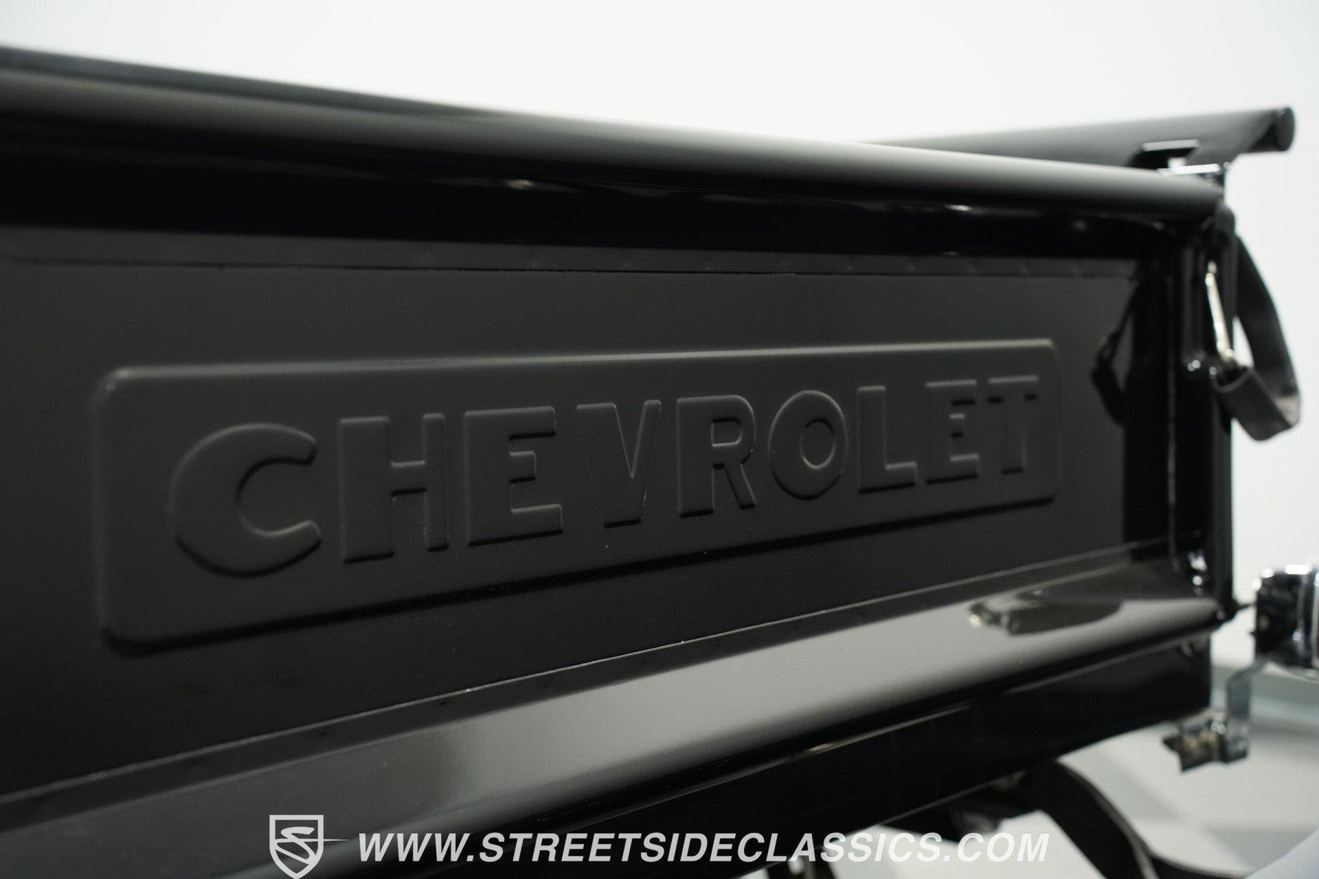 Restored to excellent condition in 2013, the 1952 Chevrolet 3100 pickup displays its black paint with remarkable clarity. Every body panel shows quality finish work, giving the truck a uniform appearance from front to back. An exterior sun visor shields the windshield, adding both function and period-correct style. The 15-inch aftermarket chrome wheels fit properly beneath the fenders, wrapped in P235/75R15 radial tires for improved roadholding. A fresh wood bed adds authentic detail to the rear, while all brightwork has been refreshed during restoration. The short bed design maintains original proportions while the overall look remains clean and direct. Black vinyl covers the bench seat, offering straightforward comfort in traditional pickup style. The dashboard keeps its factory layout while adding helpful upgrades for modern use. Extra instrumentation includes a tachometer mounted on the steering column plus auxiliary gauges below the dash for monitoring engine conditions. The floor houses a Lokar shifter for easy gear selection. The original-style steering wheel features a comfortable wrap, connecting directly to the manual steering for authentic road feel. Seatbelts add safety to the otherwise period-correct cabin. A 350 cubic inch V8 sits front and center, featuring a Holley 4-barrel carburetor for optimal fuel and air mixing. The engine bay shows attention to detail with clean, painted firewall and chrome valve covers. A 700R4 4-speed automatic transmission directs power to a later GM 12-bolt rear axle for improved durability. The dual exhaust system gives off an appropriate V8 sound. Power disc brakes handle stopping duties while the truck maintains its traditional character with leaf spring suspension both front and rear, supported by shock absorbers for better road control. HIGHLIGHTS: 350 V8 Engine 700R4 4-Speed Automatic Transmission Holley 4-Barrel Carburetor Power Disc Brakes Later GM 12-Bolt Rear Axle Dual Exhaust System Leaf Spring Suspension Shock Absorbers Black Paint 15" Chrome Wheels P235/75R15 Radial Tires Fresh Wood Bed Short Bed Exterior Sun Visor Black Interior With Bench Seat Floor-Mounted Lokar Shifter Tachometer On Steering Column Auxiliary Gauges Under Dash Wrapped Steering Wheel Seatbelts Handwritten Notes Of Restoration Process Classic truck styling with V8 power makes the 1952 Chevrolet 3100 an excellent addition to any collection. The updated mechanicals allow for regular use while the carefully restored exterior maintains original appeal. For truck enthusiasts looking for a solid early fifties Chevrolet with improved drivability, this pickup deserves consideration. Call today!