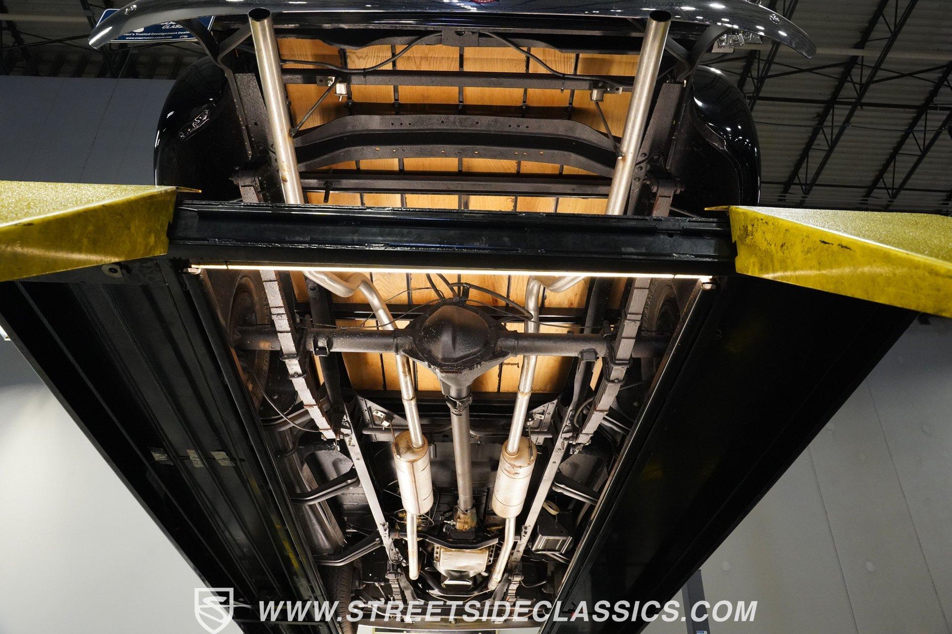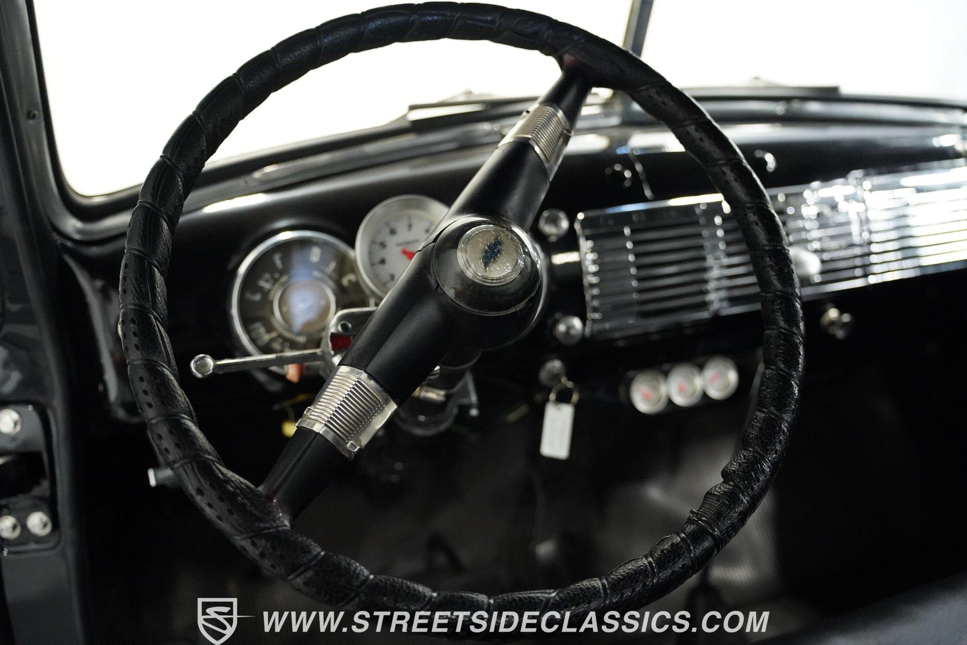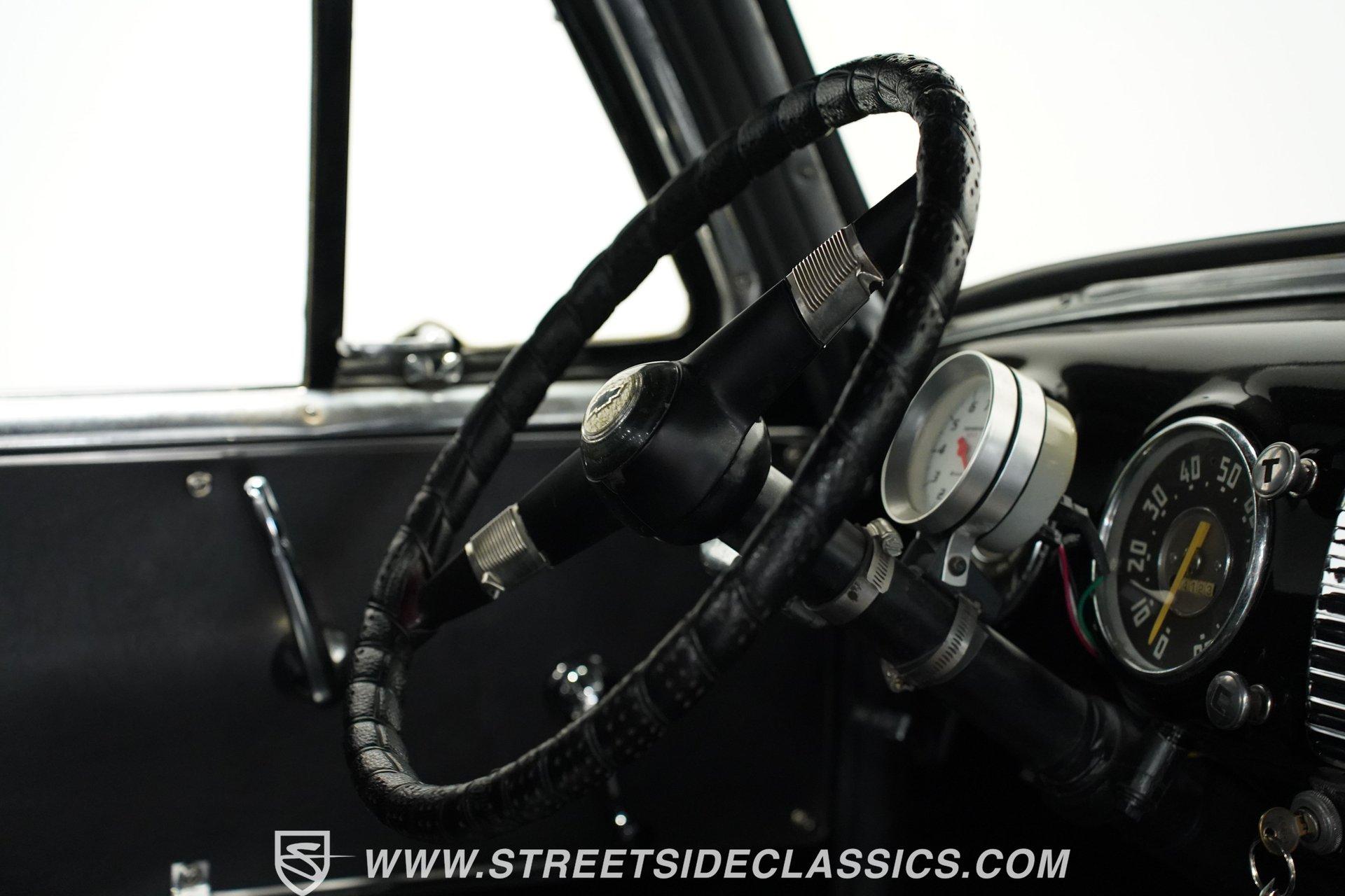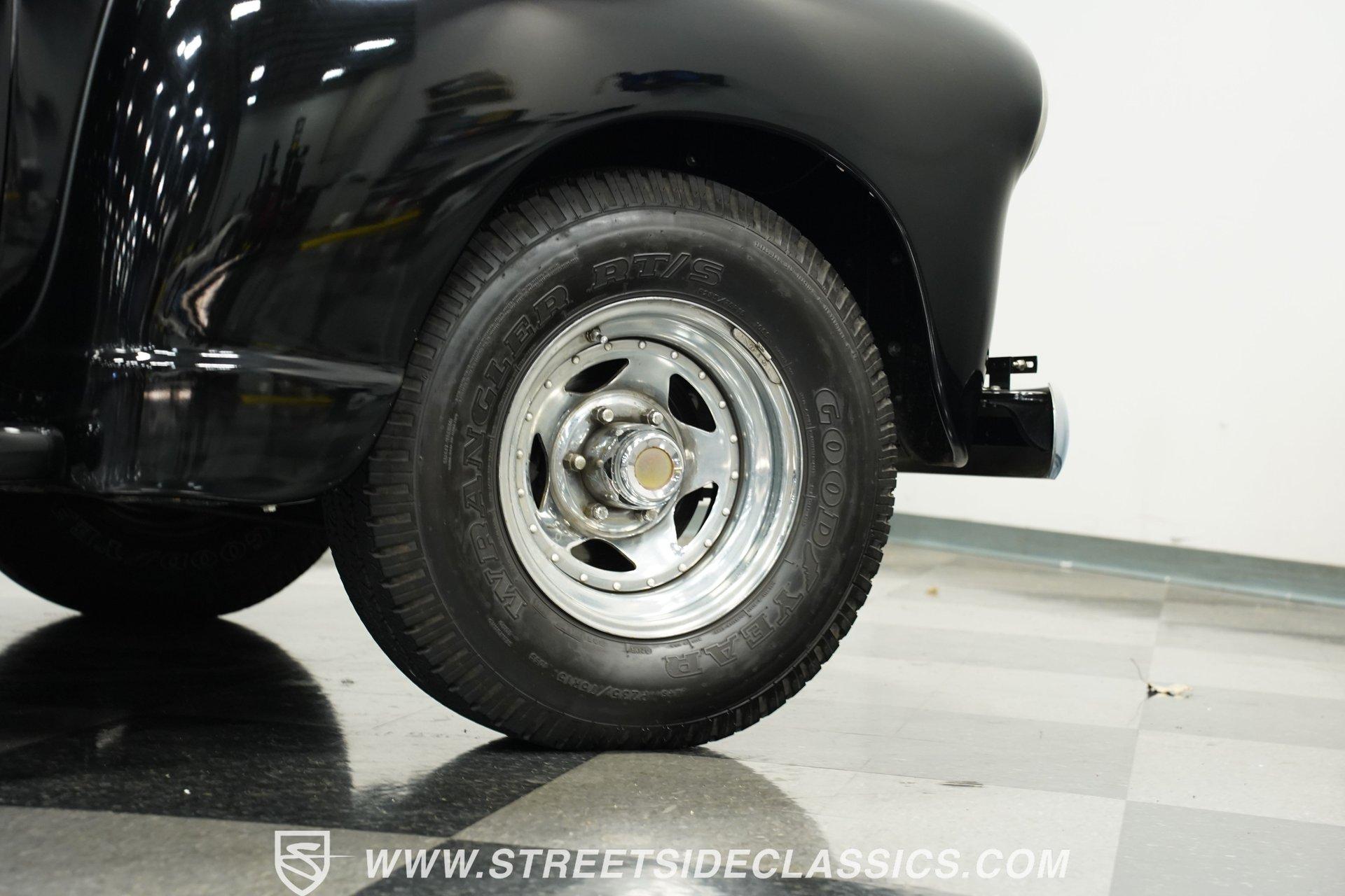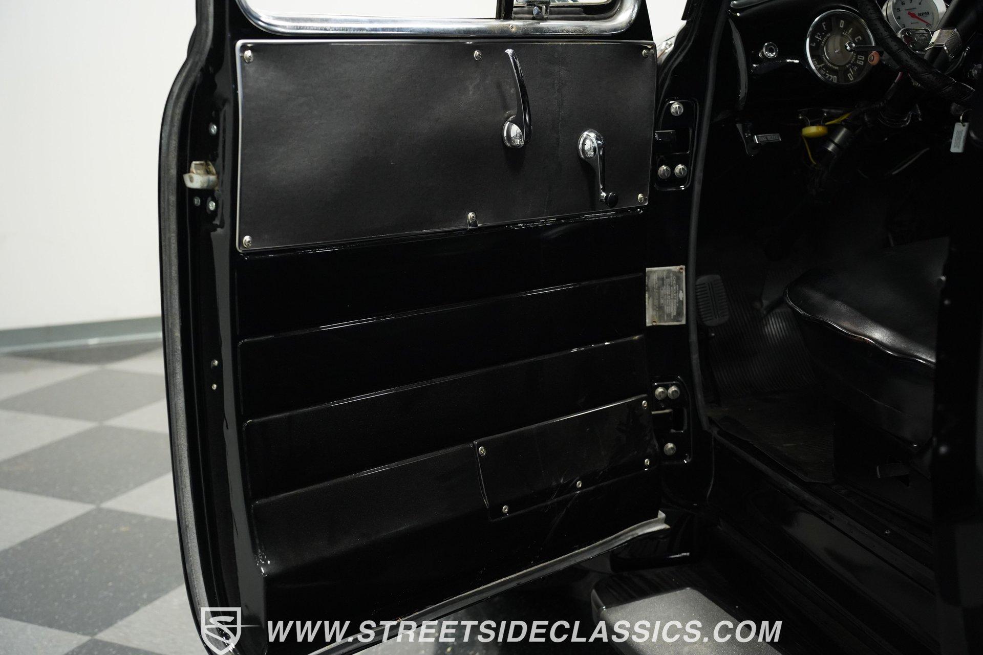 Restored to excellent condition in 2013, the 1952 Chevrolet 3100 pickup displays its black paint with remarkable clarity. Every body panel shows quality finish work, giving the truck a uniform appearance from front to back. An exterior sun visor shields the windshield, adding both function and period-correct style. The 15-inch aftermarket chrome wheels fit properly beneath the fenders, wrapped in P235/75R15 radial tires for improved roadholding. A fresh wood bed adds authentic detail to the rear, while all brightwork has been refreshed during restoration. The short bed design maintains original proportions while the overall look remains clean and direct. Black vinyl covers the bench seat, offering straightforward comfort in traditional pickup style. The dashboard keeps its factory layout while adding helpful upgrades for modern use. Extra instrumentation includes a tachometer mounted on the steering column plus auxiliary gauges below the dash for monitoring engine conditions. The floor houses a Lokar shifter for easy gear selection. The original-style steering wheel features a comfortable wrap, connecting directly to the manual steering for authentic road feel. Seatbelts add safety to the otherwise period-correct cabin. A 350 cubic inch V8 sits front and center, featuring a Holley 4-barrel carburetor for optimal fuel and air mixing. The engine bay shows attention to detail with clean, painted firewall and chrome valve covers. A 700R4 4-speed automatic transmission directs power to a later GM 12-bolt rear axle for improved durability. The dual exhaust system gives off an appropriate V8 sound. Power disc brakes handle stopping duties while the truck maintains its traditional character with leaf spring suspension both front and rear, supported by shock absorbers for better road control. HIGHLIGHTS: 350 V8 Engine 700R4 4-Speed Automatic Transmission Holley 4-Barrel Carburetor Power Disc Brakes Later GM 12-Bolt Rear Axle Dual Exhaust System Leaf Spring Suspension Shock Absorbers Black Paint 15" Chrome Wheels P235/75R15 Radial Tires Fresh Wood Bed Short Bed Exterior Sun Visor Black Interior With Bench Seat Floor-Mounted Lokar Shifter Tachometer On Steering Column Auxiliary Gauges Under Dash Wrapped Steering Wheel Seatbelts Handwritten Notes Of Restoration Process Classic truck styling with V8 power makes the 1952 Chevrolet 3100 an excellent addition to any collection. The updated mechanicals allow for regular use while the carefully restored exterior maintains original appeal. For truck enthusiasts looking for a solid early fifties Chevrolet with improved drivability, this pickup deserves consideration. Call today!