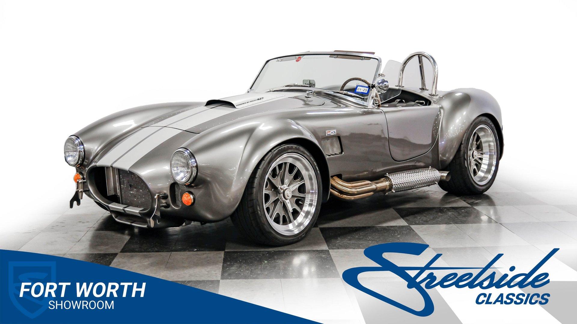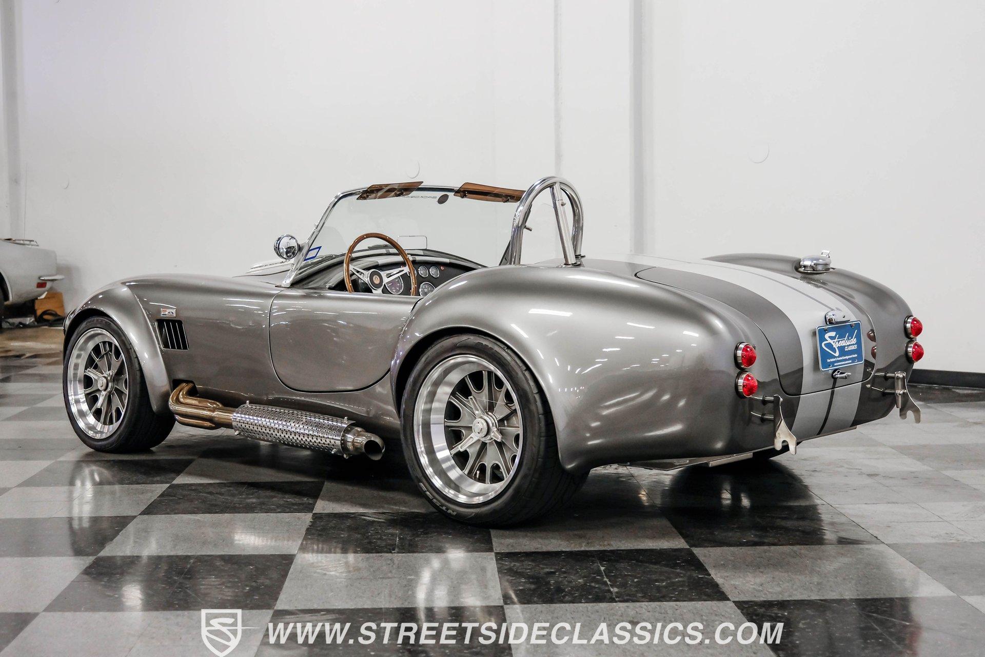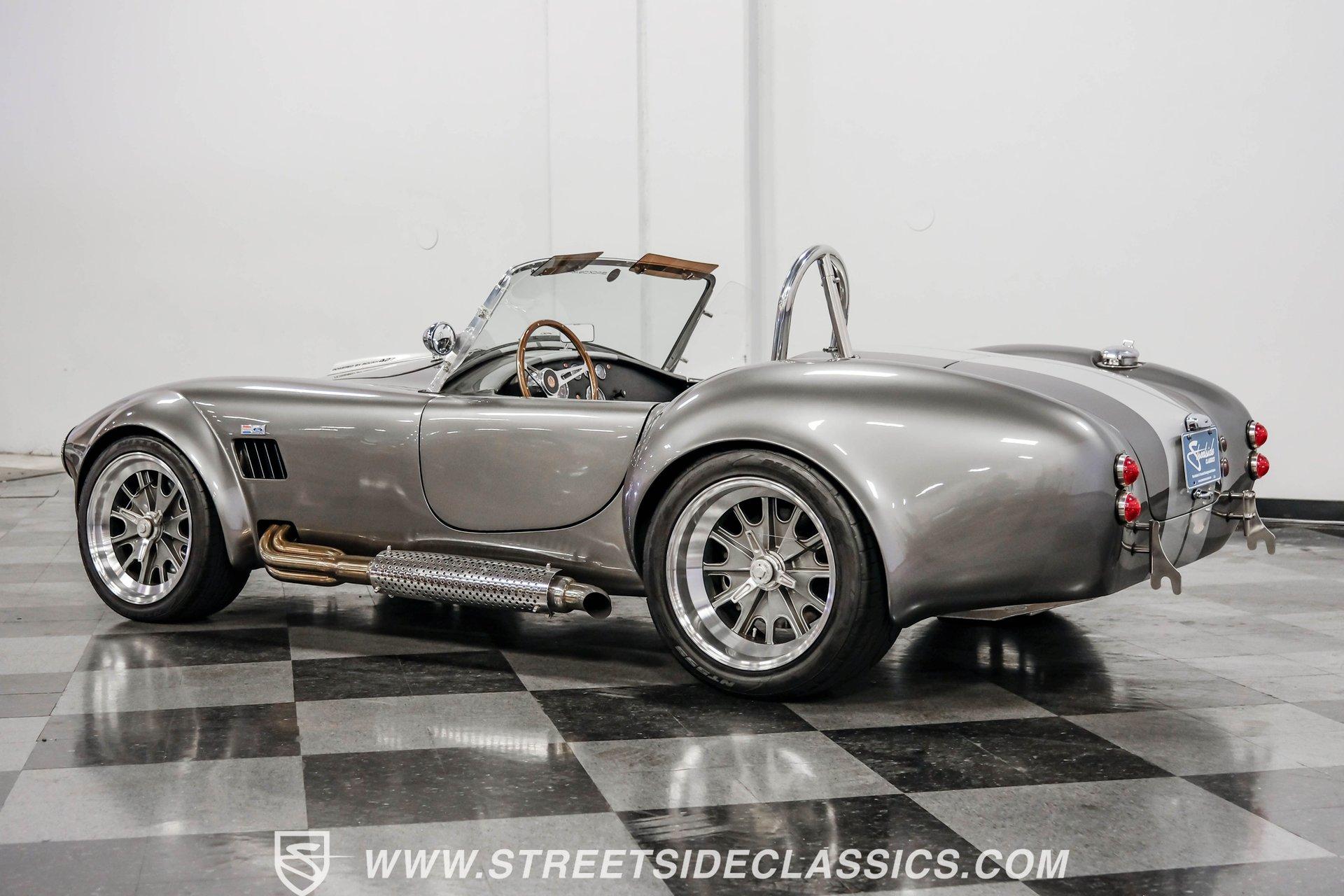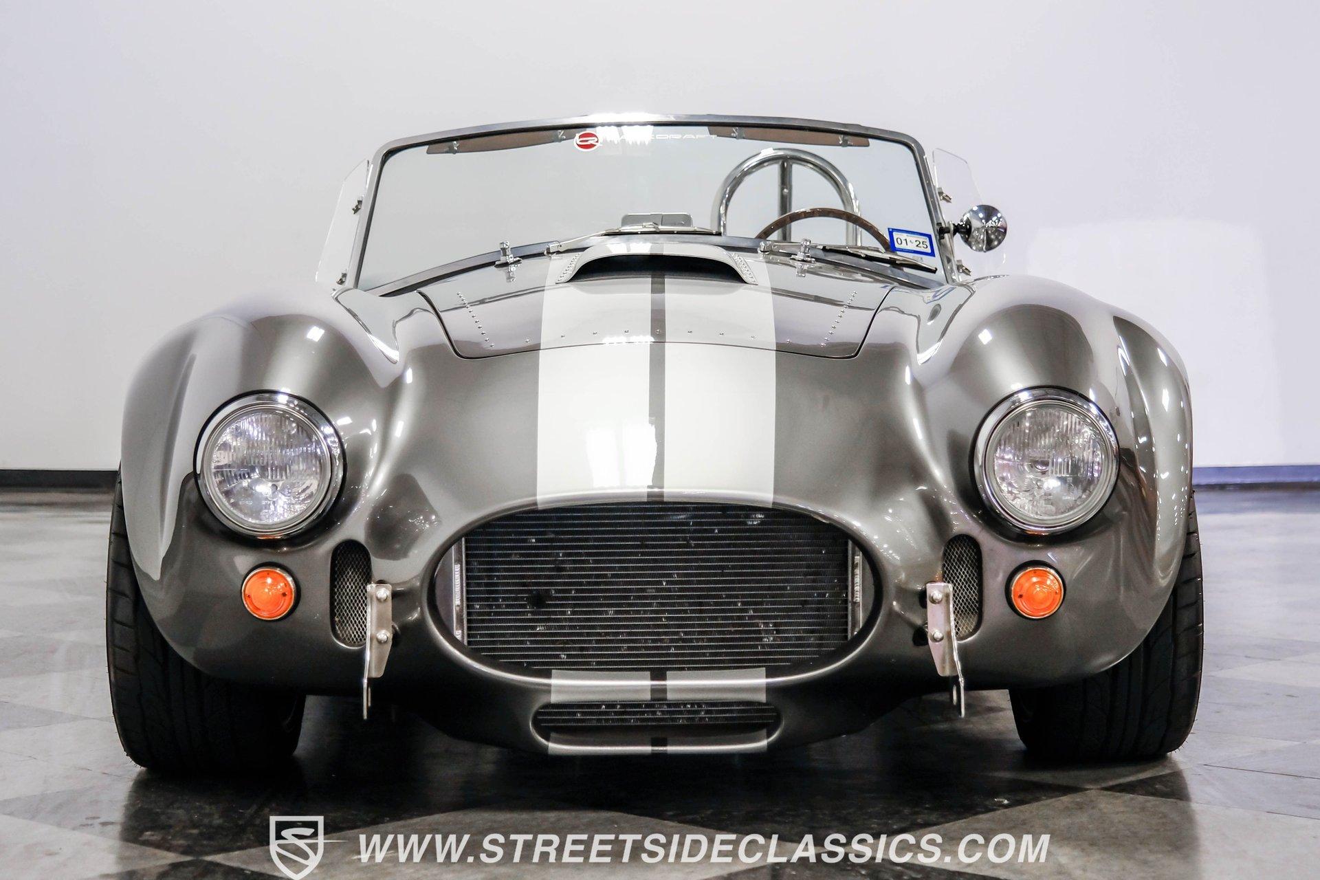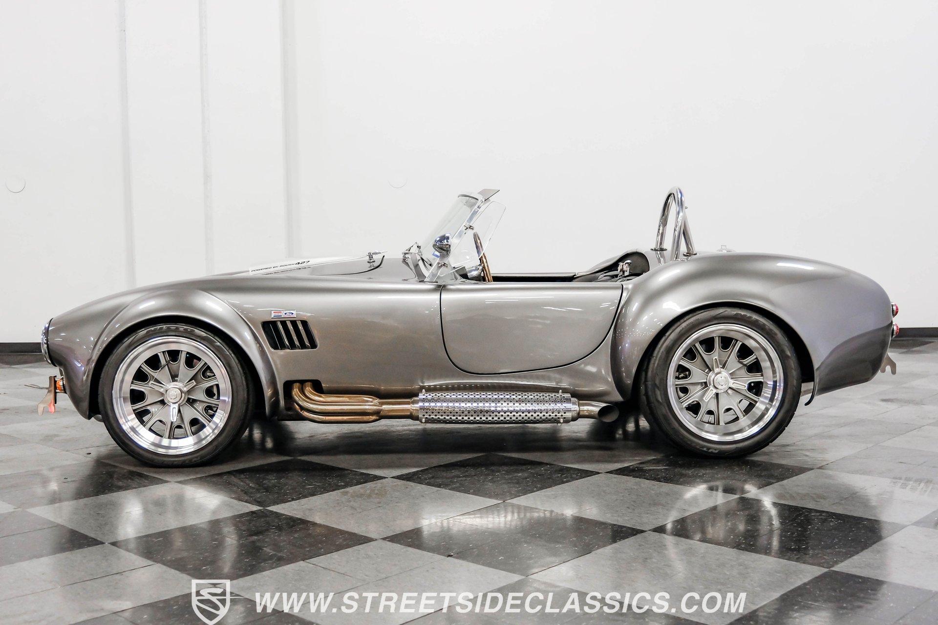 On the Mount Rushmore of historical muscle cars, Carroll Shelby's Cobra is so iconic it might deserve two out of the four available spots. The king of the vaunted 0-100-0 speed test for the better part of three decades, no car has authored more motorized fantasies than the Cobra. Which is why we are proud to present to you this Sterling Grey 1965 Shelby Cobra Backdraft 427, a factory-built tribute that is arguably better (in some respects) than the original. Pop open the relatively petite doors, and you'll first notice that the interior panel consists of a simple pull-strap and a side pocket, and that's it. The no-frills motif continues with a three-spoke steering wheel featuring a nicely contrasted custom wood-rimmed, while at the same time, a seven-pod AutoMeter gauge cluster takes up the majority of the dashboard. A large 8,000 rpm tachometer is centrally located, while the slightly smaller 180 mph speedometer is offset and reads in reverse, true to the original car's setup. Five smaller auxiliary gauges share space with a big red engine starter button begging to be pushed, while Sabelt racing harnesses keep you strapped into the black leather bucket seats. Don't bother looking for a radio, as all the harmony you need will be coming from those massive side pipes bellowing with authority. Under that signature front-hinged hood, we find an incredible Roush-built crate engine 427 R V-8 engine. Outfitted with lightweight aluminum heads and a performance cam, this big block is fed by a single Holley four-barrel carburetor covered by a large air cleaner proudly displaying the Roush name. Long tube headers connect to the aforementioned side pipes to efficiently dispel exhaust gases, enabling this motor to produce an incredible 554 horsepower and 529 pound-feet of torque. That massive power is routed through a Tremec TKO600 five-speed manual transmission, operated in traditional Cobra fashion by a forward-mounted gear shift before heading out to a Ford 8.8-inch rear end housing stout 3.55 gears to provide the perfect balance of off-the-line acceleration and reasonable fuel efficiency on the highway. Roush 427R V8 554 HP & 529 Pound Feet Holley Four Barrel Long Tubes Side Pipes Tremec TKO500 Five Speed 8.8 Inch Rear 3.55 Rear Gears Fully Independent Suspension Coilovers Four Wheel Disc Brakes Knock Off Wheels Nitto Tires Build Book / Owner's Manual Maintenance Records Unlike the original car, this modern 1965 Shelby Cobra Backdraft 427 features a fully independent suspension with coilovers at all four corners. A set of power disc brakes hides behind the 18-inch wheels, which utilize real knock-off center caps and are shod in low-profile Nitto rubber measuring 245/40R-18 up front and wider 295/40R-18 in the rear. While the original Shebly Cobras are skyrocketing in price well beyond most people's disposable cash income level, this Backdraft 427 offers up everything that made the original car special. It combines it with the benefits of modern technology to make it an even more well-rounded performer than could be had sixty years ago. Don't wait, call today! *Please note this car is being sold with a clear Texas title and is titled as a 2020 Roadster w/ the Remarks: Replica 1965 Roadster