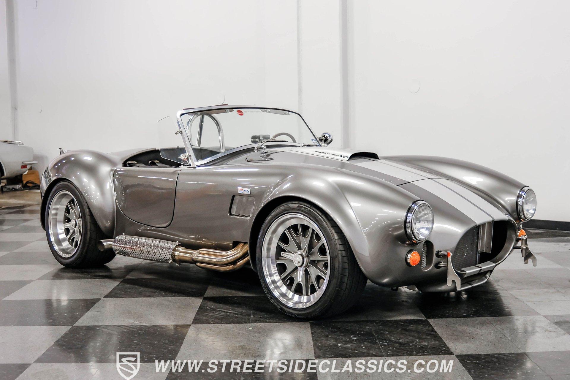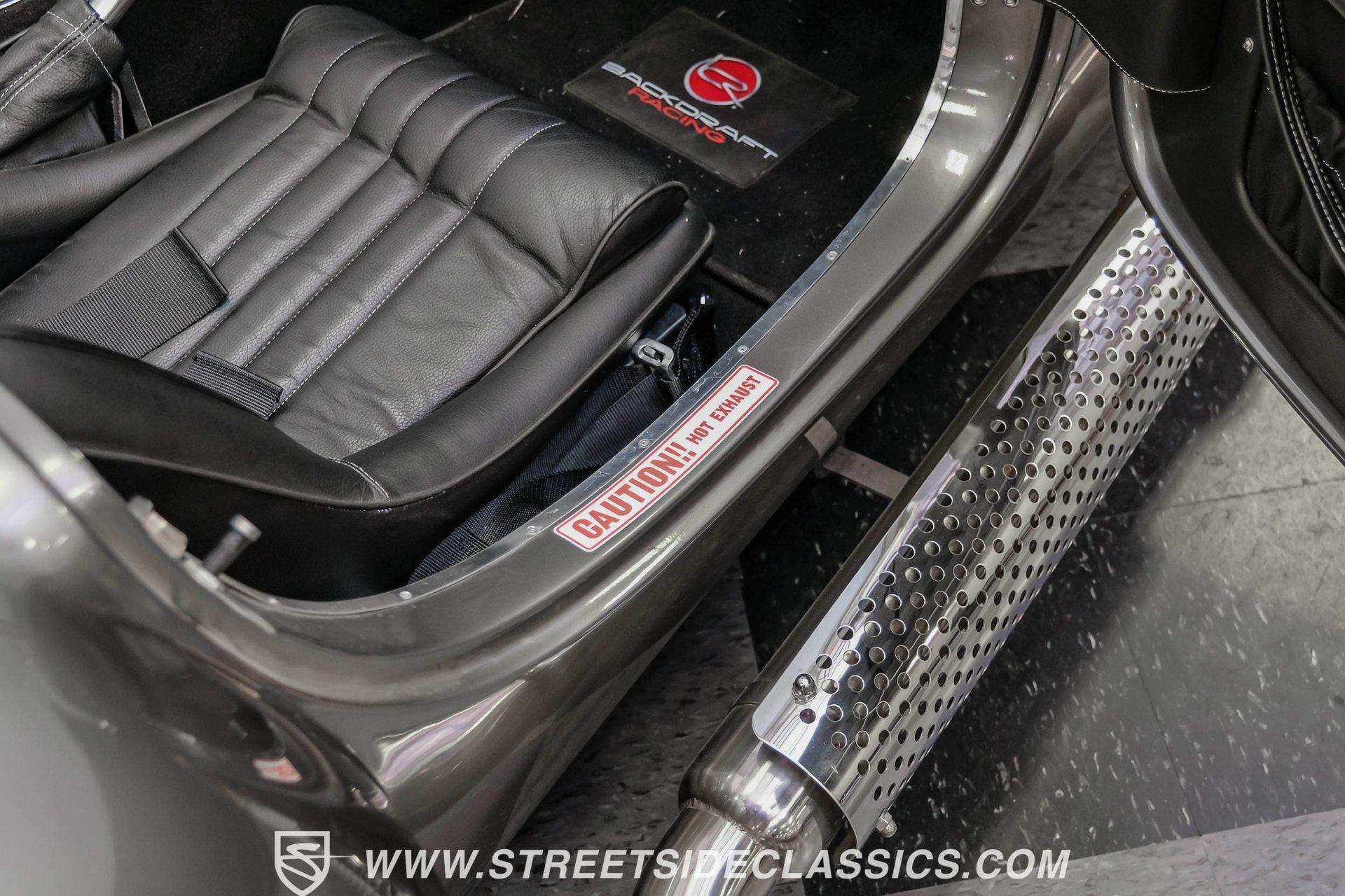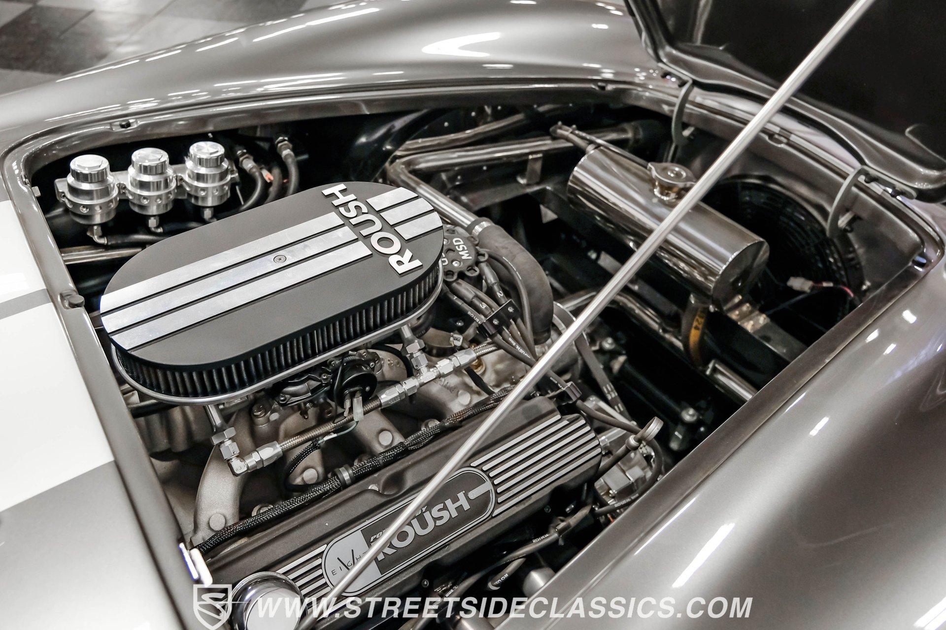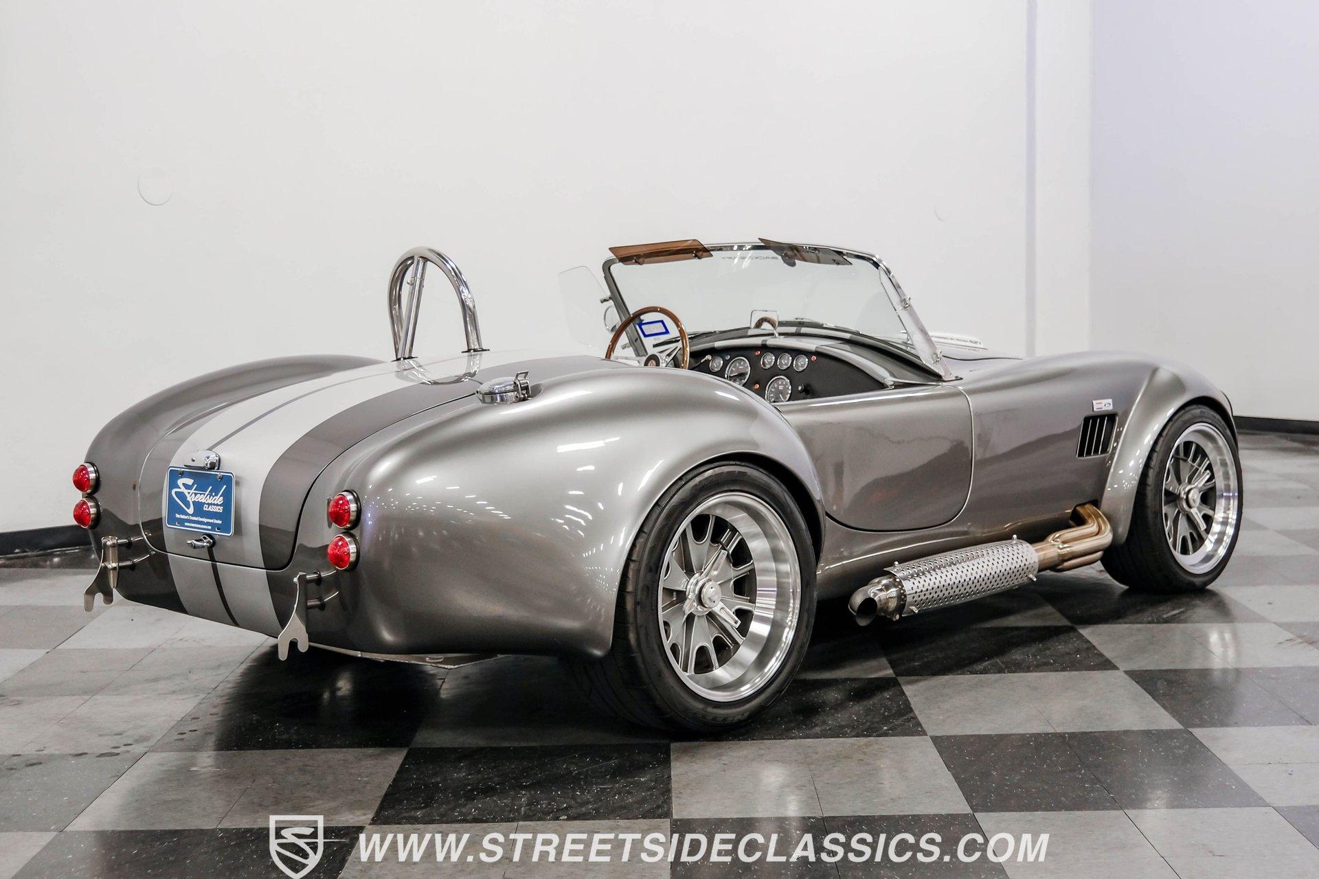On the Mount Rushmore of historical muscle cars, Carroll Shelby's Cobra is so iconic it might deserve two out of the four available spots. The king of the vaunted 0-100-0 speed test for the better part of three decades, no car has authored more motorized fantasies than the Cobra. Which is why we are proud to present to you this Sterling Grey 1965 Shelby Cobra Backdraft 427, a factory-built tribute that is arguably better (in some respects) than the original. Pop open the relatively petite doors, and you'll first notice that the interior panel consists of a simple pull-strap and a side pocket, and that's it. The no-frills motif continues with a three-spoke steering wheel featuring a nicely contrasted custom wood-rimmed, while at the same time, a seven-pod AutoMeter gauge cluster takes up the majority of the dashboard. A large 8,000 rpm tachometer is centrally located, while the slightly smaller 180 mph speedometer is offset and reads in reverse, true to the original car's setup. Five smaller auxiliary gauges share space with a big red engine starter button begging to be pushed, while Sabelt racing harnesses keep you strapped into the black leather bucket seats. Don't bother looking for a radio, as all the harmony you need will be coming from those massive side pipes bellowing with authority. Under that signature front-hinged hood, we find an incredible Roush-built crate engine 427 R V-8 engine. Outfitted with lightweight aluminum heads and a performance cam, this big block is fed by a single Holley four-barrel carburetor covered by a large air cleaner proudly displaying the Roush name. Long tube headers connect to the aforementioned side pipes to efficiently dispel exhaust gases, enabling this motor to produce an incredible 554 horsepower and 529 pound-feet of torque. That massive power is routed through a Tremec TKO600 five-speed manual transmission, operated in traditional Cobra fashion by a forward-mounted gear shift before heading out to a Ford 8.8-inch rear end housing stout 3.55 gears to provide the perfect balance of off-the-line acceleration and reasonable fuel efficiency on the highway. Roush 427R V8 554 HP & 529 Pound Feet Holley Four Barrel Long Tubes Side Pipes Tremec TKO500 Five Speed 8.8 Inch Rear 3.55 Rear Gears Fully Independent Suspension Coilovers Four Wheel Disc Brakes Knock Off Wheels Nitto Tires Build Book / Owner's Manual Maintenance Records Unlike the original car, this modern 1965 Shelby Cobra Backdraft 427 features a fully independent suspension with coilovers at all four corners. A set of power disc brakes hides behind the 18-inch wheels, which utilize real knock-off center caps and are shod in low-profile Nitto rubber measuring 245/40R-18 up front and wider 295/40R-18 in the rear. While the original Shebly Cobras are skyrocketing in price well beyond most people's disposable cash income level, this Backdraft 427 offers up everything that made the original car special. It combines it with the benefits of modern technology to make it an even more well-rounded performer than could be had sixty years ago. Don't wait, call today! *Please note this car is being sold with a clear Texas title and is titled as a 2020 Roadster w/ the Remarks: Replica 1965 Roadster