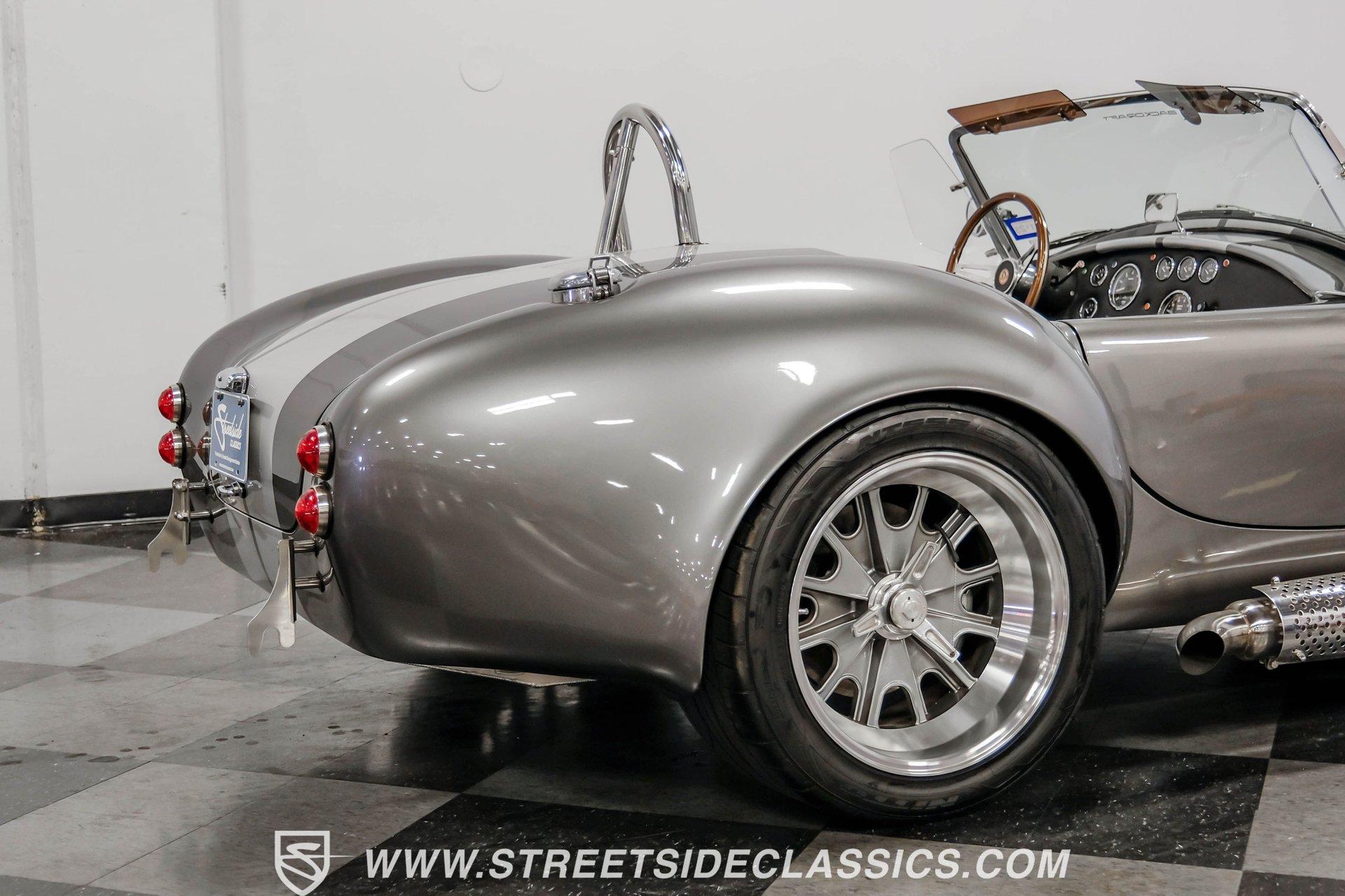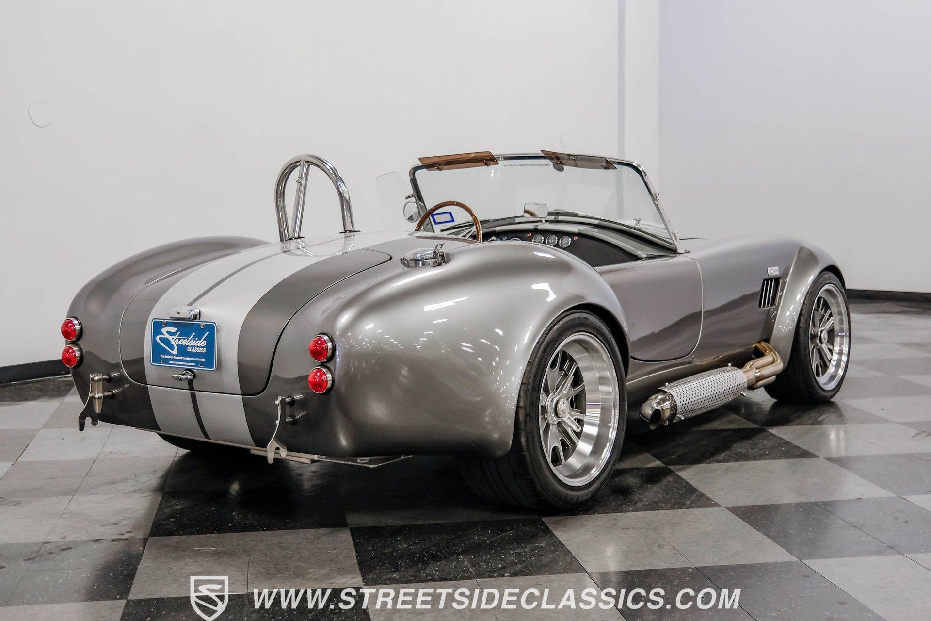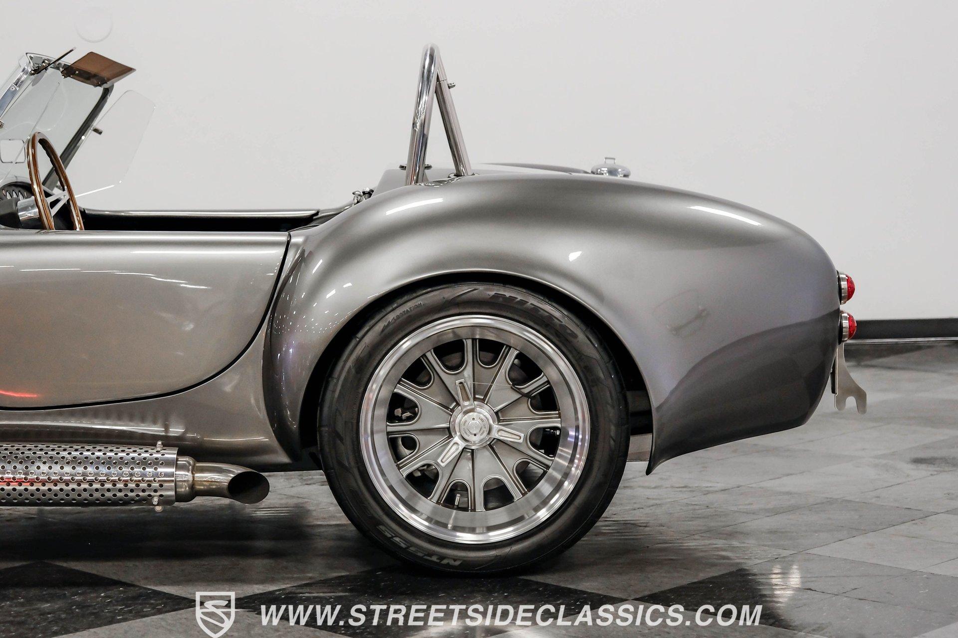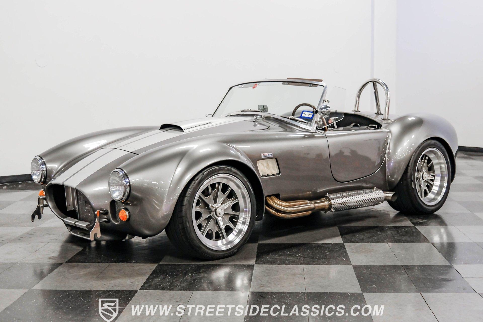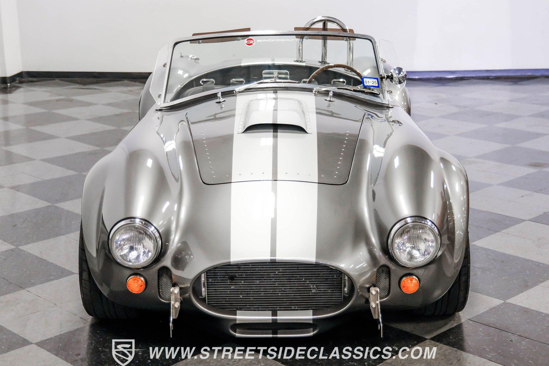 On the Mount Rushmore of historical muscle cars, Carroll Shelby's Cobra is so iconic it might deserve two out of the four available spots. The king of the vaunted 0-100-0 speed test for the better part of three decades, no car has authored more motorized fantasies than the Cobra. Which is why we are proud to present to you this Sterling Grey 1965 Shelby Cobra Backdraft 427, a factory-built tribute that is arguably better (in some respects) than the original. Pop open the relatively petite doors, and you'll first notice that the interior panel consists of a simple pull-strap and a side pocket, and that's it. The no-frills motif continues with a three-spoke steering wheel featuring a nicely contrasted custom wood-rimmed, while at the same time, a seven-pod AutoMeter gauge cluster takes up the majority of the dashboard. A large 8,000 rpm tachometer is centrally located, while the slightly smaller 180 mph speedometer is offset and reads in reverse, true to the original car's setup. Five smaller auxiliary gauges share space with a big red engine starter button begging to be pushed, while Sabelt racing harnesses keep you strapped into the black leather bucket seats. Don't bother looking for a radio, as all the harmony you need will be coming from those massive side pipes bellowing with authority. Under that signature front-hinged hood, we find an incredible Roush-built crate engine 427 R V-8 engine. Outfitted with lightweight aluminum heads and a performance cam, this big block is fed by a single Holley four-barrel carburetor covered by a large air cleaner proudly displaying the Roush name. Long tube headers connect to the aforementioned side pipes to efficiently dispel exhaust gases, enabling this motor to produce an incredible 554 horsepower and 529 pound-feet of torque. That massive power is routed through a Tremec TKO600 five-speed manual transmission, operated in traditional Cobra fashion by a forward-mounted gear shift before heading out to a Ford 8.8-inch rear end housing stout 3.55 gears to provide the perfect balance of off-the-line acceleration and reasonable fuel efficiency on the highway. Roush 427R V8 554 HP & 529 Pound Feet Holley Four Barrel Long Tubes Side Pipes Tremec TKO500 Five Speed 8.8 Inch Rear 3.55 Rear Gears Fully Independent Suspension Coilovers Four Wheel Disc Brakes Knock Off Wheels Nitto Tires Build Book / Owner's Manual Maintenance Records Unlike the original car, this modern 1965 Shelby Cobra Backdraft 427 features a fully independent suspension with coilovers at all four corners. A set of power disc brakes hides behind the 18-inch wheels, which utilize real knock-off center caps and are shod in low-profile Nitto rubber measuring 245/40R-18 up front and wider 295/40R-18 in the rear. While the original Shebly Cobras are skyrocketing in price well beyond most people's disposable cash income level, this Backdraft 427 offers up everything that made the original car special. It combines it with the benefits of modern technology to make it an even more well-rounded performer than could be had sixty years ago. Don't wait, call today! *Please note this car is being sold with a clear Texas title and is titled as a 2020 Roadster w/ the Remarks: Replica 1965 Roadster