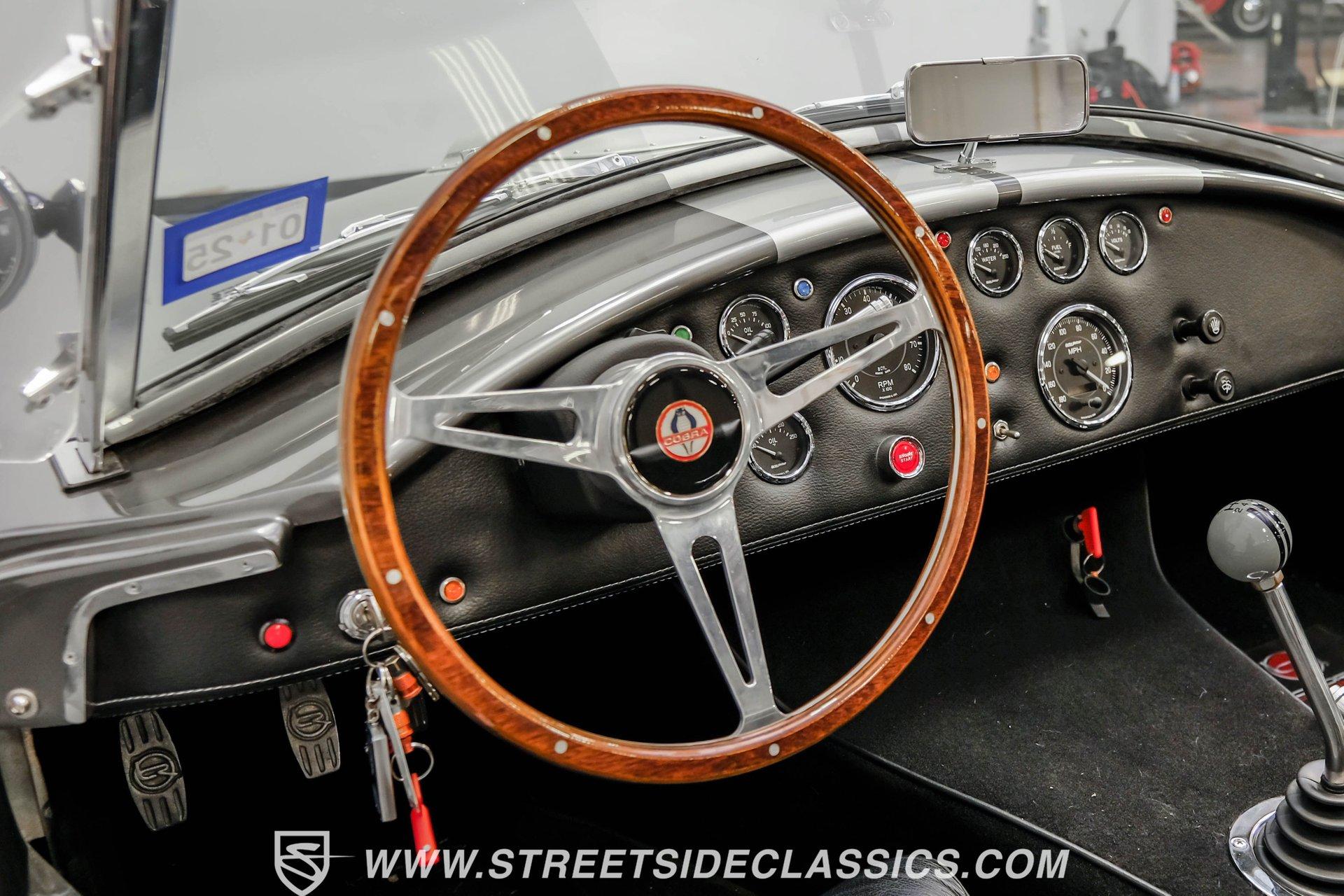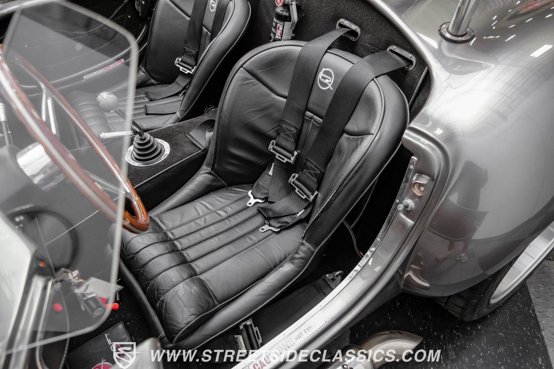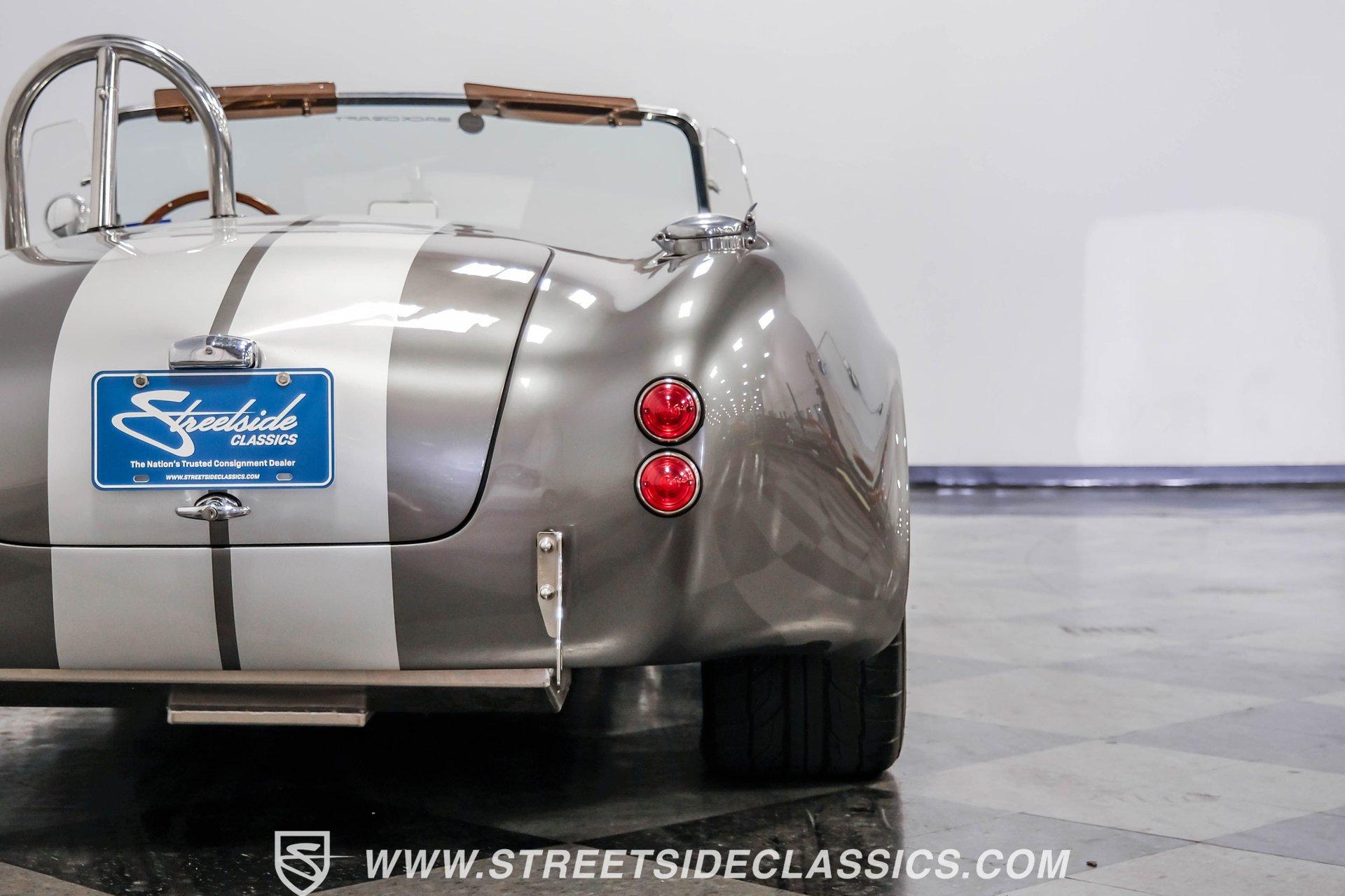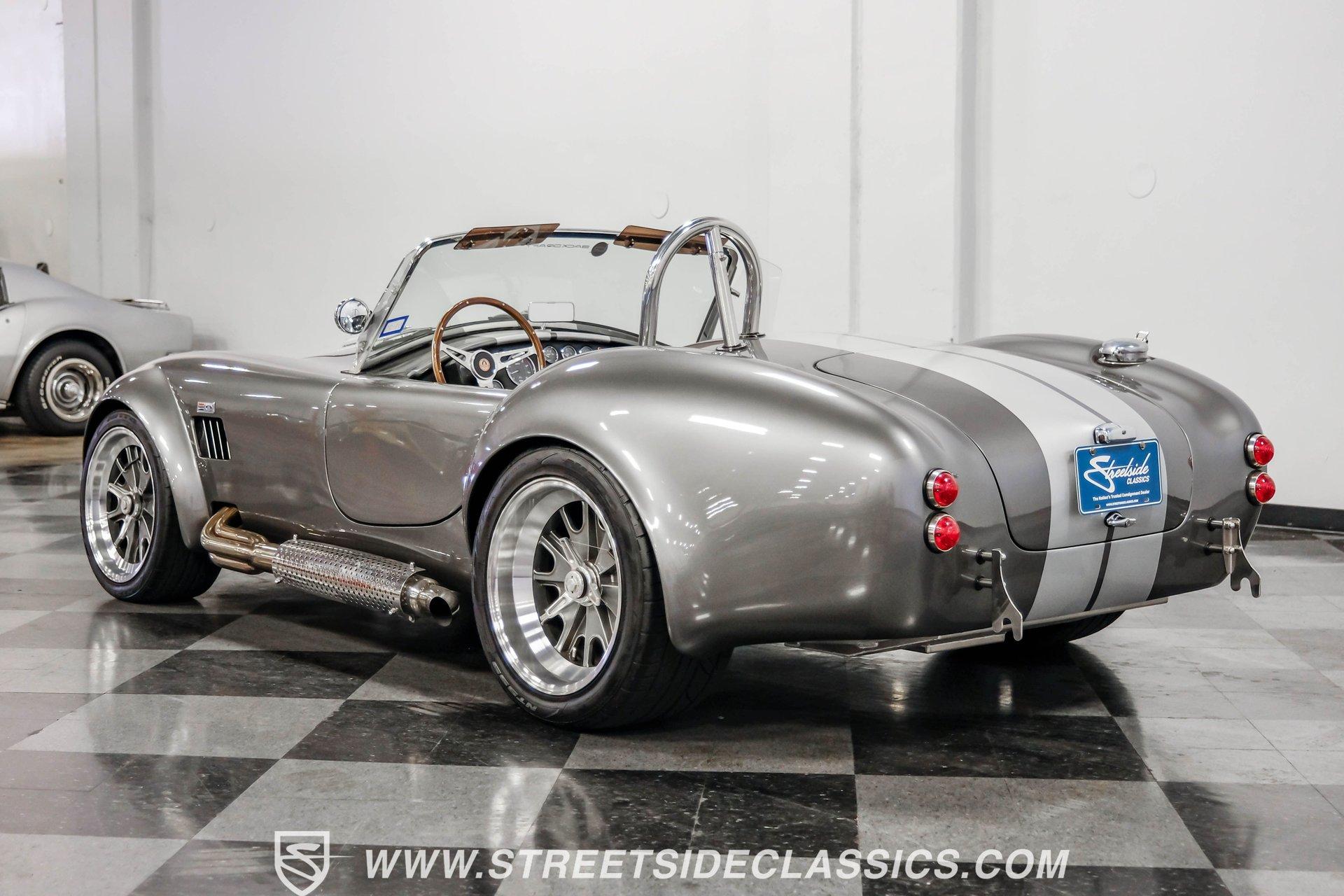On the Mount Rushmore of historical muscle cars, Carroll Shelby's Cobra is so iconic it might deserve two out of the four available spots. The king of the vaunted 0-100-0 speed test for the better part of three decades, no car has authored more motorized fantasies than the Cobra. Which is why we are proud to present to you this Sterling Grey 1965 Shelby Cobra Backdraft 427, a factory-built tribute that is arguably better (in some respects) than the original. Pop open the relatively petite doors, and you'll first notice that the interior panel consists of a simple pull-strap and a side pocket, and that's it. The no-frills motif continues with a three-spoke steering wheel featuring a nicely contrasted custom wood-rimmed, while at the same time, a seven-pod AutoMeter gauge cluster takes up the majority of the dashboard. A large 8,000 rpm tachometer is centrally located, while the slightly smaller 180 mph speedometer is offset and reads in reverse, true to the original car's setup. Five smaller auxiliary gauges share space with a big red engine starter button begging to be pushed, while Sabelt racing harnesses keep you strapped into the black leather bucket seats. Don't bother looking for a radio, as all the harmony you need will be coming from those massive side pipes bellowing with authority. Under that signature front-hinged hood, we find an incredible Roush-built crate engine 427 R V-8 engine. Outfitted with lightweight aluminum heads and a performance cam, this big block is fed by a single Holley four-barrel carburetor covered by a large air cleaner proudly displaying the Roush name. Long tube headers connect to the aforementioned side pipes to efficiently dispel exhaust gases, enabling this motor to produce an incredible 554 horsepower and 529 pound-feet of torque. That massive power is routed through a Tremec TKO600 five-speed manual transmission, operated in traditional Cobra fashion by a forward-mounted gear shift before heading out to a Ford 8.8-inch rear end housing stout 3.55 gears to provide the perfect balance of off-the-line acceleration and reasonable fuel efficiency on the highway. Roush 427R V8 554 HP & 529 Pound Feet Holley Four Barrel Long Tubes Side Pipes Tremec TKO500 Five Speed 8.8 Inch Rear 3.55 Rear Gears Fully Independent Suspension Coilovers Four Wheel Disc Brakes Knock Off Wheels Nitto Tires Build Book / Owner's Manual Maintenance Records Unlike the original car, this modern 1965 Shelby Cobra Backdraft 427 features a fully independent suspension with coilovers at all four corners. A set of power disc brakes hides behind the 18-inch wheels, which utilize real knock-off center caps and are shod in low-profile Nitto rubber measuring 245/40R-18 up front and wider 295/40R-18 in the rear. While the original Shebly Cobras are skyrocketing in price well beyond most people's disposable cash income level, this Backdraft 427 offers up everything that made the original car special. It combines it with the benefits of modern technology to make it an even more well-rounded performer than could be had sixty years ago. Don't wait, call today! *Please note this car is being sold with a clear Texas title and is titled as a 2020 Roadster w/ the Remarks: Replica 1965 Roadster