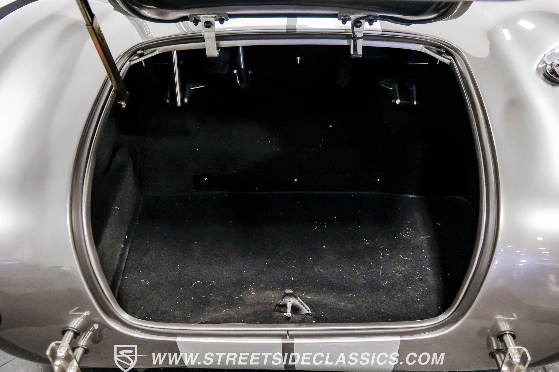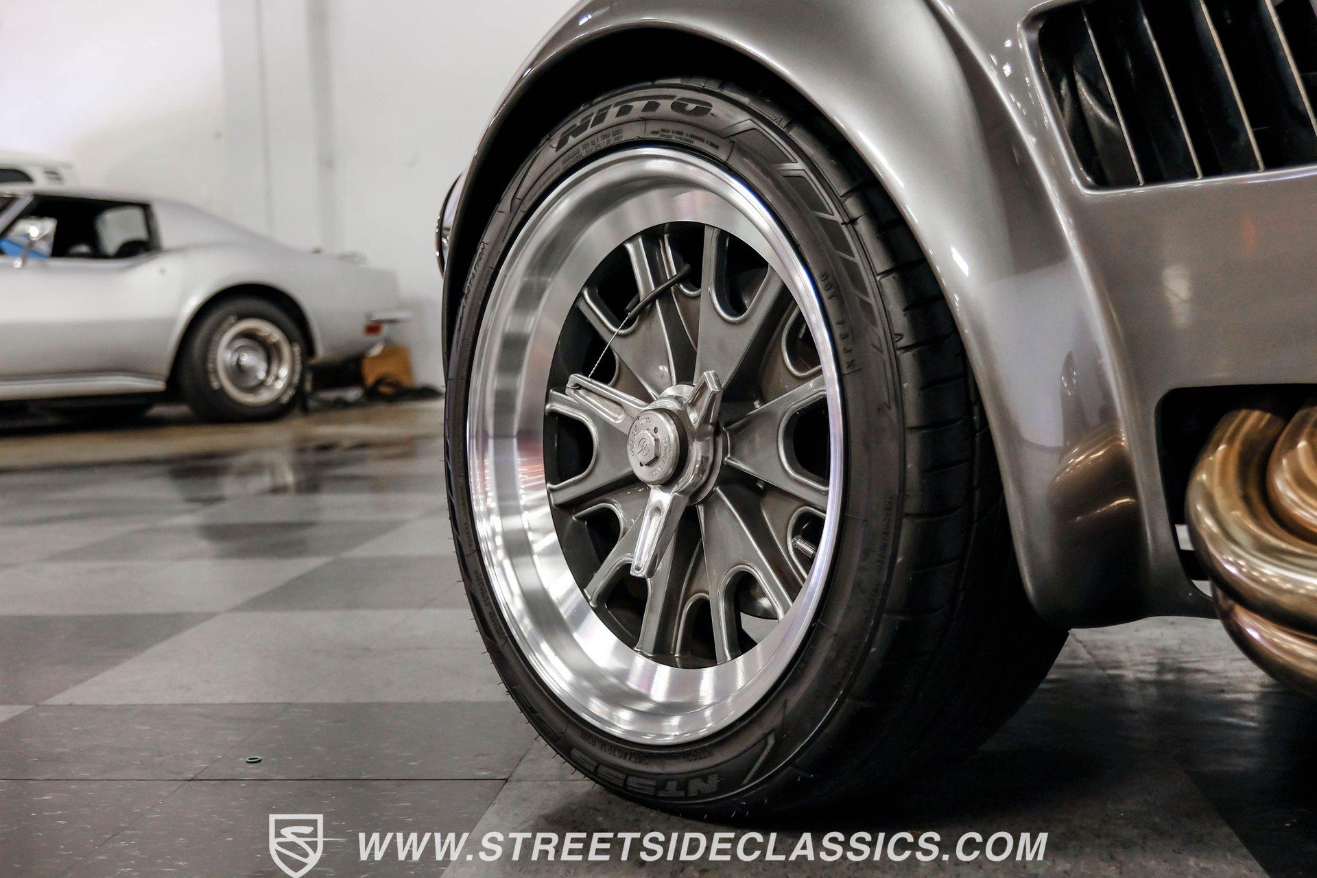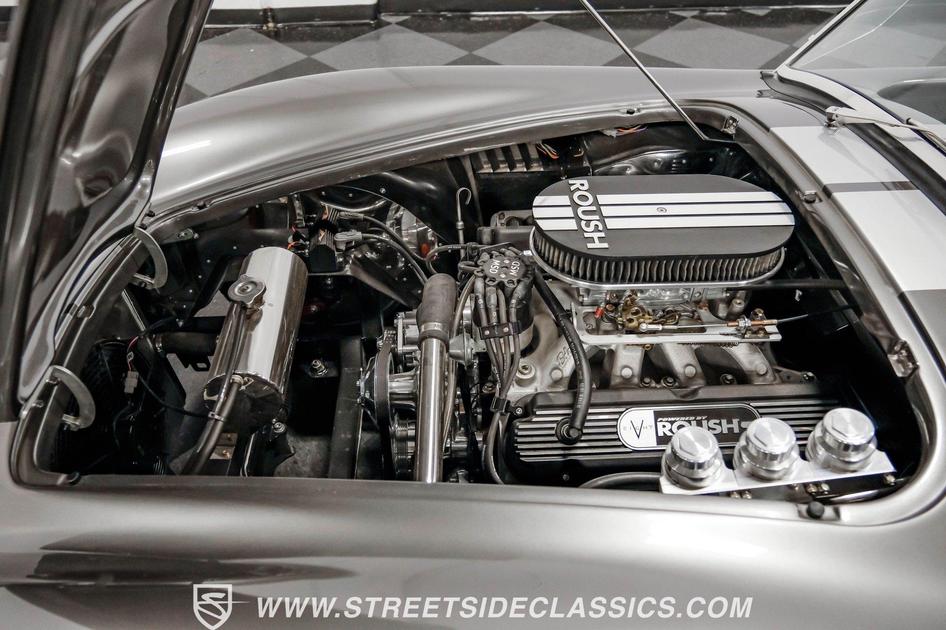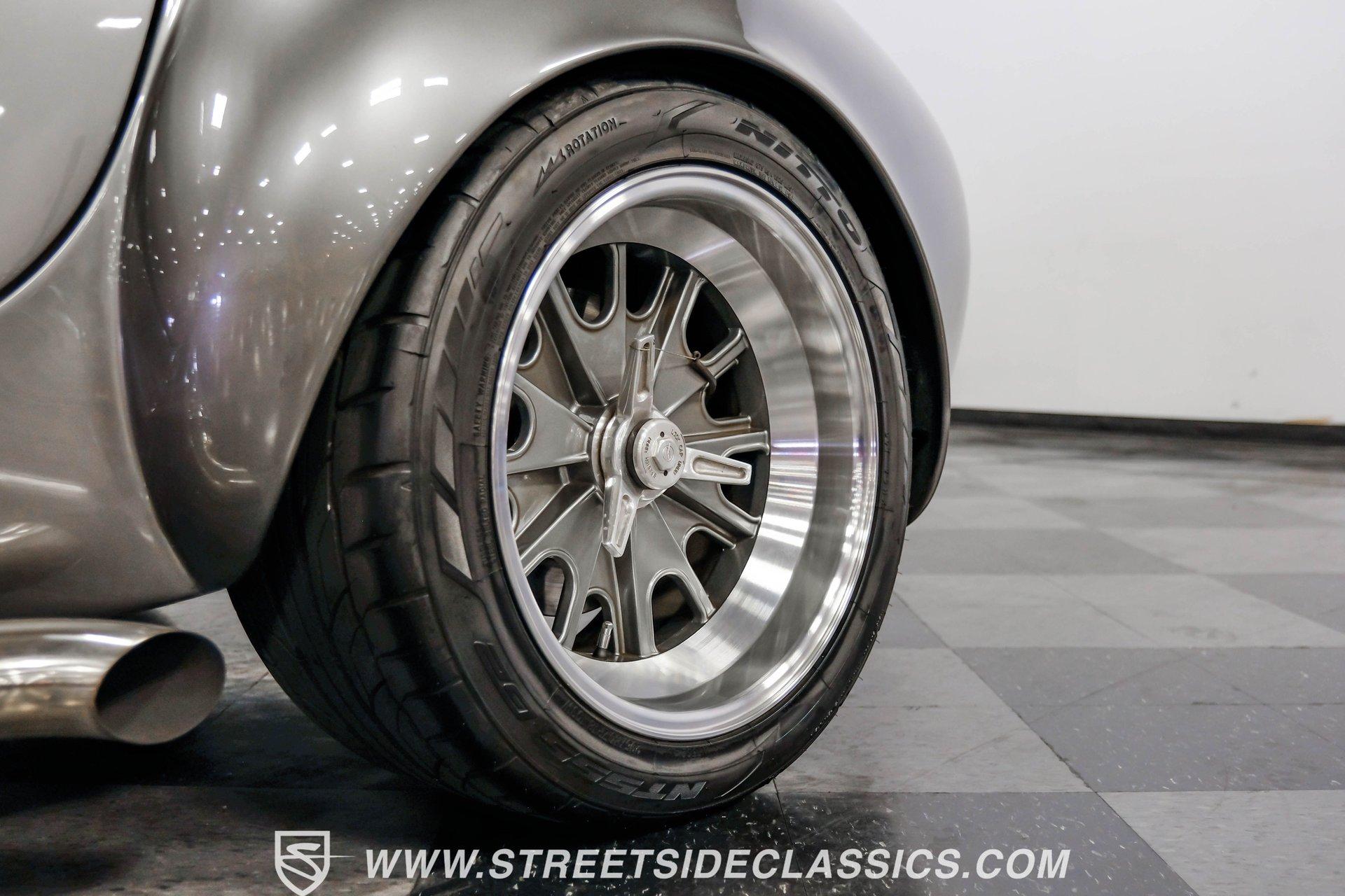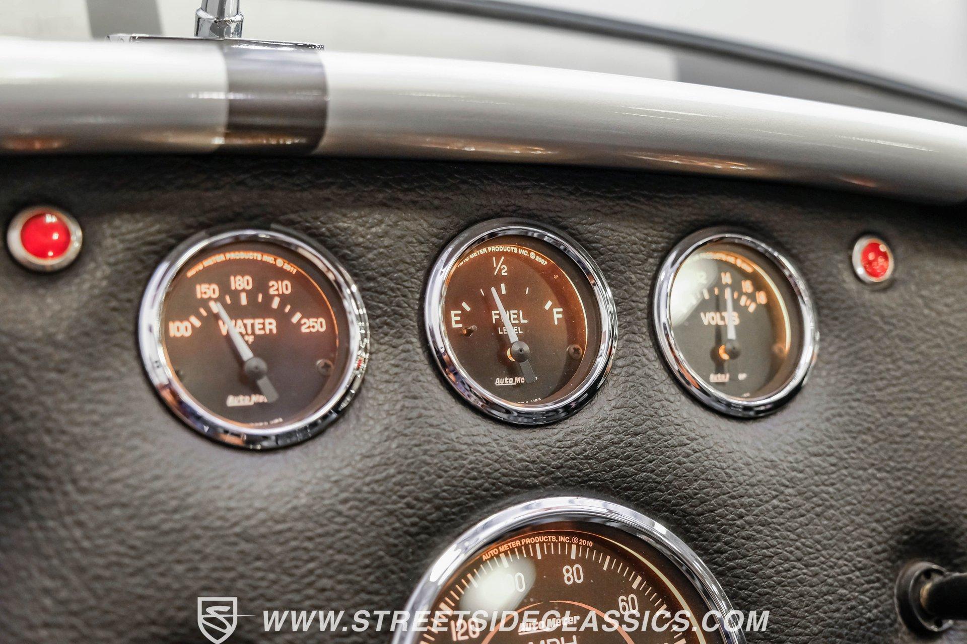 On the Mount Rushmore of historical muscle cars, Carroll Shelby's Cobra is so iconic it might deserve two out of the four available spots. The king of the vaunted 0-100-0 speed test for the better part of three decades, no car has authored more motorized fantasies than the Cobra. Which is why we are proud to present to you this Sterling Grey 1965 Shelby Cobra Backdraft 427, a factory-built tribute that is arguably better (in some respects) than the original. Pop open the relatively petite doors, and you'll first notice that the interior panel consists of a simple pull-strap and a side pocket, and that's it. The no-frills motif continues with a three-spoke steering wheel featuring a nicely contrasted custom wood-rimmed, while at the same time, a seven-pod AutoMeter gauge cluster takes up the majority of the dashboard. A large 8,000 rpm tachometer is centrally located, while the slightly smaller 180 mph speedometer is offset and reads in reverse, true to the original car's setup. Five smaller auxiliary gauges share space with a big red engine starter button begging to be pushed, while Sabelt racing harnesses keep you strapped into the black leather bucket seats. Don't bother looking for a radio, as all the harmony you need will be coming from those massive side pipes bellowing with authority. Under that signature front-hinged hood, we find an incredible Roush-built crate engine 427 R V-8 engine. Outfitted with lightweight aluminum heads and a performance cam, this big block is fed by a single Holley four-barrel carburetor covered by a large air cleaner proudly displaying the Roush name. Long tube headers connect to the aforementioned side pipes to efficiently dispel exhaust gases, enabling this motor to produce an incredible 554 horsepower and 529 pound-feet of torque. That massive power is routed through a Tremec TKO600 five-speed manual transmission, operated in traditional Cobra fashion by a forward-mounted gear shift before heading out to a Ford 8.8-inch rear end housing stout 3.55 gears to provide the perfect balance of off-the-line acceleration and reasonable fuel efficiency on the highway. Roush 427R V8 554 HP & 529 Pound Feet Holley Four Barrel Long Tubes Side Pipes Tremec TKO500 Five Speed 8.8 Inch Rear 3.55 Rear Gears Fully Independent Suspension Coilovers Four Wheel Disc Brakes Knock Off Wheels Nitto Tires Build Book / Owner's Manual Maintenance Records Unlike the original car, this modern 1965 Shelby Cobra Backdraft 427 features a fully independent suspension with coilovers at all four corners. A set of power disc brakes hides behind the 18-inch wheels, which utilize real knock-off center caps and are shod in low-profile Nitto rubber measuring 245/40R-18 up front and wider 295/40R-18 in the rear. While the original Shebly Cobras are skyrocketing in price well beyond most people's disposable cash income level, this Backdraft 427 offers up everything that made the original car special. It combines it with the benefits of modern technology to make it an even more well-rounded performer than could be had sixty years ago. Don't wait, call today! *Please note this car is being sold with a clear Texas title and is titled as a 2020 Roadster w/ the Remarks: Replica 1965 Roadster