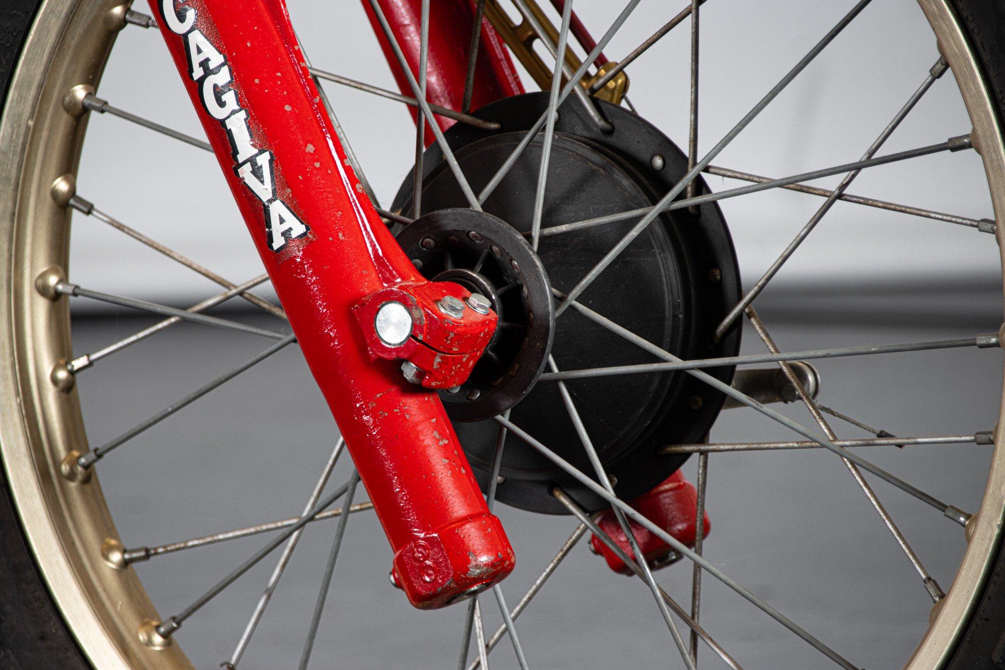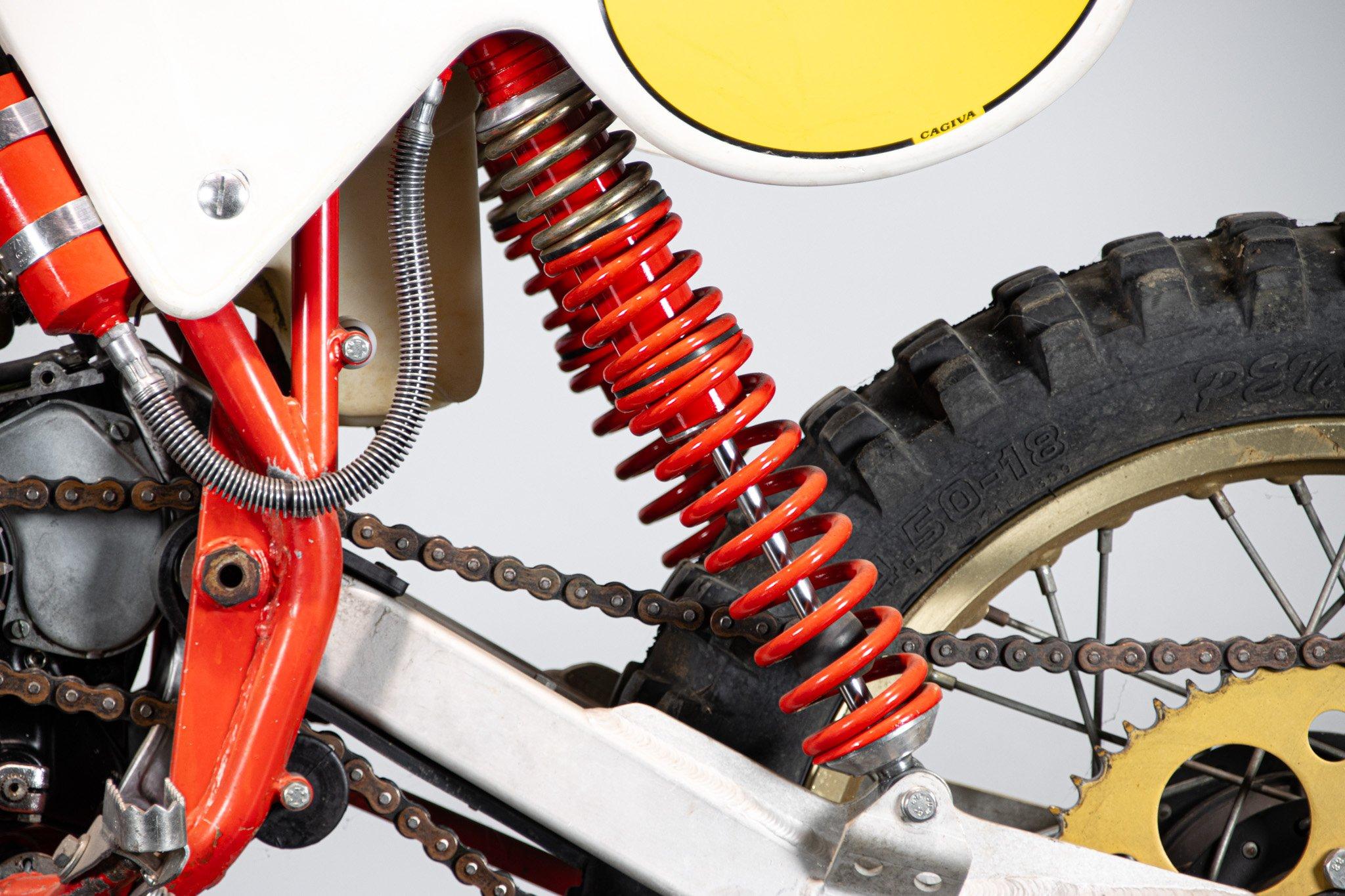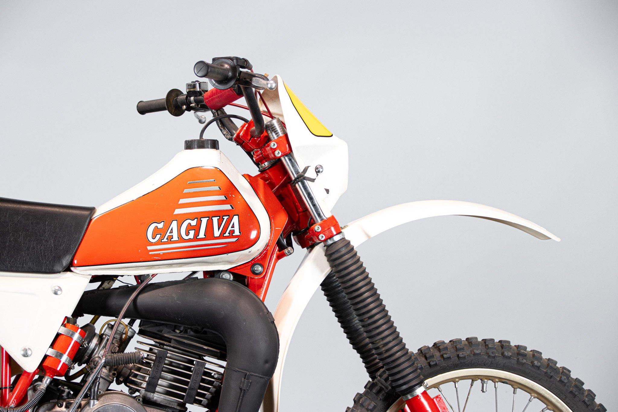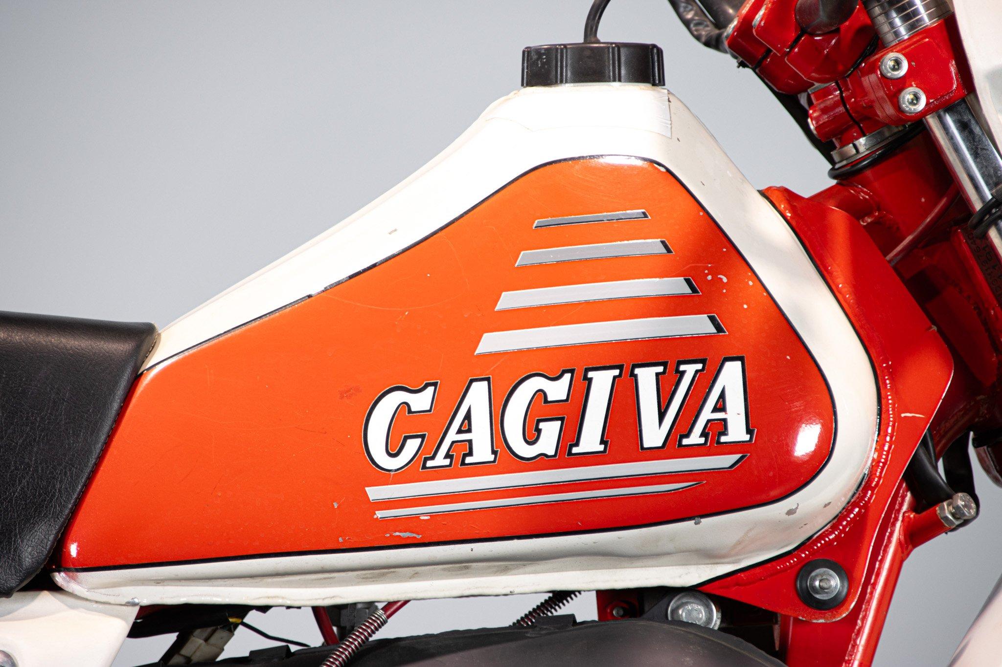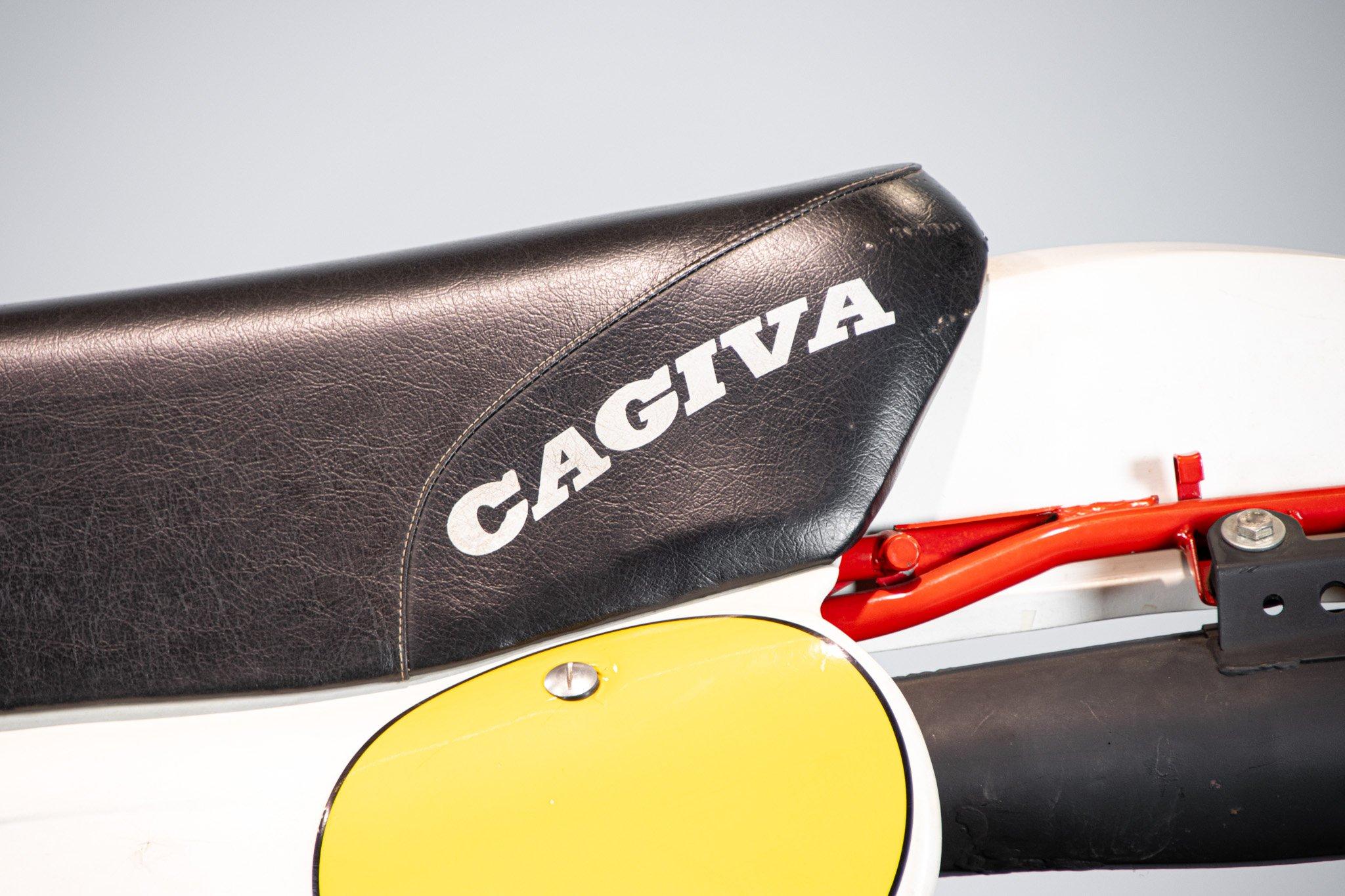 Presentata nel 1977 al salone di Milano, questo monocilindrico due tempi da 35 CV, originariamente in seno alla Harley davidson Aermacchi, viene ripreso dalla nuova gestione Cagiva (Castiglioni Giovanni Varese). Il progetto viene ripreso ed aggiornato in ogni aspetto. Linea moderna, componentistica di alto livello (Magura, Akront, Grimeca, Marzocchi, Sachs-ammortizzatori). La novità, rispetto al progetto originale, è il motore: monocilindrico, corsa corta, cambio ad innesti frontali: 32 CA a 8.000 giri. Ai tempi della presentazione era disponibile un kit fatto da cilindro, carburatore e scarico, capace di incrementare la potenza oltre i 36CV. Esemplare restaurato e da ammirare.