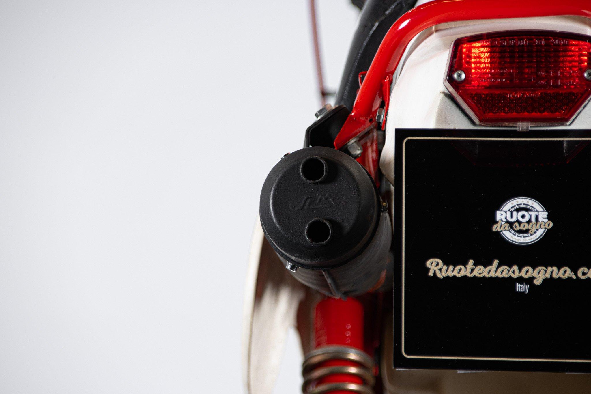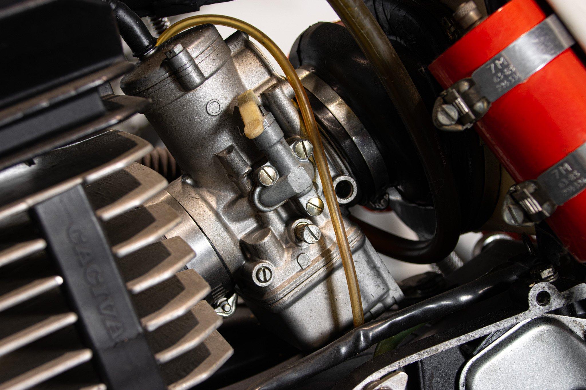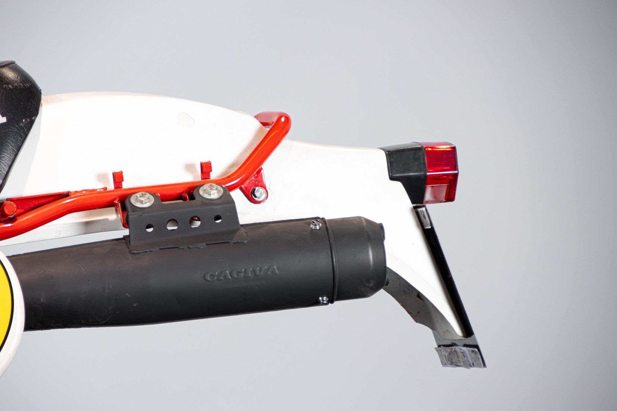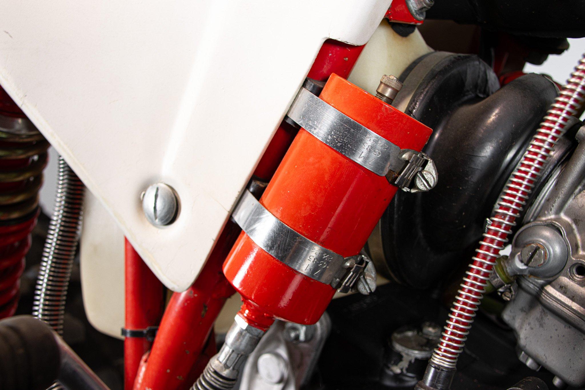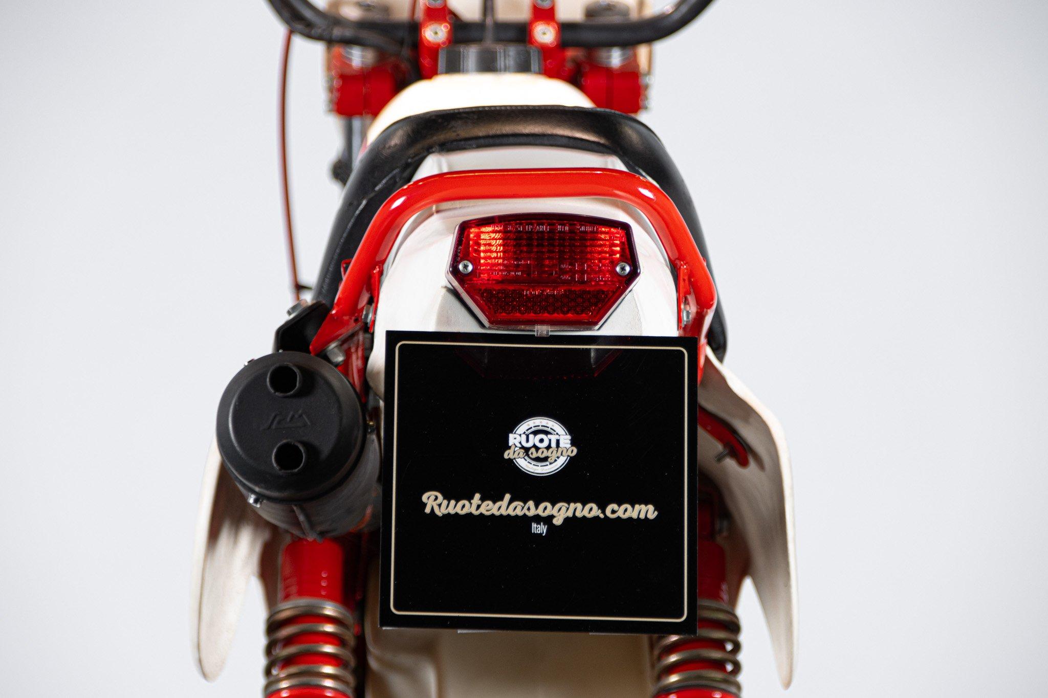 Presentata nel 1977 al salone di Milano, questo monocilindrico due tempi da 35 CV, originariamente in seno alla Harley davidson Aermacchi, viene ripreso dalla nuova gestione Cagiva (Castiglioni Giovanni Varese). Il progetto viene ripreso ed aggiornato in ogni aspetto. Linea moderna, componentistica di alto livello (Magura, Akront, Grimeca, Marzocchi, Sachs-ammortizzatori). La novità, rispetto al progetto originale, è il motore: monocilindrico, corsa corta, cambio ad innesti frontali: 32 CA a 8.000 giri. Ai tempi della presentazione era disponibile un kit fatto da cilindro, carburatore e scarico, capace di incrementare la potenza oltre i 36CV. Esemplare restaurato e da ammirare.