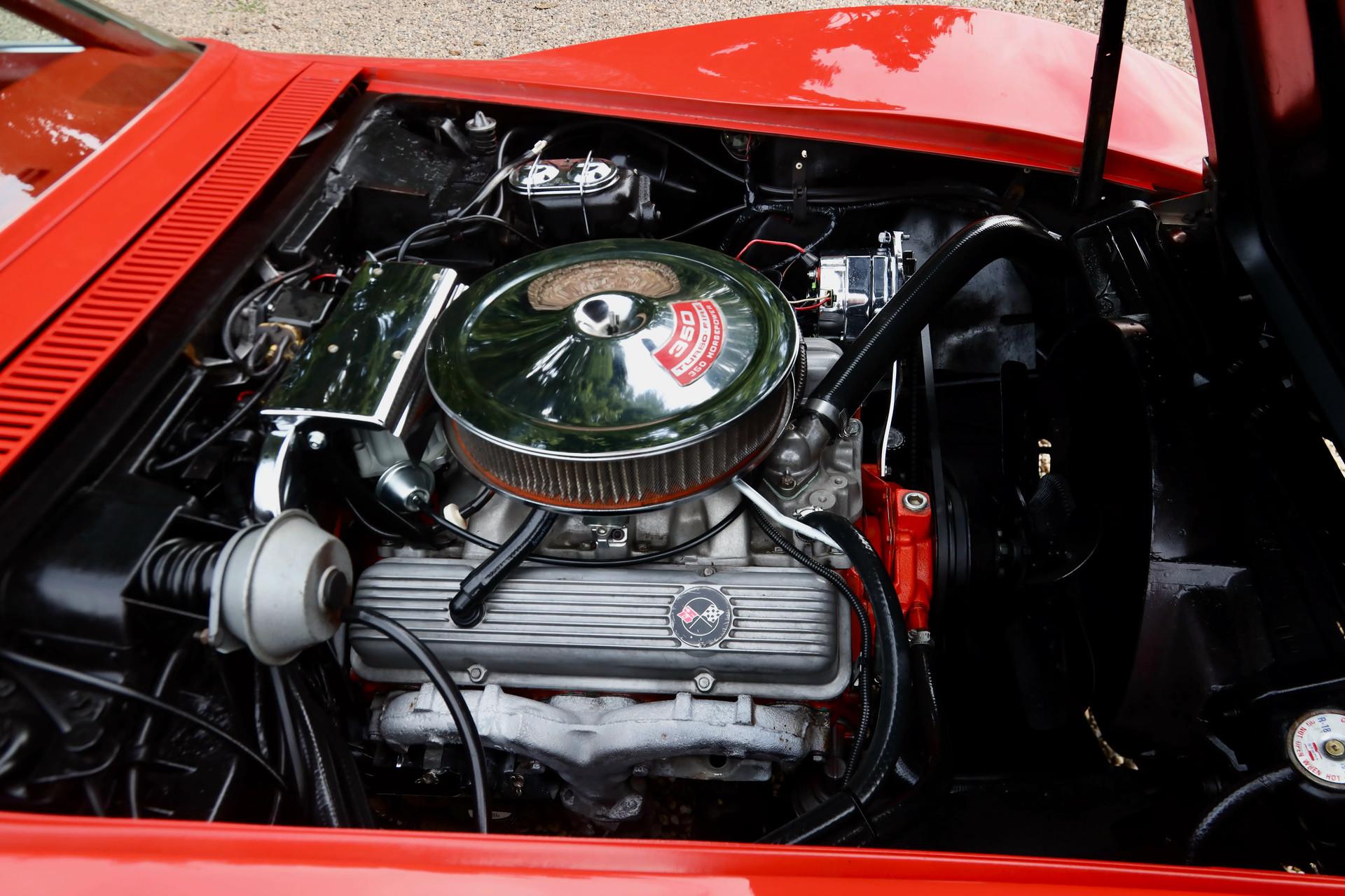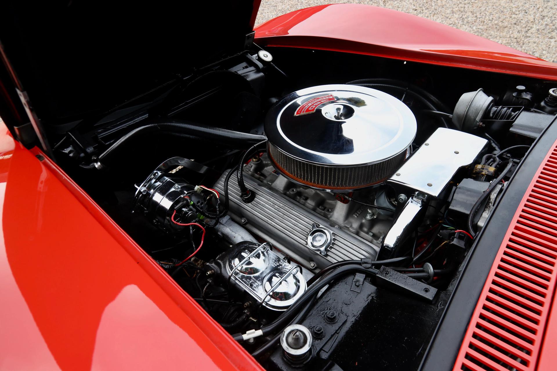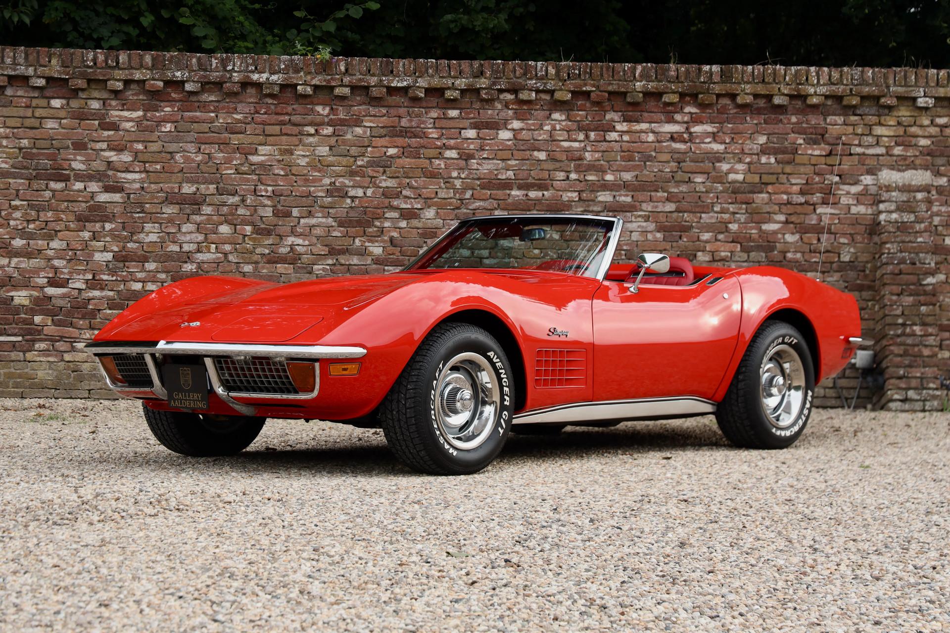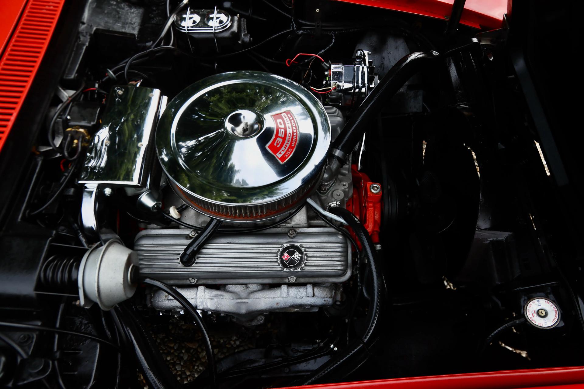The third-generation Corvette, like this one, was built between 1967 and 1982. The 1970 model year, represented here, introduced several updates. For the first time, the body featured integrated fender flares that not only enhanced the car's muscular stance but also offered practical protection against road debris. At the front, a new eggcrate grille was paired with matching side vents, while the turn signals grew larger and more square in design. At the rear, the round exhaust outlets were replaced by larger rectangular units, giving the Corvette a more powerful and mature appearance. Inside, redesigned seats were offered along with an optional “Deluxe” interior package that included wood accents, deeper carpeting, and leather upholstery. Beneath the surface, Positraction became standard, as did tinted glass and a manual transmission with revised gear ratios.