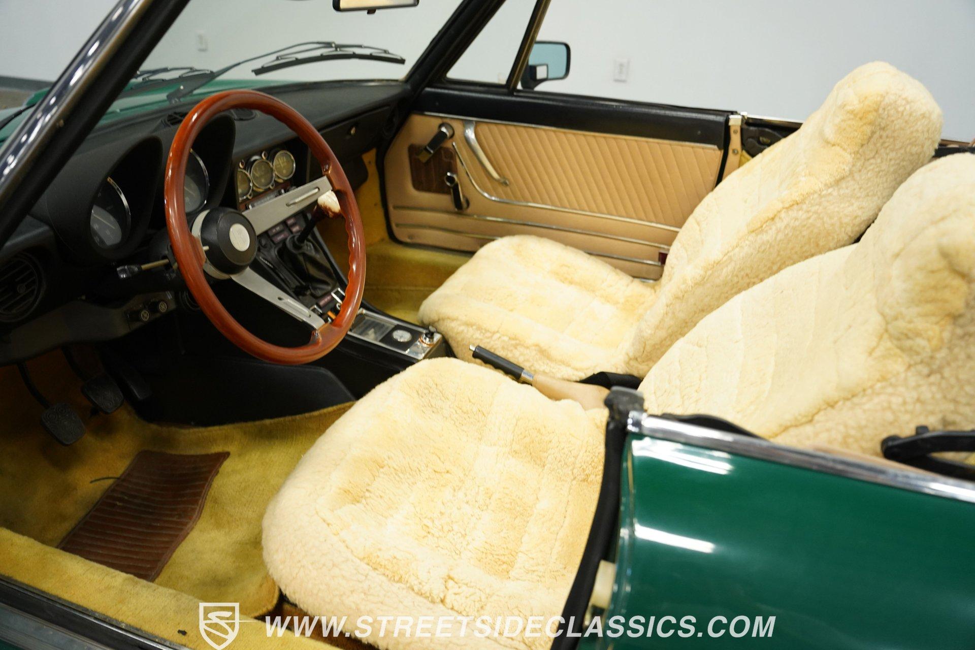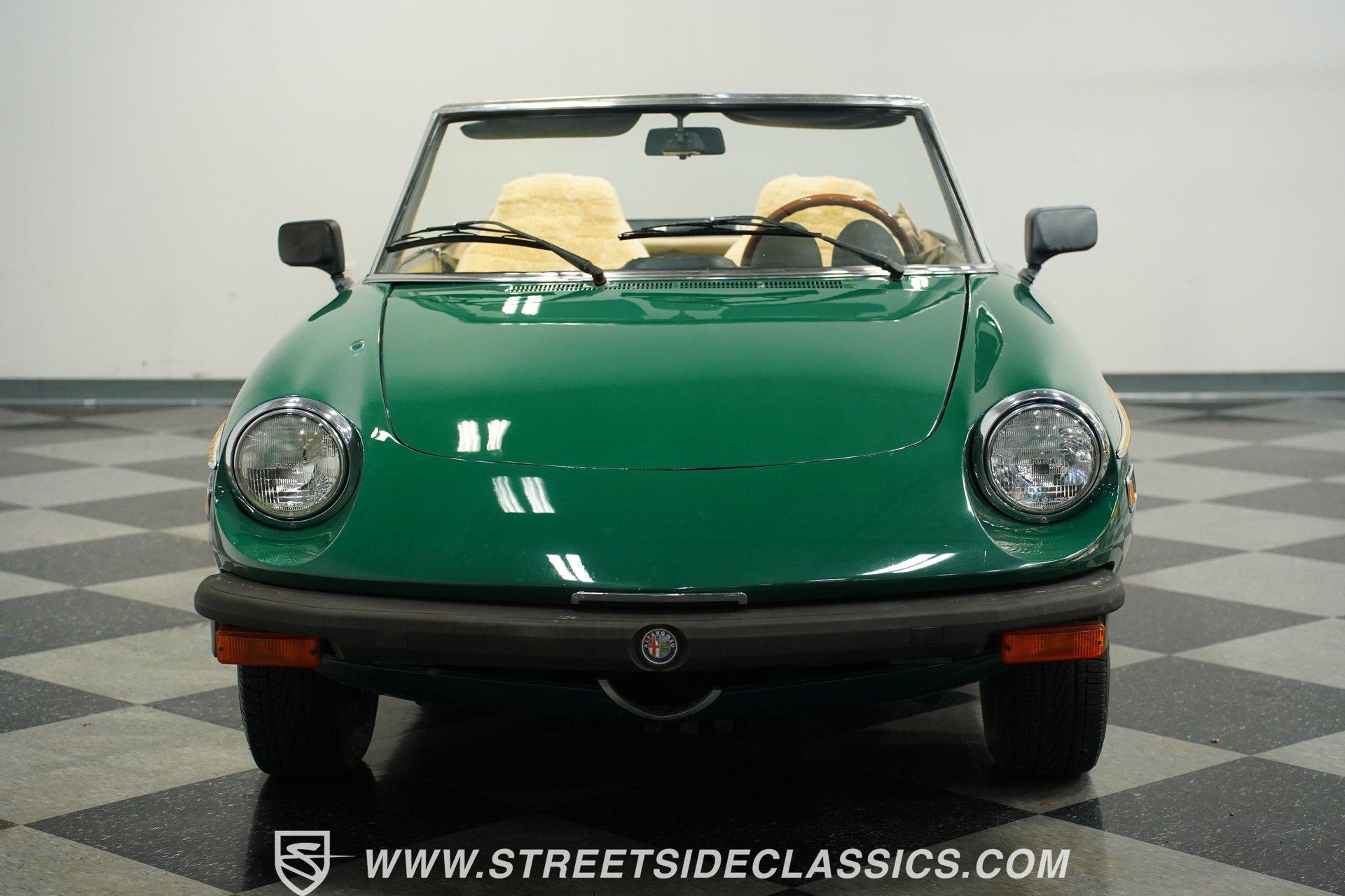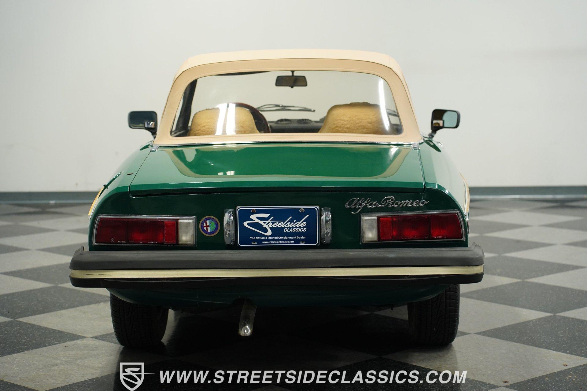 Bought as a demo in Atlanta and driven only on weekends for 47 years, this 1978 Alfa Romeo Spider Veloce in British Green maintains a distinctive Italian profile. The full repaint shows quality workmanship while preserving the car's original character. The tan cloth convertible top provides perfect contrast against the verdant exterior. Rolling on era-correct 14" Cromodora Campanatura alloy wheels with P185/70R14 radial tires, this Spider cuts a classic silhouette on any road. Inside, the tan vinyl interior remains remarkably preserved after four decades. Original bucket seats stay protected under wool seat covers, showing minimal wear throughout. The uncracked dash houses factory instrumentation including the oversized tachometer that dominates the driver's view. An AM/FM cassette player provides entertainment while cruising with the top down. The wood grain steering wheel offers direct connection to the road while the console-mounted shifter falls naturally to hand during gear changes. Mechanically sound, the 2.0L inline 4-cylinder engine provides spirited performance typical of Italian sports cars. The 5-speed manual transmission allows full control over the rev range. Manual steering gives feedback directly from the road surface to the driver's hands. Four-wheel power disc brakes bring everything to a controlled stop when needed. The dual-to-single exhaust system produces the signature sound that's unmistakably Alfa. Fuel injection ensures consistent performance in all driving conditions. HIGHLIGHTS: 2.0L Inline 4 Engine 5-Speed Manual Transmission Fuel Injection Four-Wheel Power Disc Brakes Dual To Single Exhaust British Green Paint (Verde Inglese) 14" Cromodora Alloy Wheels P185/70R14 Radial Tires Tan Cloth Convertible Top Two-Door Convertible Body Style Tan Interior With Bucket Seats In Wool Covers Wood Grain Steering Wheel AM/FM Cassette Player Seatbelts One Owner For 47 Years 37,231 Actual Miles For drivers who appreciate authentic Italian sports cars, this 1978 Alfa Romeo Spider Veloce offers a genuine driving experience that only an Alfa can provide. With just 37,231 actual miles and maintained by a single owner, this Spider comes with the kind of provenance collectors value. The combination of British Green paint and tan interior creates a stunning roadster ready for weekend drives. Call today!