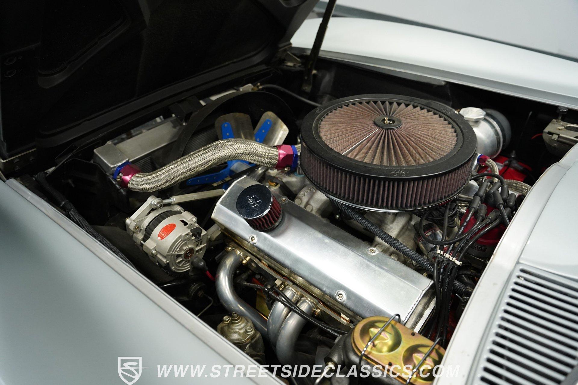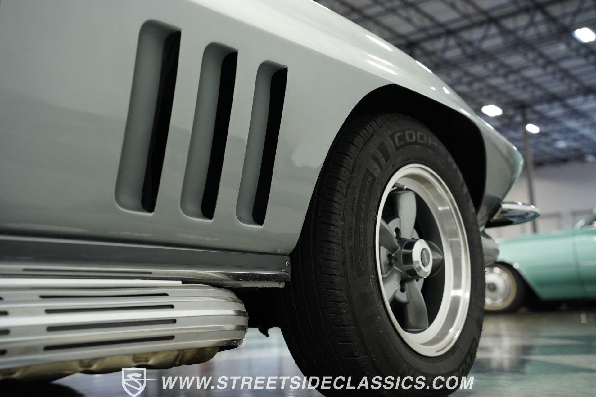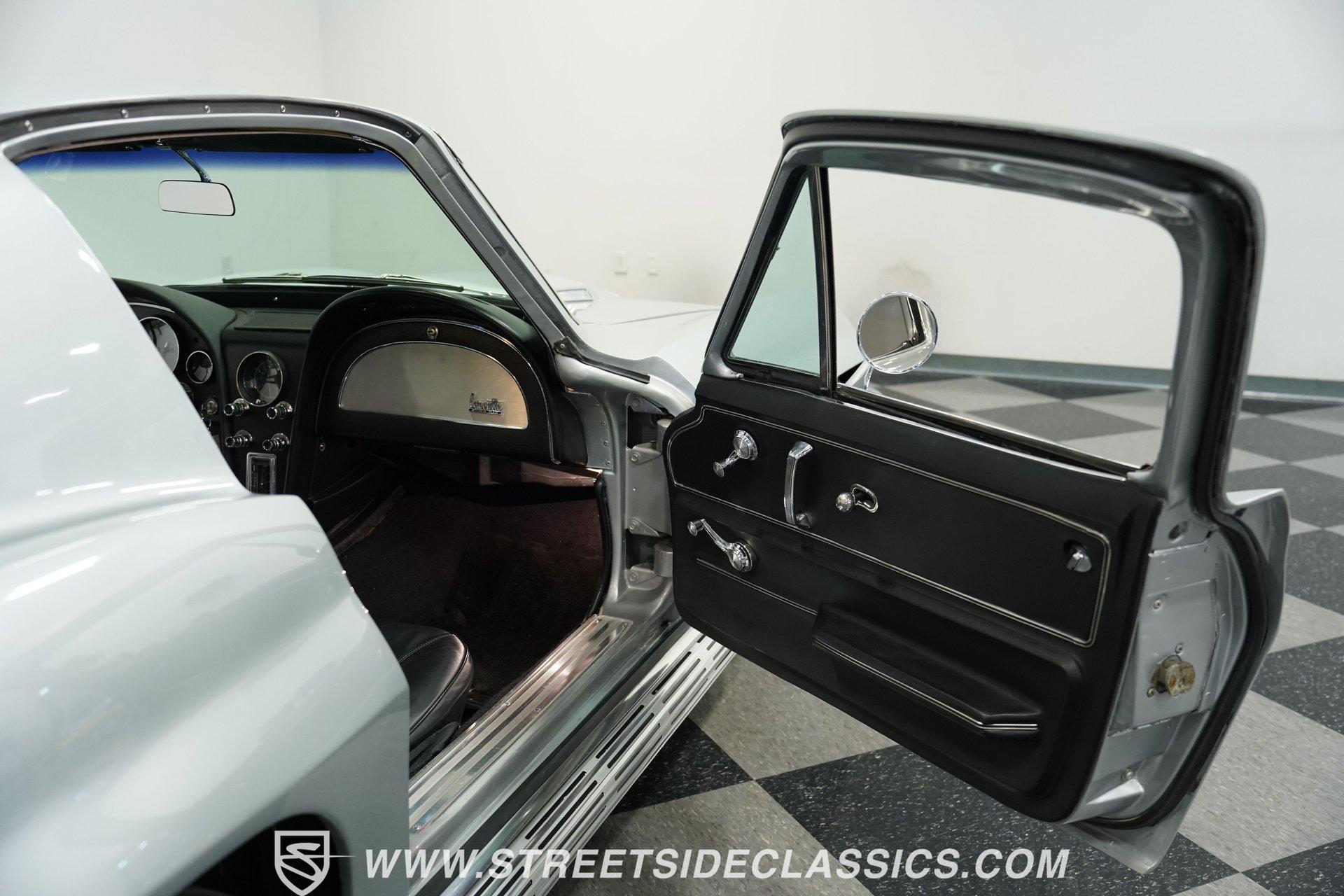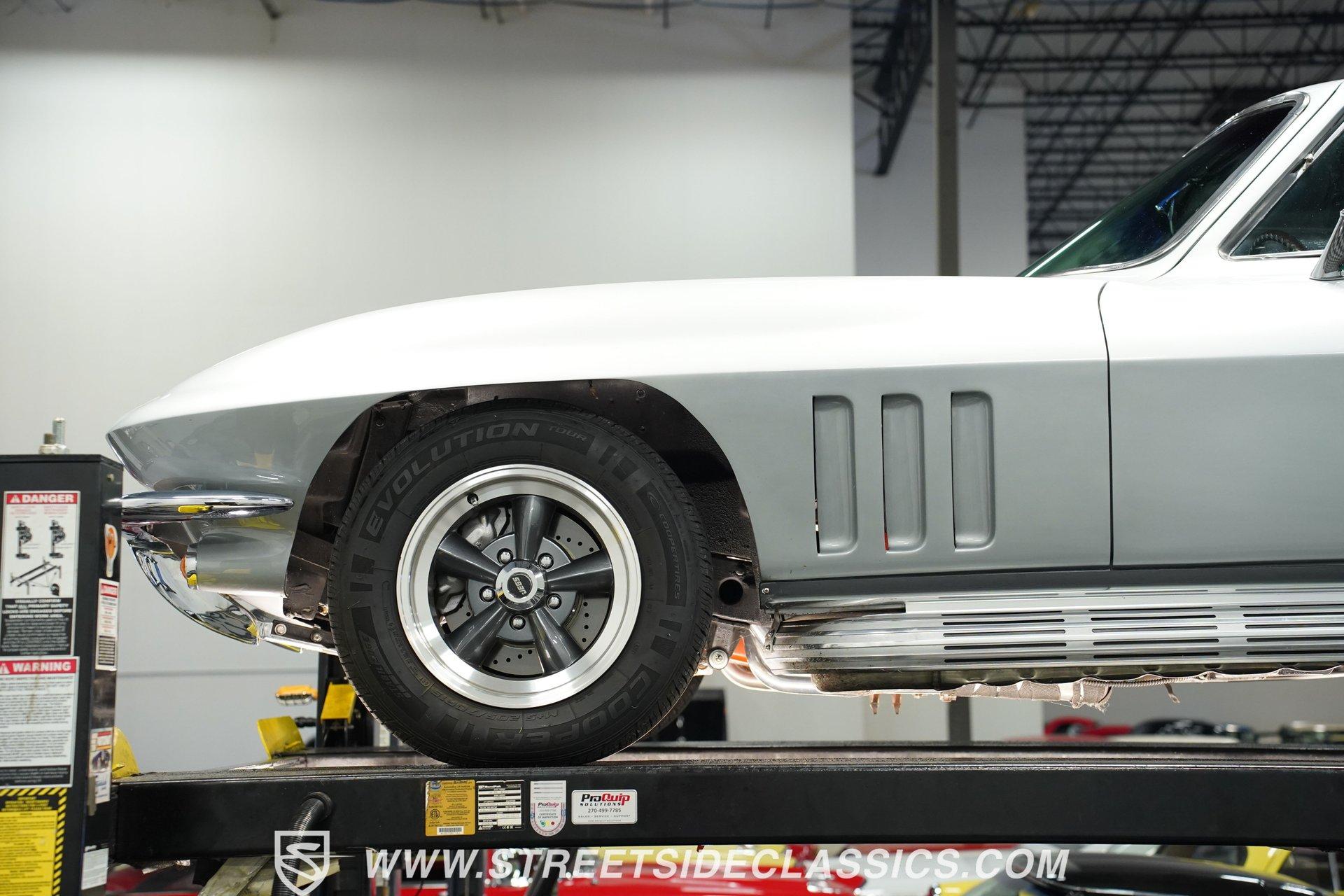 Few cars personify the automotive spirit of the 1960s quite like this 1966 Chevrolet Corvette. Fully repainted in its original Silver Pearl color, which showcases its sleek hardtop coupe body style, this restomodded C2 has just 1,915 miles on its odometer since it was built. While its original hood has been replaced with a more aggressive piece, thankfully, this 'Vette retains its undeniably cool side pipes, which announce its arrival long before it gets there. Inside, we find a fully restored black vinyl interior. A center console separates the dual bucket seats, while a three-spoke, power-assisted, wood-rimmed steering wheel sits just ahead of the C2 six-pod gauge cluster, featuring a 7,000 rpm tachometer and a 150 mph speedometer. A large analog clock sits high atop the center stack, while an upgraded AM/FM head unit takes the place of the original. Thanks to the coupe setup, this 'Vette also sports a sizeable cargo area behind the seats, making road trips equal parts practical and fun. Under that front-hinged hood, we find a clean engine bay that houses a built 383 cubic-inch stroker V-8 engine. Built with an Eagle crankshaft, a big 4.0-inch bore, a performance cam, and Brodix IK 180 aluminum cylinder heads, this powerful small block is fed by a Holley Sniper electronic fuel injection system and an Edelbrock intake manifold. This setup also features a set of shorty headers that send spent gases out through those glorious side pipes. Power is routed through a tried-and-true four-speed manual transmission before heading out to the 3.08-geared Positraction rear end that transfers those ponies to the pavement via a set of five-spoke Jegs wheels shod in 215/70R-15 Cooper rubber. At the same time, a narrower set of 205/70R-15 tires handles steering duties up front. *Frame Off Restoration *1915 Miles Since Built *Full Silver Pearl Repaint *Aftermarket Hood *383 Stroker V8 *Brodix Aluminum Heads *Holley Sniper EFI *Edelbrock Intake *Performance Cam *Eagle Crank *Shorty Headers *Side Pipes *Four Speed Manual *3.08 Posi *Bilstein Shocks *Four Wheel Discs *Jegs Wheels *Build Sheets This 1966 Chevrolet Corvette rides on upgraded Bilstein shocks, while four-wheel disc brakes stand ready to rein in speed whenever called upon, allowing you to simply enjoy the ride. If you've never sat behind the wheel of a classic Corvette with a hot V-8 under the hood and bellowing side pipes rumbling right outside your doors, then this is the car you've been waiting for. But don't wait, call today!