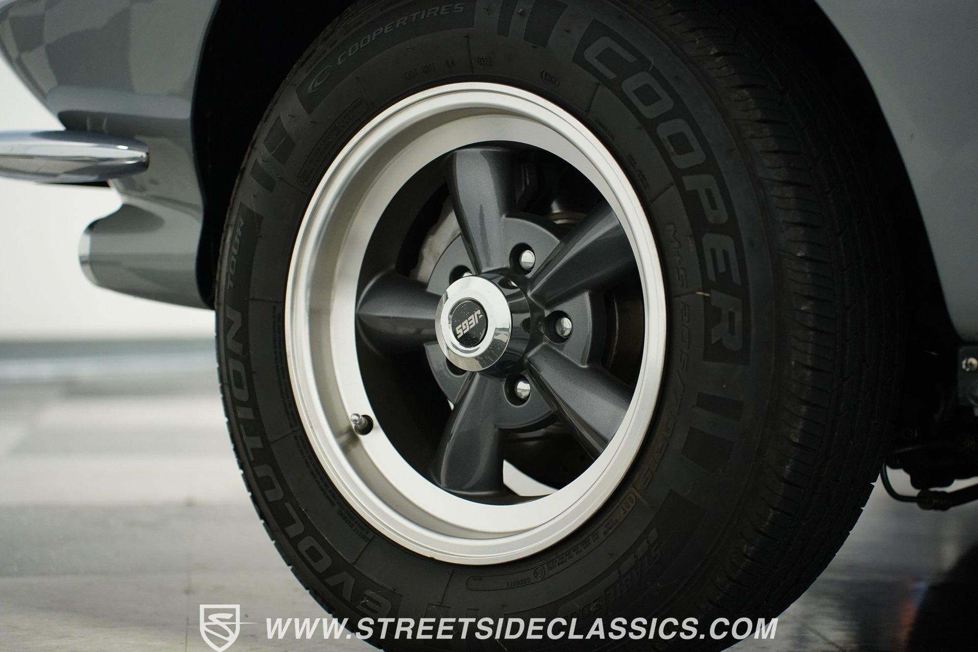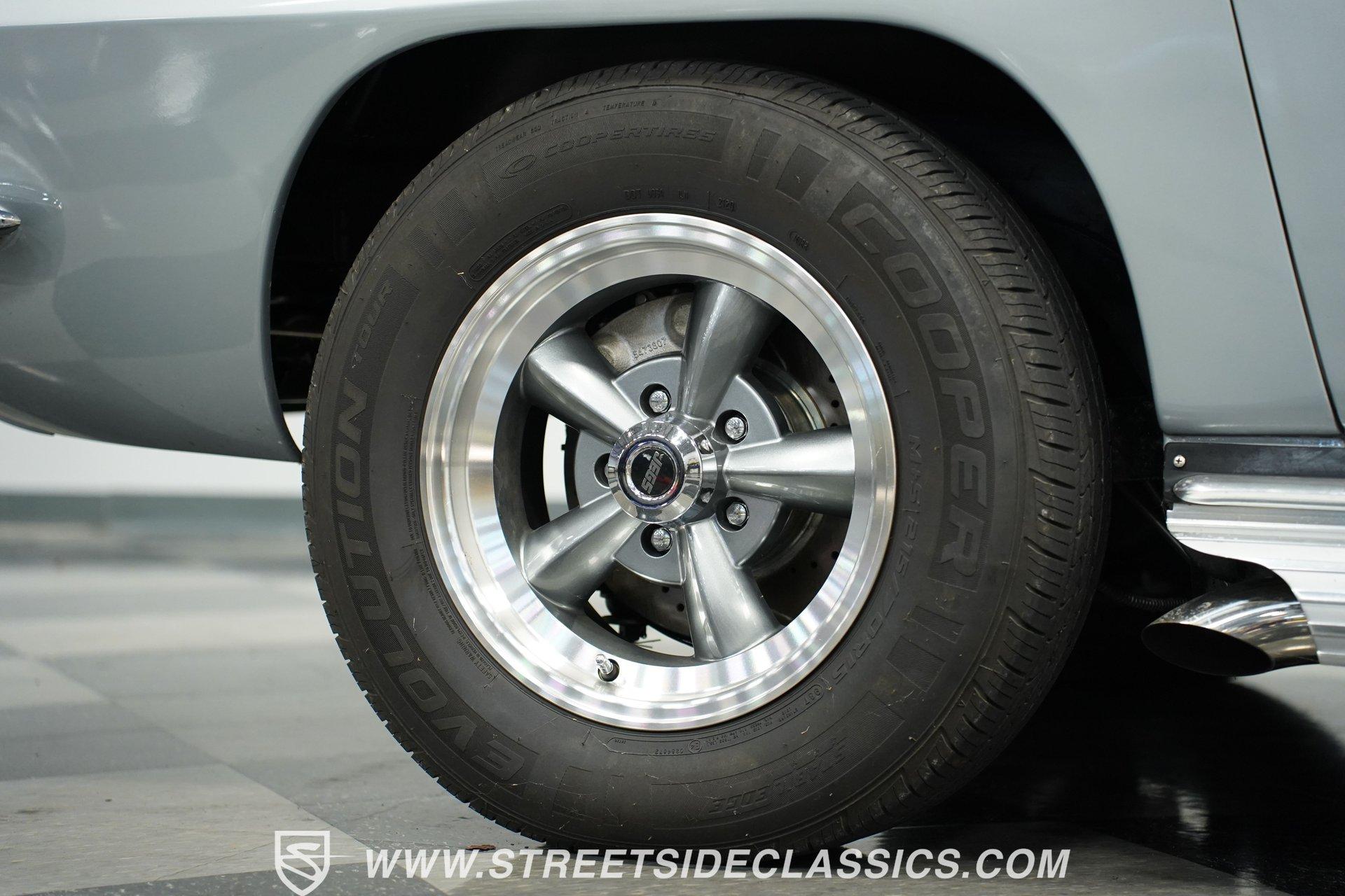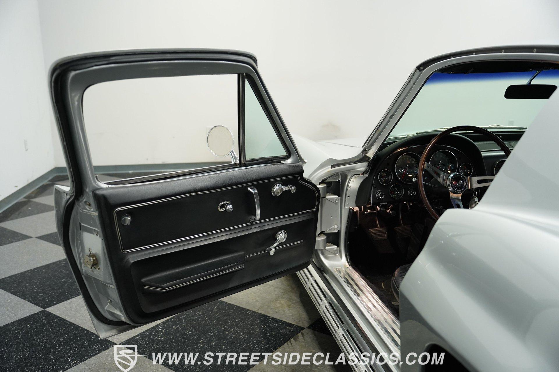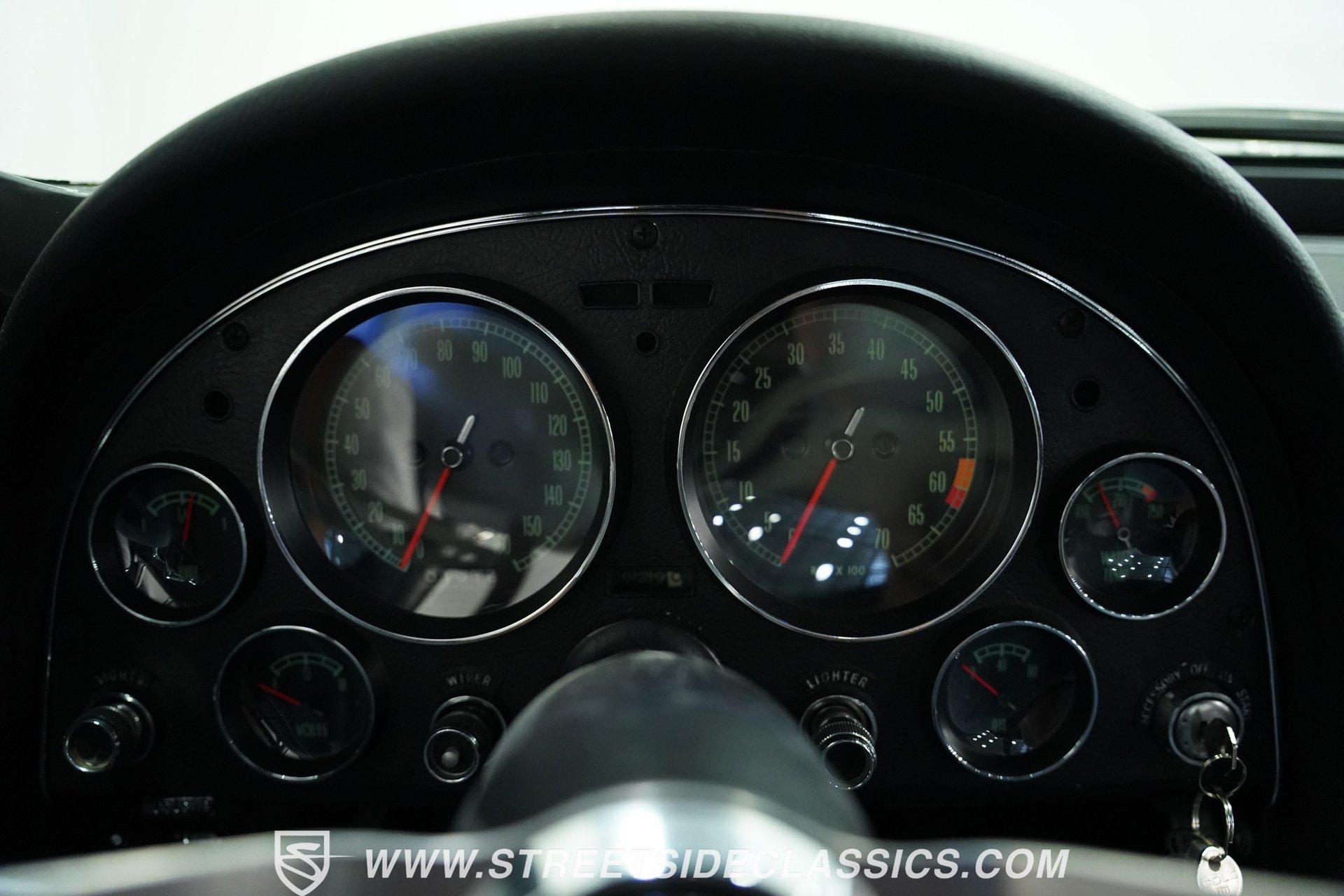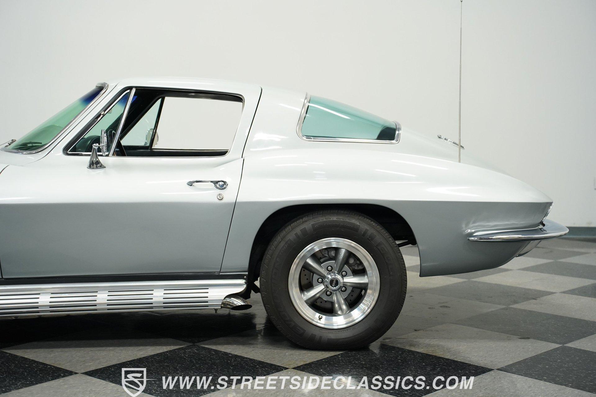 Few cars personify the automotive spirit of the 1960s quite like this 1966 Chevrolet Corvette. Fully repainted in its original Silver Pearl color, which showcases its sleek hardtop coupe body style, this restomodded C2 has just 1,915 miles on its odometer since it was built. While its original hood has been replaced with a more aggressive piece, thankfully, this 'Vette retains its undeniably cool side pipes, which announce its arrival long before it gets there. Inside, we find a fully restored black vinyl interior. A center console separates the dual bucket seats, while a three-spoke, power-assisted, wood-rimmed steering wheel sits just ahead of the C2 six-pod gauge cluster, featuring a 7,000 rpm tachometer and a 150 mph speedometer. A large analog clock sits high atop the center stack, while an upgraded AM/FM head unit takes the place of the original. Thanks to the coupe setup, this 'Vette also sports a sizeable cargo area behind the seats, making road trips equal parts practical and fun. Under that front-hinged hood, we find a clean engine bay that houses a built 383 cubic-inch stroker V-8 engine. Built with an Eagle crankshaft, a big 4.0-inch bore, a performance cam, and Brodix IK 180 aluminum cylinder heads, this powerful small block is fed by a Holley Sniper electronic fuel injection system and an Edelbrock intake manifold. This setup also features a set of shorty headers that send spent gases out through those glorious side pipes. Power is routed through a tried-and-true four-speed manual transmission before heading out to the 3.08-geared Positraction rear end that transfers those ponies to the pavement via a set of five-spoke Jegs wheels shod in 215/70R-15 Cooper rubber. At the same time, a narrower set of 205/70R-15 tires handles steering duties up front. *Frame Off Restoration *1915 Miles Since Built *Full Silver Pearl Repaint *Aftermarket Hood *383 Stroker V8 *Brodix Aluminum Heads *Holley Sniper EFI *Edelbrock Intake *Performance Cam *Eagle Crank *Shorty Headers *Side Pipes *Four Speed Manual *3.08 Posi *Bilstein Shocks *Four Wheel Discs *Jegs Wheels *Build Sheets This 1966 Chevrolet Corvette rides on upgraded Bilstein shocks, while four-wheel disc brakes stand ready to rein in speed whenever called upon, allowing you to simply enjoy the ride. If you've never sat behind the wheel of a classic Corvette with a hot V-8 under the hood and bellowing side pipes rumbling right outside your doors, then this is the car you've been waiting for. But don't wait, call today!