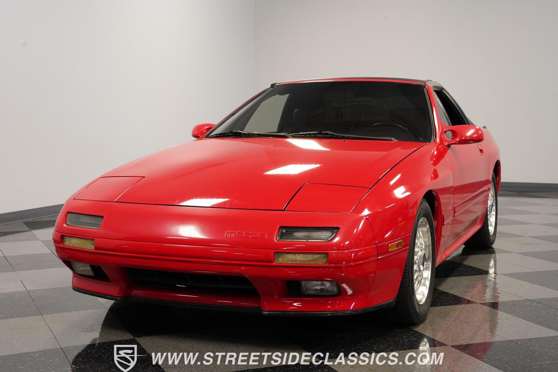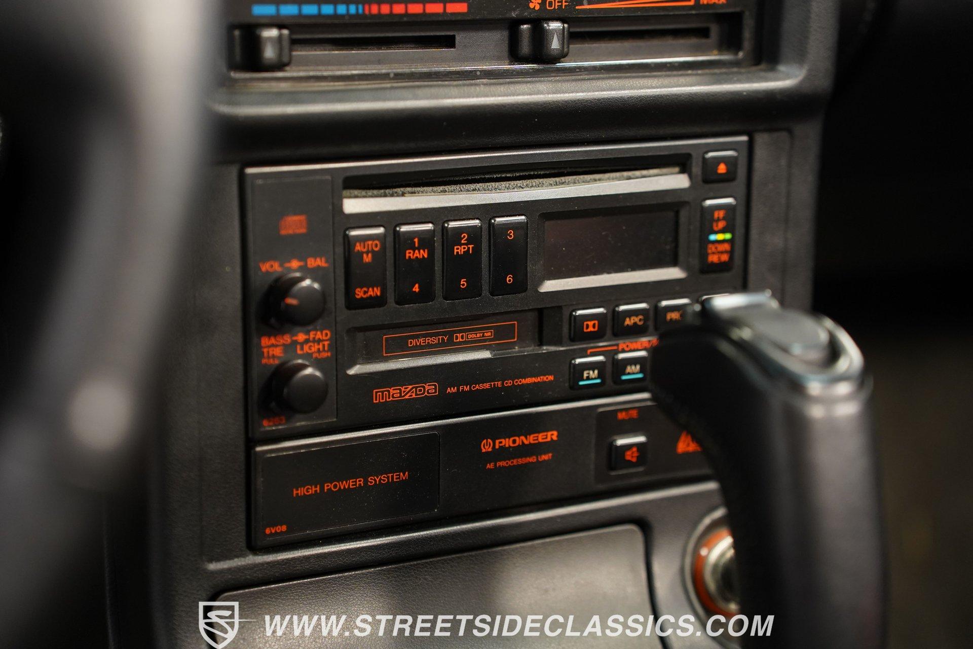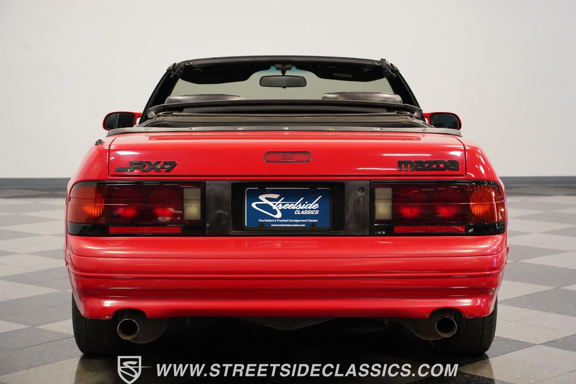 This 1990 Mazda RX-7 Convertible is a two-owner car that attractive and very well-kept. The sleek red exterior, luxury black leather interior, and rotary power are truly irresistible. The name of the factory paint is Blaze Red. It shows all the right signs of being the original finish, and it still lives up to that name with the radiant shine it gives off today. And the gloss lets you see how the sleek shape still looks contemporary. Of course, it also helps when great care is combined with the exceptional build quality of these Mazdas. The 15-inch factory BBS wheels ad to the allure of this rare convertible. A car like this is meant to be open to the world. The black leather interior does a great job of coordinating with The Blaze Red paint. The carpeting, door panels, dash, and bucket seats appear original, and they all have the clean/complete look of proper respect. You'll slip behind the sporty leather-wrapped steering wheel, and your heart will begin beating a bit faster as you watch the red-faced gauges begin to dance. But more than just a pure sports machine, the RX-7 was Mazda's flagship car, and so there are plenty of luxury features. It includes power windows, a driver's airbag, cruise control, and a factory premium Pioneer AM/FM/CD/cassette stereo. Plus, the air conditioning helps keep you cool while looking cool in this classic drop-top. The RX-7's real calling card was the revolutionary two-rotor Wankel engine. The exceptional condition of the motor tells you this was just as well-respected as the rest of the car. The dual-rotor Wankel engine can fit behind the front axle for ideal mid-engine placement. It may be smaller than the V6 and V8 engines you'd expect under the hood of a sports car, but this revolutionary motor makes just as much power. And there's something magical about the high-revving smoothness that's just perfect for those who love the grand tour. While this is an excellently preserved classic, it would be a shame not to take it out on the road. The four-speed automatic transmission with overdrive, fully independent suspension, well-balanced weight distribution, and a four-wheel power disc brake package combine to offer the ideal mixture of performance and comfort. HIGHLIGHTS: 13B Rotary Engine Automatic Transmission Rare Convertible Factory BBS-Style Wheels Leather Bucket Seats Air Conditioning Factory AM/FM/CD and Cassette Stereo Service Records Unmodified, Highly Original Car Power Windows Owner's Manual Packet Blaze Red Paint Power Door Locks Cruise Control 4-Wheel Disc Brakes This 1990 Mazda RX-7 Convertible is a special car. Included with the sale are the owner's manual packet and service records. This preserved classic is a blast to drive down your favorite twisting piece of pavement - with the wind in your hair and the sun overhead. At this price, this total package classic won't be with us long. Call today!