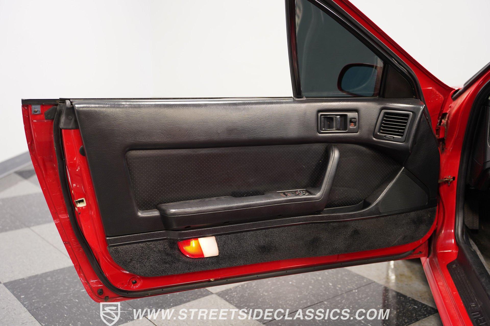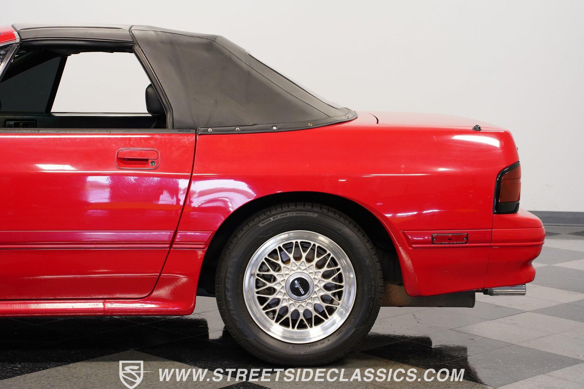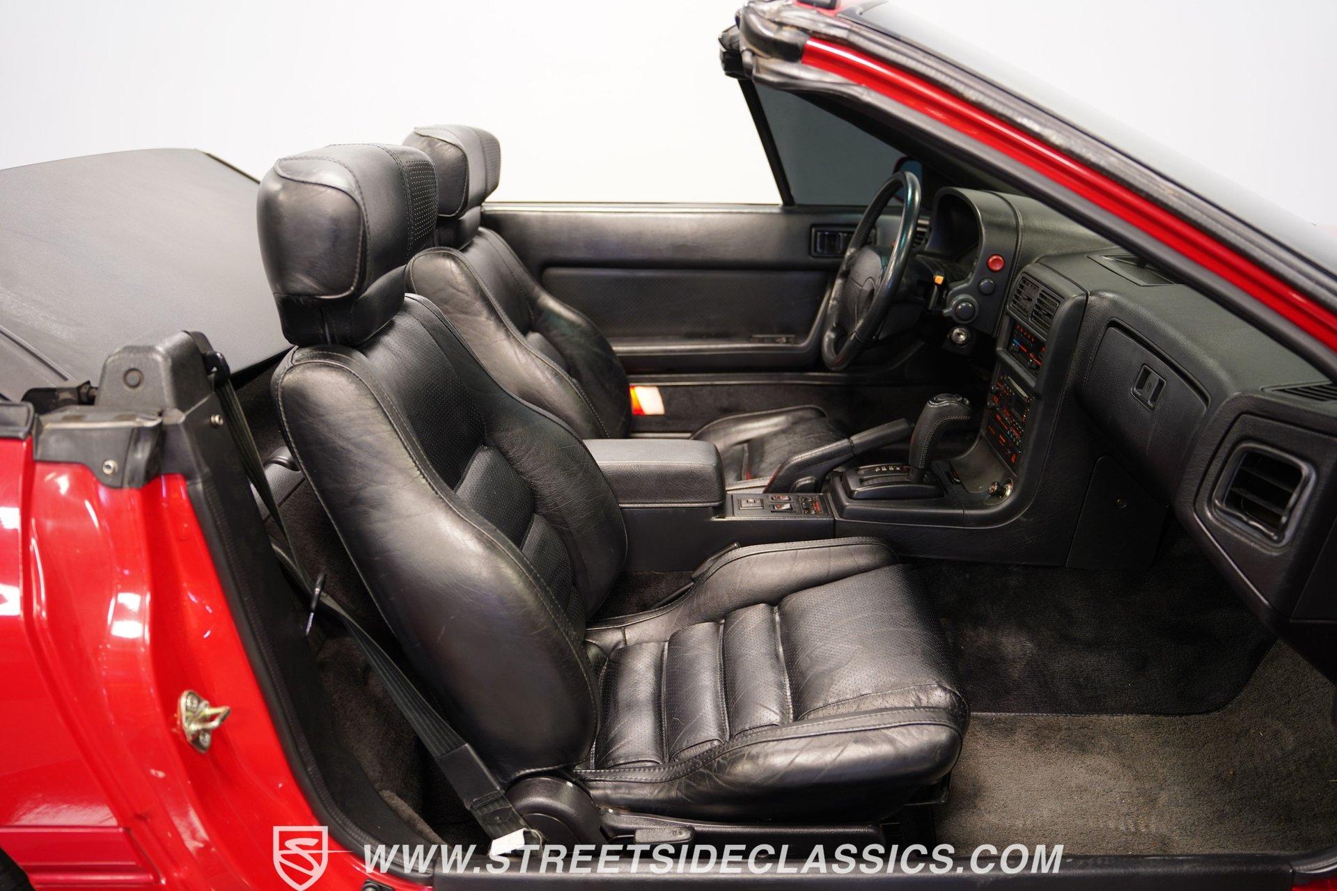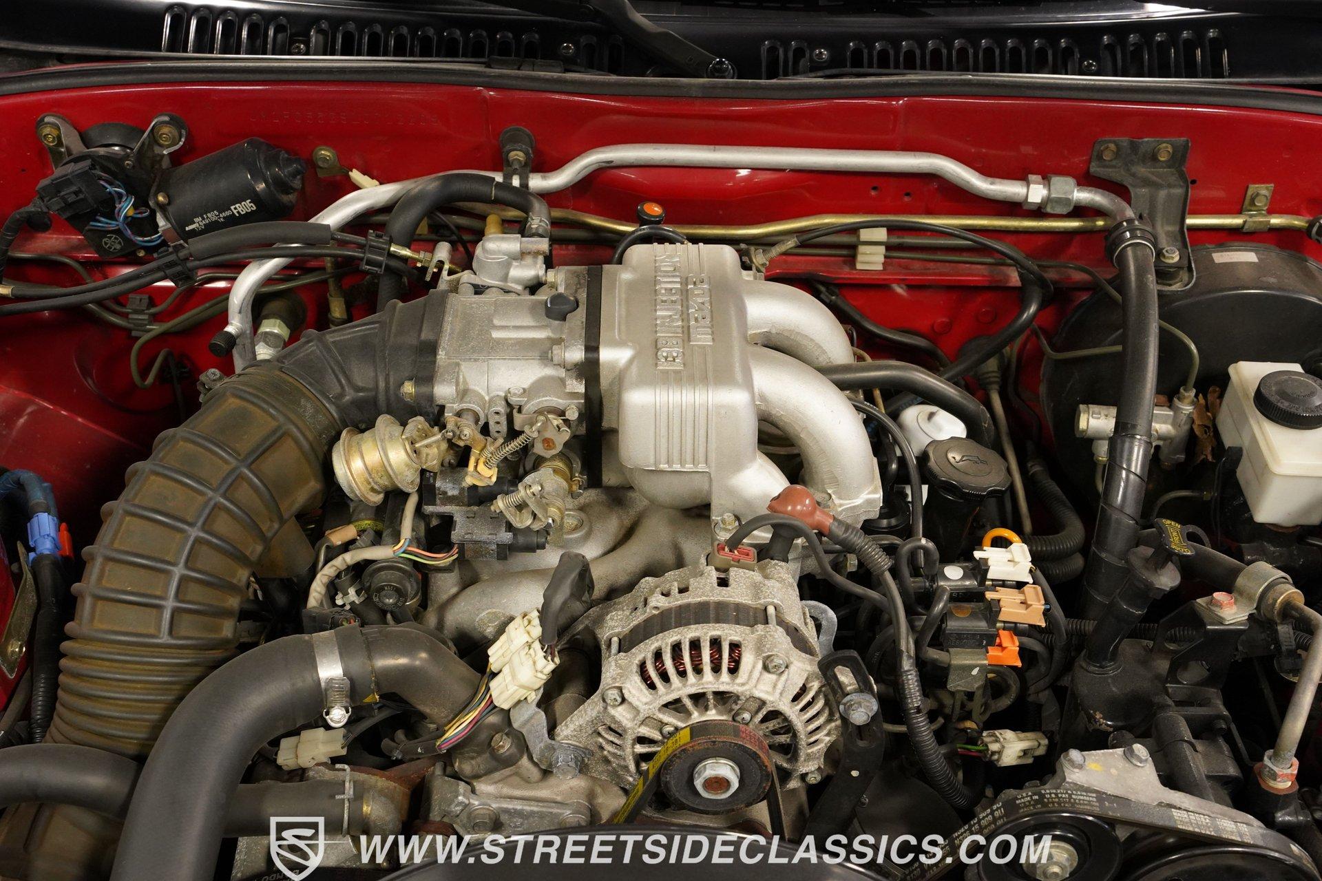 This 1990 Mazda RX-7 Convertible is a two-owner car that attractive and very well-kept. The sleek red exterior, luxury black leather interior, and rotary power are truly irresistible. The name of the factory paint is Blaze Red. It shows all the right signs of being the original finish, and it still lives up to that name with the radiant shine it gives off today. And the gloss lets you see how the sleek shape still looks contemporary. Of course, it also helps when great care is combined with the exceptional build quality of these Mazdas. The 15-inch factory BBS wheels ad to the allure of this rare convertible. A car like this is meant to be open to the world. The black leather interior does a great job of coordinating with The Blaze Red paint. The carpeting, door panels, dash, and bucket seats appear original, and they all have the clean/complete look of proper respect. You'll slip behind the sporty leather-wrapped steering wheel, and your heart will begin beating a bit faster as you watch the red-faced gauges begin to dance. But more than just a pure sports machine, the RX-7 was Mazda's flagship car, and so there are plenty of luxury features. It includes power windows, a driver's airbag, cruise control, and a factory premium Pioneer AM/FM/CD/cassette stereo. Plus, the air conditioning helps keep you cool while looking cool in this classic drop-top. The RX-7's real calling card was the revolutionary two-rotor Wankel engine. The exceptional condition of the motor tells you this was just as well-respected as the rest of the car. The dual-rotor Wankel engine can fit behind the front axle for ideal mid-engine placement. It may be smaller than the V6 and V8 engines you'd expect under the hood of a sports car, but this revolutionary motor makes just as much power. And there's something magical about the high-revving smoothness that's just perfect for those who love the grand tour. While this is an excellently preserved classic, it would be a shame not to take it out on the road. The four-speed automatic transmission with overdrive, fully independent suspension, well-balanced weight distribution, and a four-wheel power disc brake package combine to offer the ideal mixture of performance and comfort. HIGHLIGHTS: 13B Rotary Engine Automatic Transmission Rare Convertible Factory BBS-Style Wheels Leather Bucket Seats Air Conditioning Factory AM/FM/CD and Cassette Stereo Service Records Unmodified, Highly Original Car Power Windows Owner's Manual Packet Blaze Red Paint Power Door Locks Cruise Control 4-Wheel Disc Brakes This 1990 Mazda RX-7 Convertible is a special car. Included with the sale are the owner's manual packet and service records. This preserved classic is a blast to drive down your favorite twisting piece of pavement - with the wind in your hair and the sun overhead. At this price, this total package classic won't be with us long. Call today!
