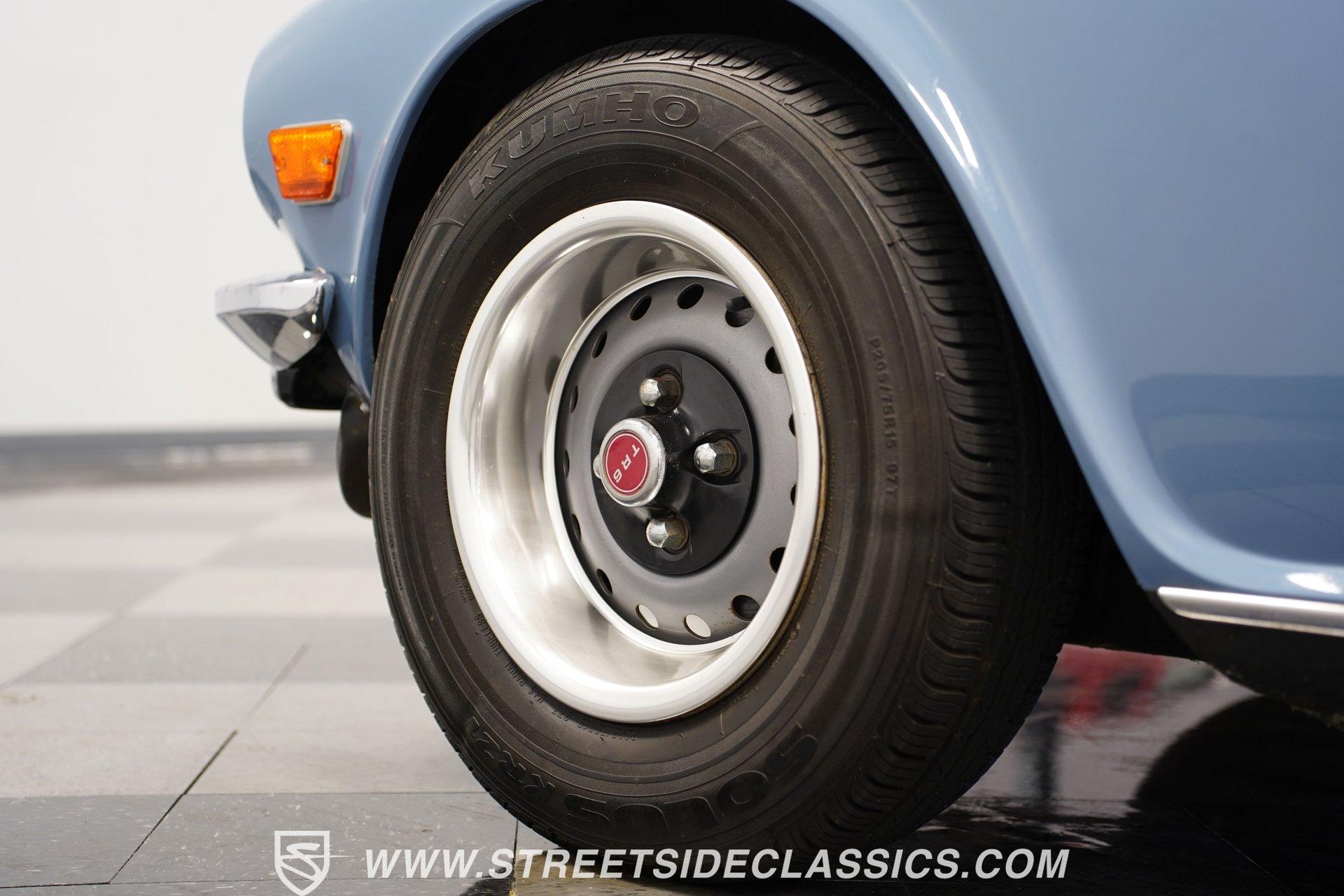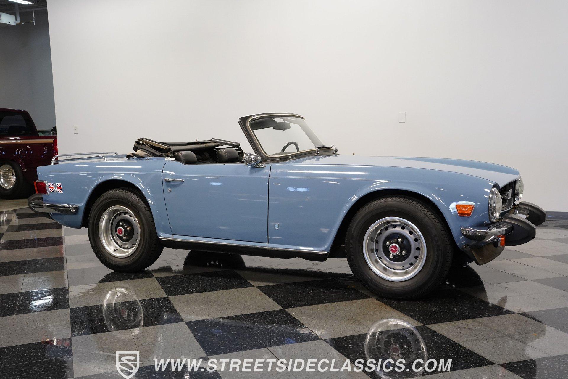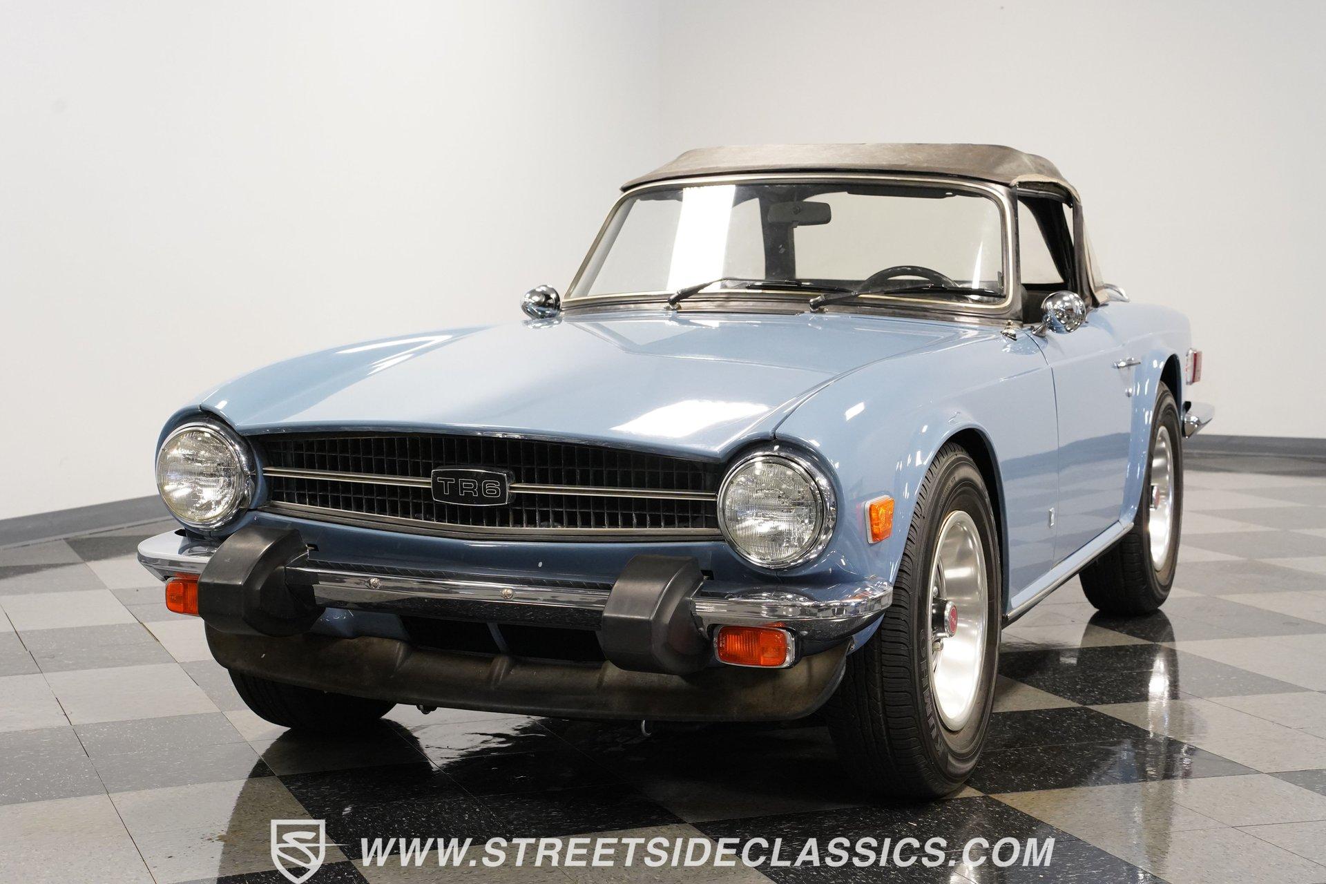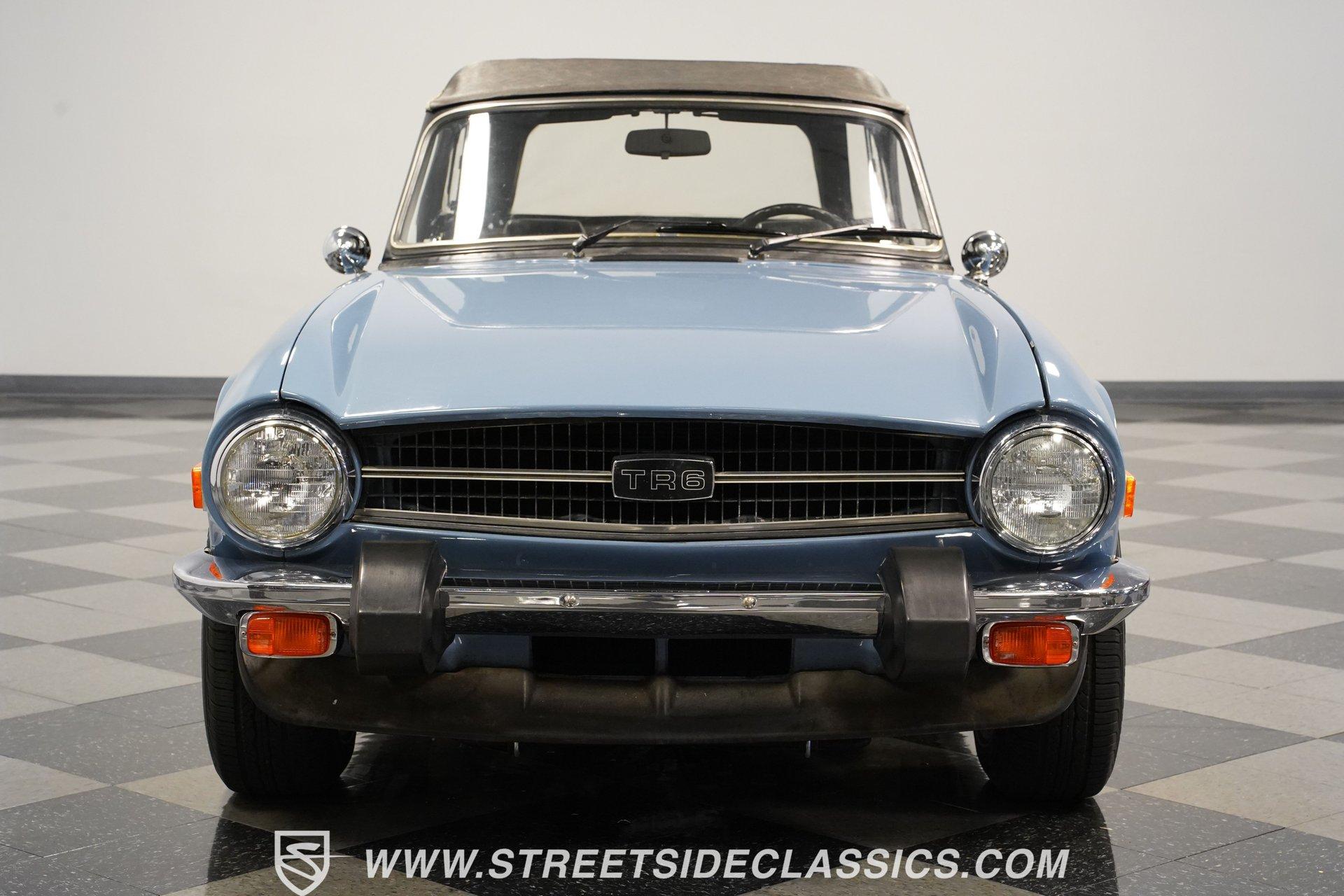 Nothing says classic British sports car better that this wonderful 1976 Triumph TR6. With its sports cars being fitted only with four-cylinder engines for the preceding decade and a half, Triumph introduced a six-cylinder engine to extend the life and improve the performance of the beloved TR series. Similar to the earlier four-cylinder TR4A-the first TR with independent rear suspension - but with Triumph's 2.5-liter, six-cylinder engine installed in place of the old 2.1-liter four, the TR5 was produced during the 1968 model year only (October 1967 to November 1968), pending the arrival of the TR6. Restyled for 1969 by Karmann of Osnabruck, the TR6 sported a full-width nose and squared-off tail. Under the skin the chassis remained basically the same as its independently-rear-suspended TR4A predecessor, while the 2.5-liter power unit was unchanged. Handling was improved over that of the TR5 courtesy of wider wheels and a front anti-roll bar. For the sports car enthusiast in the early 1970s, the TR6 offered speed, a throaty engine note, a smooth four-speed gearbox, and exceptional road handling housed in a masculine, convertible body. Nearly 50 years after the design was penned, the TR6 is still considered to be one of the quintessential and most desirable cars from the legendary Coventry manufacturer. This 1976 Triumph TR6 is the right mix of originality and care. It makes for the kind of value-priced classic that turns back the clock the moment you turn the key. The factory-correct French Blue paint color looks great on this classic roadster. The body has a straight and clean look of quality and the chrome luggage rack adds character. The clean black interior has a good look against the classic Blue exterior. You know this is a driver's car from the moment you sit down. The grippy sports steering wheel, well-placed shifter, and a wood-faced dash full of Smiths gauges engage the enthusiast in you. The engine bay has the solid look of proper care. The 2.5-liter inline-six backed by dual single barrel Stromberg carburetors with spilt exhaust manifolds that exit through dual pipes to the muffler is terrific package that gives you much more power than the average British roadster. The TR6 is a driver's car, and this one really loves to put a driver-ready attitude forward. The motor fires up eagerly, making a nice exhaust note, and you have full control with the four-speed manual transmission. The fully independent sports suspension, front disc brakes and nimble steering give it a confident feeling on the road. HIGHLIGHTS: An Excellent Example of One of Triumph's Best-Loved Models 2.5-Liter Inline Six-Cylinder Engine 4-Speed Manual Transmission Dual Stromberg Carburetors Front Disc Brakes Fully Independent Suspension Runs and Drives Great Correct Factory Wheels Luggage Rack Original British Leyland AM/FM Radio Classic French Blue Paint Owner's Manual Jack and Lug Wrench Service Manuals Service Records If you love a great British roadster do not miss this intriguing 1976 Triumph TR6 Roaster. Call today!