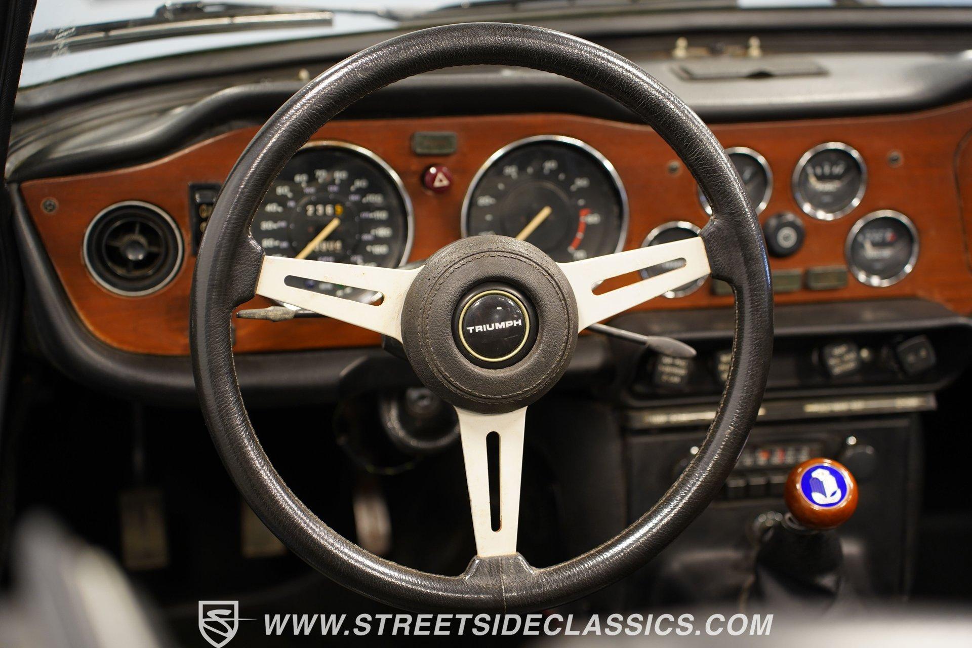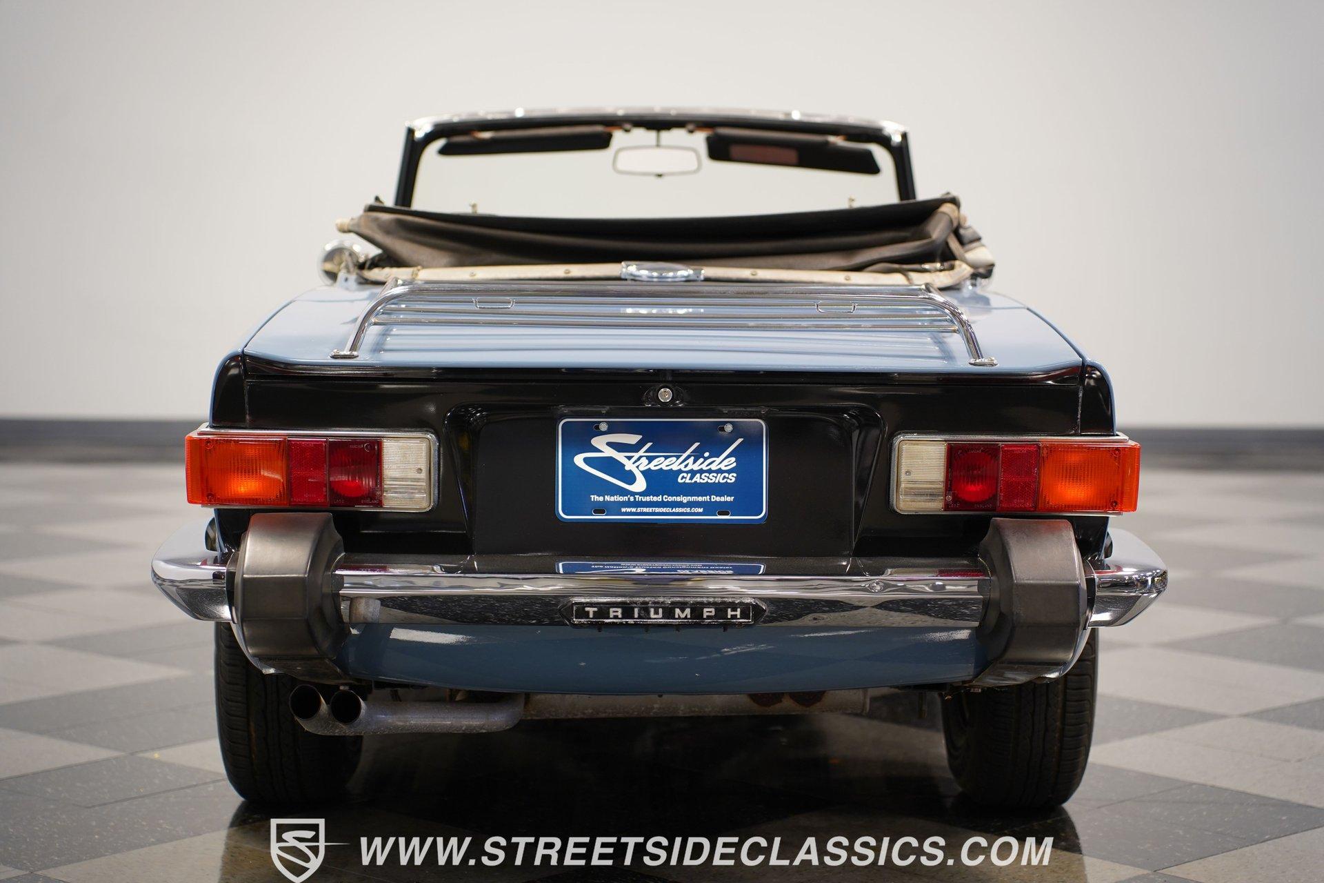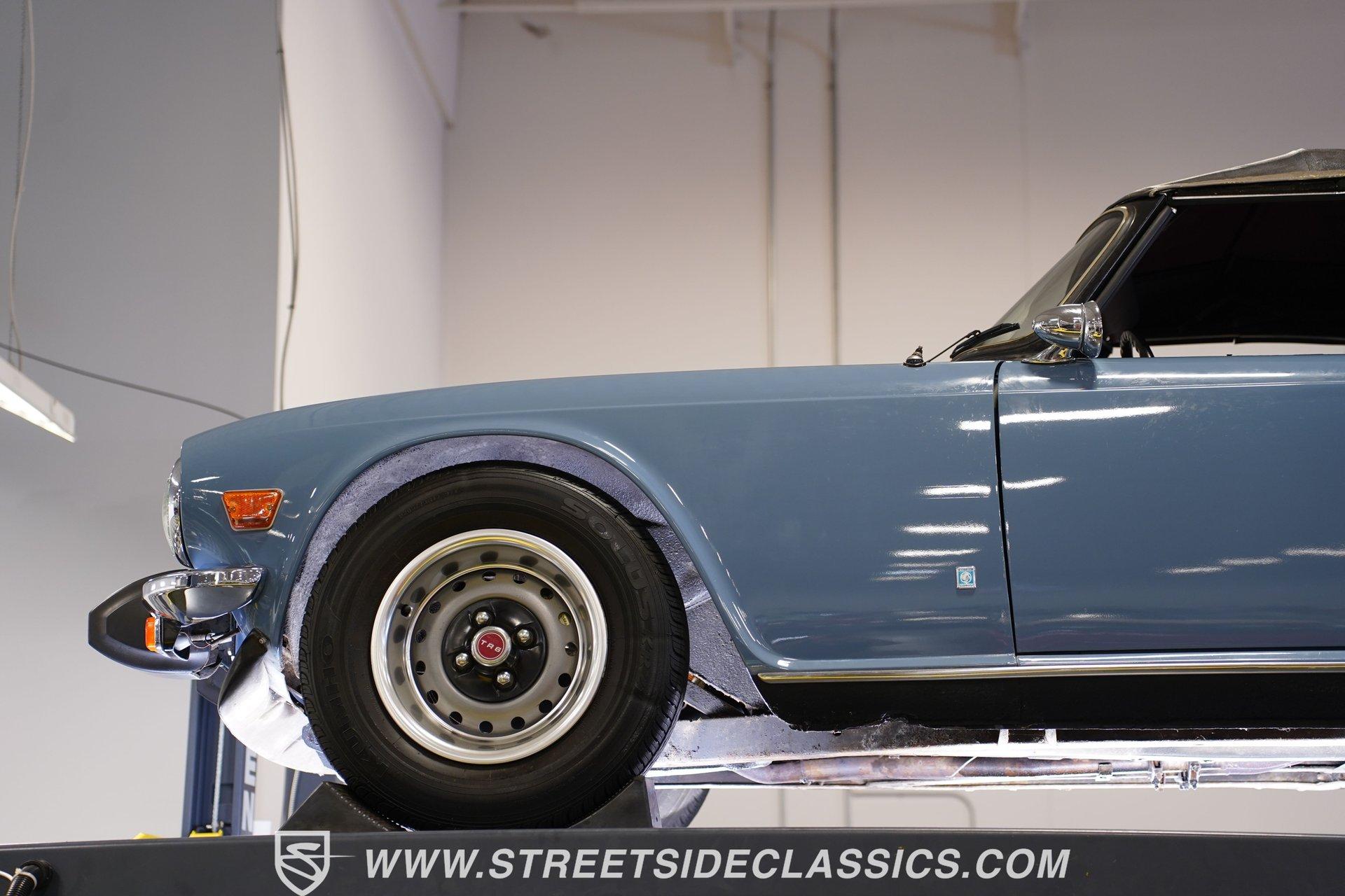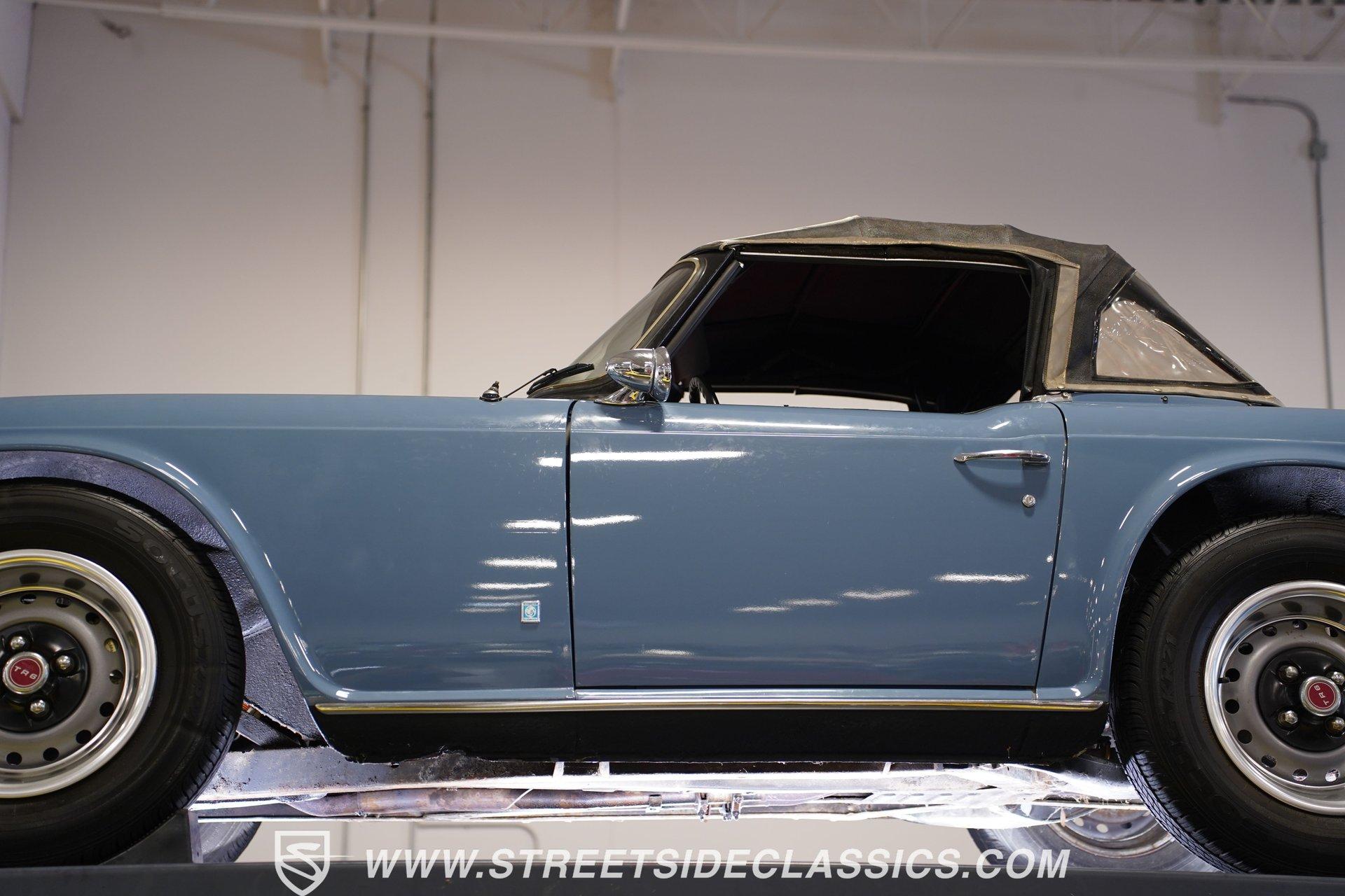 Nothing says classic British sports car better that this wonderful 1976 Triumph TR6. With its sports cars being fitted only with four-cylinder engines for the preceding decade and a half, Triumph introduced a six-cylinder engine to extend the life and improve the performance of the beloved TR series. Similar to the earlier four-cylinder TR4A-the first TR with independent rear suspension - but with Triumph's 2.5-liter, six-cylinder engine installed in place of the old 2.1-liter four, the TR5 was produced during the 1968 model year only (October 1967 to November 1968), pending the arrival of the TR6. Restyled for 1969 by Karmann of Osnabruck, the TR6 sported a full-width nose and squared-off tail. Under the skin the chassis remained basically the same as its independently-rear-suspended TR4A predecessor, while the 2.5-liter power unit was unchanged. Handling was improved over that of the TR5 courtesy of wider wheels and a front anti-roll bar. For the sports car enthusiast in the early 1970s, the TR6 offered speed, a throaty engine note, a smooth four-speed gearbox, and exceptional road handling housed in a masculine, convertible body. Nearly 50 years after the design was penned, the TR6 is still considered to be one of the quintessential and most desirable cars from the legendary Coventry manufacturer. This 1976 Triumph TR6 is the right mix of originality and care. It makes for the kind of value-priced classic that turns back the clock the moment you turn the key. The factory-correct French Blue paint color looks great on this classic roadster. The body has a straight and clean look of quality and the chrome luggage rack adds character. The clean black interior has a good look against the classic Blue exterior. You know this is a driver's car from the moment you sit down. The grippy sports steering wheel, well-placed shifter, and a wood-faced dash full of Smiths gauges engage the enthusiast in you. The engine bay has the solid look of proper care. The 2.5-liter inline-six backed by dual single barrel Stromberg carburetors with spilt exhaust manifolds that exit through dual pipes to the muffler is terrific package that gives you much more power than the average British roadster. The TR6 is a driver's car, and this one really loves to put a driver-ready attitude forward. The motor fires up eagerly, making a nice exhaust note, and you have full control with the four-speed manual transmission. The fully independent sports suspension, front disc brakes and nimble steering give it a confident feeling on the road. HIGHLIGHTS: An Excellent Example of One of Triumph's Best-Loved Models 2.5-Liter Inline Six-Cylinder Engine 4-Speed Manual Transmission Dual Stromberg Carburetors Front Disc Brakes Fully Independent Suspension Runs and Drives Great Correct Factory Wheels Luggage Rack Original British Leyland AM/FM Radio Classic French Blue Paint Owner's Manual Jack and Lug Wrench Service Manuals Service Records If you love a great British roadster do not miss this intriguing 1976 Triumph TR6 Roaster. Call today!