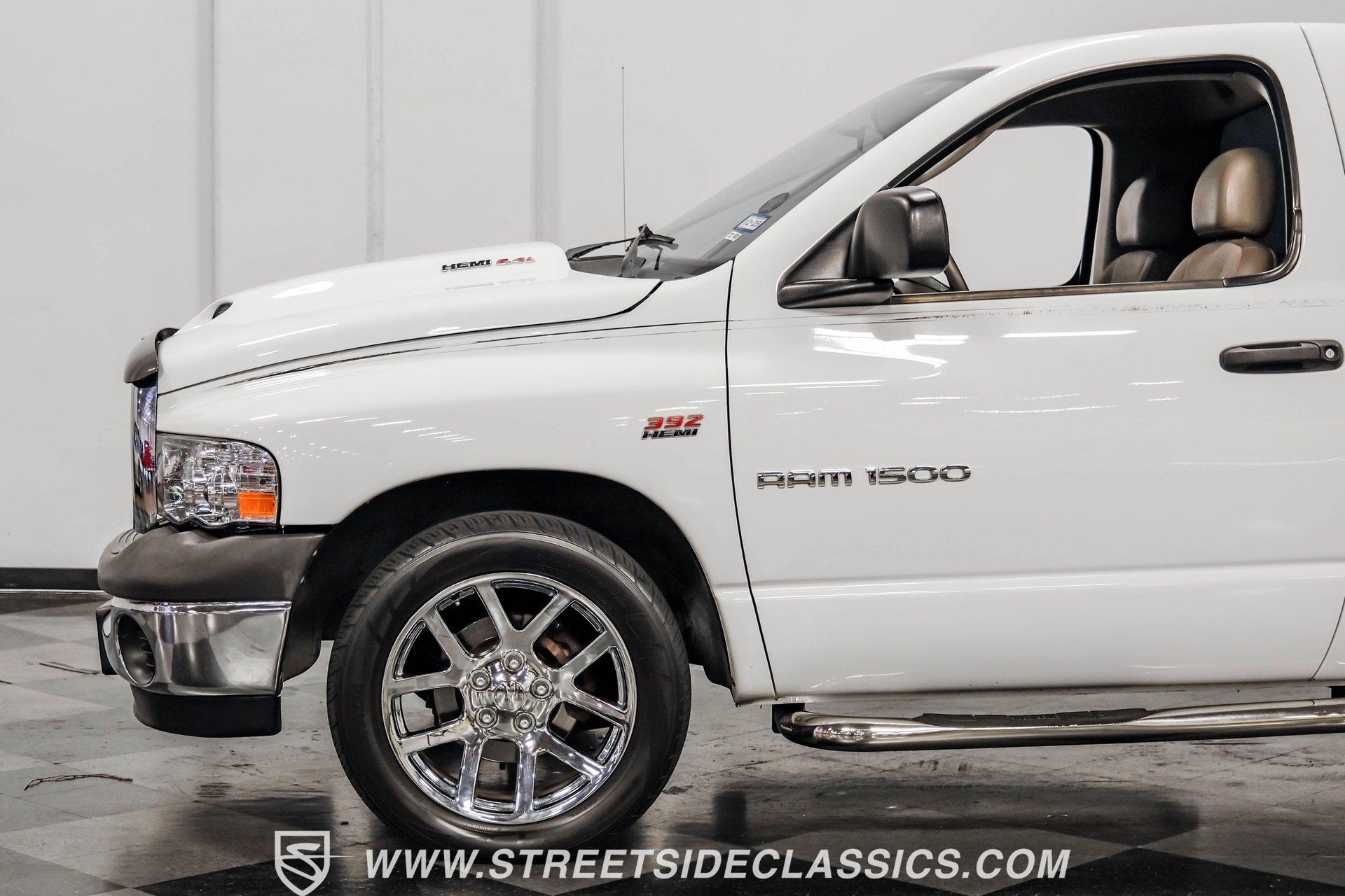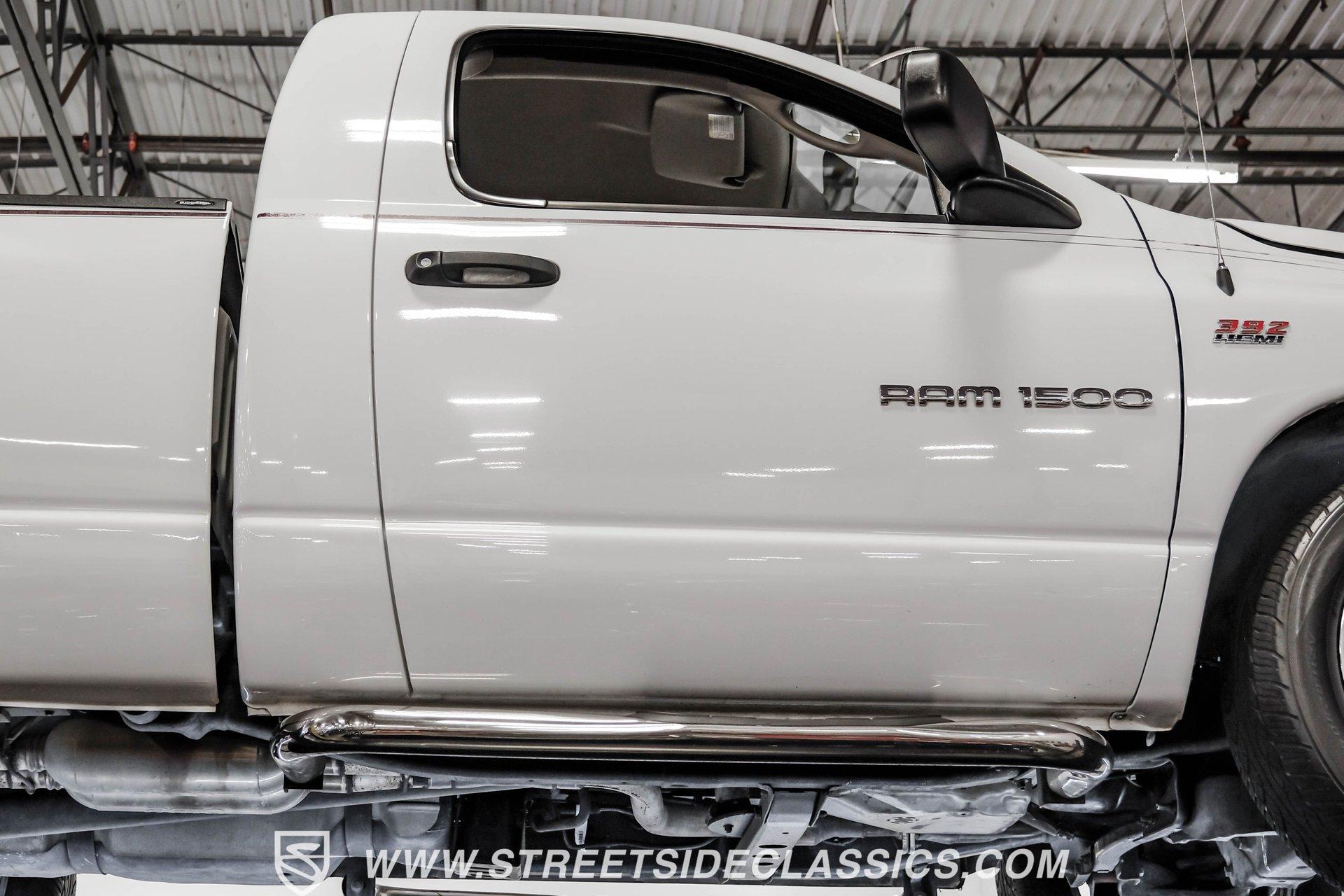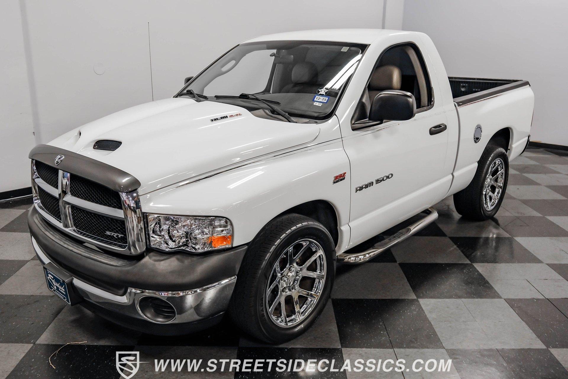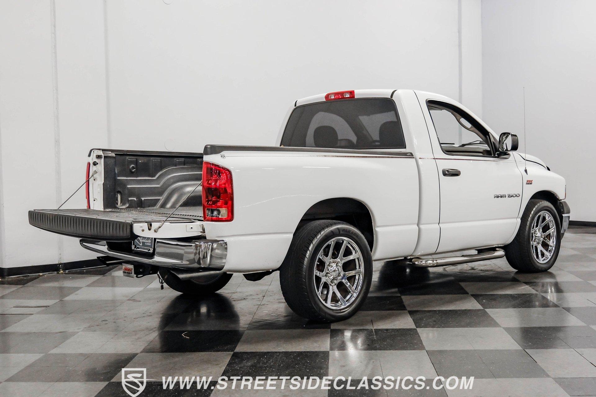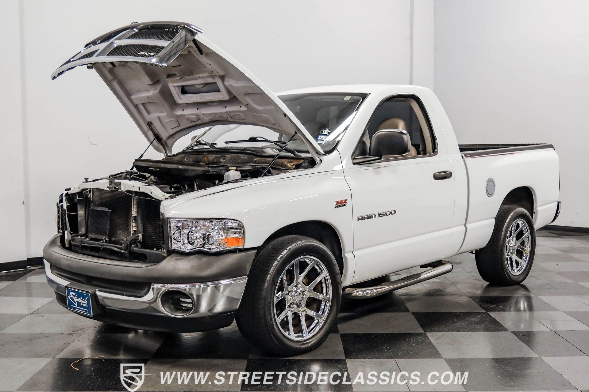 Unleashed from the factory limitations, this 2003 Dodge Ram 1500 ST flexes muscle with its hardcore HEMI conversion. Finished in Bright White, this truck rocks a custom fiberglass ram air hood that's fully functional. The 20-inch SRT wheels are wrapped in meaty 285/50R20 Yokohama rubber. Upgrades continue with projector halo headlights that give the front end a modern, aggressive look. The short bed comes protected with a durable liner, ready for work or play. The taupe cloth interior maintains a clean, stock appearance that belies the monster under the hood. Bucket seats with folding armrests keep you planted when the accelerator hits the floor. Factory comforts include functioning air conditioning, cruise control for highway cruising, and a tilt wheel for the perfect driving position. The original AM/FM/CD stereo handles the tunes, while a trailer brake controller adds towing capability. Behind the driver's seat sits the transmission controller, a subtle hint to those in the know that this isn't your average Ram. Brute force comes courtesy of a 392 cubic inch HEMI V8 with less than 5,000 miles on the build. Air rushes through an 87mm throttle body and ram air induction system, straight into the hungry V8. A stout 4L80E four-speed automatic transmission handles the power delivery, sending it to a Chrysler 9.25-inch rear axle with 3.92 Yukon Sure Grip differential. Long tube headers connect to a custom dual exhaust with high-flow mufflers and catalytic converters. Four-wheel power disc brakes bring everything to a halt when needed, while power steering keeps control at your fingertips. HIGHLIGHTS: 392 HEMI V8 Engine (Less Than 5,000 Miles Since Installation) 4L80E 4-Speed Automatic Transmission 87mm Throttle Body With Ram Air Induction Long Tube Headers Dual Exhaust With High Flow Mufflers Chrysler 9.25" Rear Axle With 3.92 Yukon Sure Grip Four-Wheel Power Disc Brakes Functional Ram Air Fiberglass Hood 20" SRT Wheels In 285/50R20 Yokohama Tires Projector Halo Headlights Bed Liner Short Bed Taupe Interior With Bucket Seats And Folding Armrest Air Conditioning Cruise Control Tilt Wheel Power Steering AM/FM Radio With CD Player Trailer Brake Controller Diablo Tuner Included Custom Alarm System With Proximity Sensor Original Window Sticker Service Records Purchased new and upgraded over time by a single owner, this Ram truck delivers serious street cred with its HEMI conversion. From stoplight launches to highway pulls, the 392 cubic inch V8 provides the punch every truck guy craves, all in a usable, daily-drivable package. Call today!