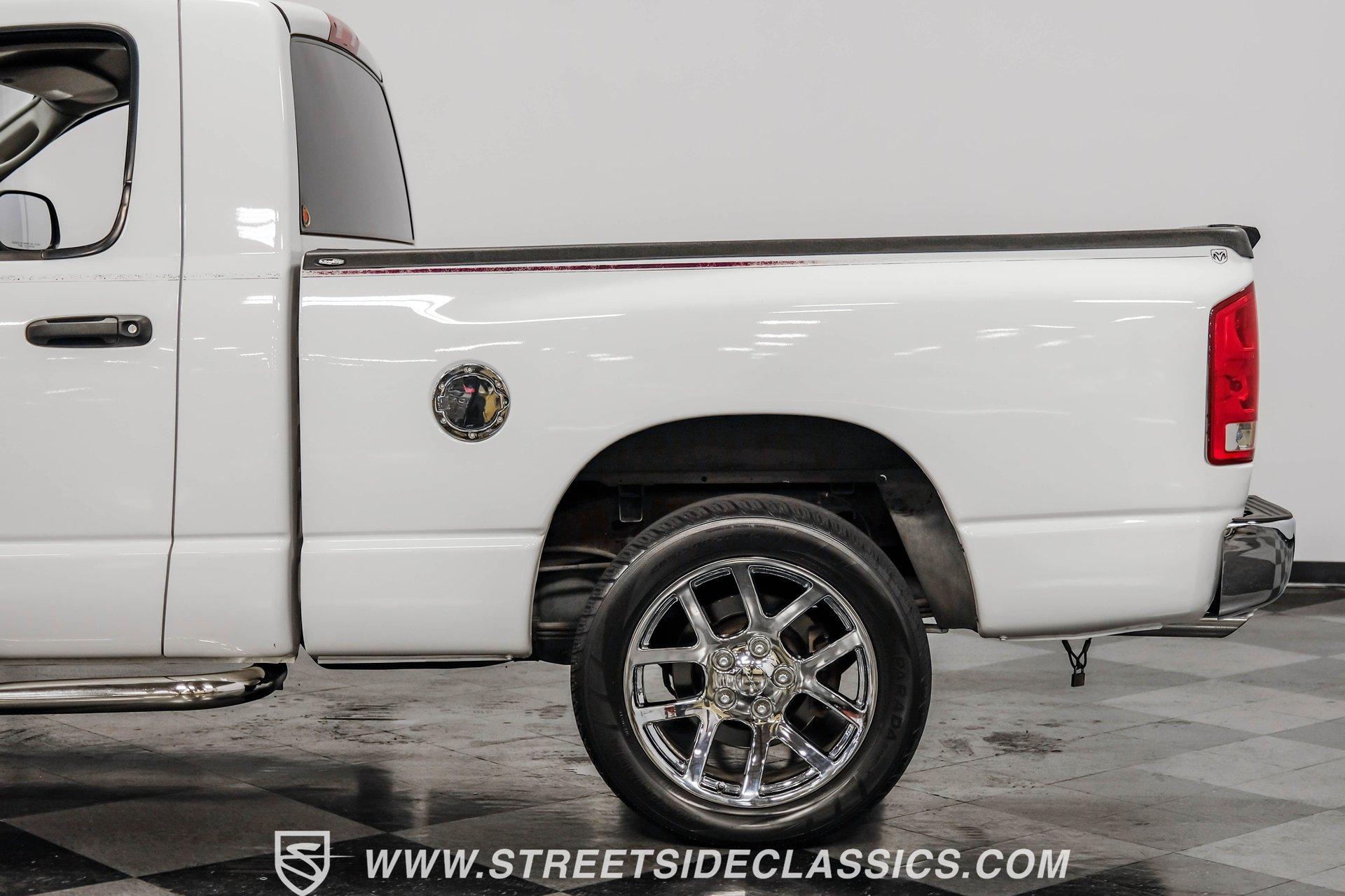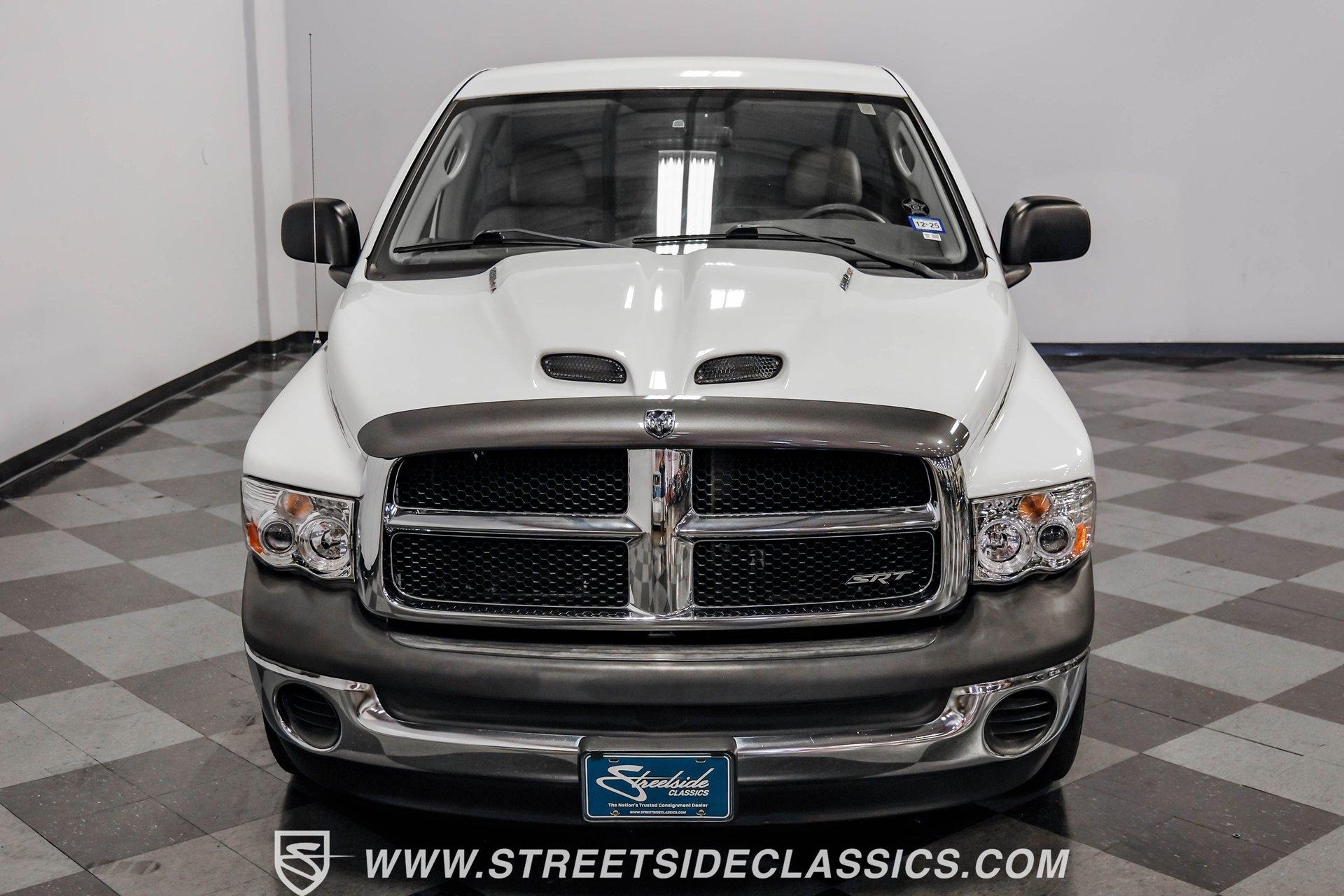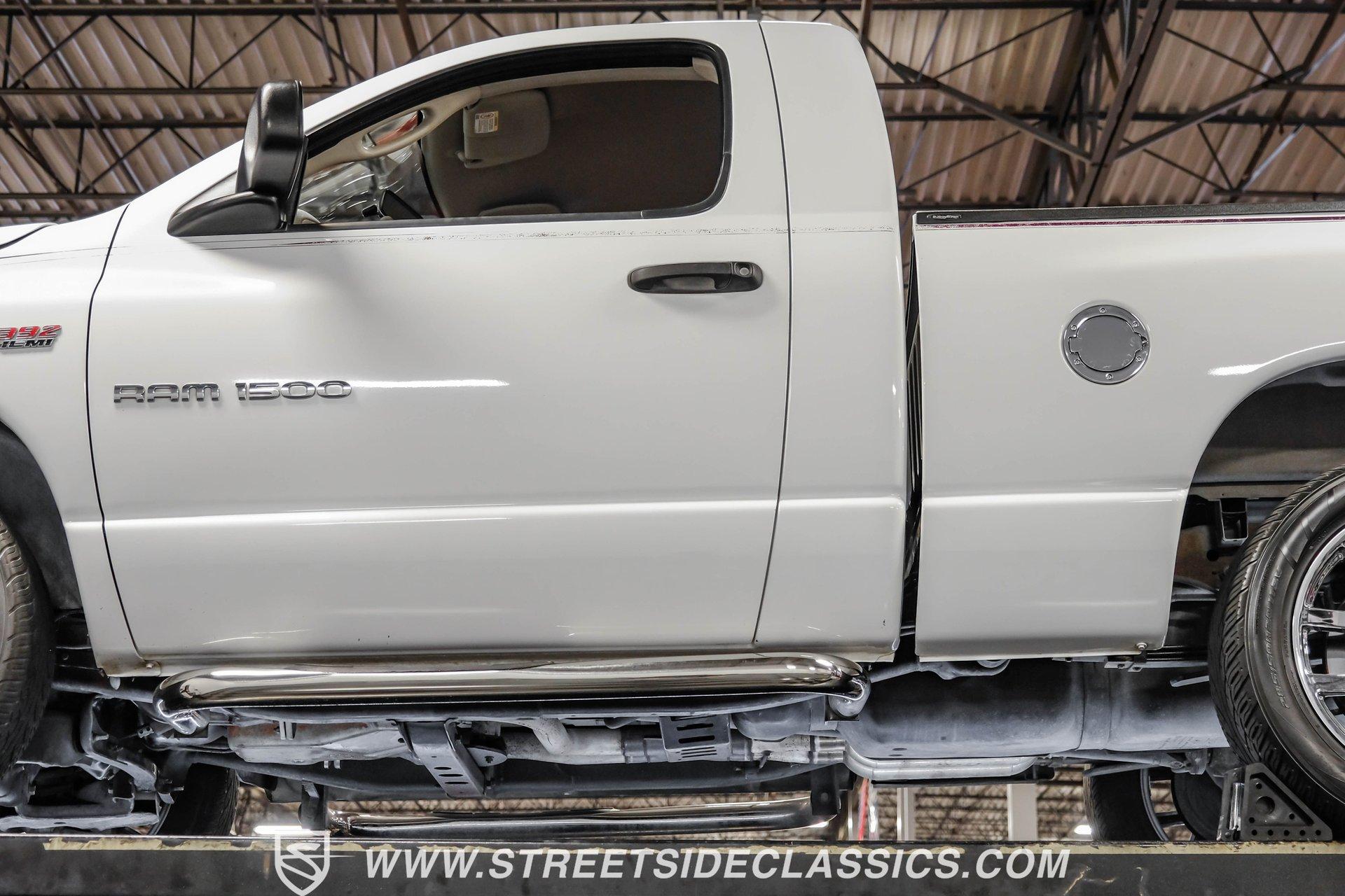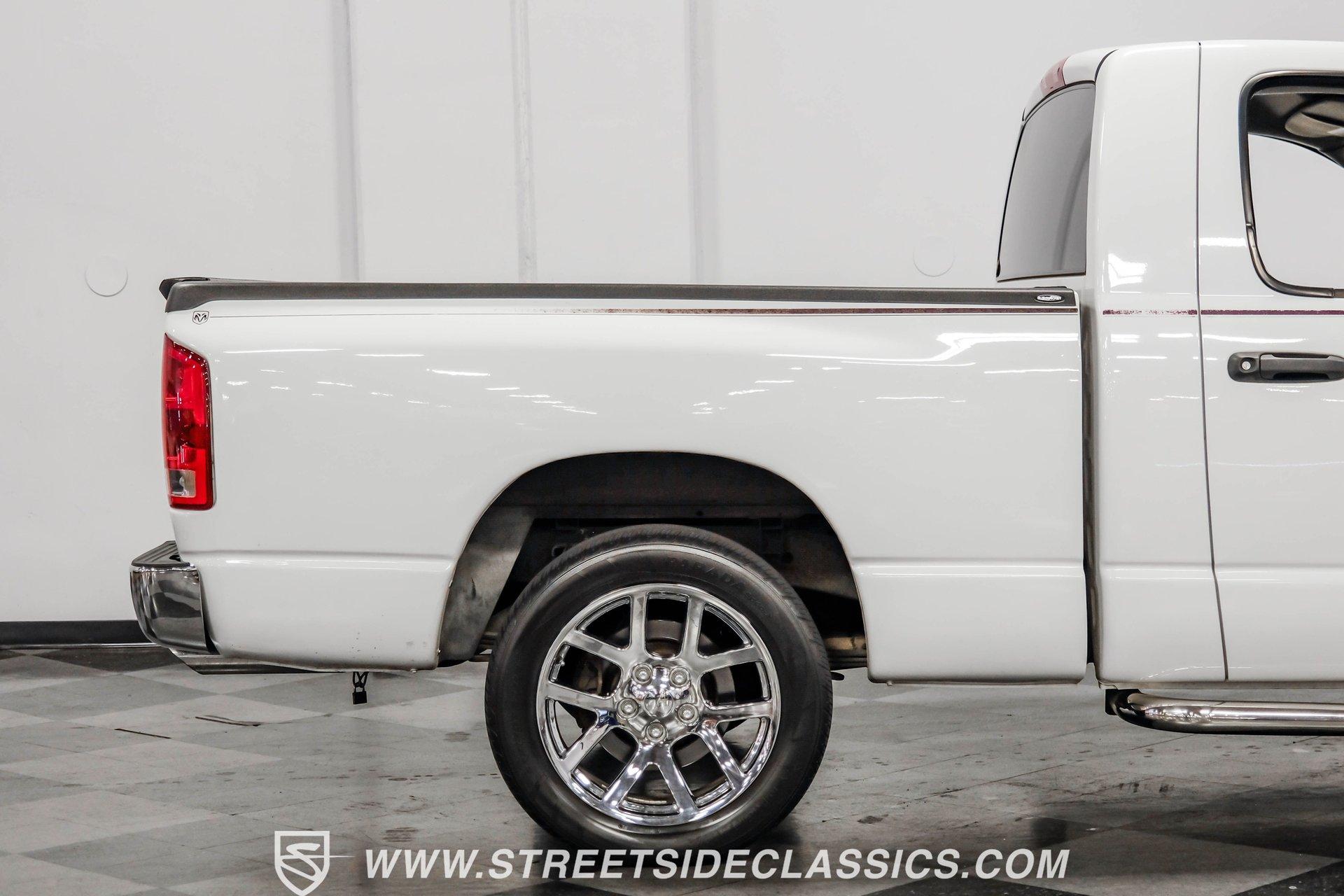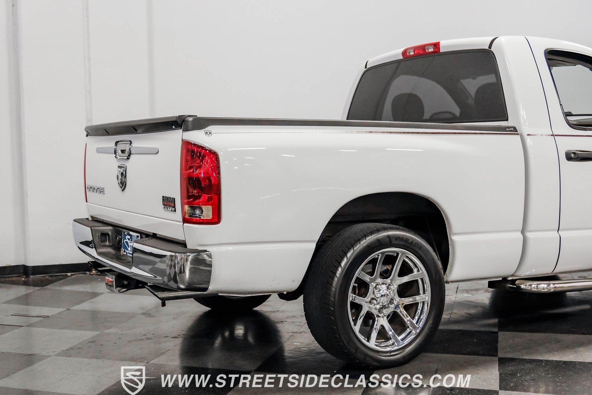 Unleashed from the factory limitations, this 2003 Dodge Ram 1500 ST flexes muscle with its hardcore HEMI conversion. Finished in Bright White, this truck rocks a custom fiberglass ram air hood that's fully functional. The 20-inch SRT wheels are wrapped in meaty 285/50R20 Yokohama rubber. Upgrades continue with projector halo headlights that give the front end a modern, aggressive look. The short bed comes protected with a durable liner, ready for work or play. The taupe cloth interior maintains a clean, stock appearance that belies the monster under the hood. Bucket seats with folding armrests keep you planted when the accelerator hits the floor. Factory comforts include functioning air conditioning, cruise control for highway cruising, and a tilt wheel for the perfect driving position. The original AM/FM/CD stereo handles the tunes, while a trailer brake controller adds towing capability. Behind the driver's seat sits the transmission controller, a subtle hint to those in the know that this isn't your average Ram. Brute force comes courtesy of a 392 cubic inch HEMI V8 with less than 5,000 miles on the build. Air rushes through an 87mm throttle body and ram air induction system, straight into the hungry V8. A stout 4L80E four-speed automatic transmission handles the power delivery, sending it to a Chrysler 9.25-inch rear axle with 3.92 Yukon Sure Grip differential. Long tube headers connect to a custom dual exhaust with high-flow mufflers and catalytic converters. Four-wheel power disc brakes bring everything to a halt when needed, while power steering keeps control at your fingertips. HIGHLIGHTS: 392 HEMI V8 Engine (Less Than 5,000 Miles Since Installation) 4L80E 4-Speed Automatic Transmission 87mm Throttle Body With Ram Air Induction Long Tube Headers Dual Exhaust With High Flow Mufflers Chrysler 9.25" Rear Axle With 3.92 Yukon Sure Grip Four-Wheel Power Disc Brakes Functional Ram Air Fiberglass Hood 20" SRT Wheels In 285/50R20 Yokohama Tires Projector Halo Headlights Bed Liner Short Bed Taupe Interior With Bucket Seats And Folding Armrest Air Conditioning Cruise Control Tilt Wheel Power Steering AM/FM Radio With CD Player Trailer Brake Controller Diablo Tuner Included Custom Alarm System With Proximity Sensor Original Window Sticker Service Records Purchased new and upgraded over time by a single owner, this Ram truck delivers serious street cred with its HEMI conversion. From stoplight launches to highway pulls, the 392 cubic inch V8 provides the punch every truck guy craves, all in a usable, daily-drivable package. Call today!