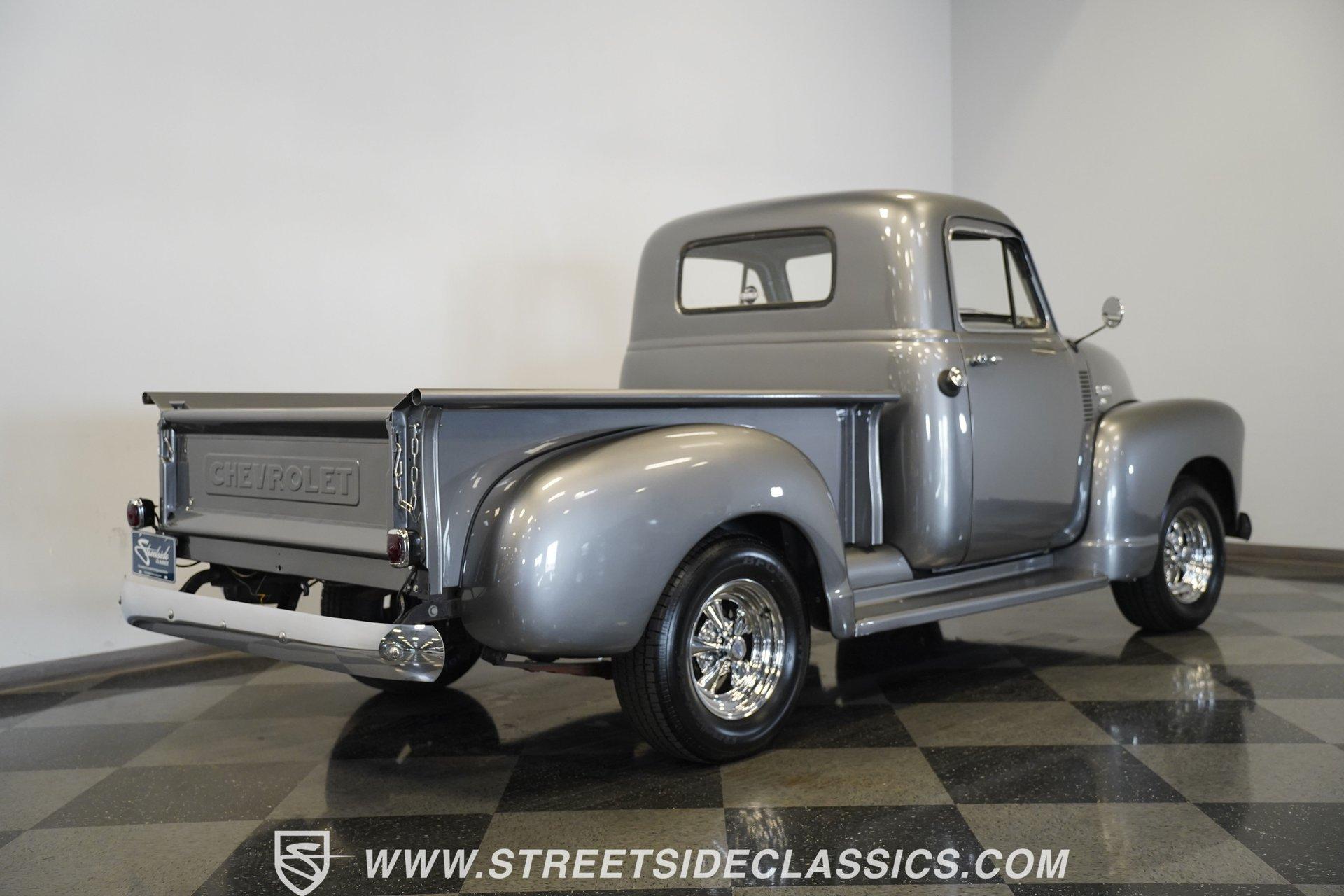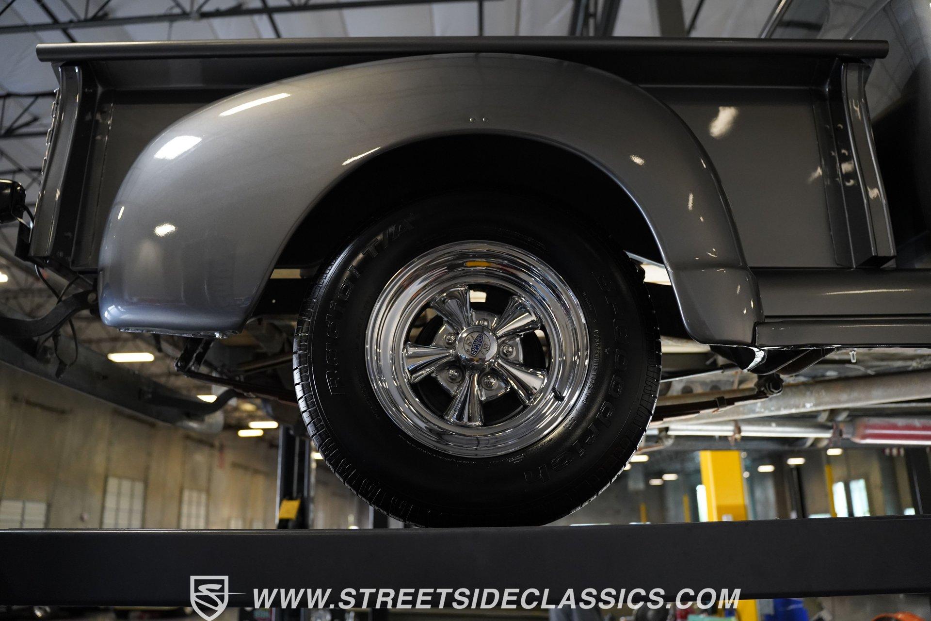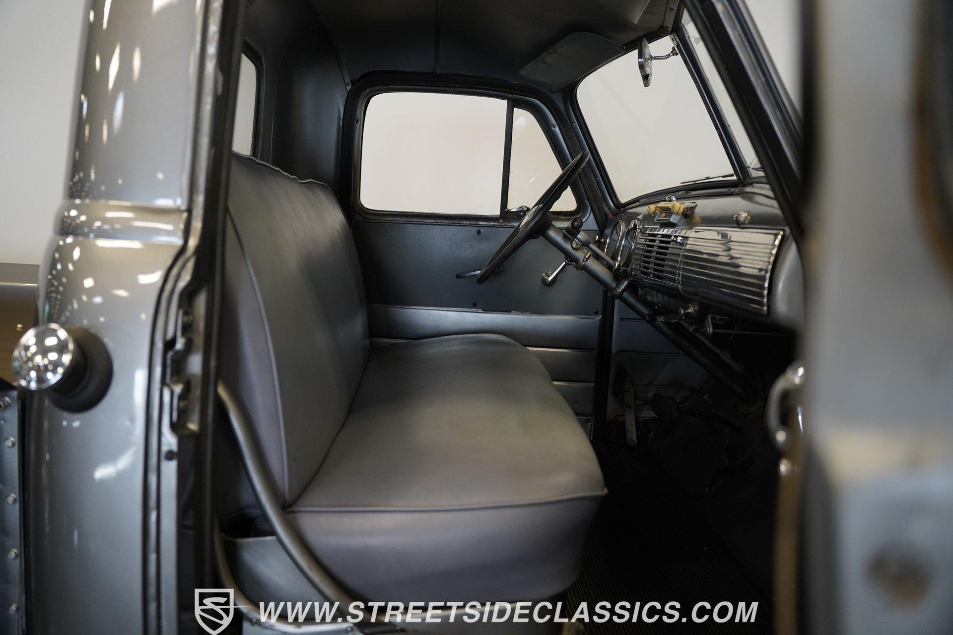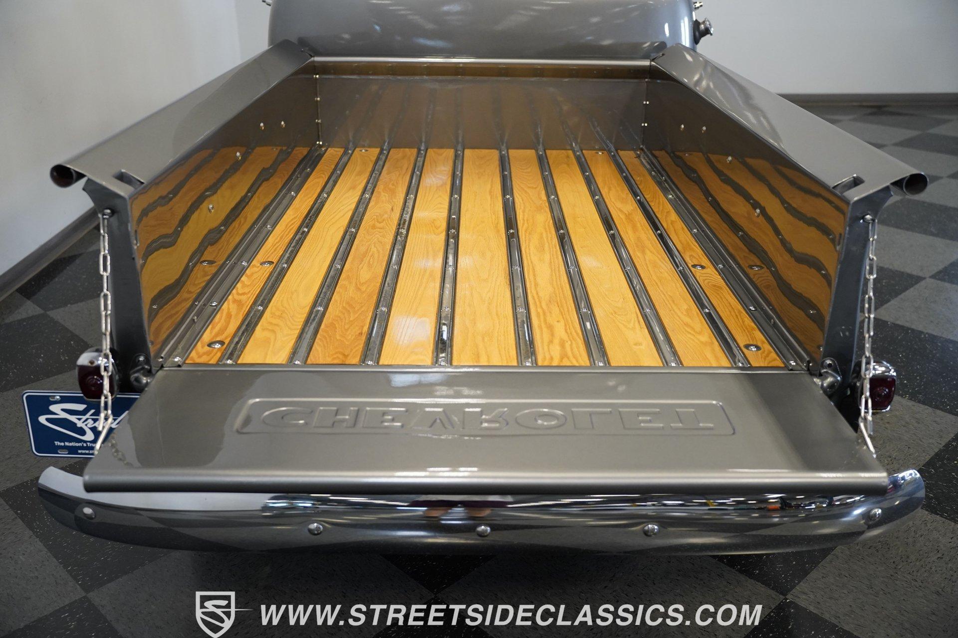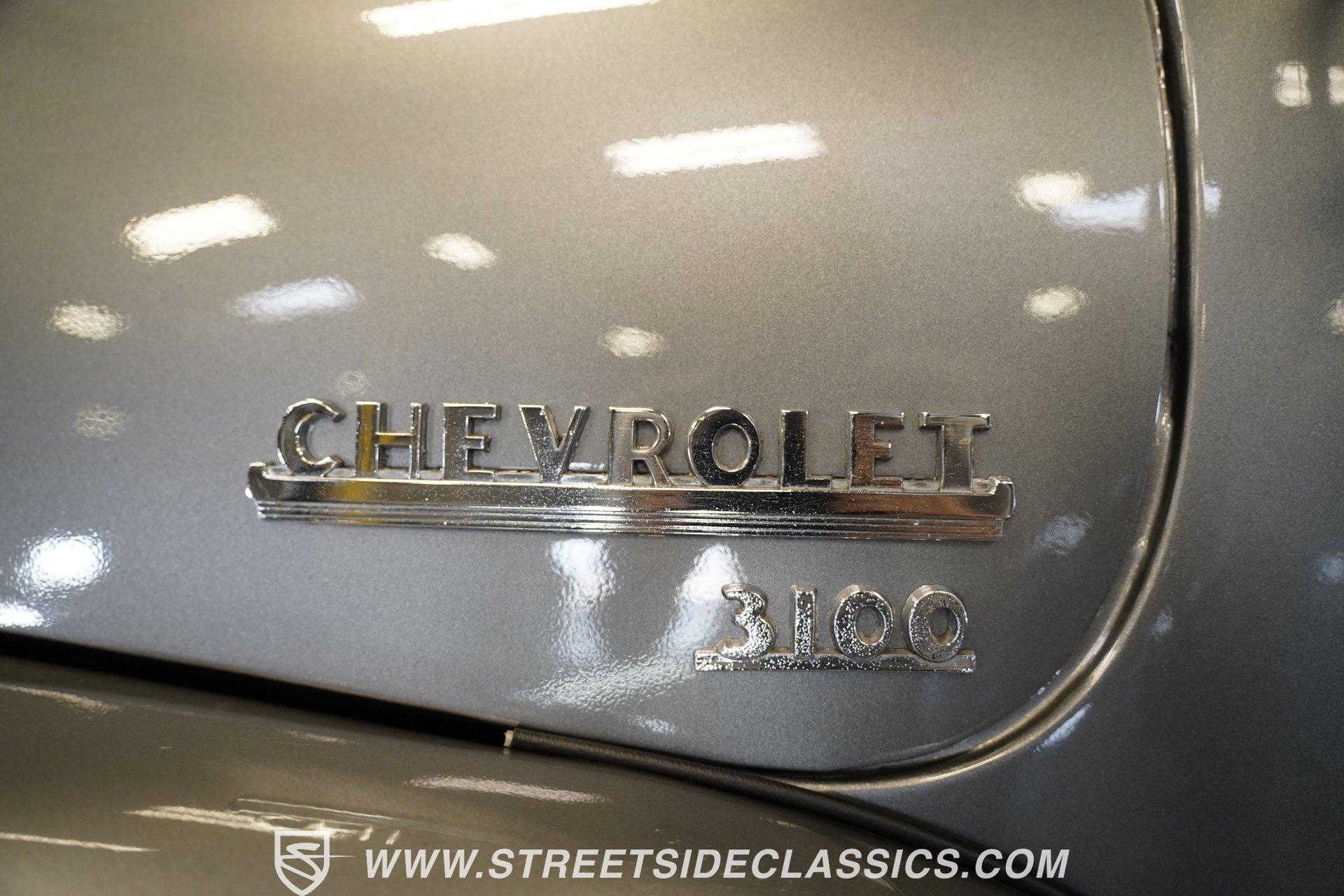 Silver metallic flake shines on this 1950 Chevrolet 3100 pickup truck, a true street cruiser with show quality details. Chrome accents grab your attention from every angle - from the bold Chevrolet emblem on the front grille to the substantial chrome bumpers front and rear. The custom woodgrain bed with polished chrome trim adds a custom touch that truck guys appreciate. Those 15" Chrome Cragar SS wheels wrapped in 235/70R15 BFG Radial TA tires look right at home under the fenders of this classic hauler. Gray vinyl wraps the bench seat inside this 1950 Chevrolet 3100, matched by gray door panels for a clean, coordinated interior. The dash houses the factory instrument cluster giving you all the vital info at a glance. The three-on-the-tree shifter juts from the column, controlling the 3-speed manual transmission with old-school cool. Original AM radio and simple controls for hazards, headlights, and brake release maintain the truck's authentic vibe. Vinyl flooring keeps things simple and sturdy - perfect for a truck built to cruise and show. A 235 cubic inch inline-six engine powers this 1950 Chevrolet 3100 pickup truck. The clean engine bay shows attention to detail with the black firewall providing contrast. The 3-speed manual transmission connects to an upgraded 80's-90's S10 10-bolt rear end for improved durability. Dual remote oil filters and an alternator upgrade add modern reliability for weekend cruising. Front disc brakes improve stopping power, while the I-beam front suspension with leaf springs and solid axle rear maintain the truck's authentic feel. A single exhaust with glasspack style muffler adds a subtle rumble when you hit the gas. HIGHLIGHTS: 235 I6 Engine 3-Speed Manual Transmission Front Disc Brakes I-Beam With Leaf Springs Front Suspension Solid Axle With Leaf Springs Rear Suspension 10-Bolt Rear End (80's-90's S10) Dual Remote Oil Filters Alternator Upgrade Single Exhaust With Glasspack Muffler Silver Metallic Flake Paint 15" Chrome Cragar SS Wheels 235/70R15 BFG Radial TA Tires Chrome Front And Rear Bumpers Woodgrain Bed With Chrome Accents Chrome "3100" Emblem Gray Interior With Bench Seat Column-Mounted Shifter Original Instrument Cluster AM Radio Vinyl Flooring Custom trucks like this 1950 Chevrolet 3100 offer the best of both worlds, classic looks with upgraded performance. The inline-six engine, disc brakes, and upgraded rear end let you drive and enjoy this truck while the silver metallic paint, chrome accents, and custom details make it a standout at any car show. Call today!
